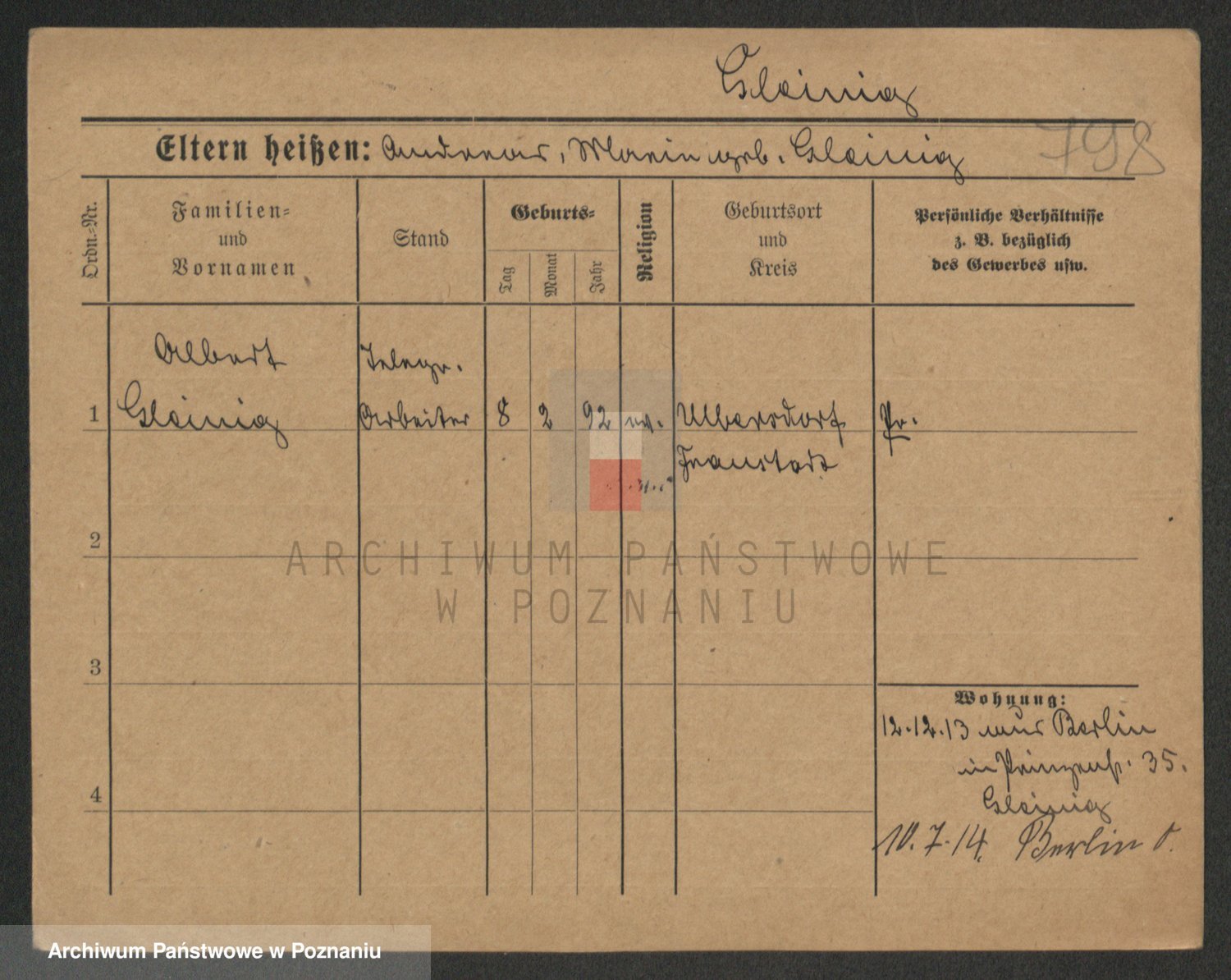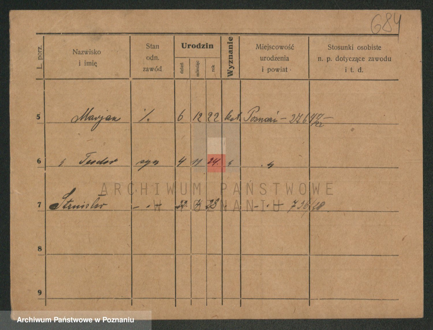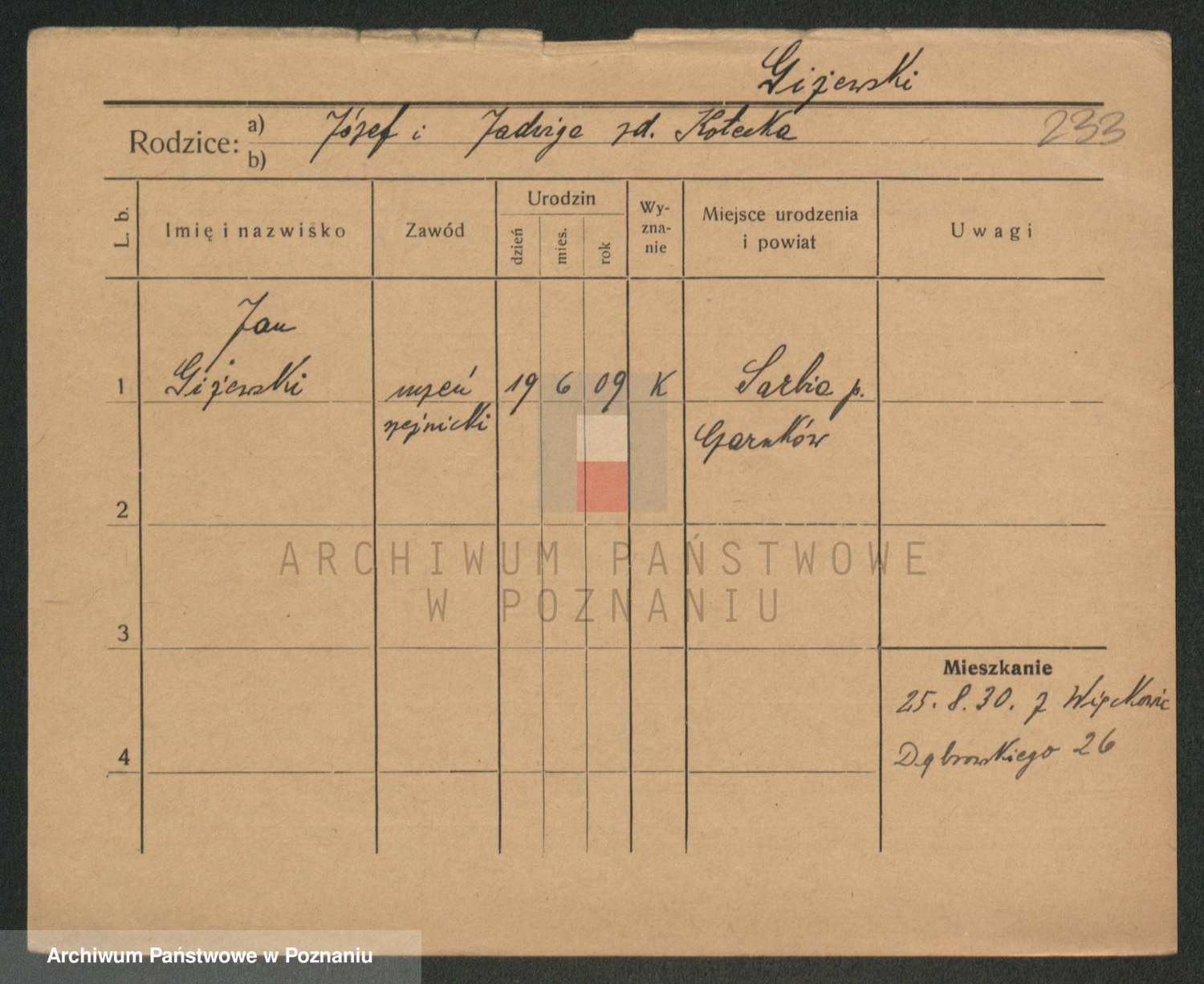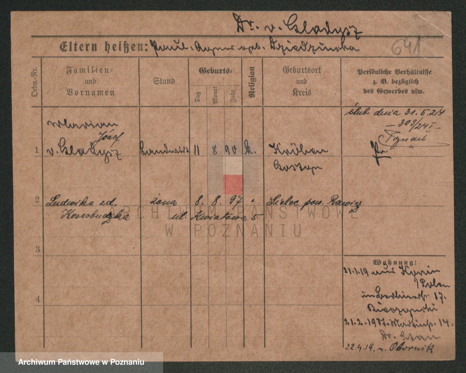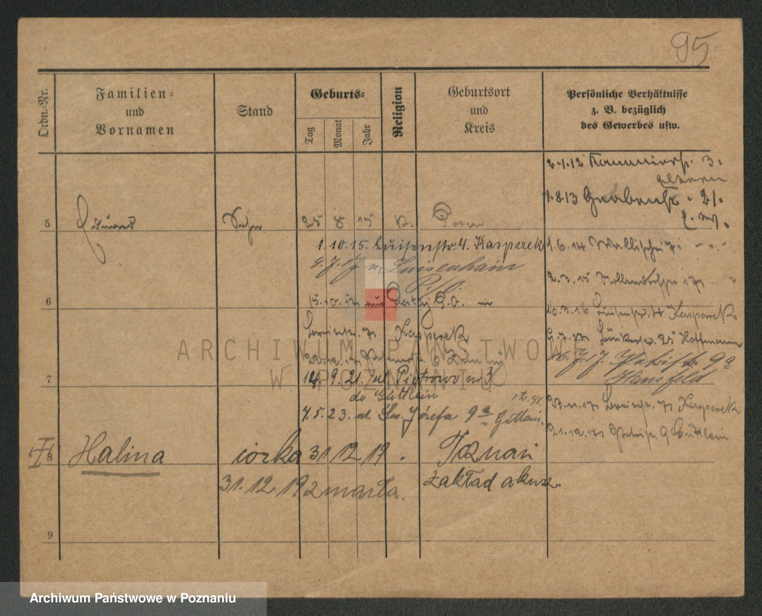 Podgląd karty osobowej dostępny jest po kliknięciu na nazwisko lub ikonkę karty. Można dokonywać powiększenia (ikony na górze) lub przechodzić między kolejnymi skanami (strzałki po bokach).