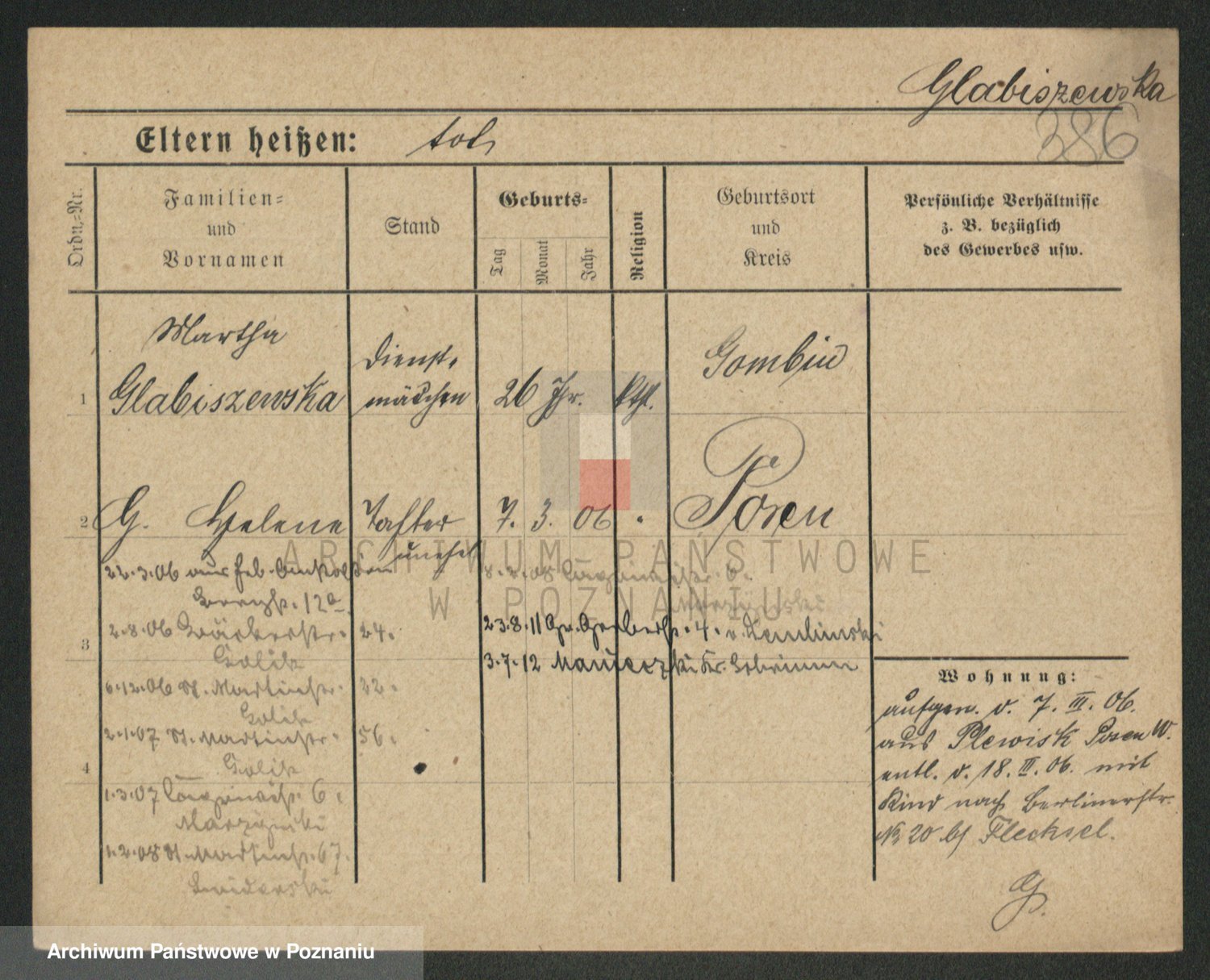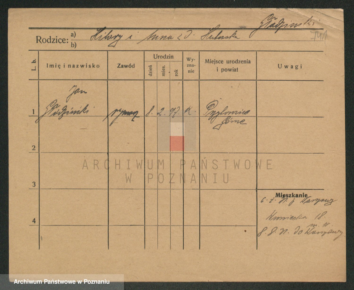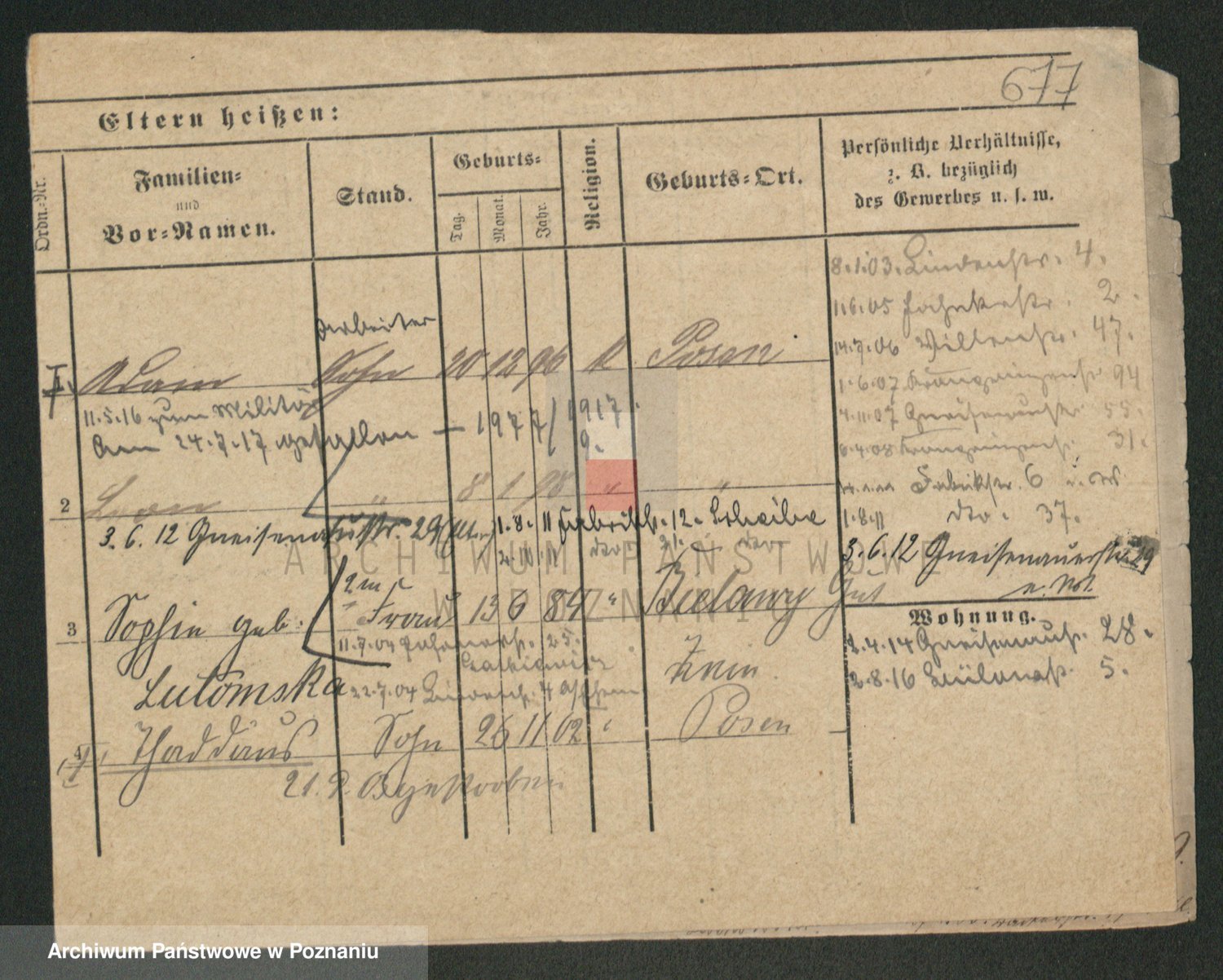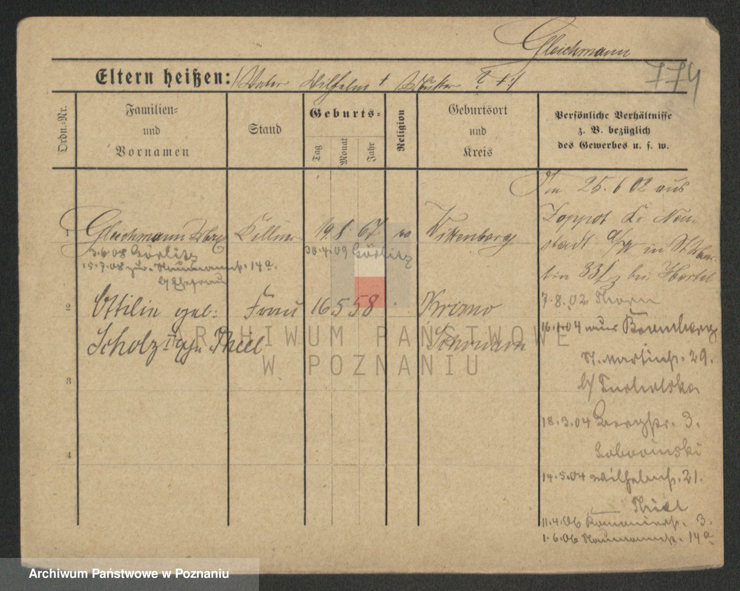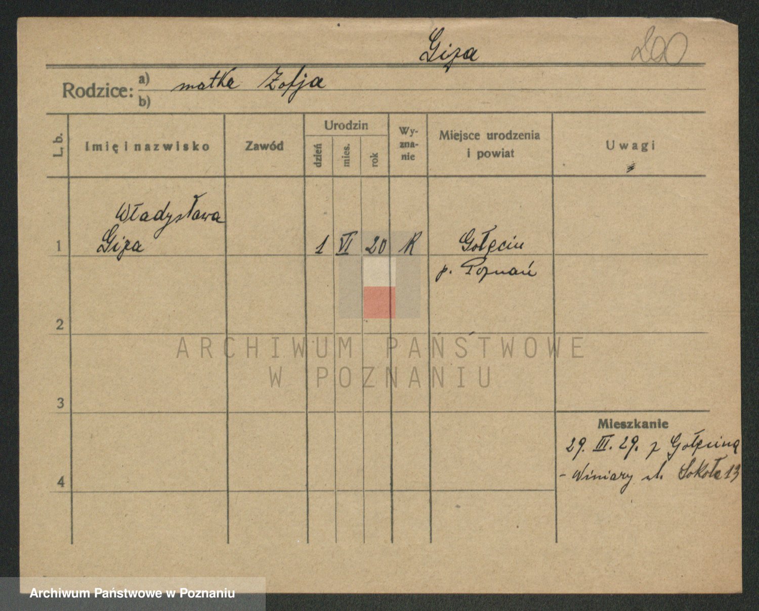 Podgląd karty osobowej dostępny jest po kliknięciu na nazwisko lub ikonkę karty. Można dokonywać powiększenia (ikony na górze) lub przechodzić między kolejnymi skanami (strzałki po bokach).