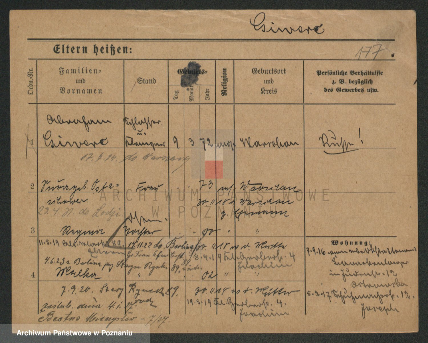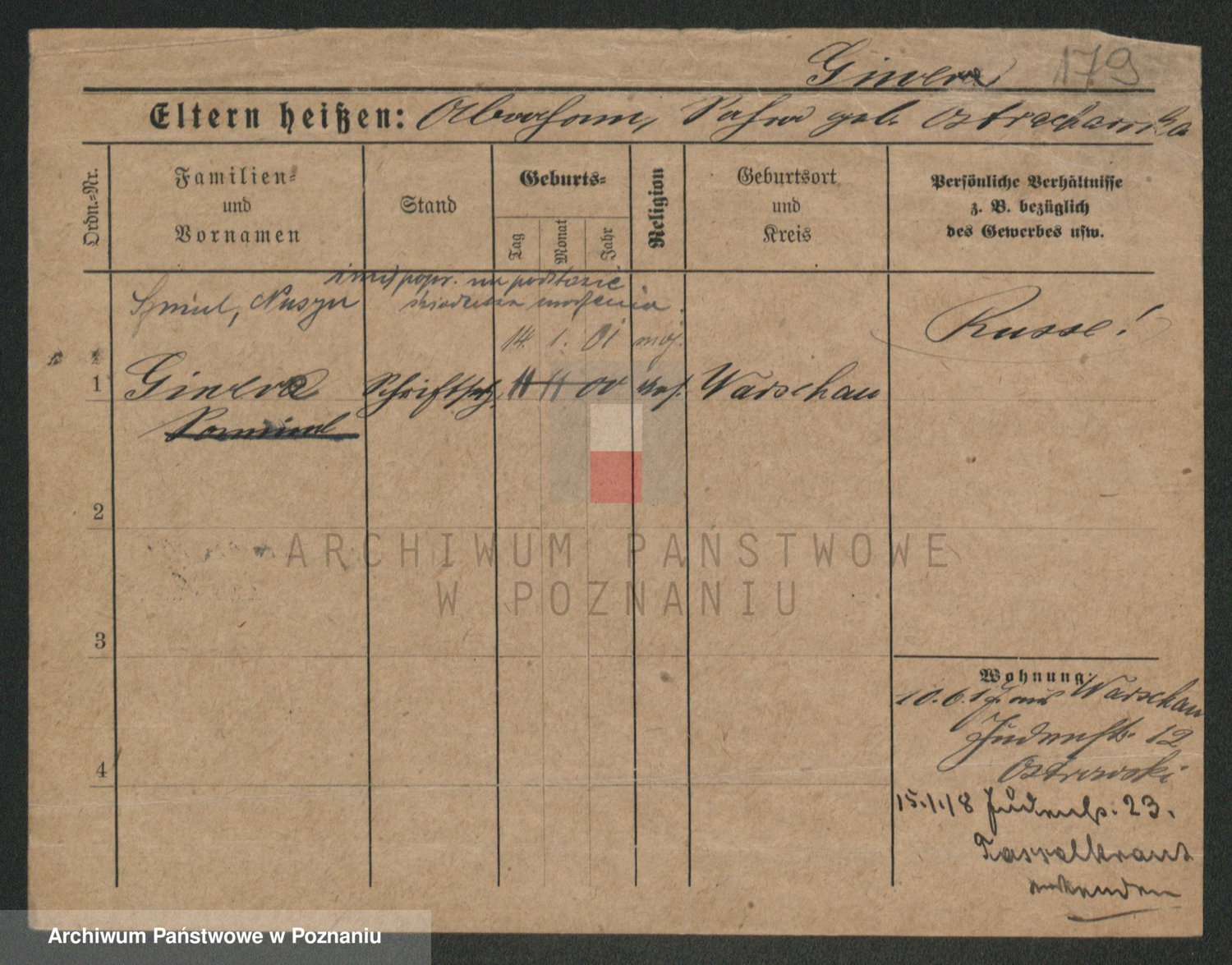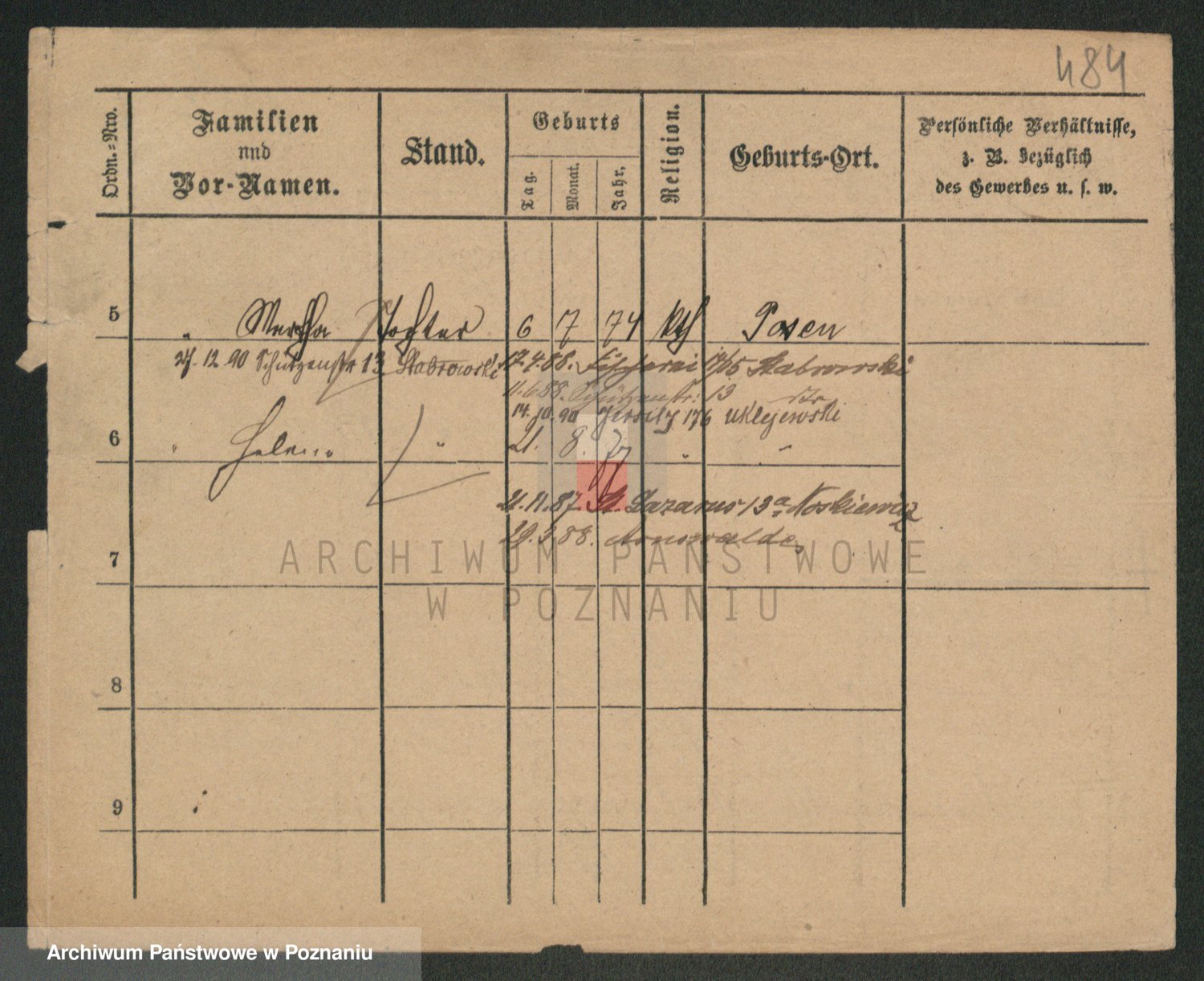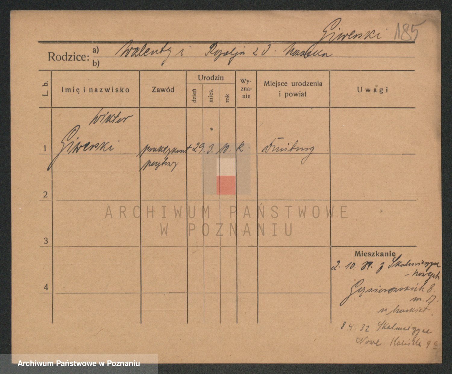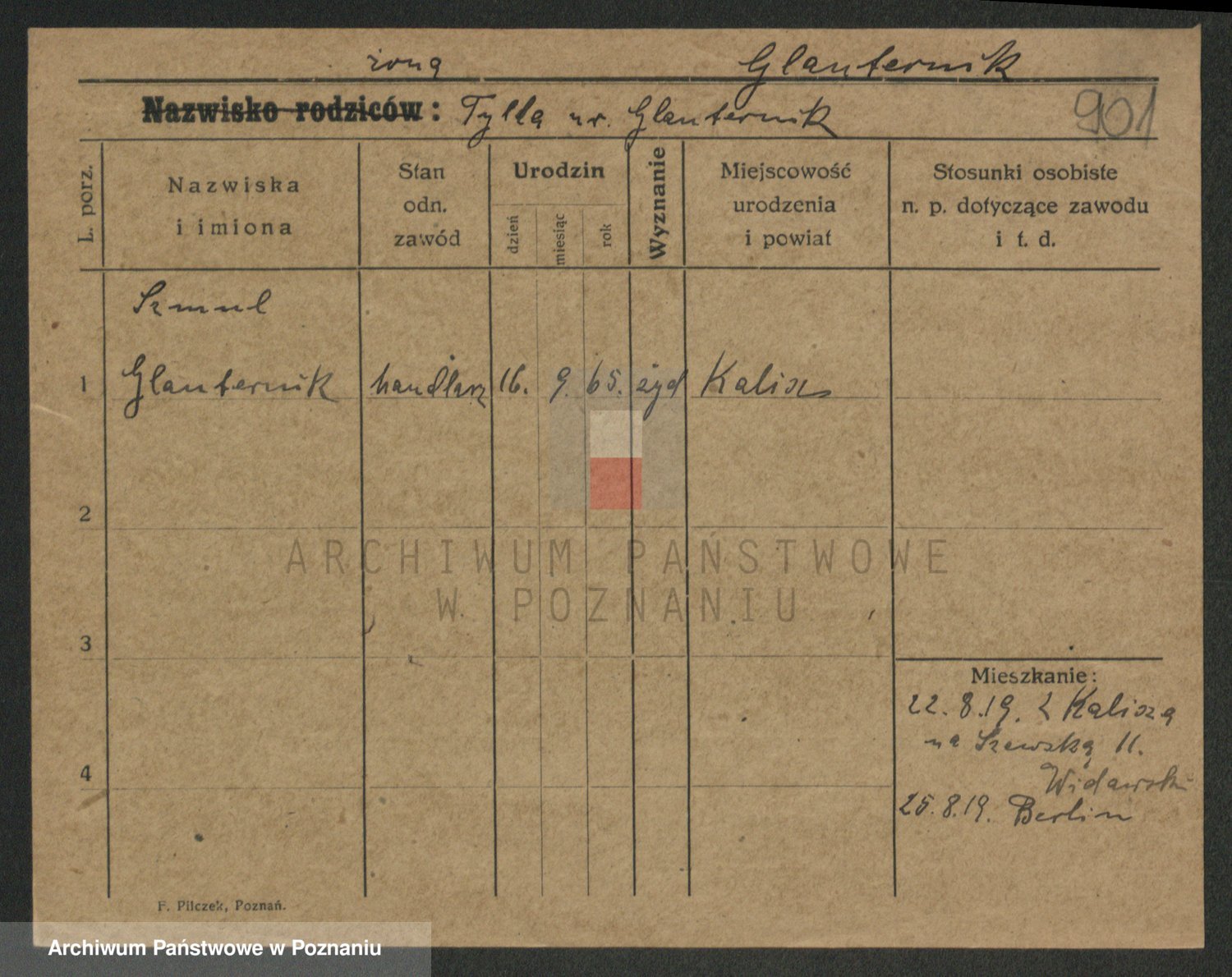 Podgląd karty osobowej dostępny jest po kliknięciu na nazwisko lub ikonkę karty. Można dokonywać powiększenia (ikony na górze) lub przechodzić między kolejnymi skanami (strzałki po bokach).