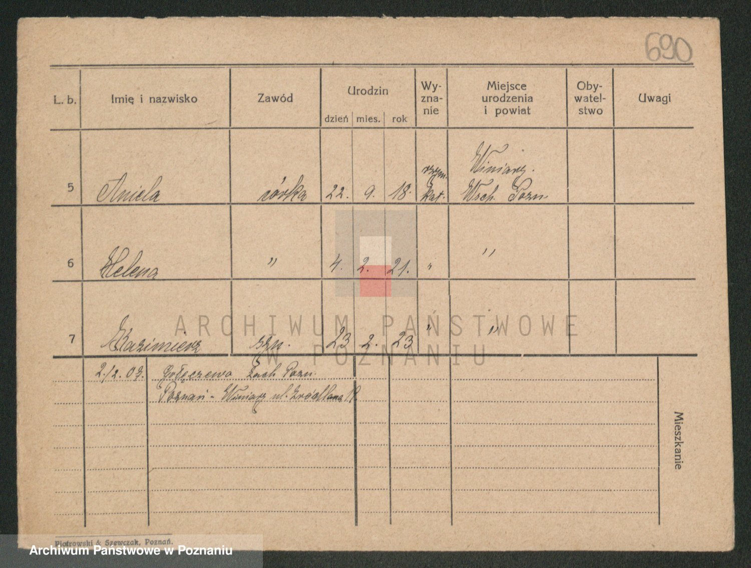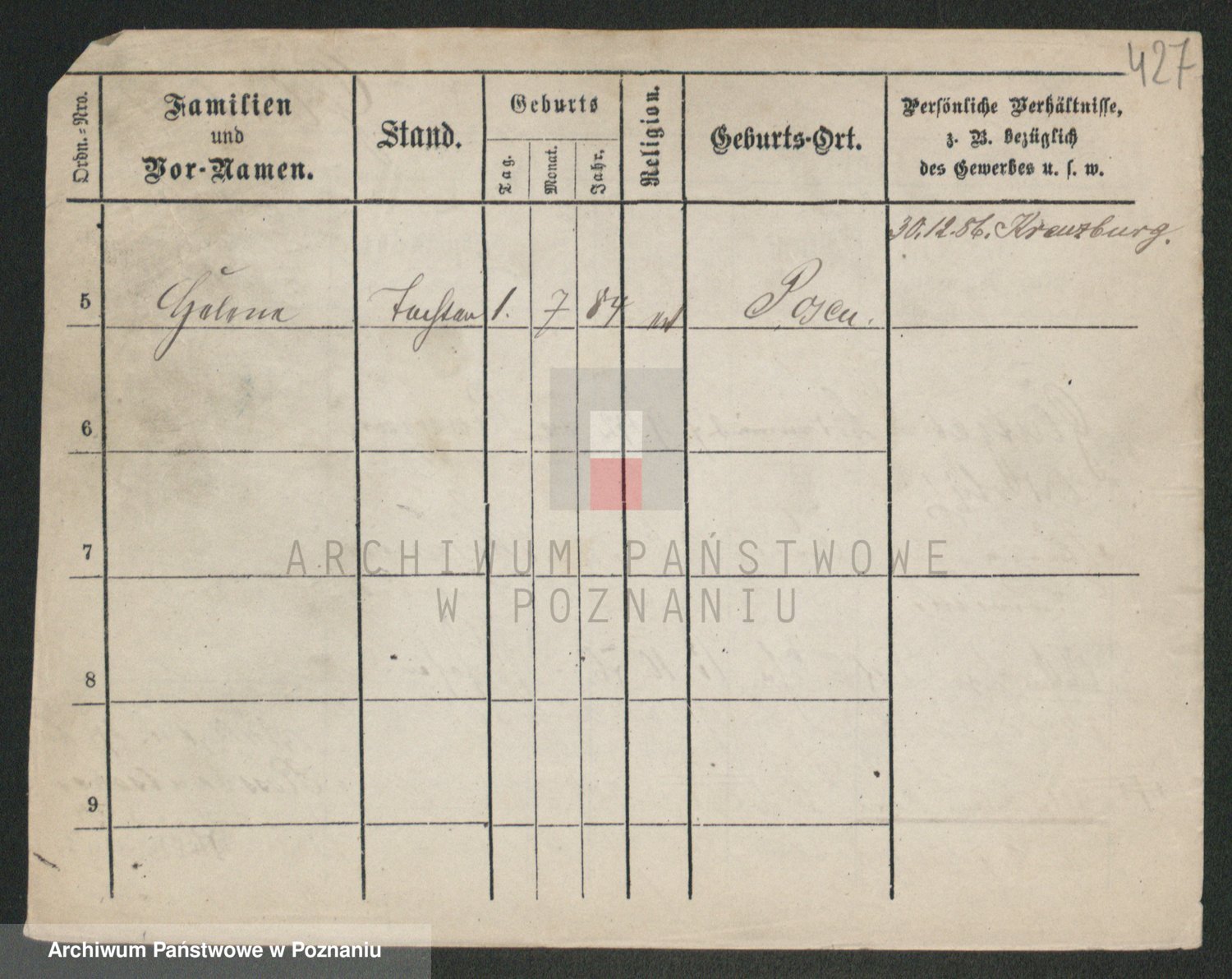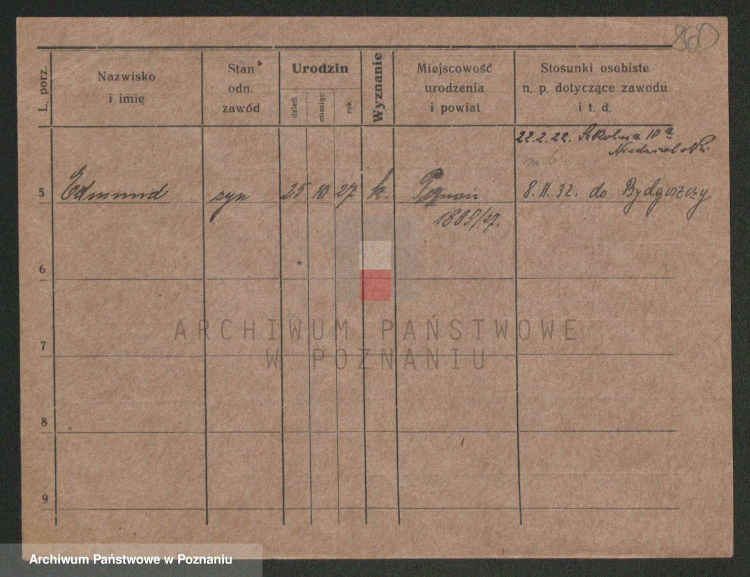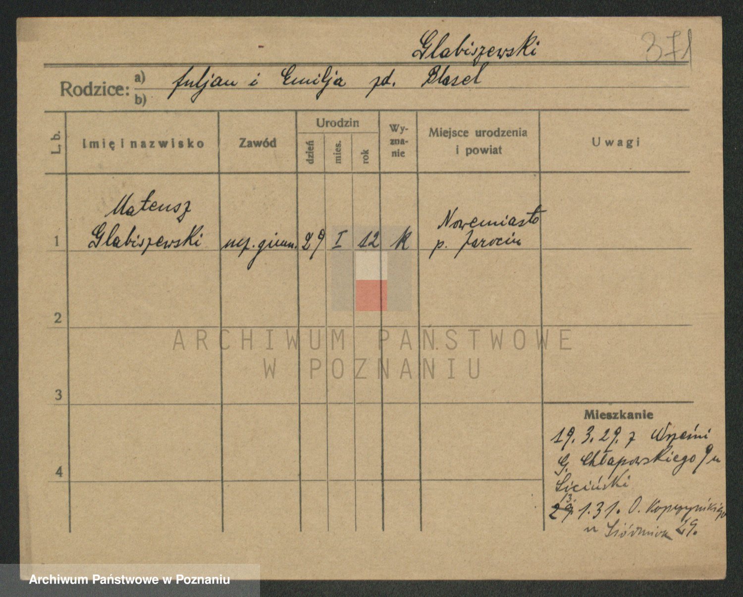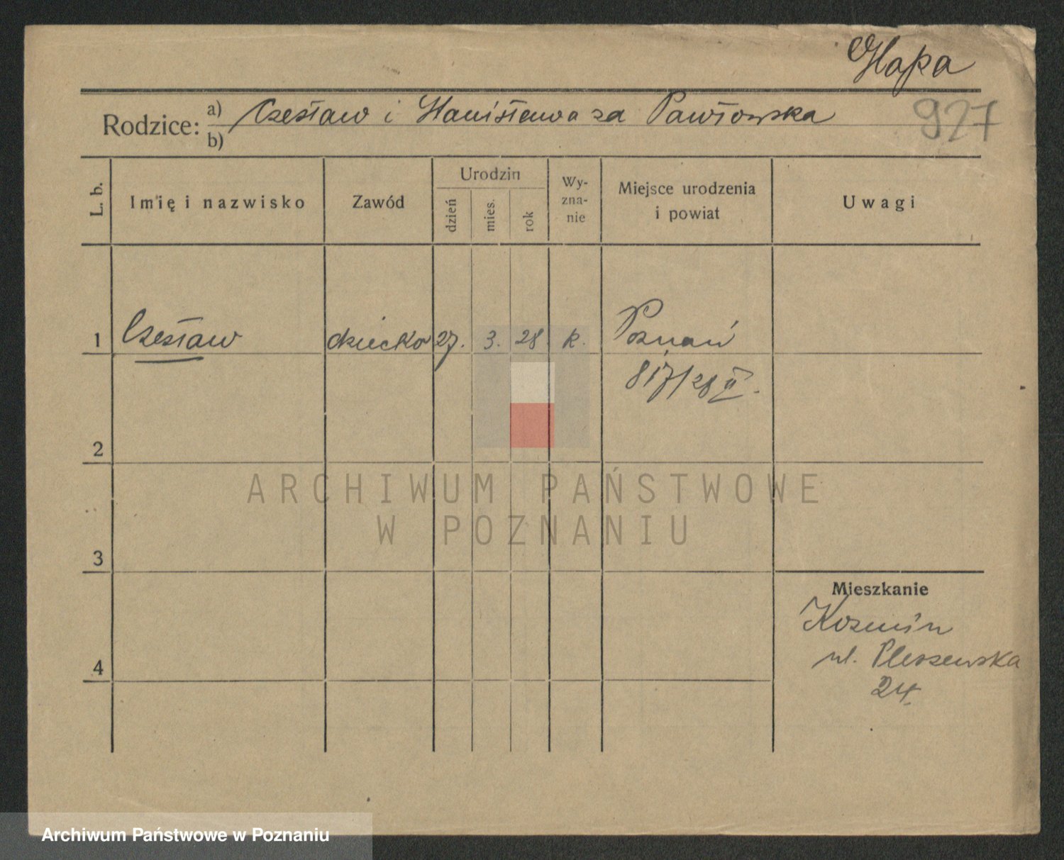 Podgląd karty osobowej dostępny jest po kliknięciu na nazwisko lub ikonkę karty. Można dokonywać powiększenia (ikony na górze) lub przechodzić między kolejnymi skanami (strzałki po bokach).