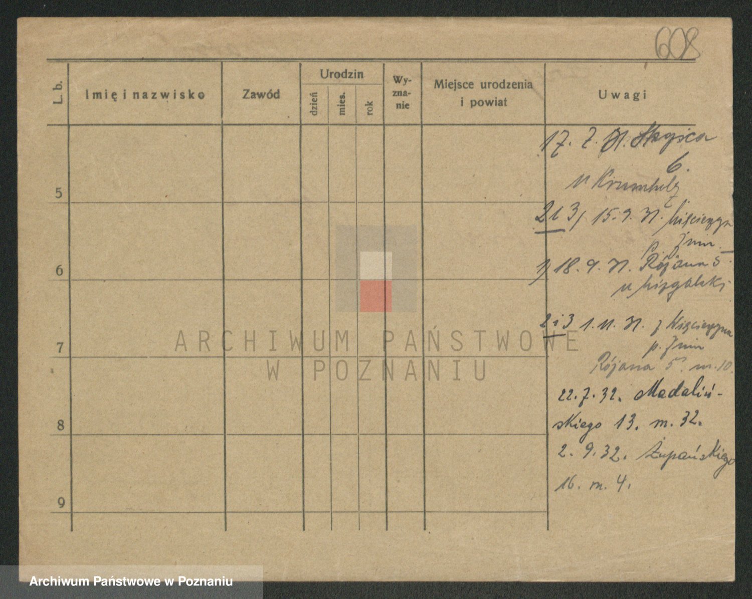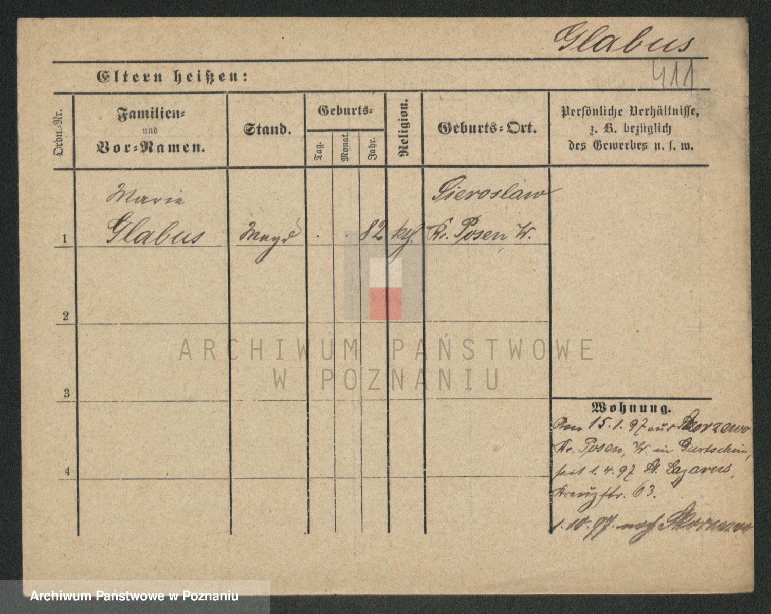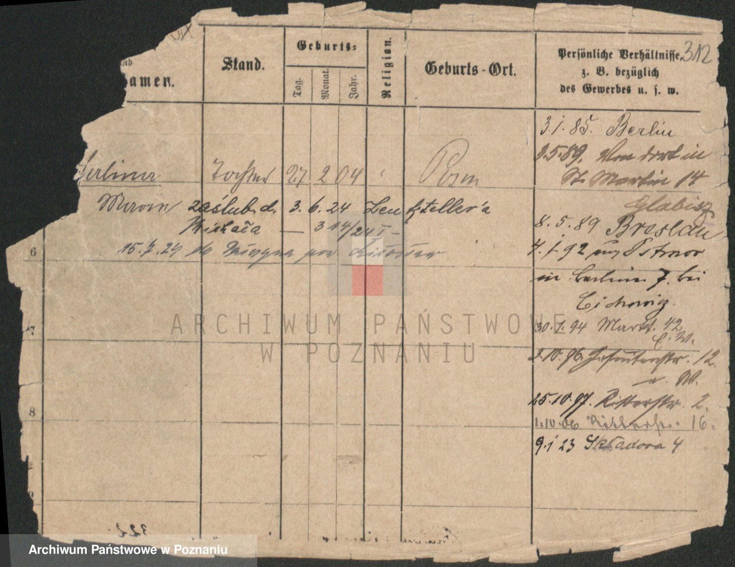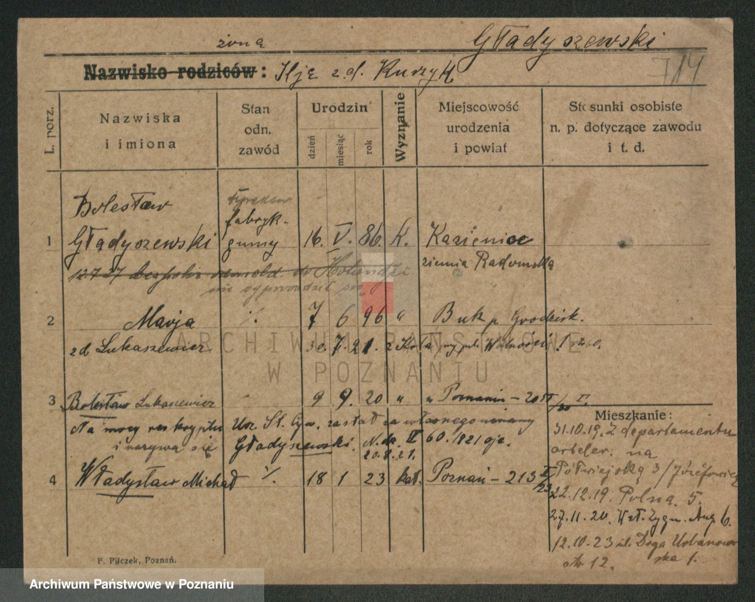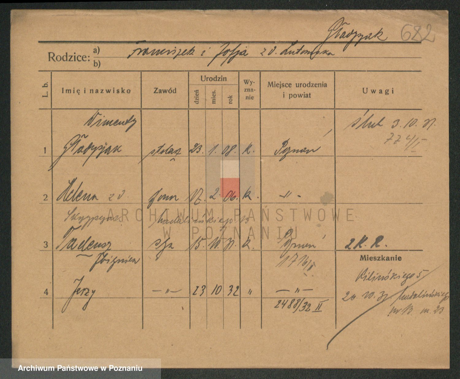 Podgląd karty osobowej dostępny jest po kliknięciu na nazwisko lub ikonkę karty. Można dokonywać powiększenia (ikony na górze) lub przechodzić między kolejnymi skanami (strzałki po bokach).