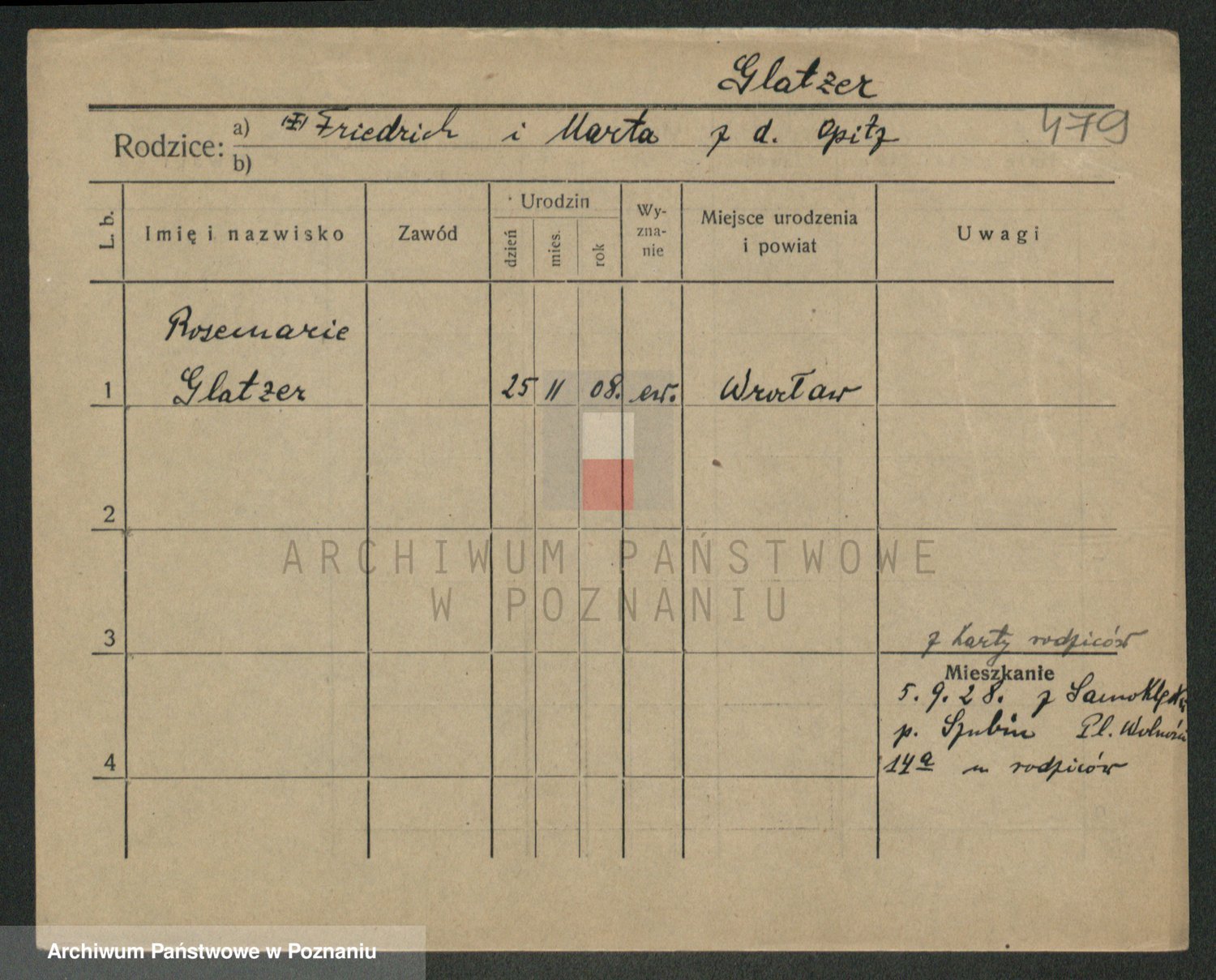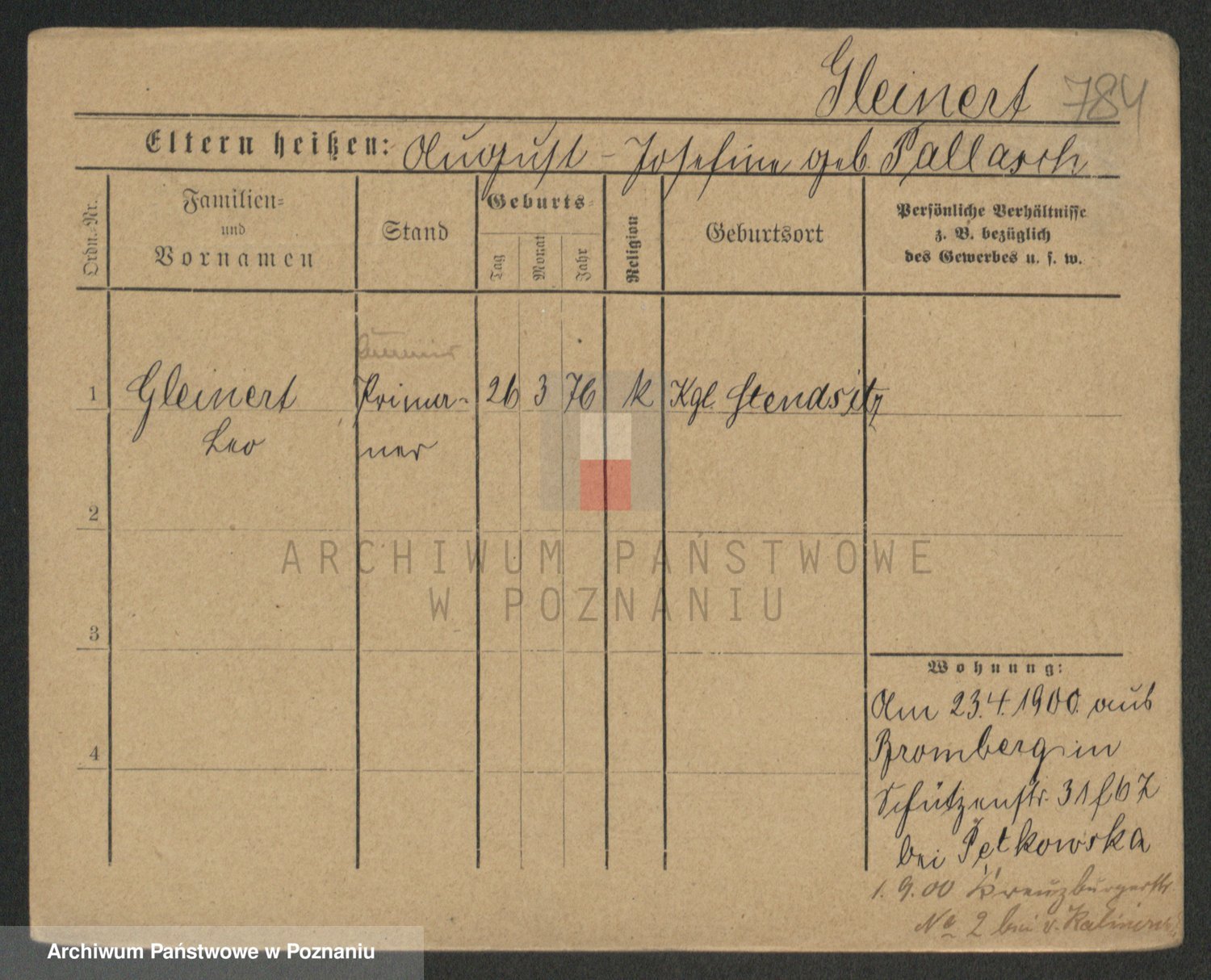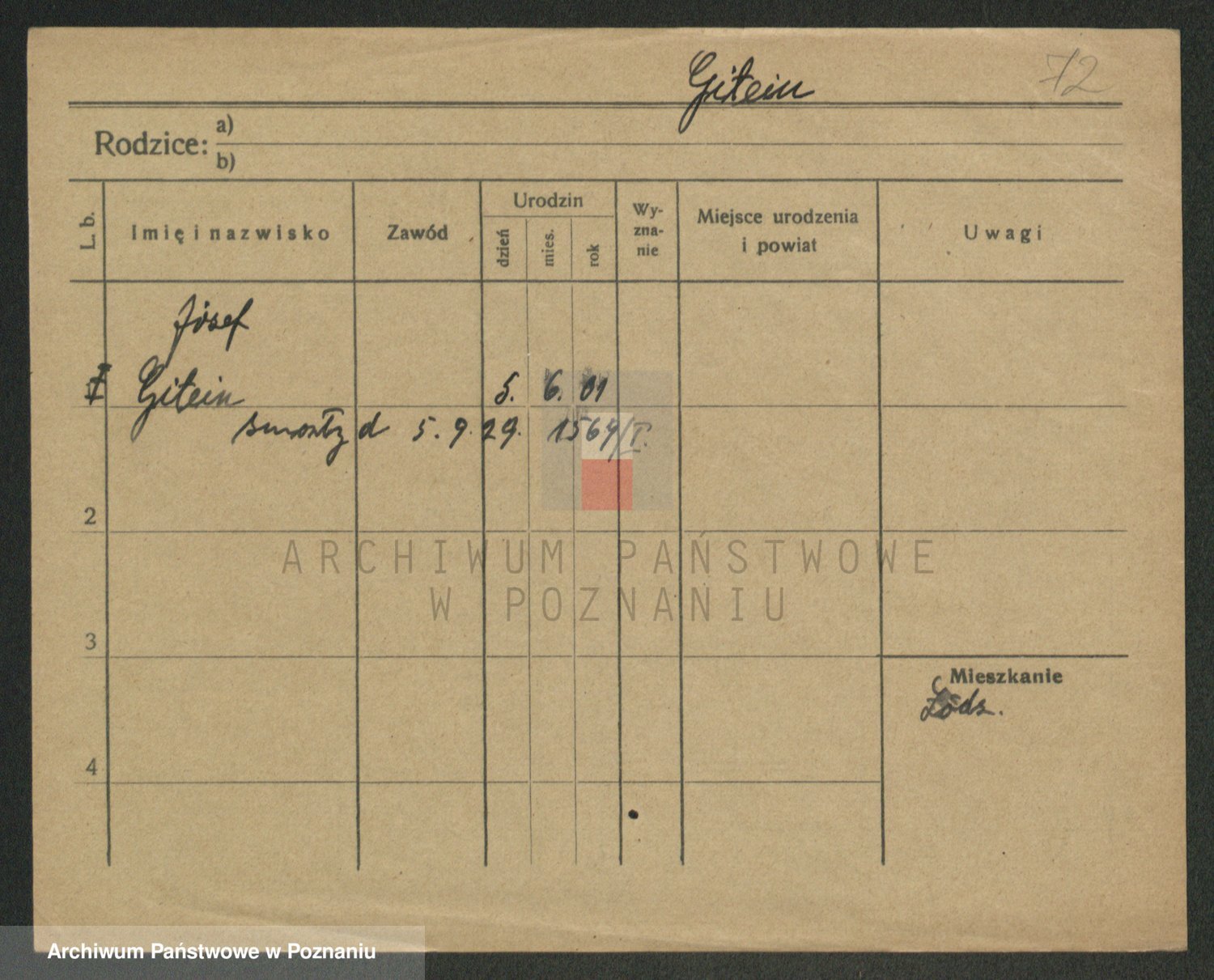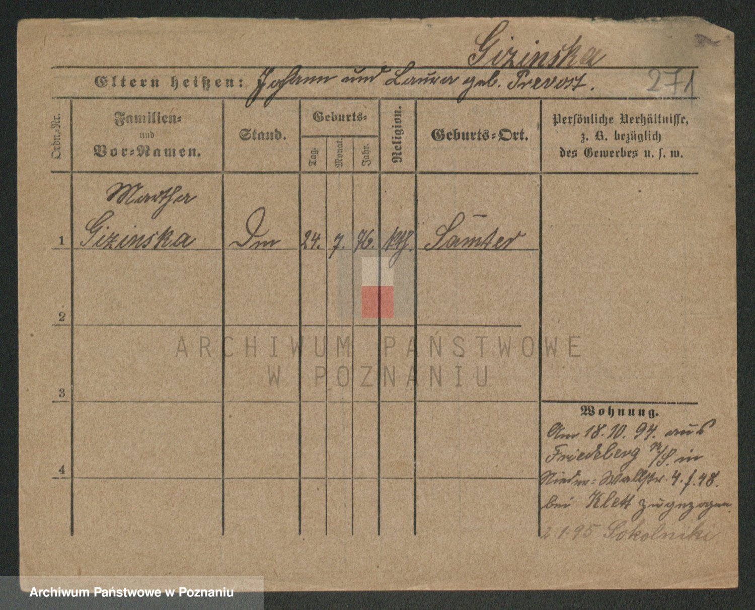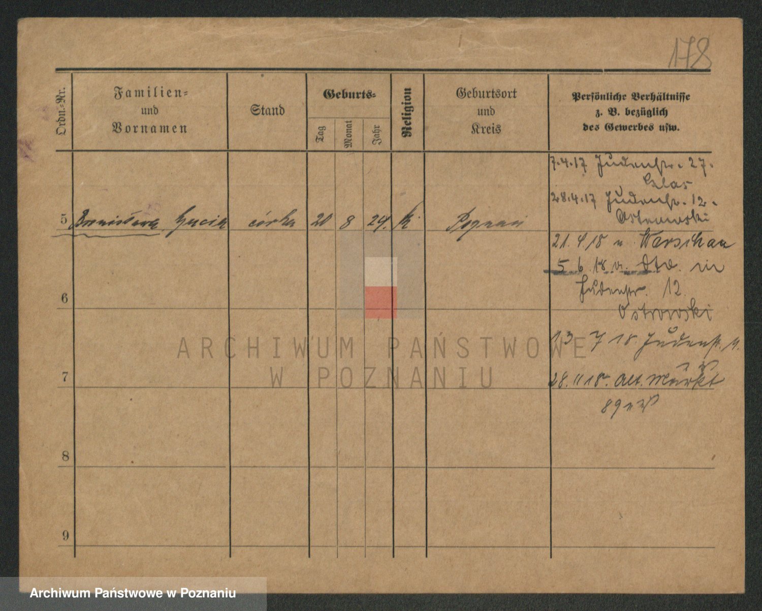 Podgląd karty osobowej dostępny jest po kliknięciu na nazwisko lub ikonkę karty. Można dokonywać powiększenia (ikony na górze) lub przechodzić między kolejnymi skanami (strzałki po bokach).