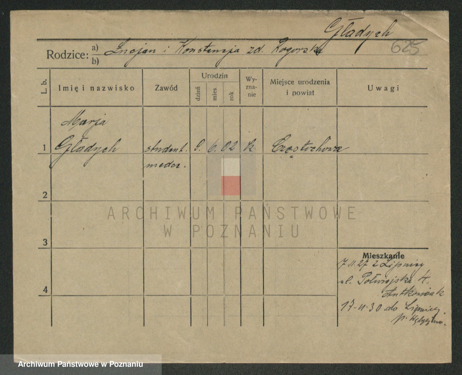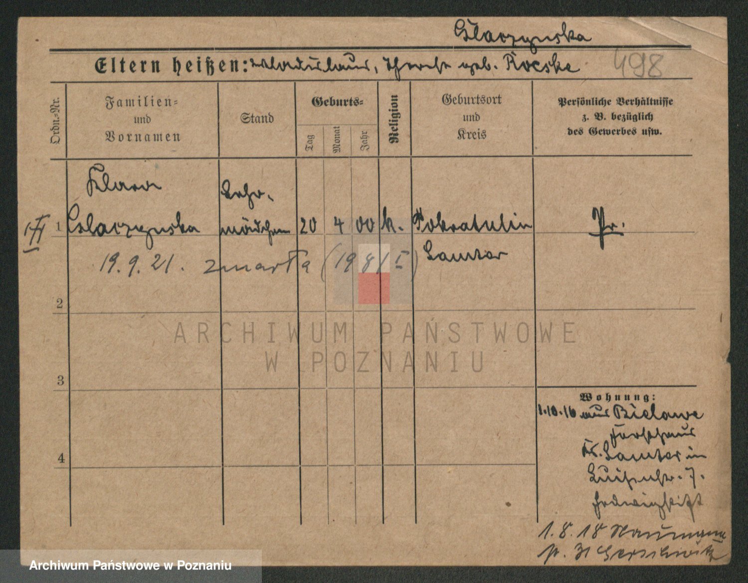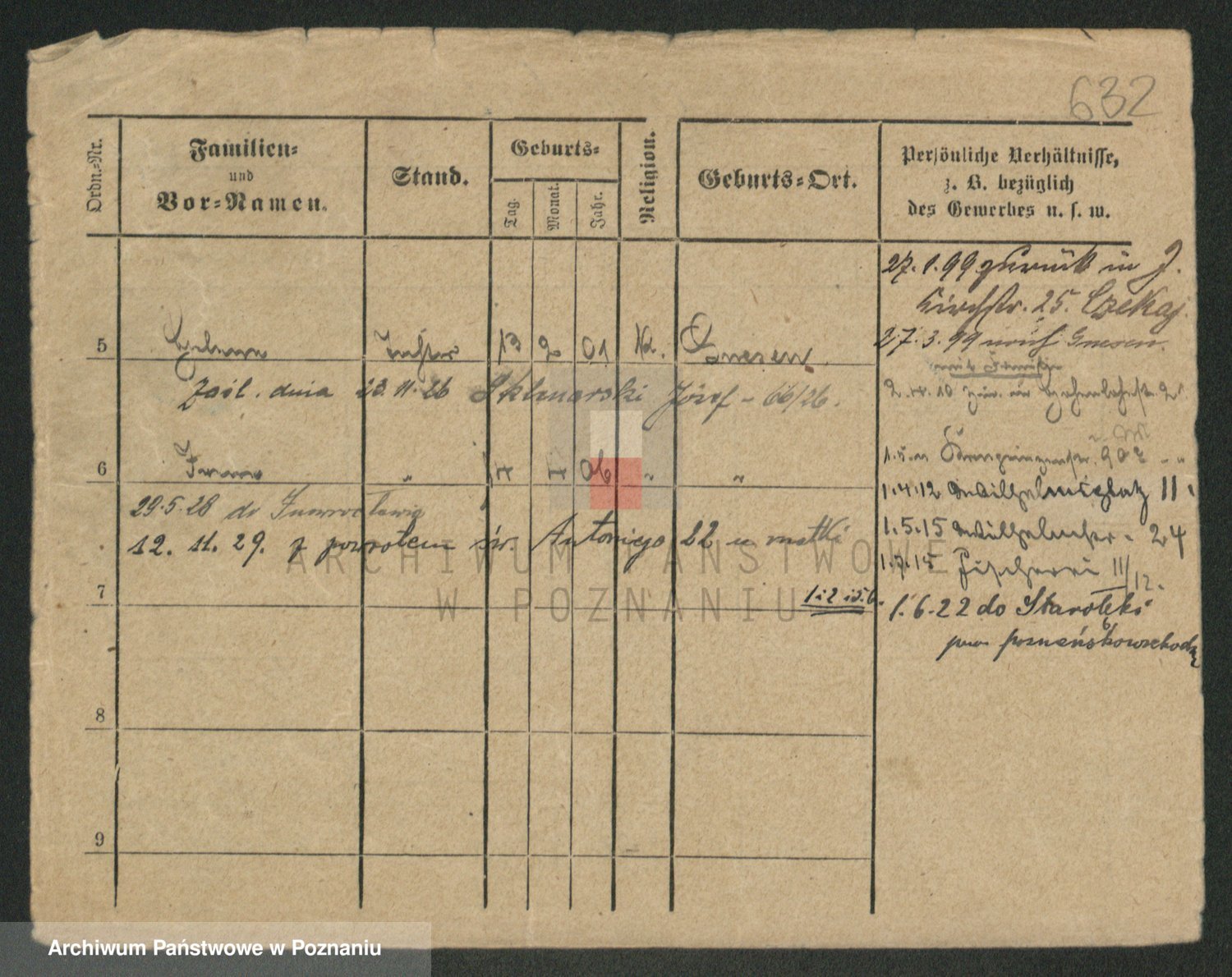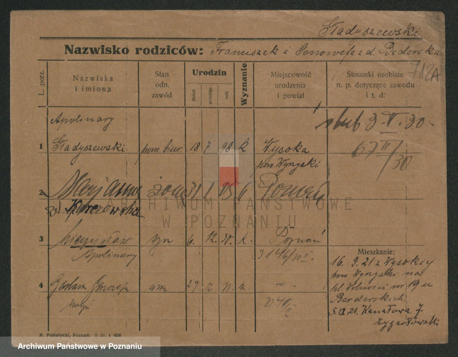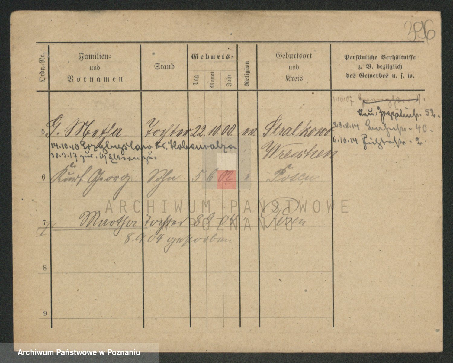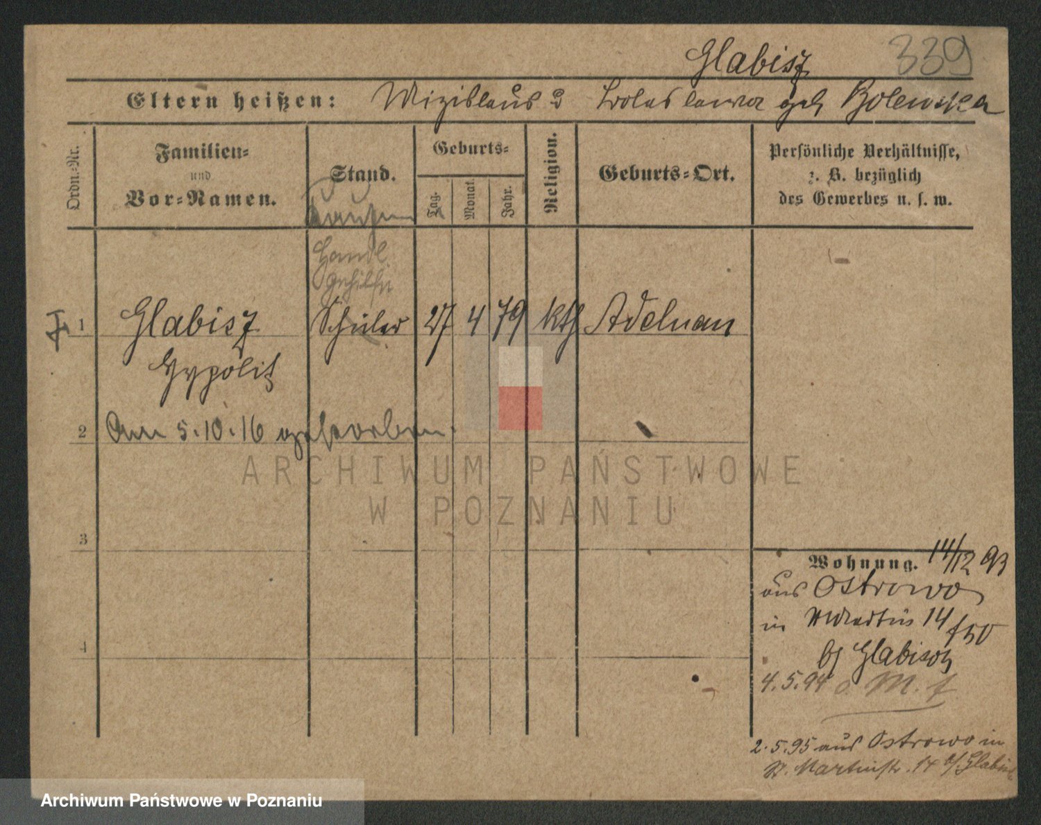 Podgląd karty osobowej dostępny jest po kliknięciu na nazwisko lub ikonkę karty. Można dokonywać powiększenia (ikony na górze) lub przechodzić między kolejnymi skanami (strzałki po bokach).