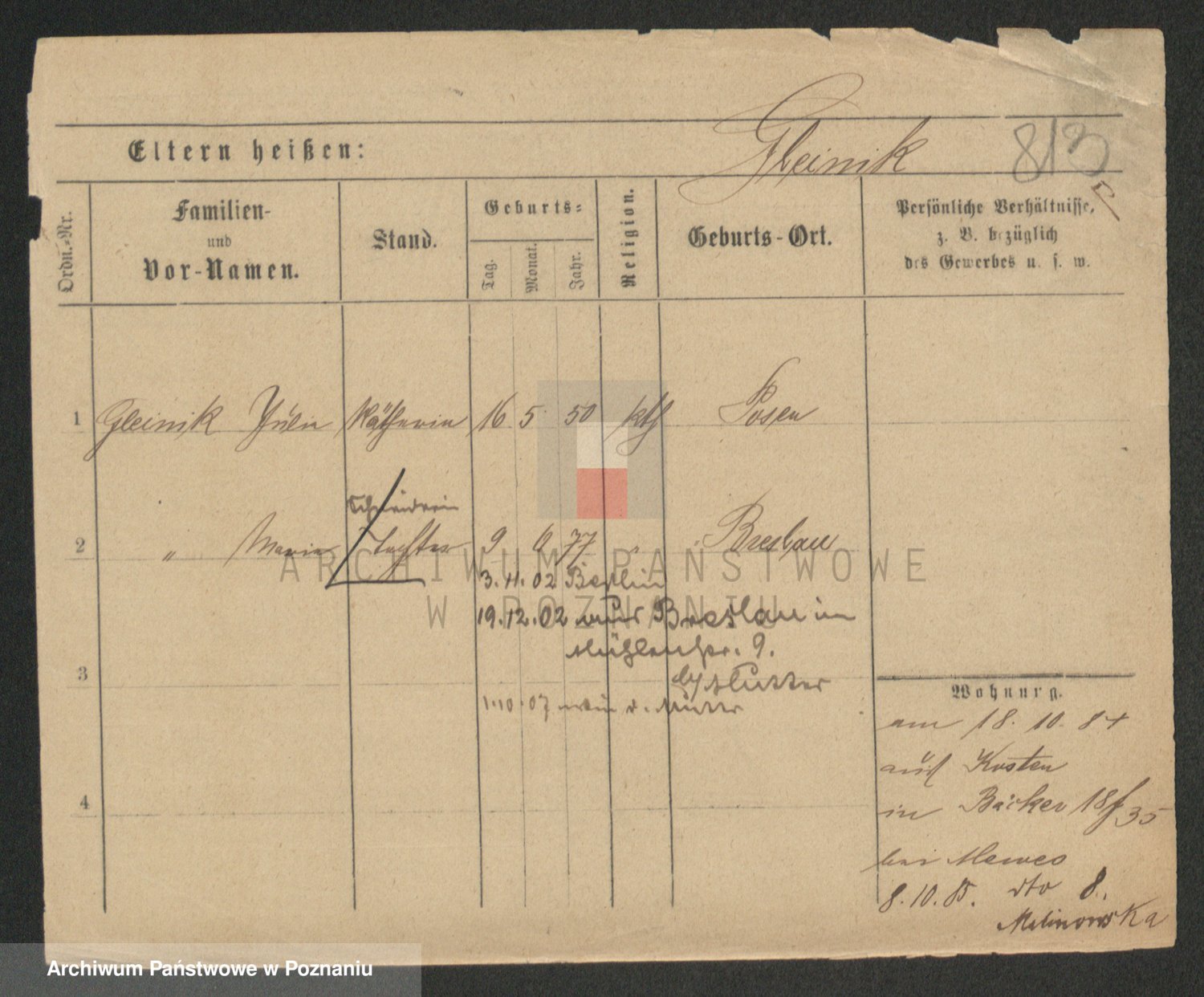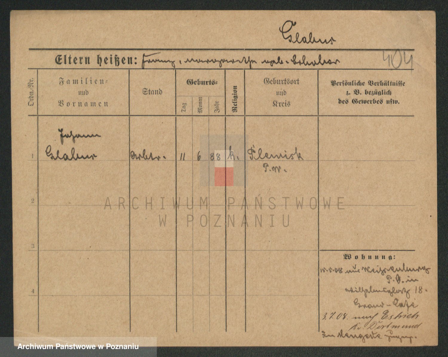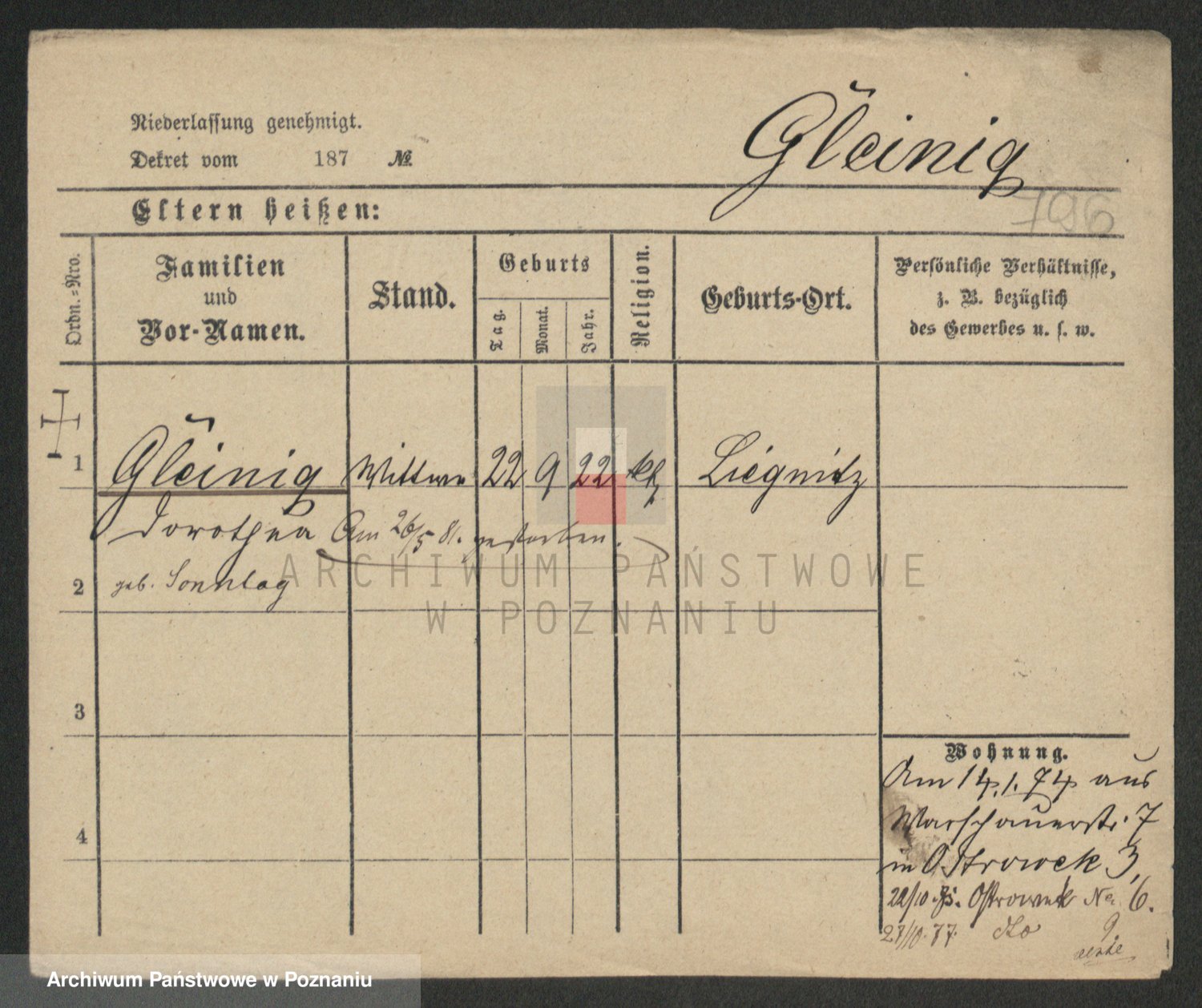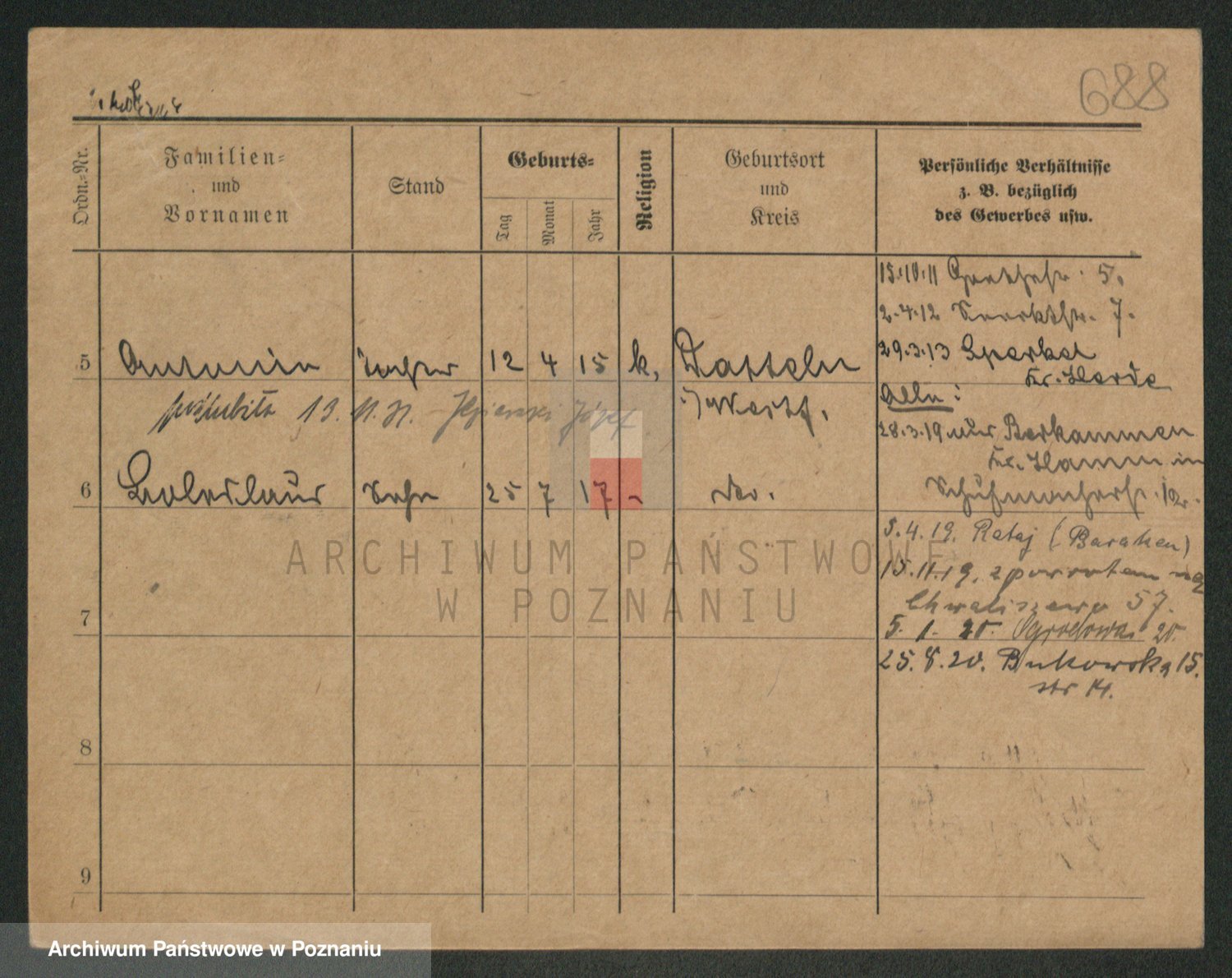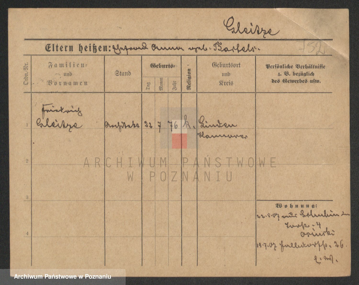 Podgląd karty osobowej dostępny jest po kliknięciu na nazwisko lub ikonkę karty. Można dokonywać powiększenia (ikony na górze) lub przechodzić między kolejnymi skanami (strzałki po bokach).