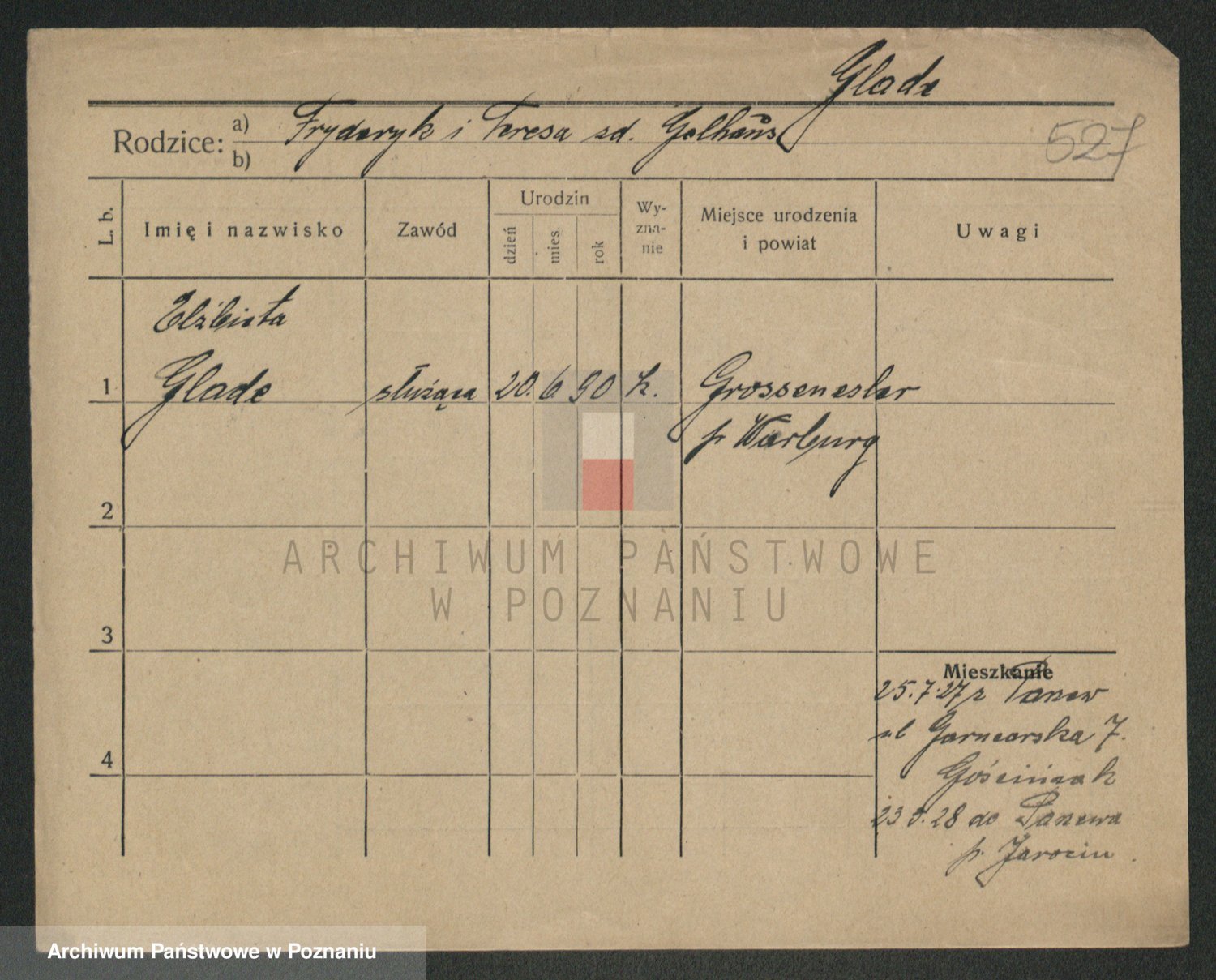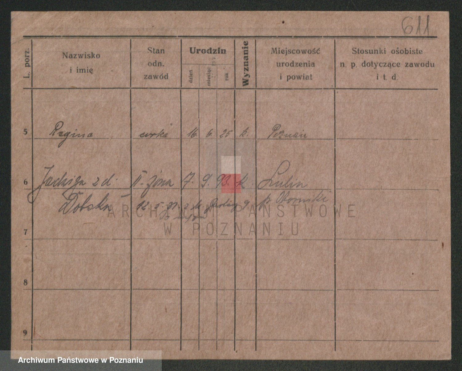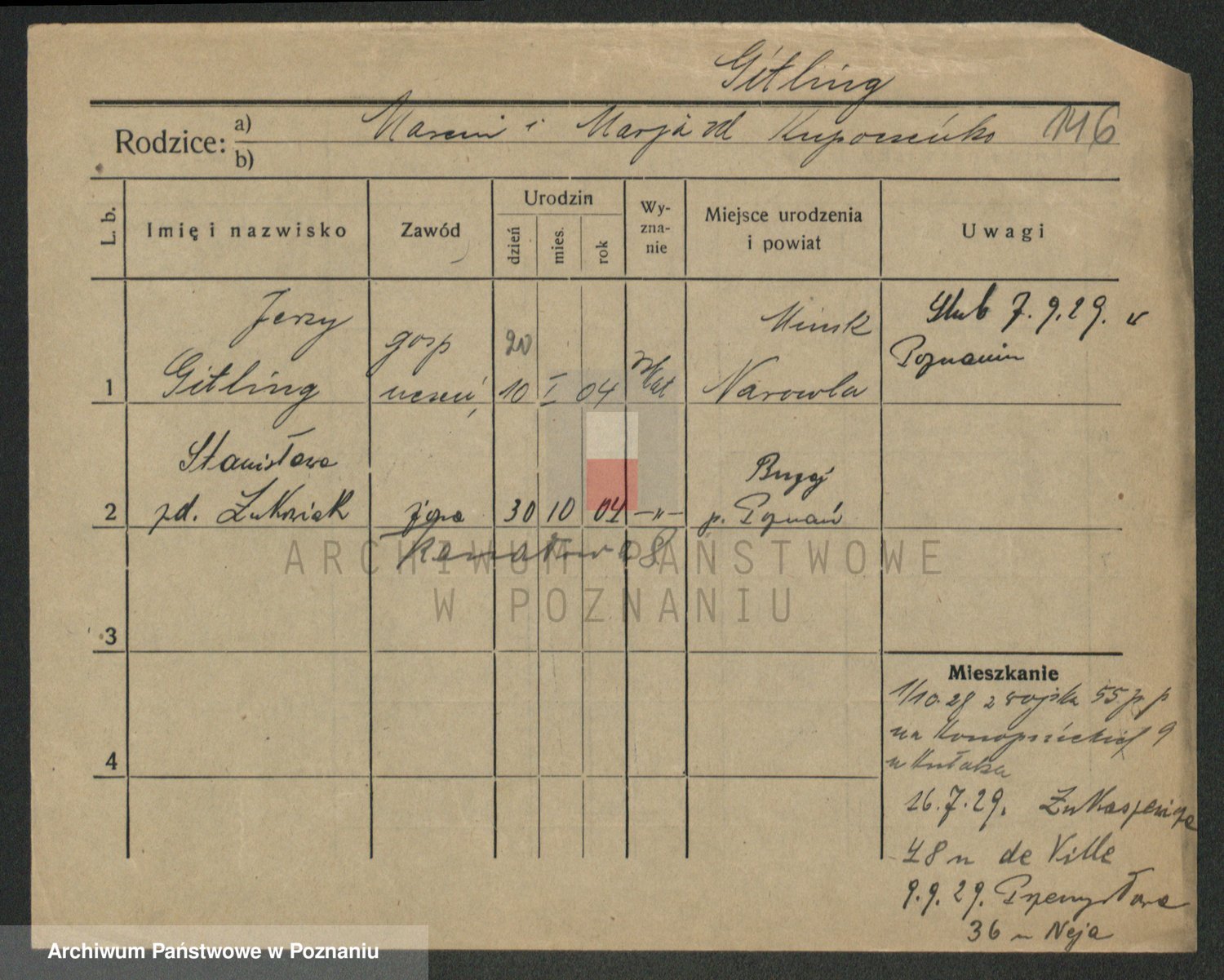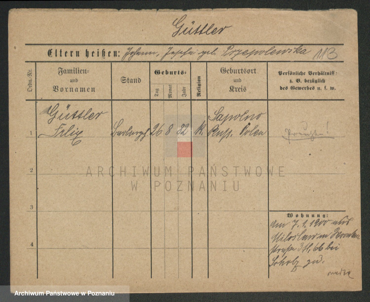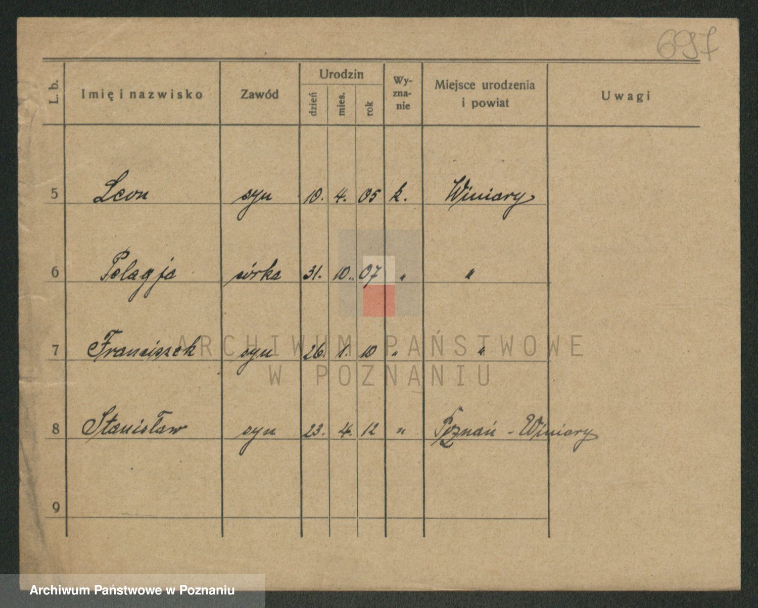 Podgląd karty osobowej dostępny jest po kliknięciu na nazwisko lub ikonkę karty. Można dokonywać powiększenia (ikony na górze) lub przechodzić między kolejnymi skanami (strzałki po bokach).