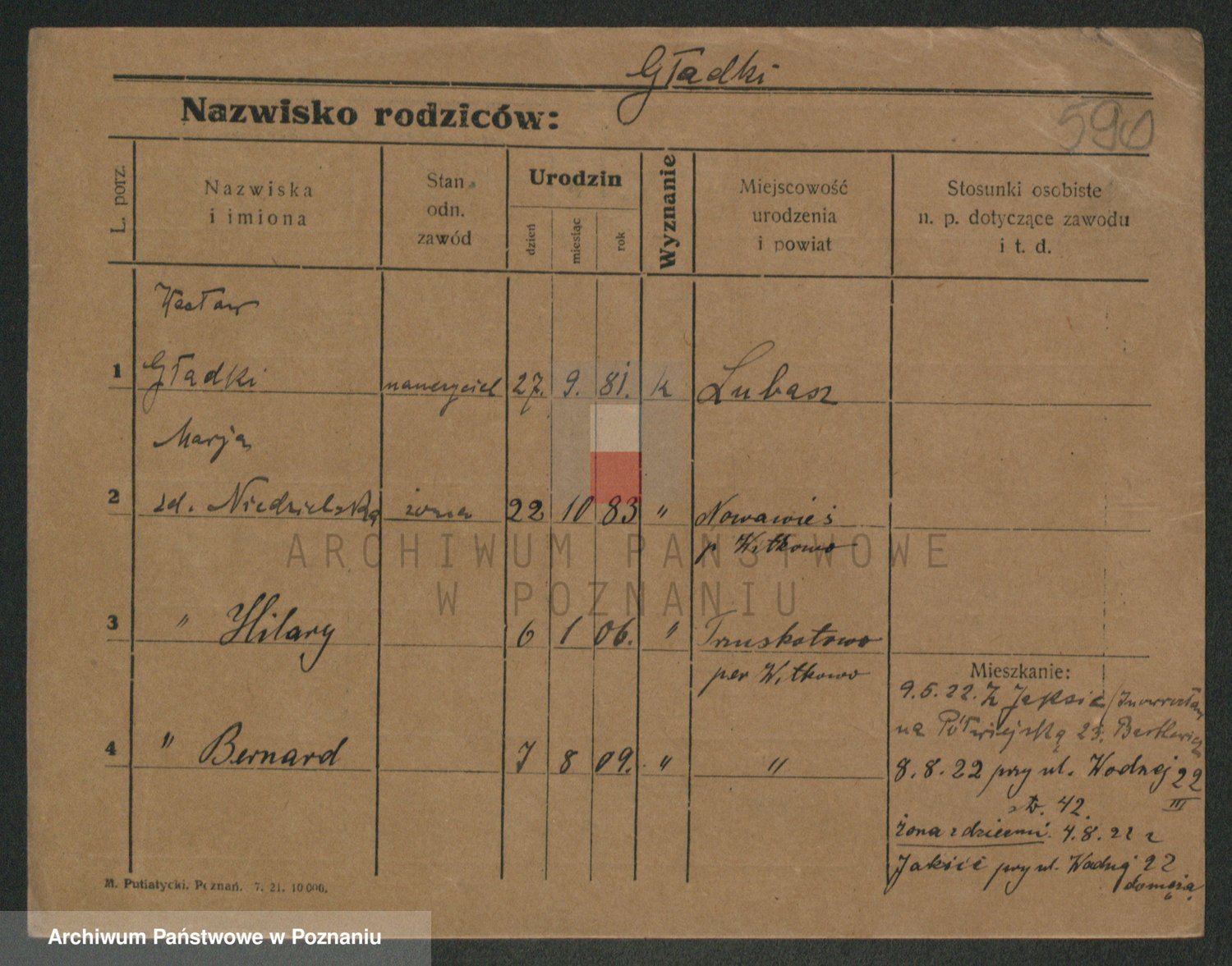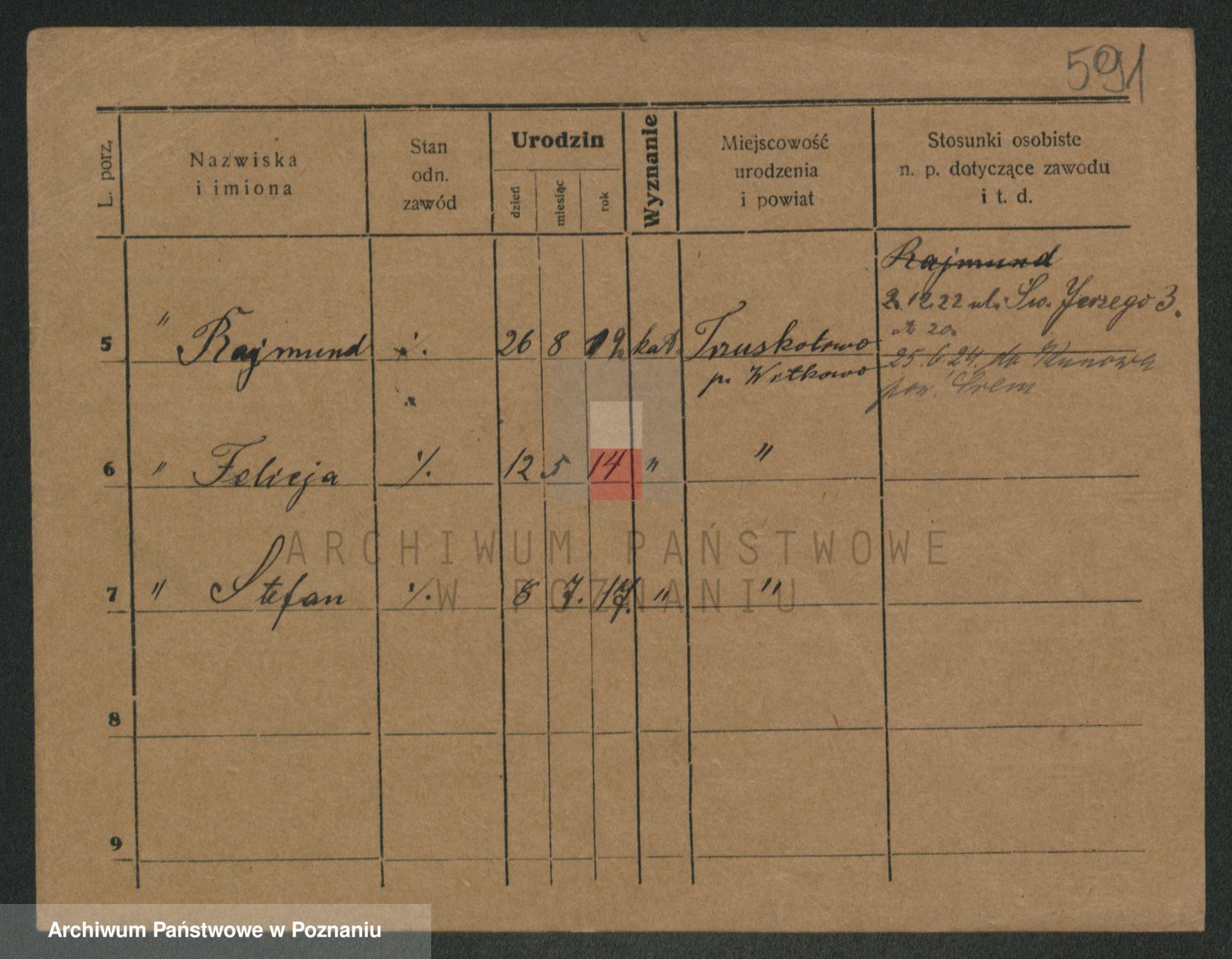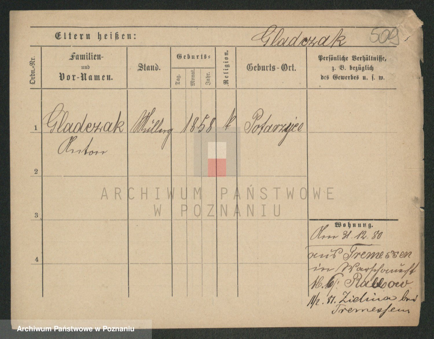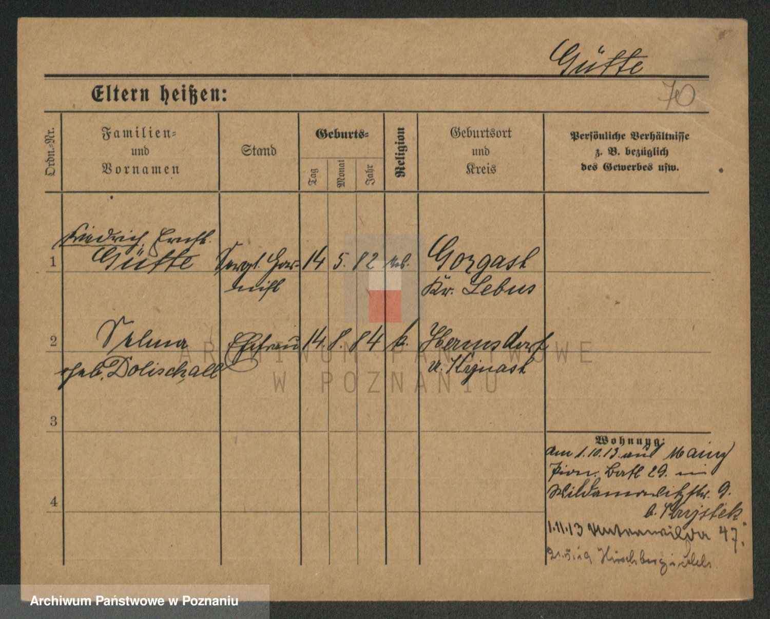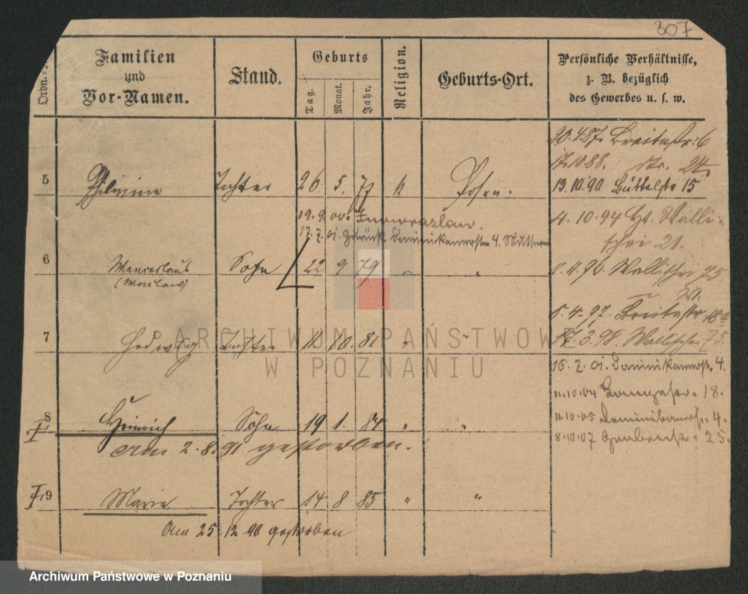 Podgląd karty osobowej dostępny jest po kliknięciu na nazwisko lub ikonkę karty. Można dokonywać powiększenia (ikony na górze) lub przechodzić między kolejnymi skanami (strzałki po bokach).