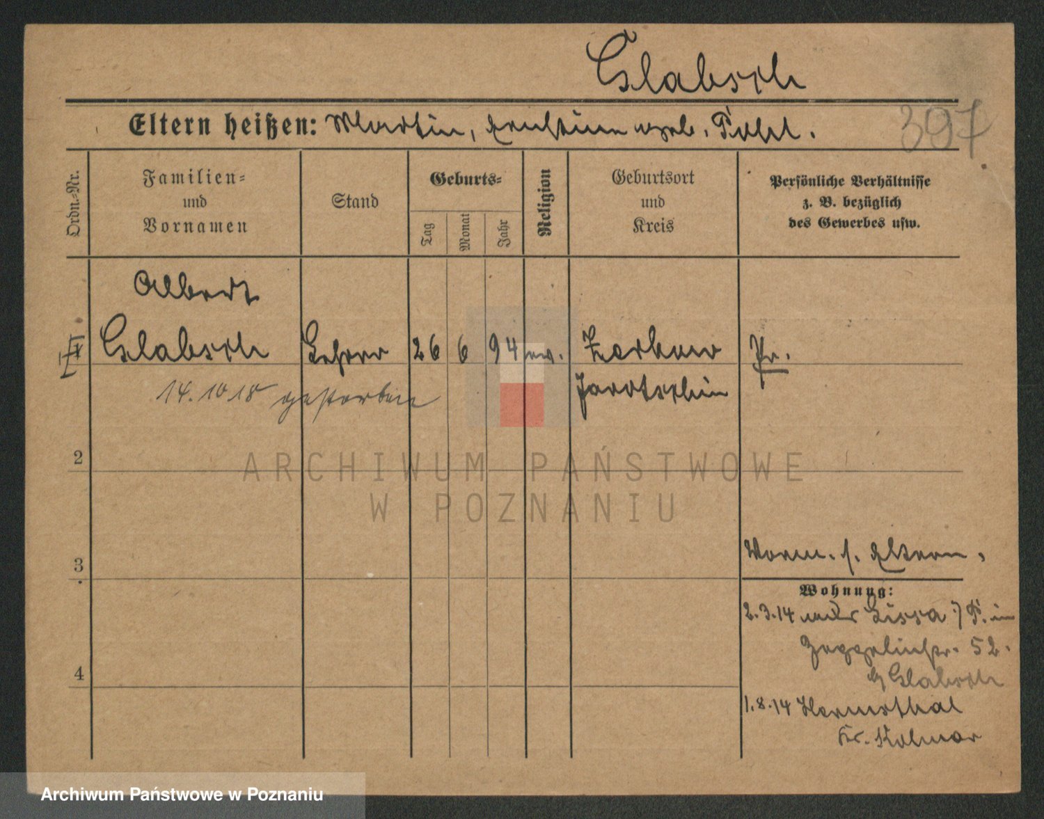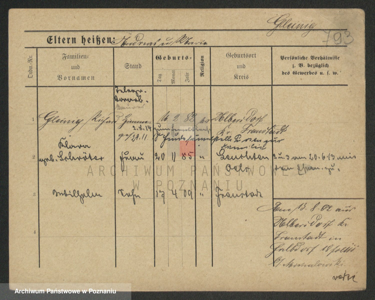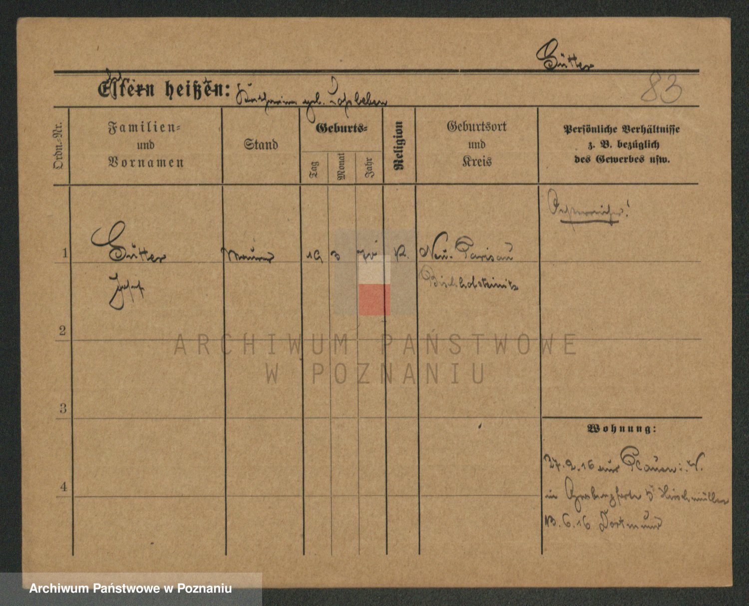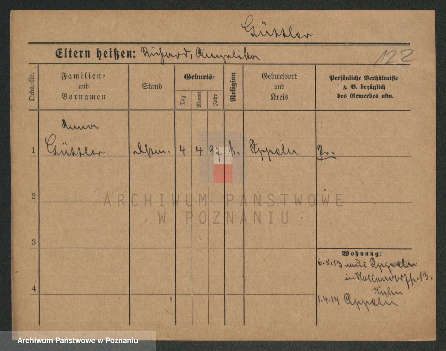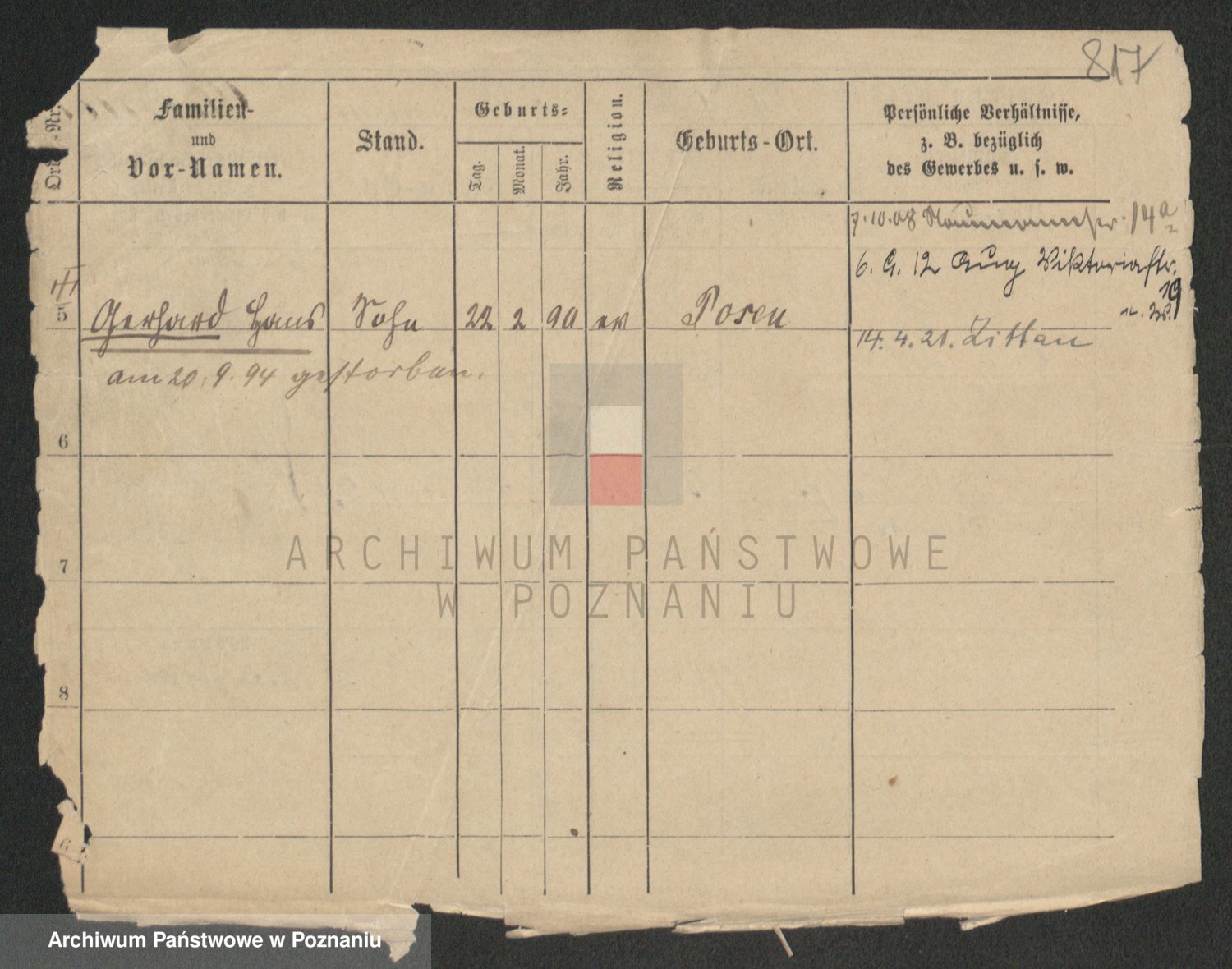 Podgląd karty osobowej dostępny jest po kliknięciu na nazwisko lub ikonkę karty. Można dokonywać powiększenia (ikony na górze) lub przechodzić między kolejnymi skanami (strzałki po bokach).