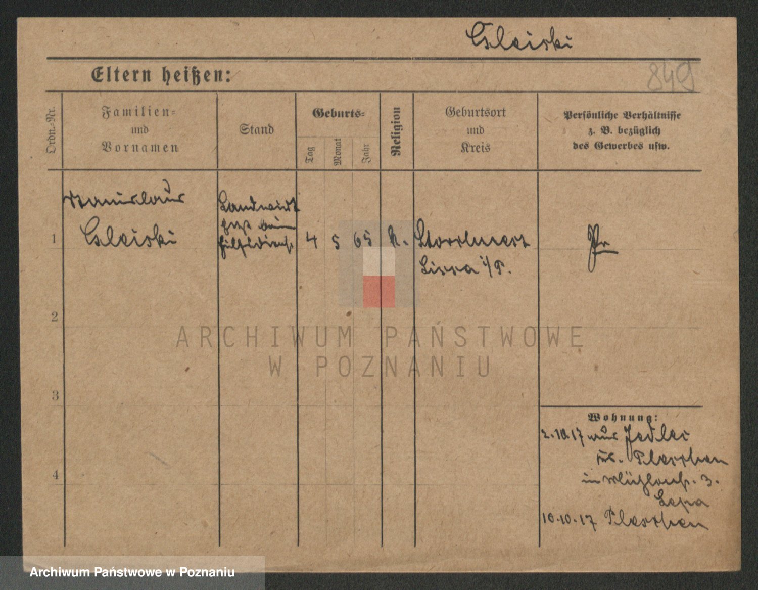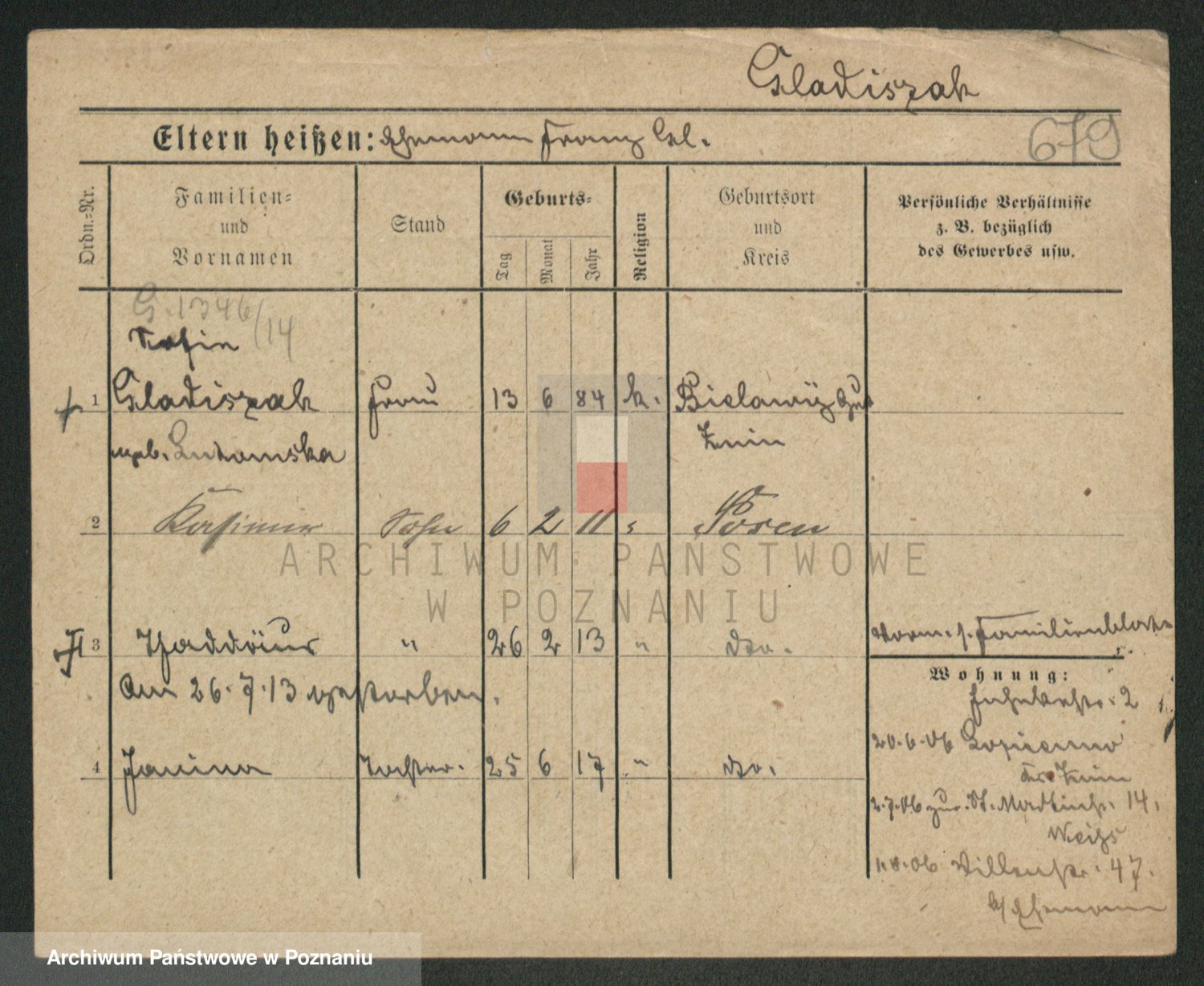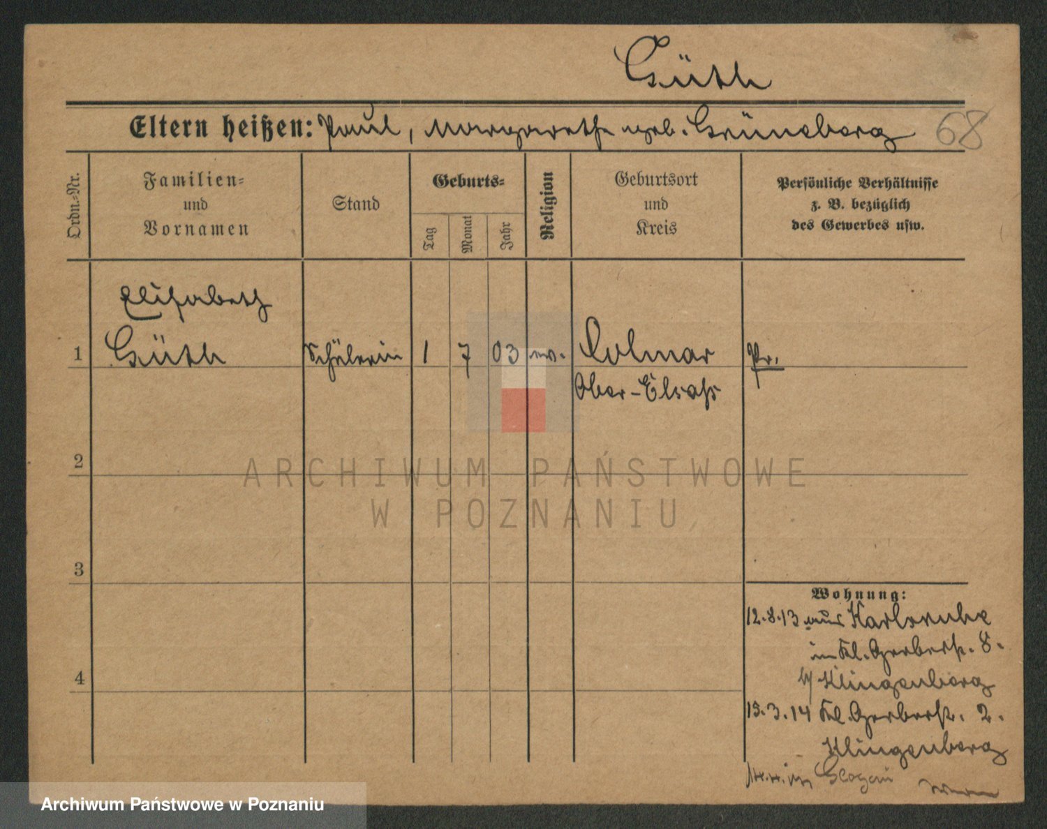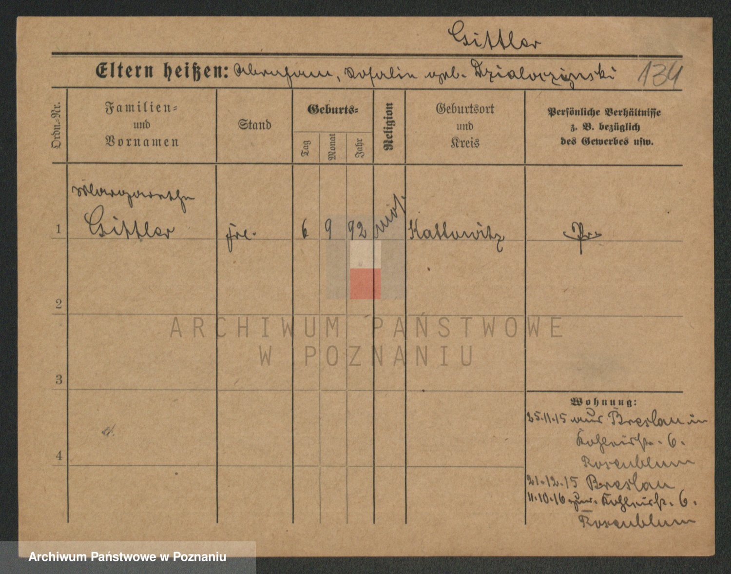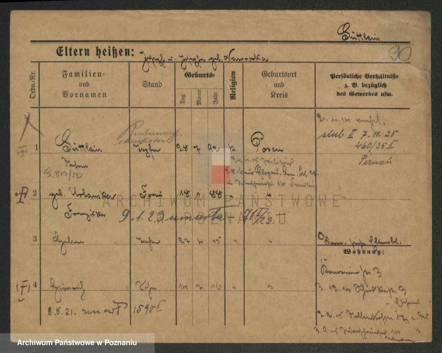 Podgląd karty osobowej dostępny jest po kliknięciu na nazwisko lub ikonkę karty. Można dokonywać powiększenia (ikony na górze) lub przechodzić między kolejnymi skanami (strzałki po bokach).