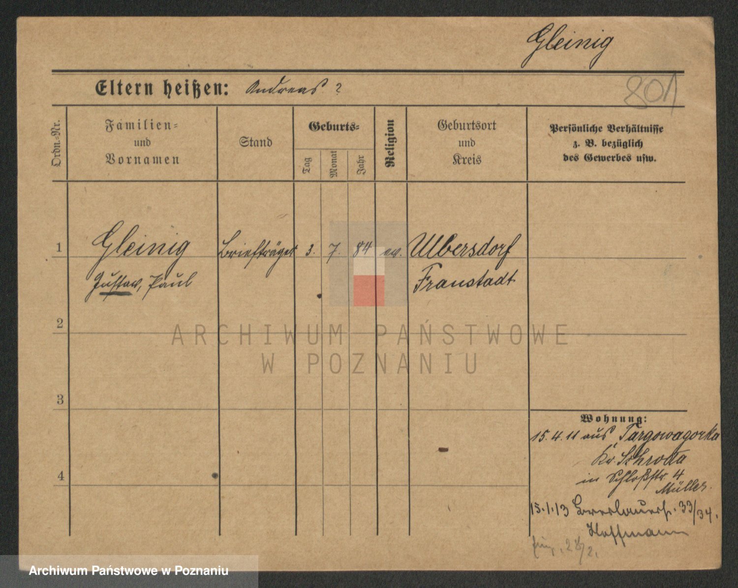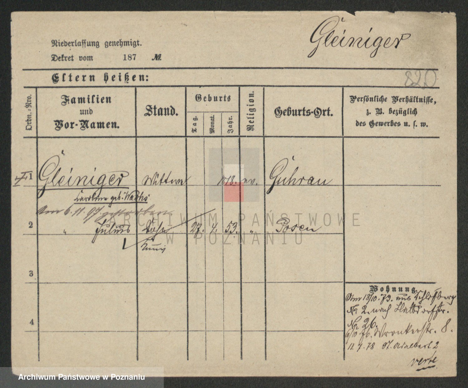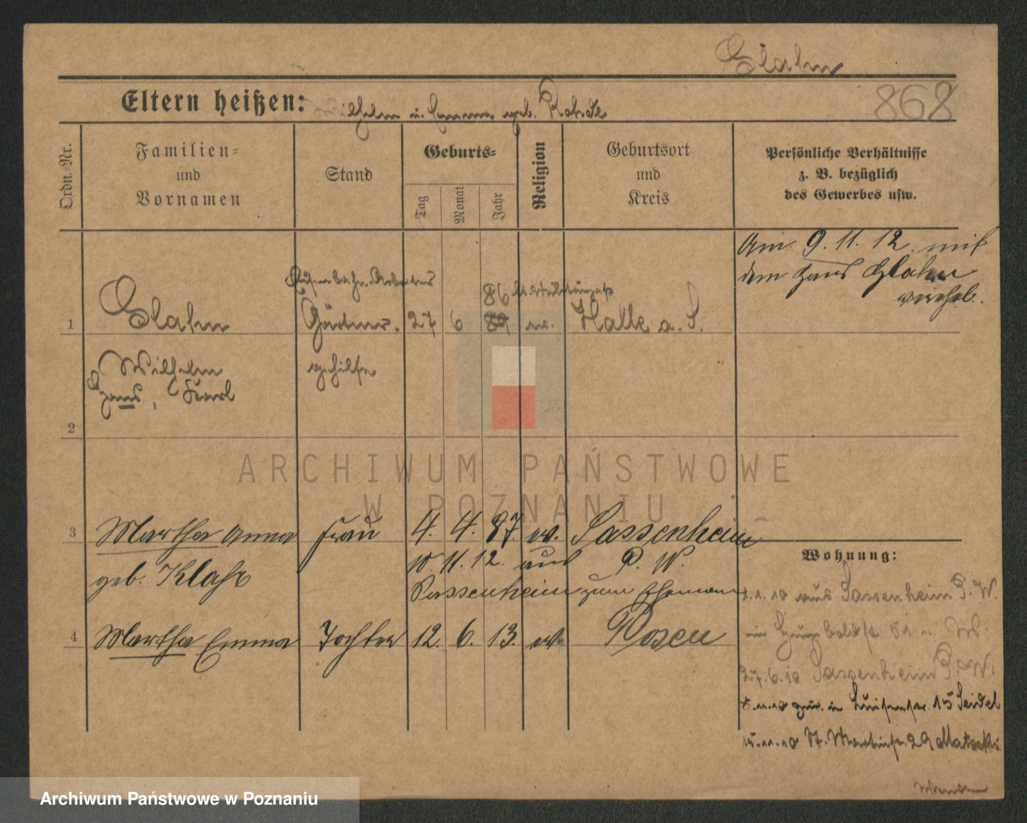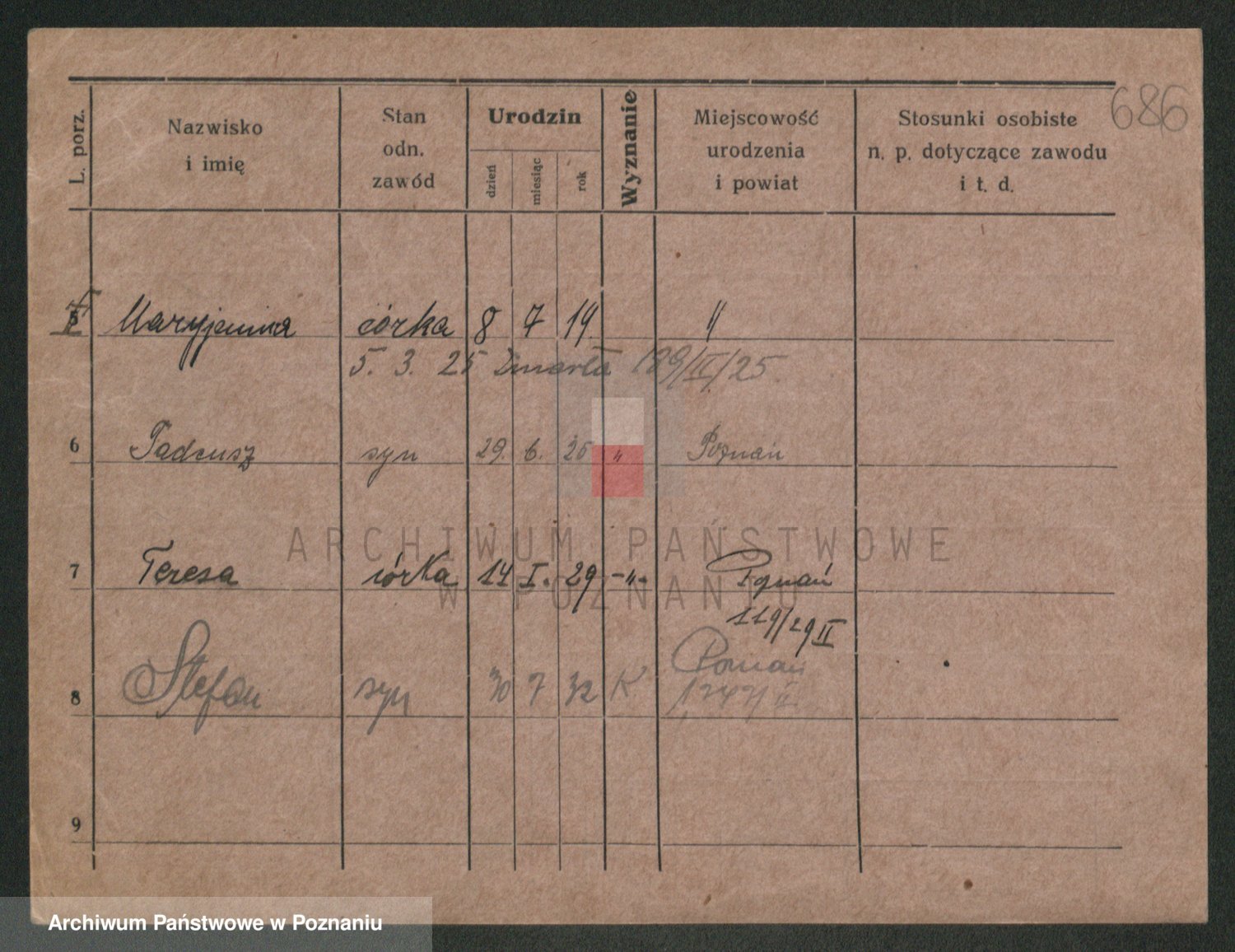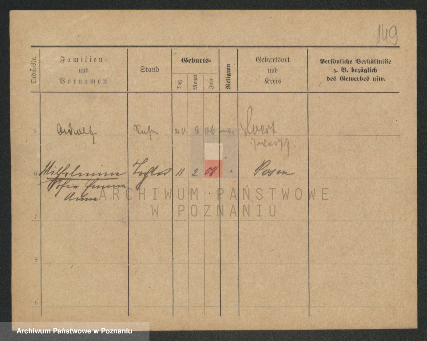 Podgląd karty osobowej dostępny jest po kliknięciu na nazwisko lub ikonkę karty. Można dokonywać powiększenia (ikony na górze) lub przechodzić między kolejnymi skanami (strzałki po bokach).