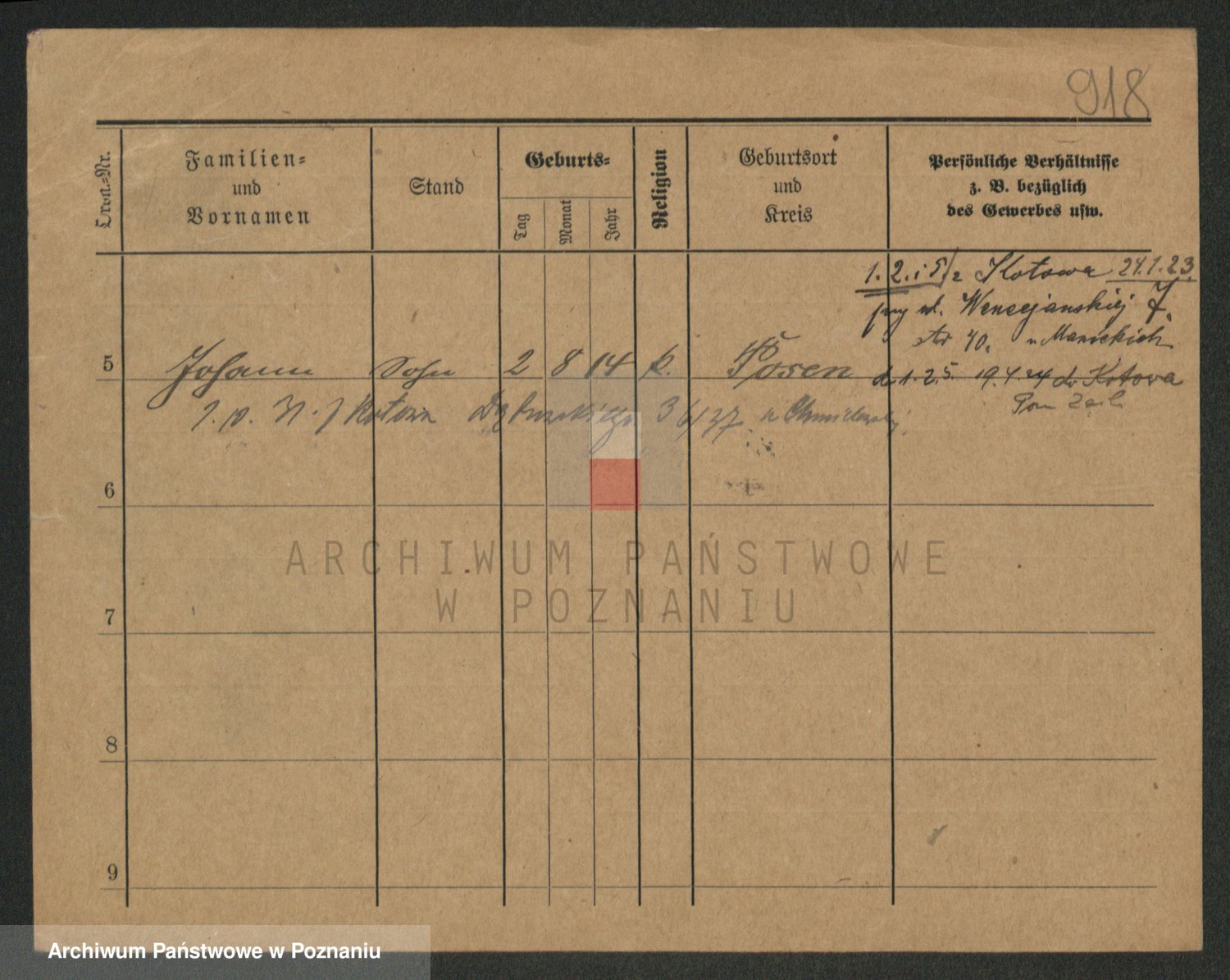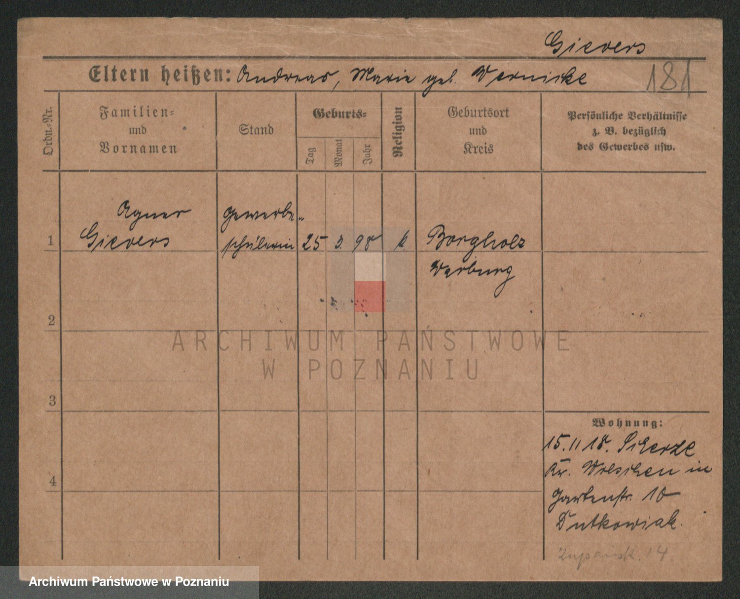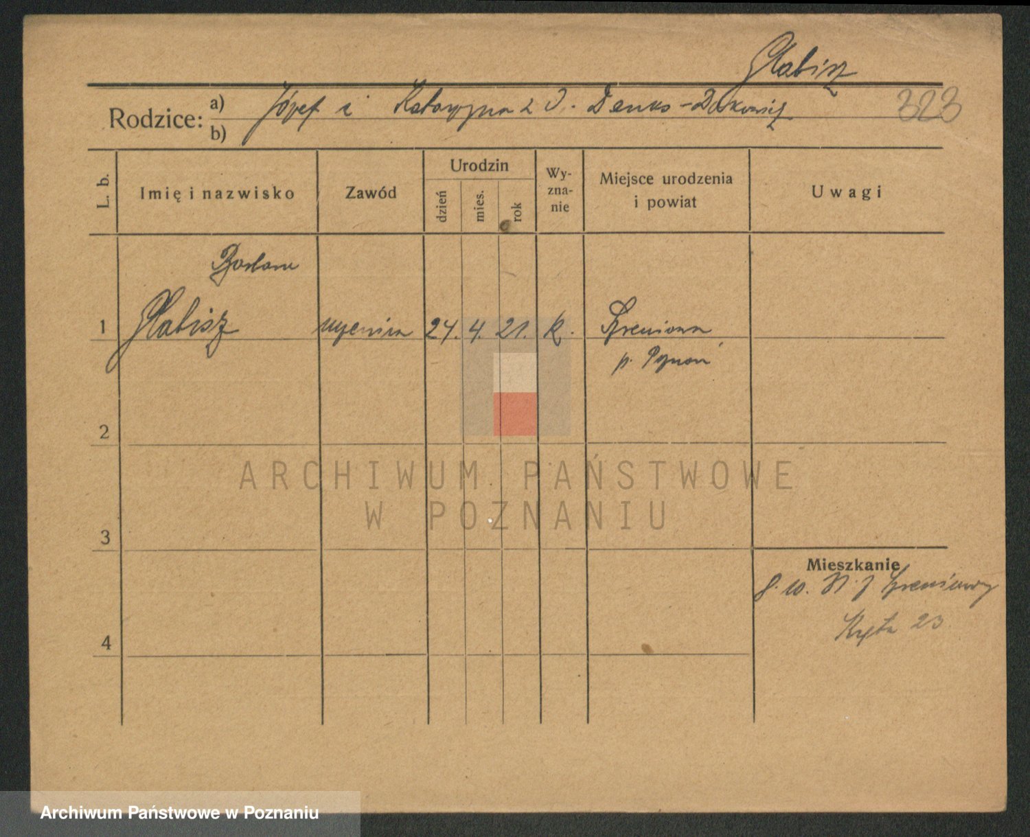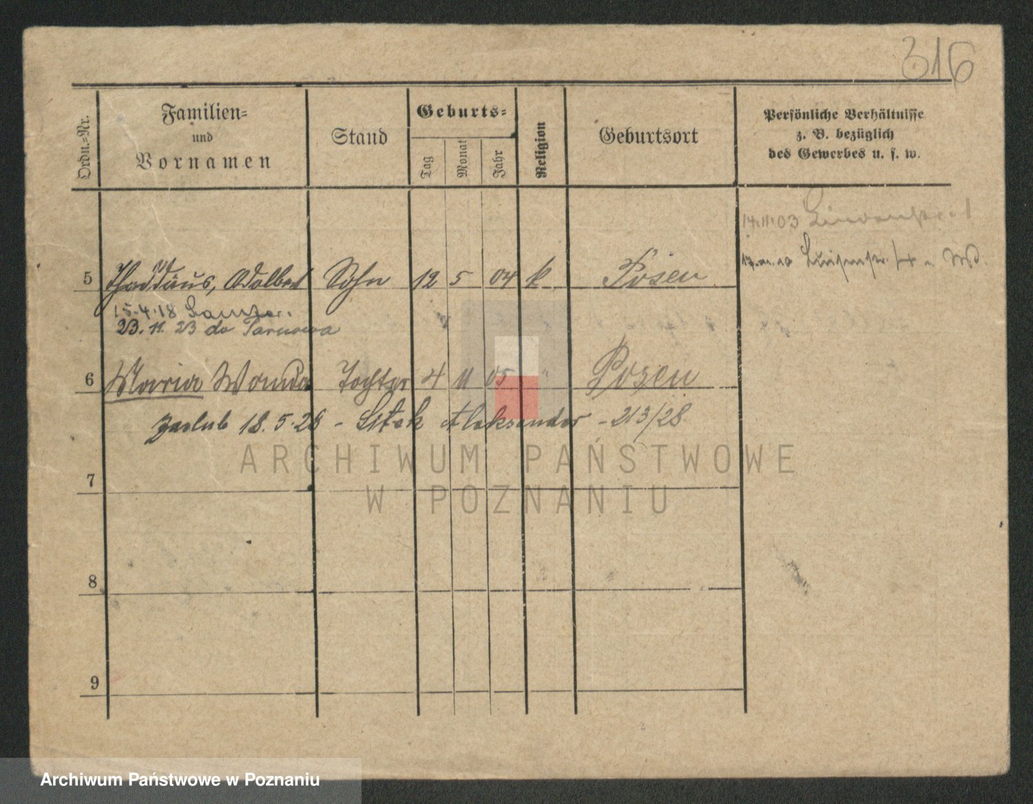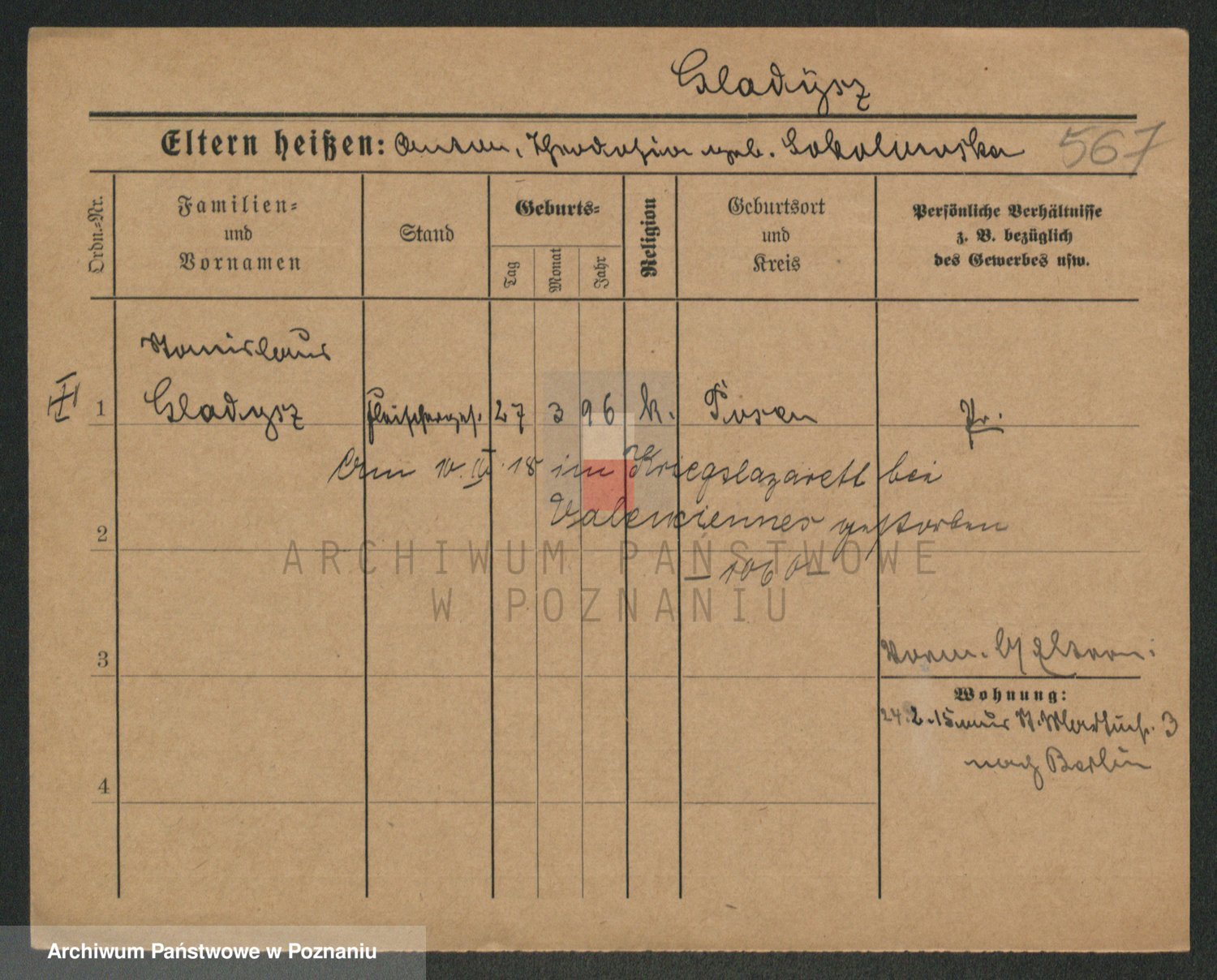 Podgląd karty osobowej dostępny jest po kliknięciu na nazwisko lub ikonkę karty. Można dokonywać powiększenia (ikony na górze) lub przechodzić między kolejnymi skanami (strzałki po bokach).