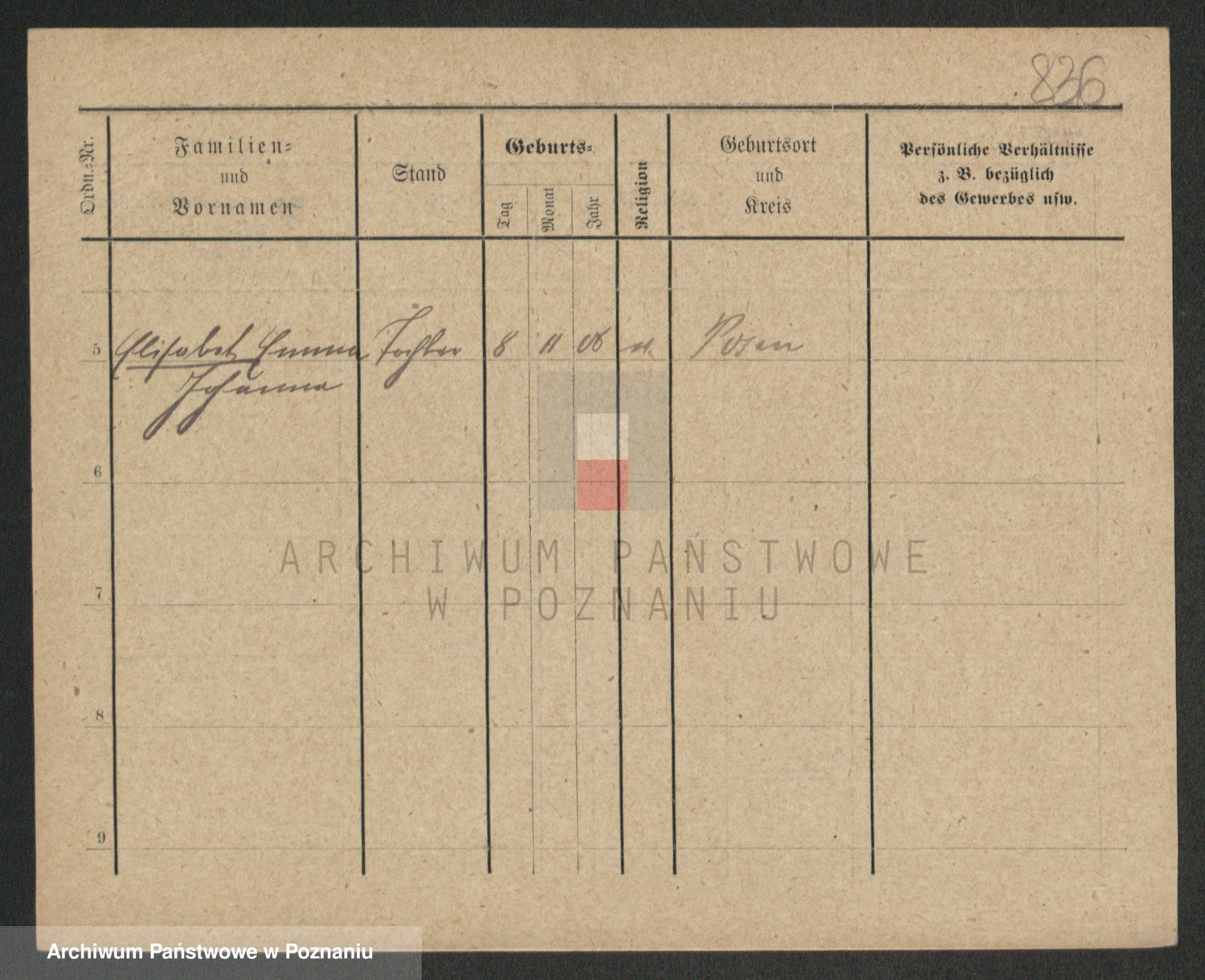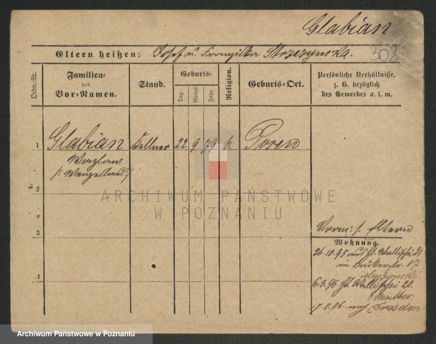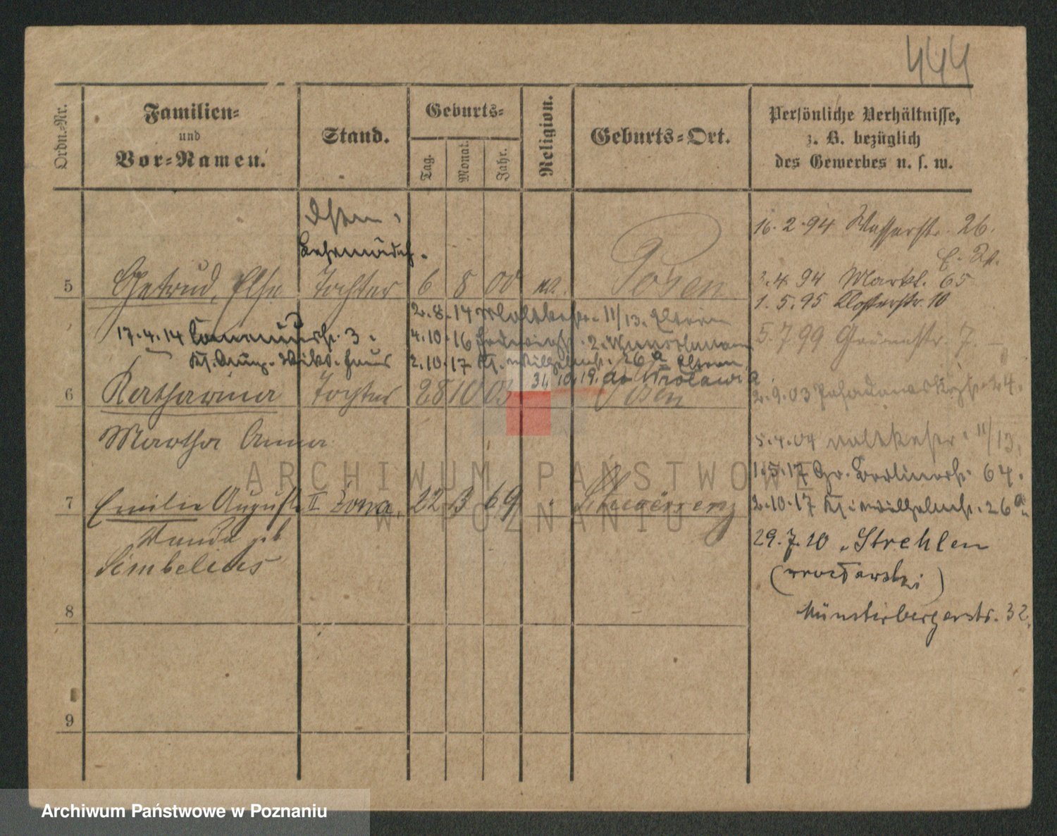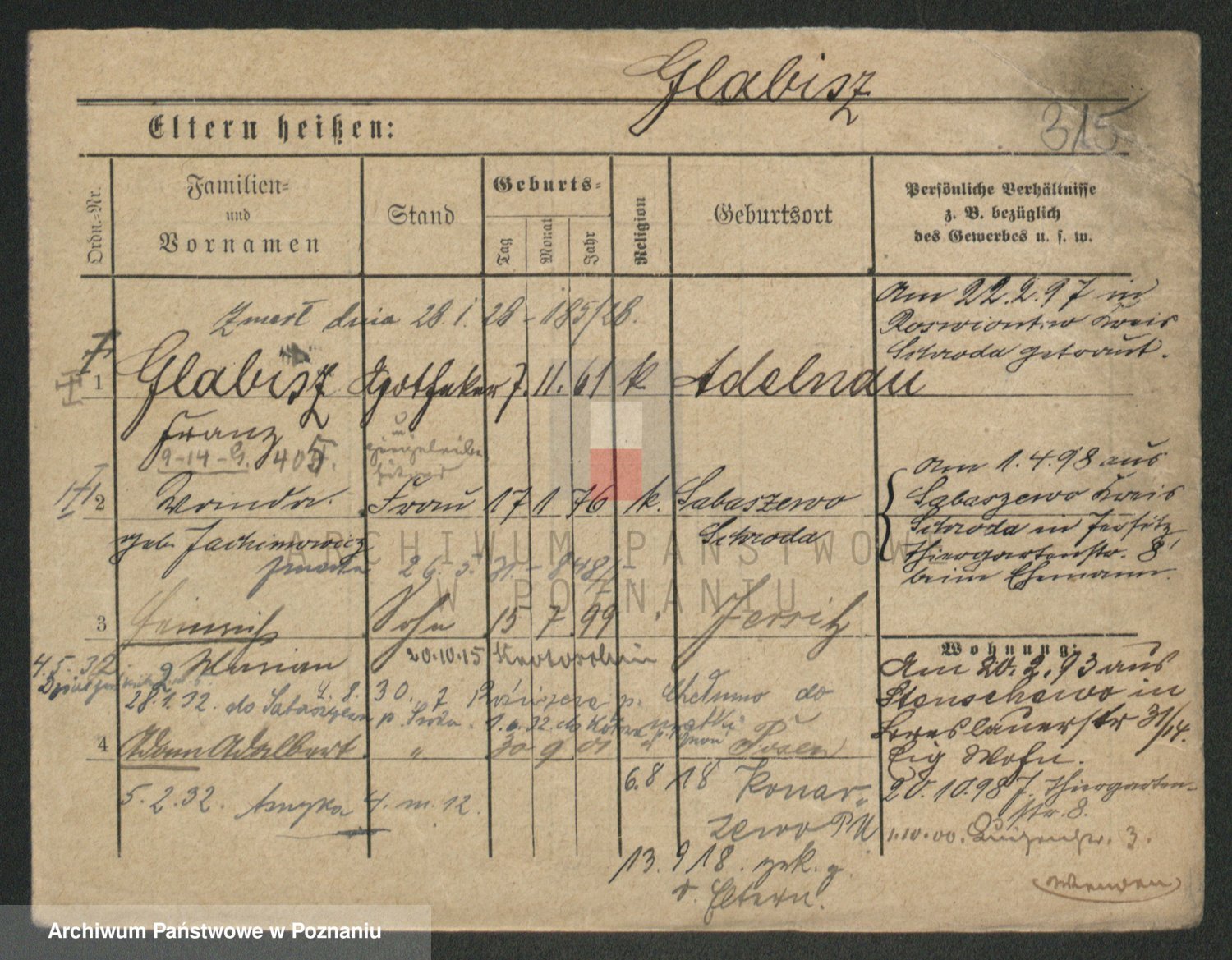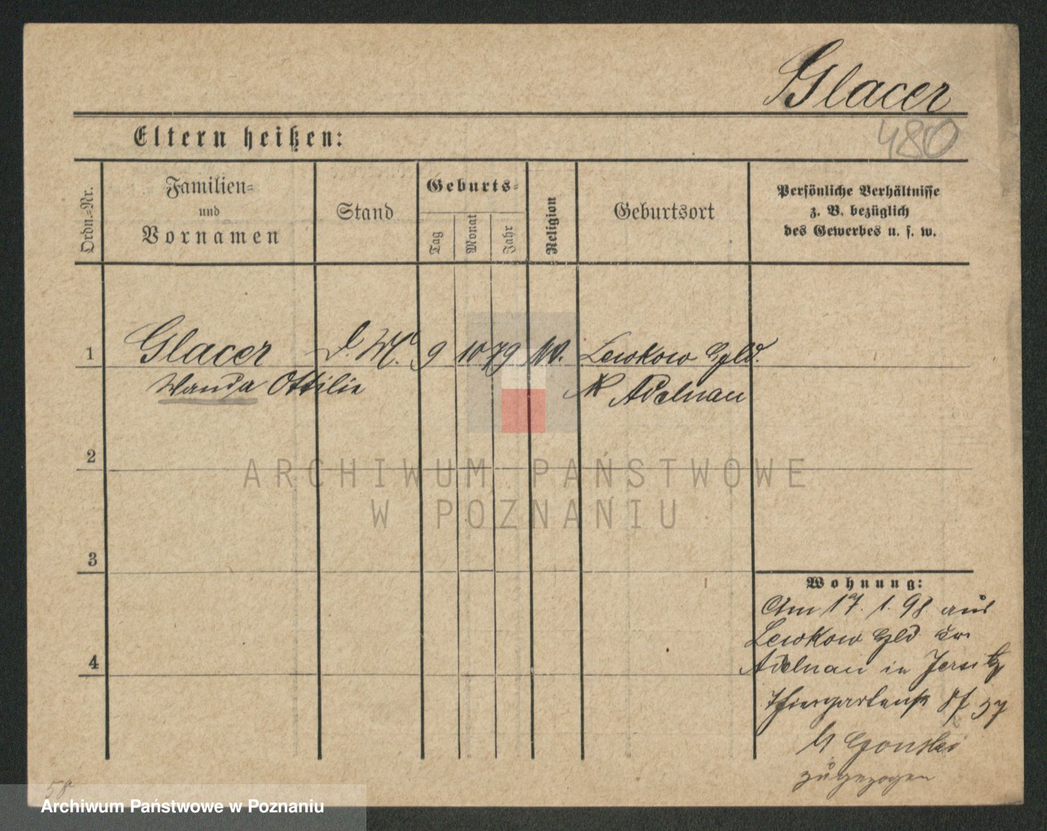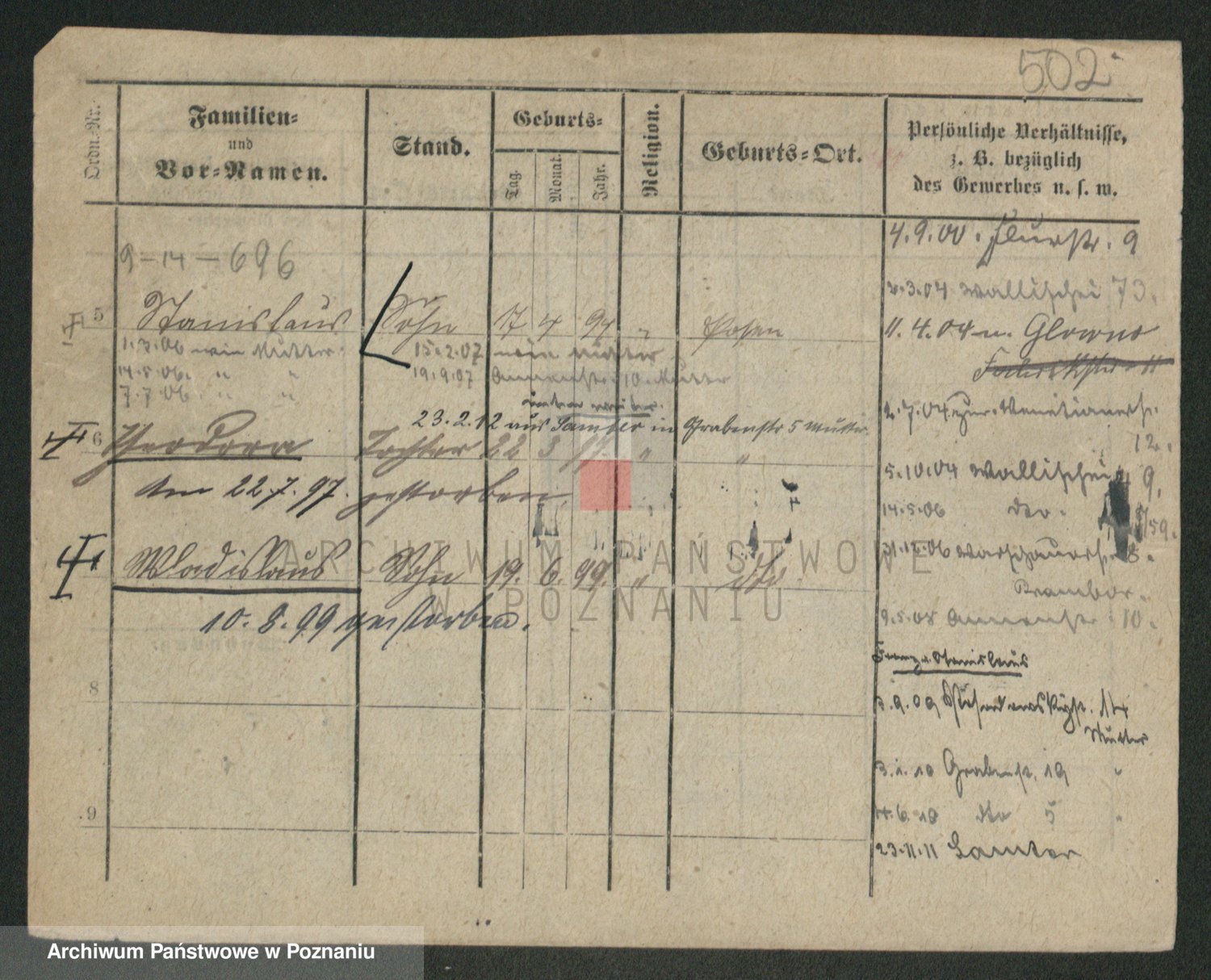 Podgląd karty osobowej dostępny jest po kliknięciu na nazwisko lub ikonkę karty. Można dokonywać powiększenia (ikony na górze) lub przechodzić między kolejnymi skanami (strzałki po bokach).
