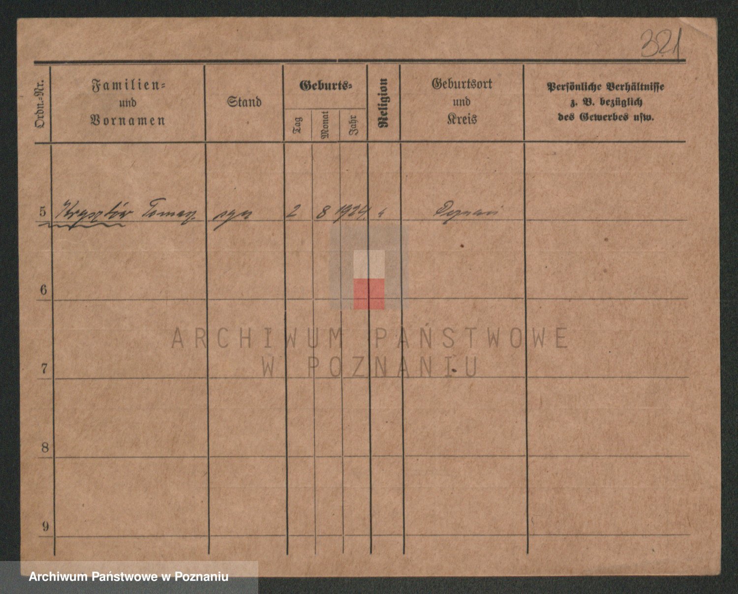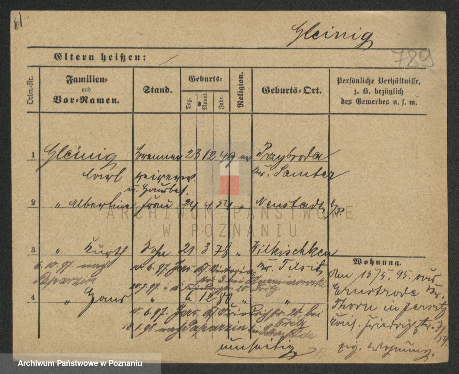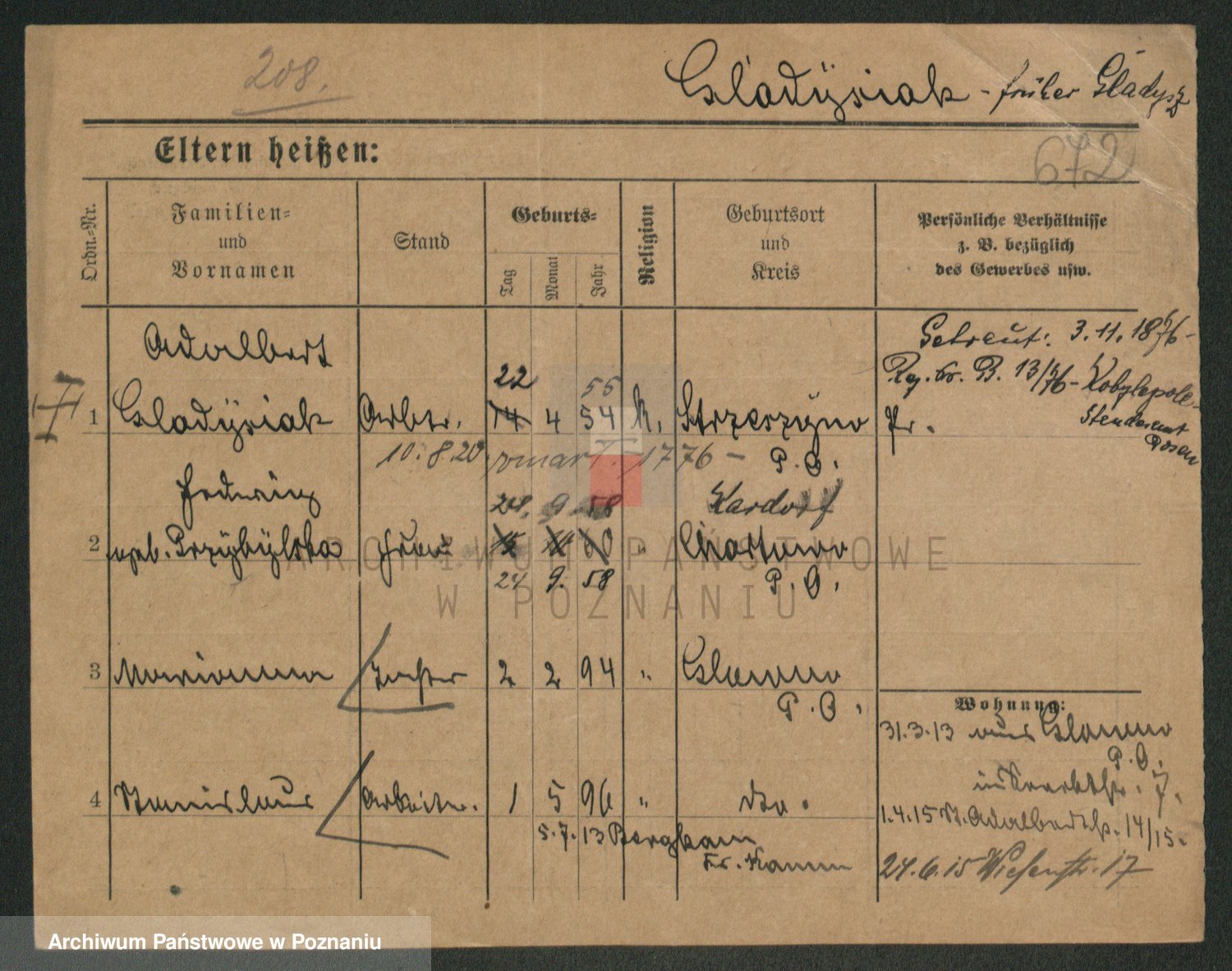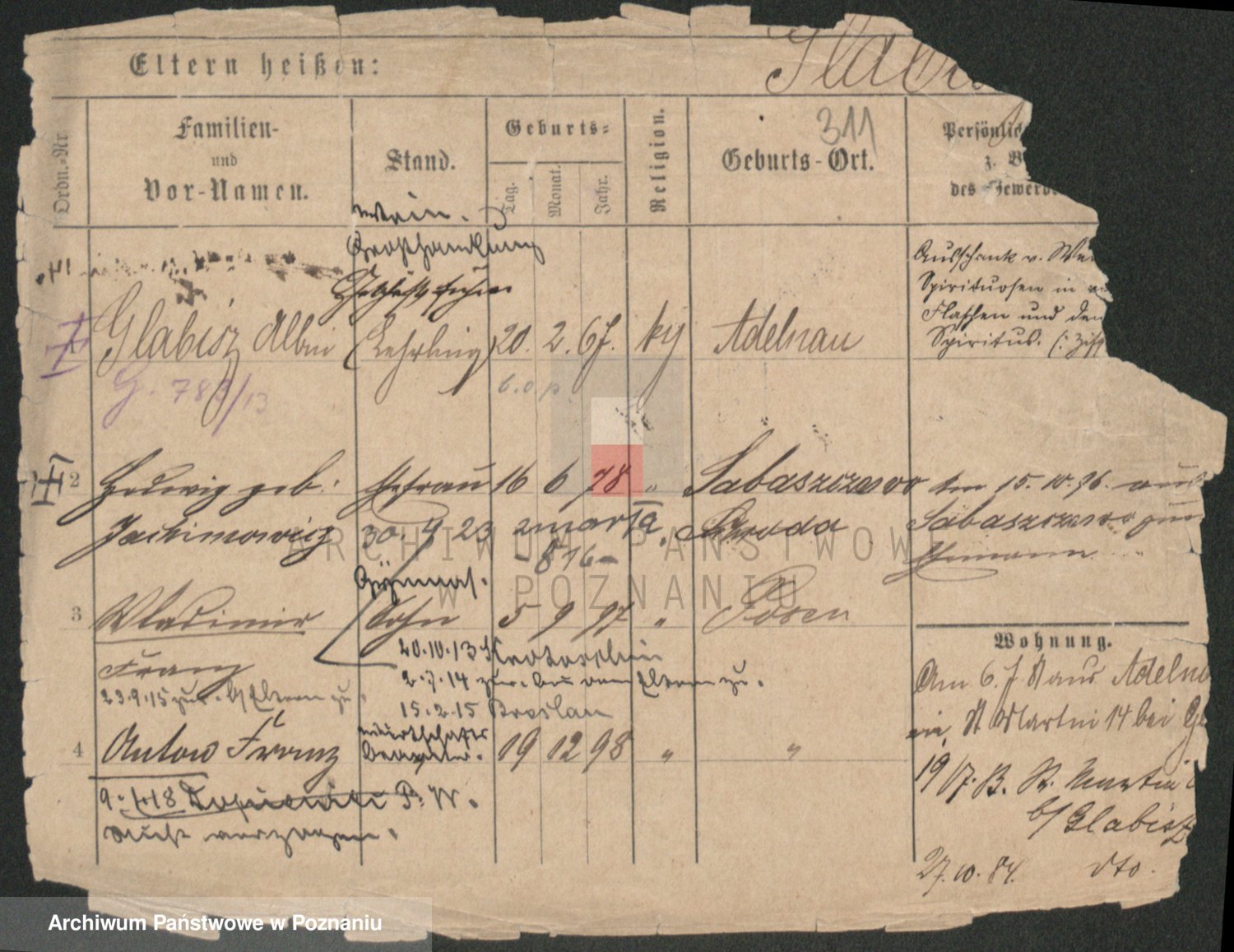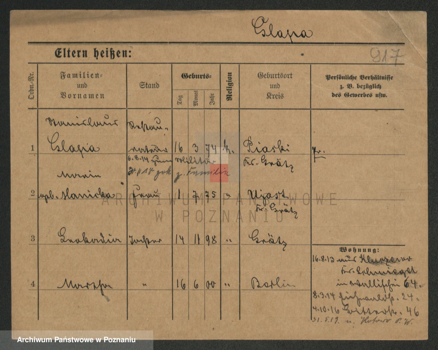 Podgląd karty osobowej dostępny jest po kliknięciu na nazwisko lub ikonkę karty. Można dokonywać powiększenia (ikony na górze) lub przechodzić między kolejnymi skanami (strzałki po bokach).