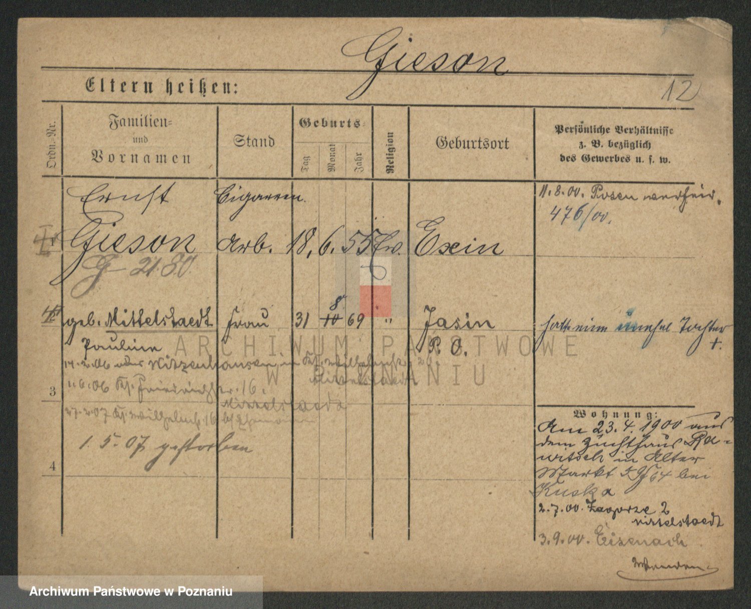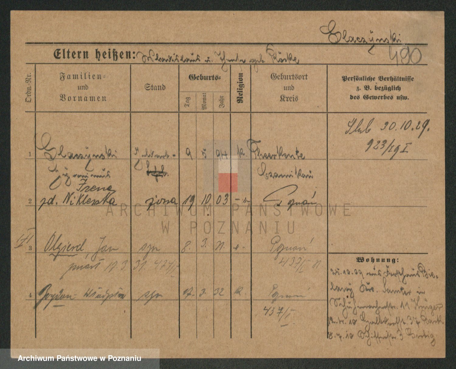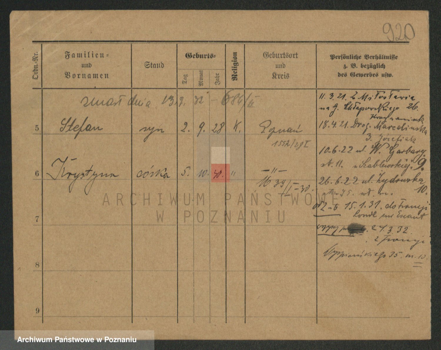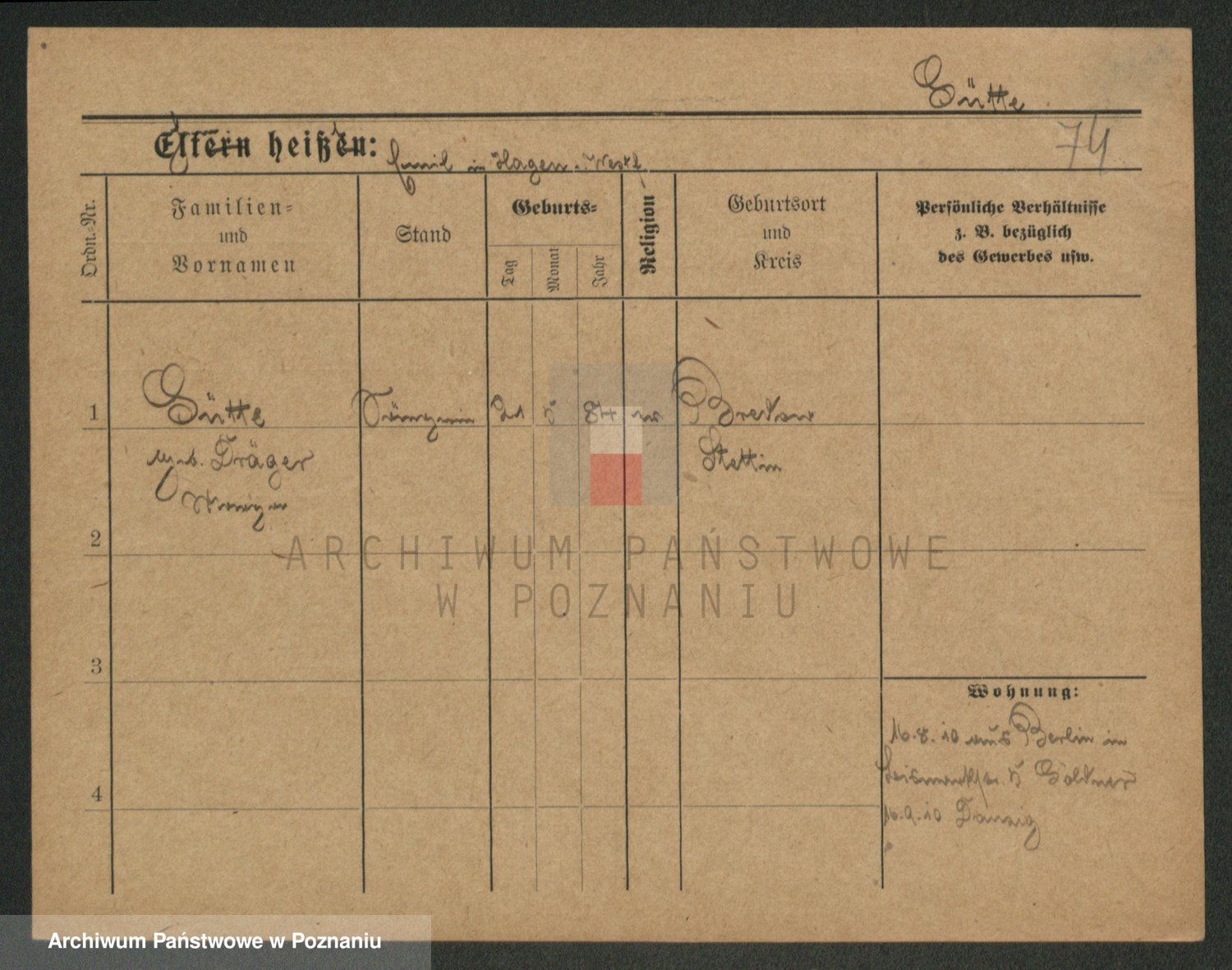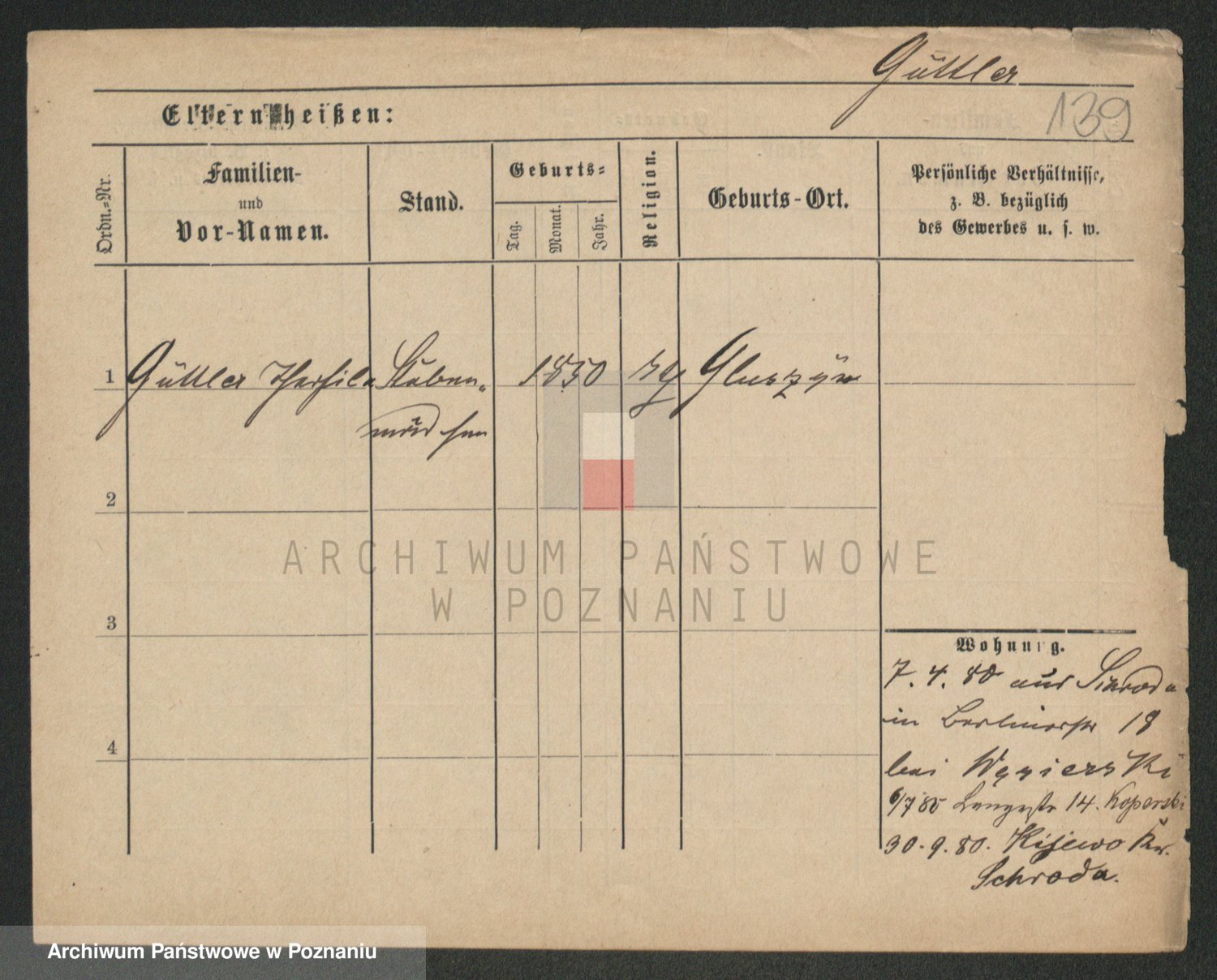 Podgląd karty osobowej dostępny jest po kliknięciu na nazwisko lub ikonkę karty. Można dokonywać powiększenia (ikony na górze) lub przechodzić między kolejnymi skanami (strzałki po bokach).