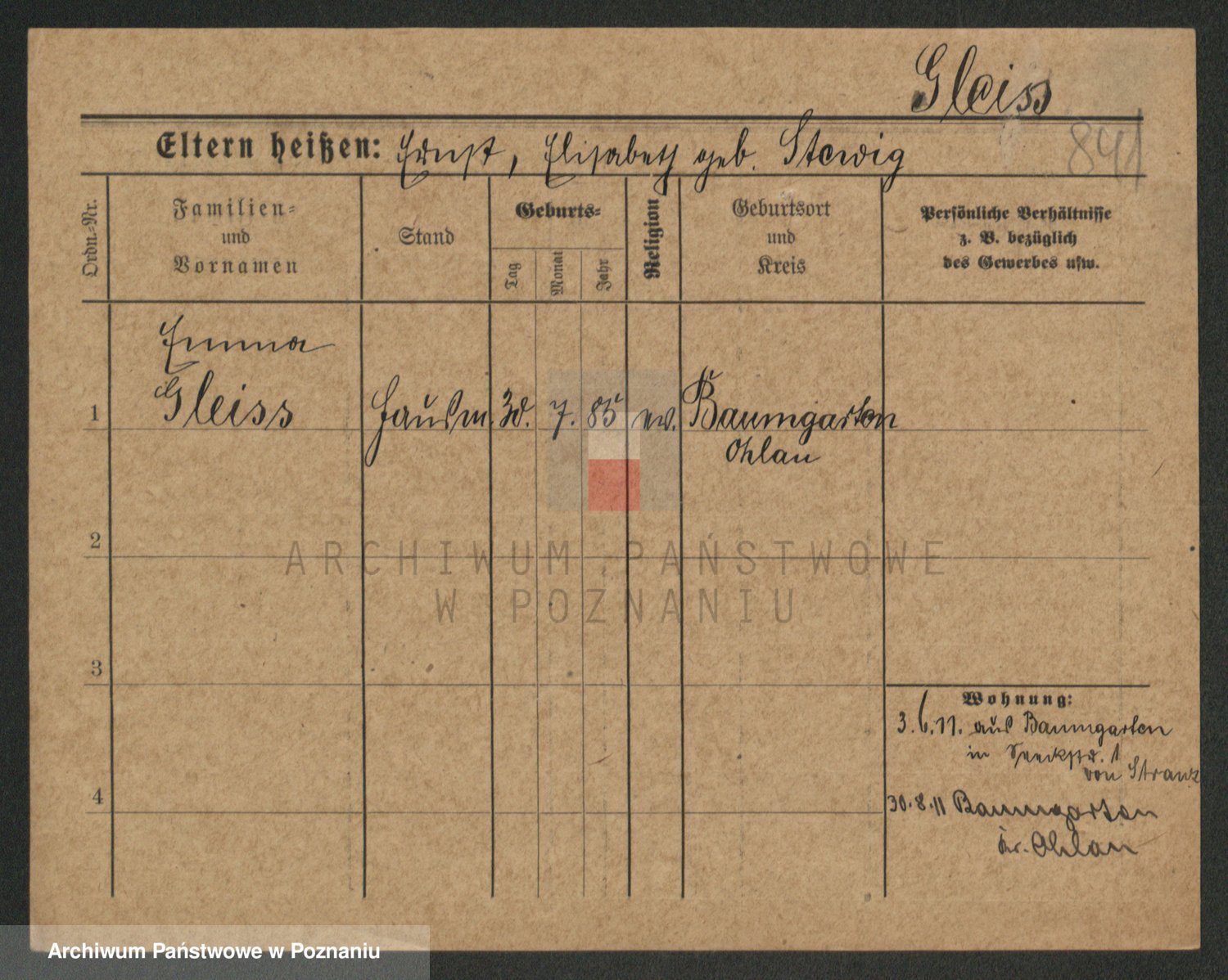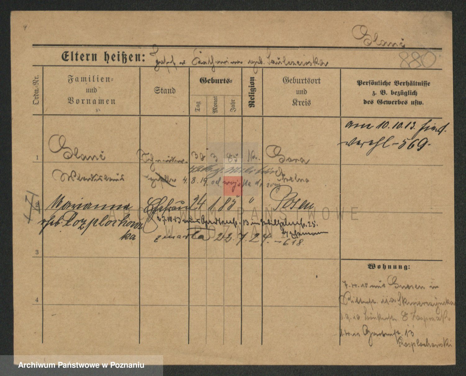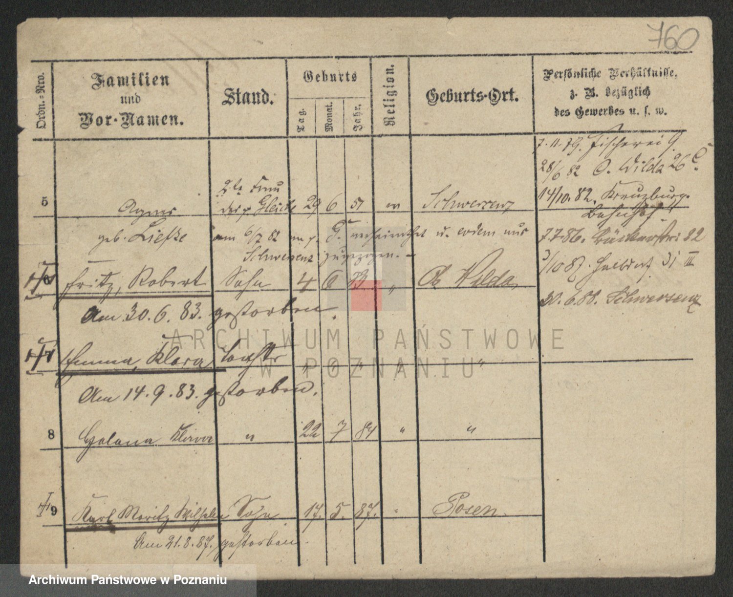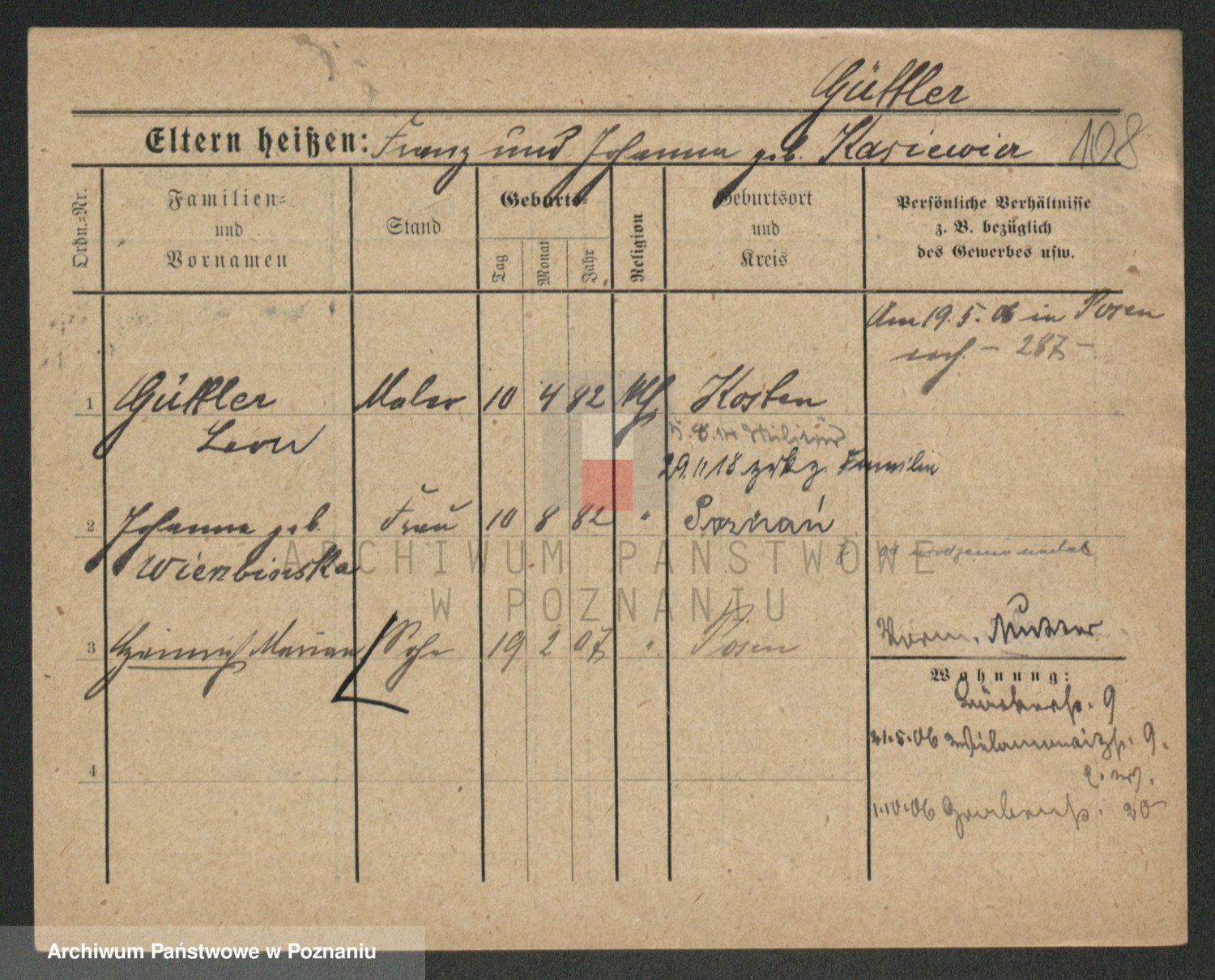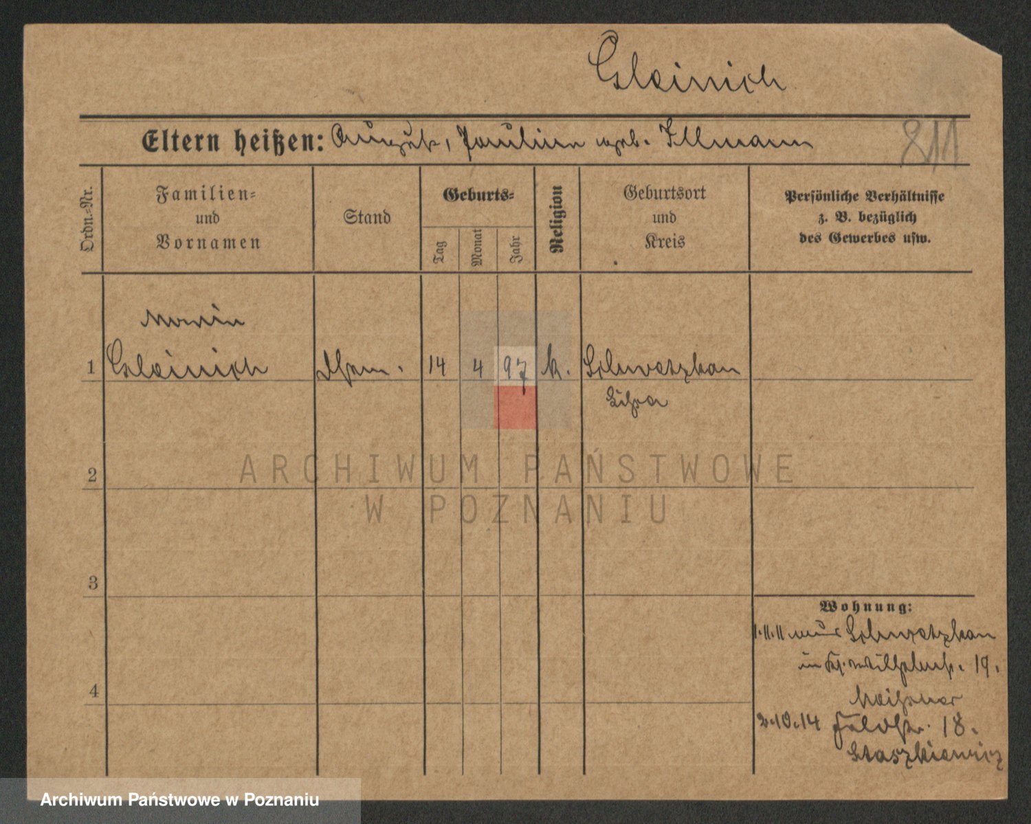 Podgląd karty osobowej dostępny jest po kliknięciu na nazwisko lub ikonkę karty. Można dokonywać powiększenia (ikony na górze) lub przechodzić między kolejnymi skanami (strzałki po bokach).