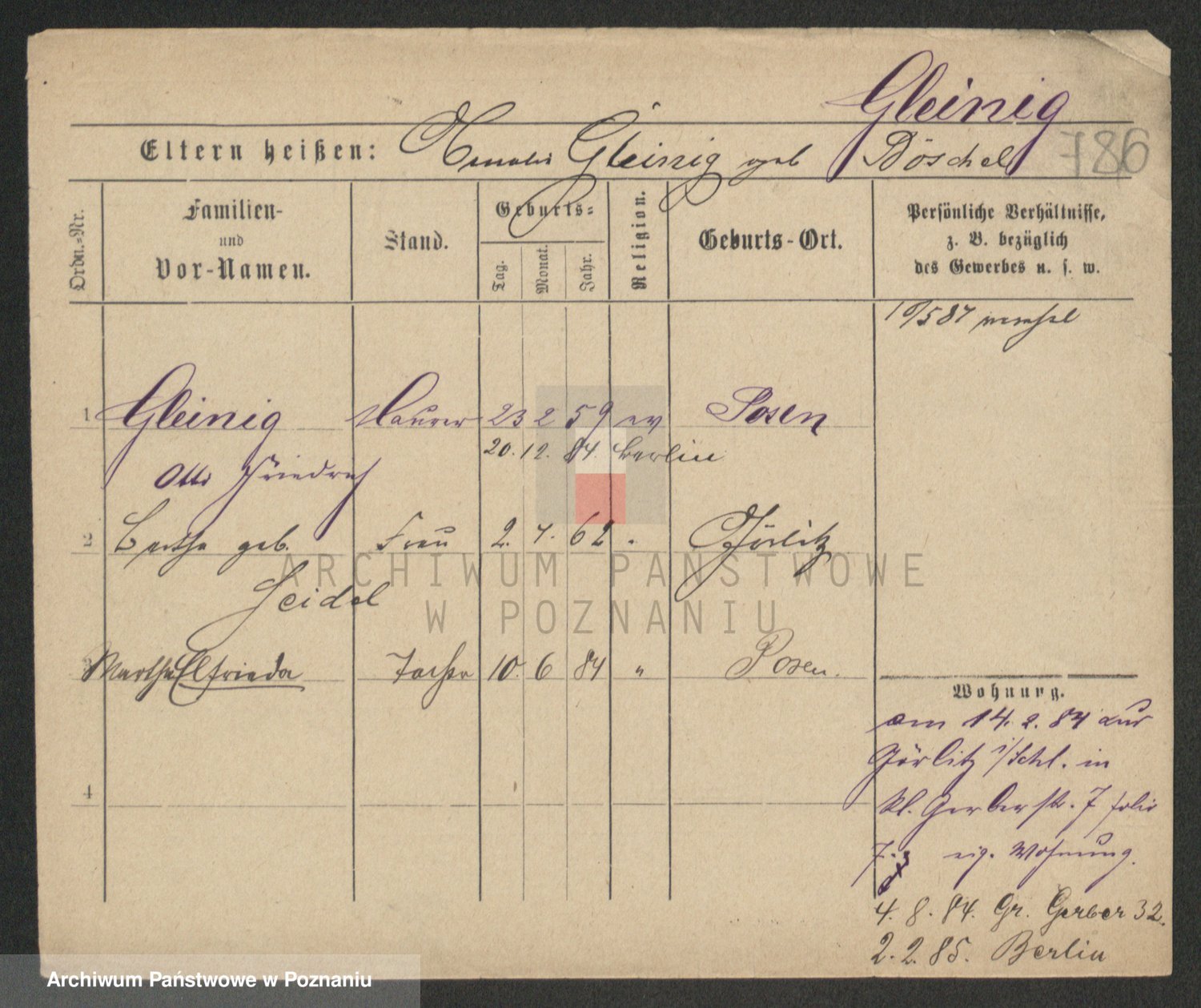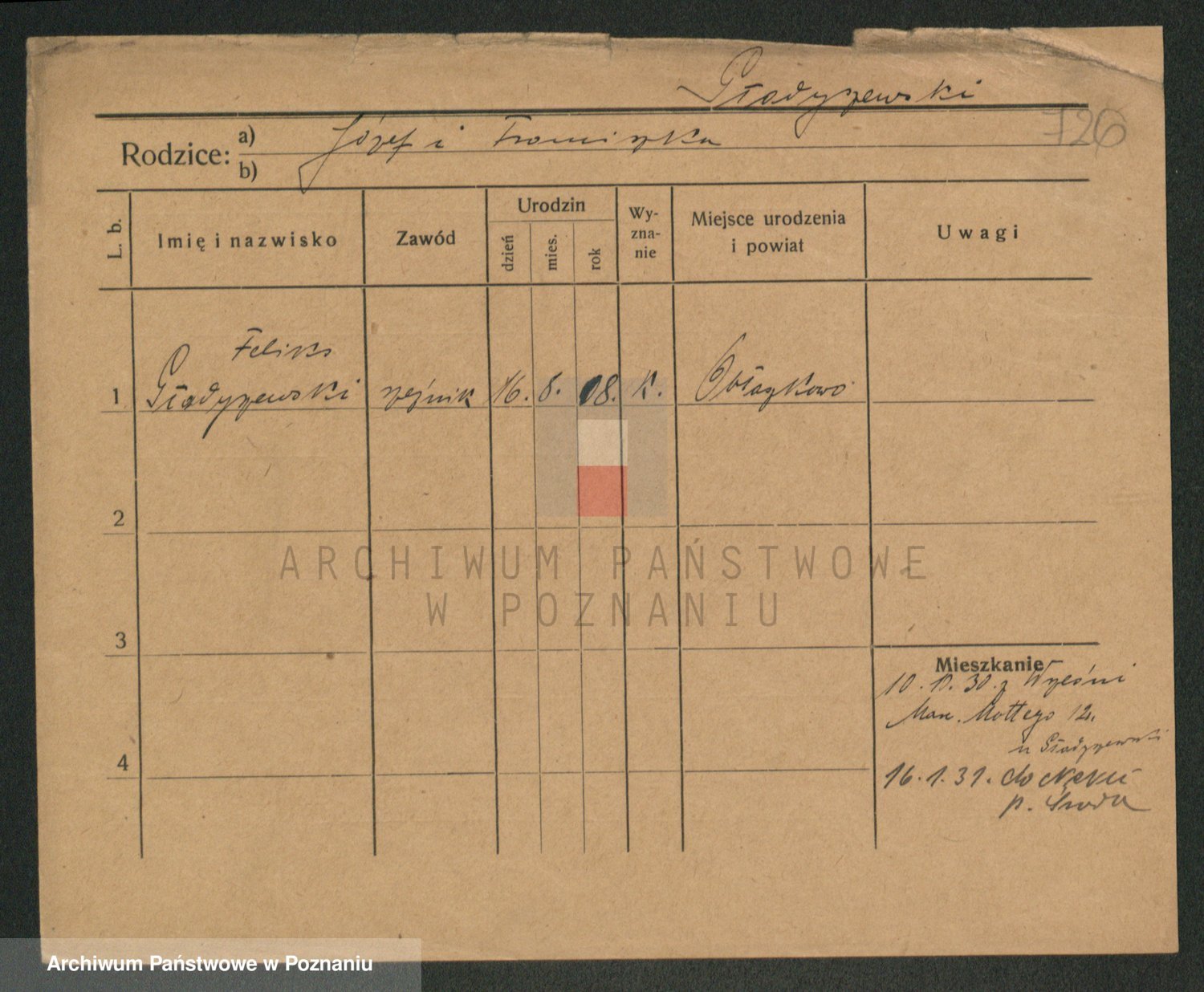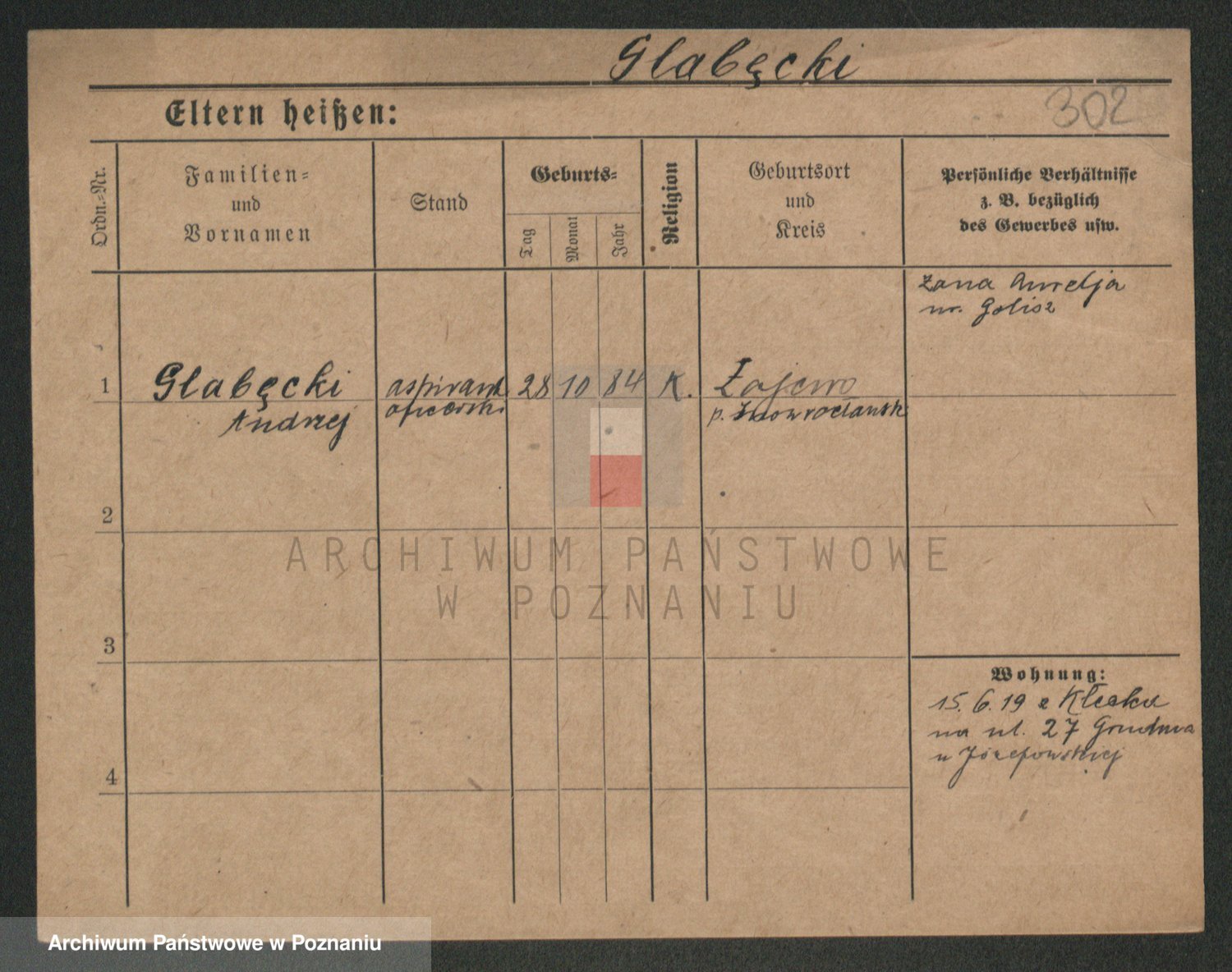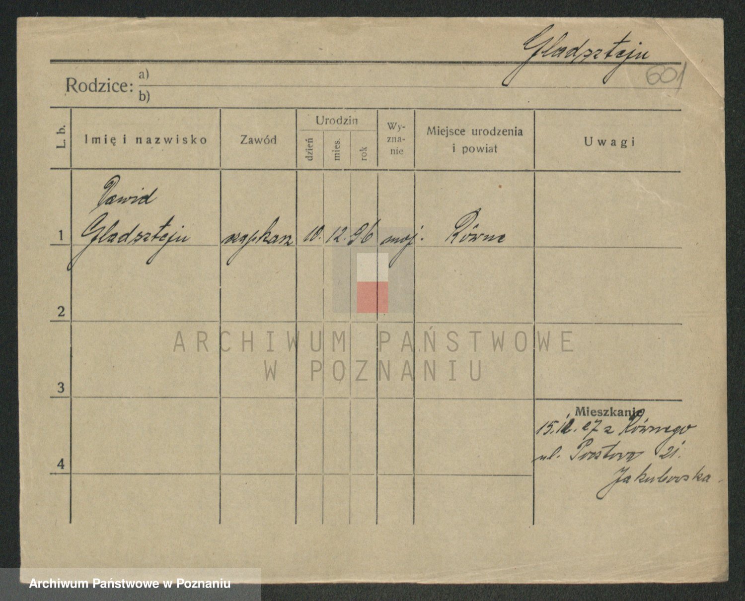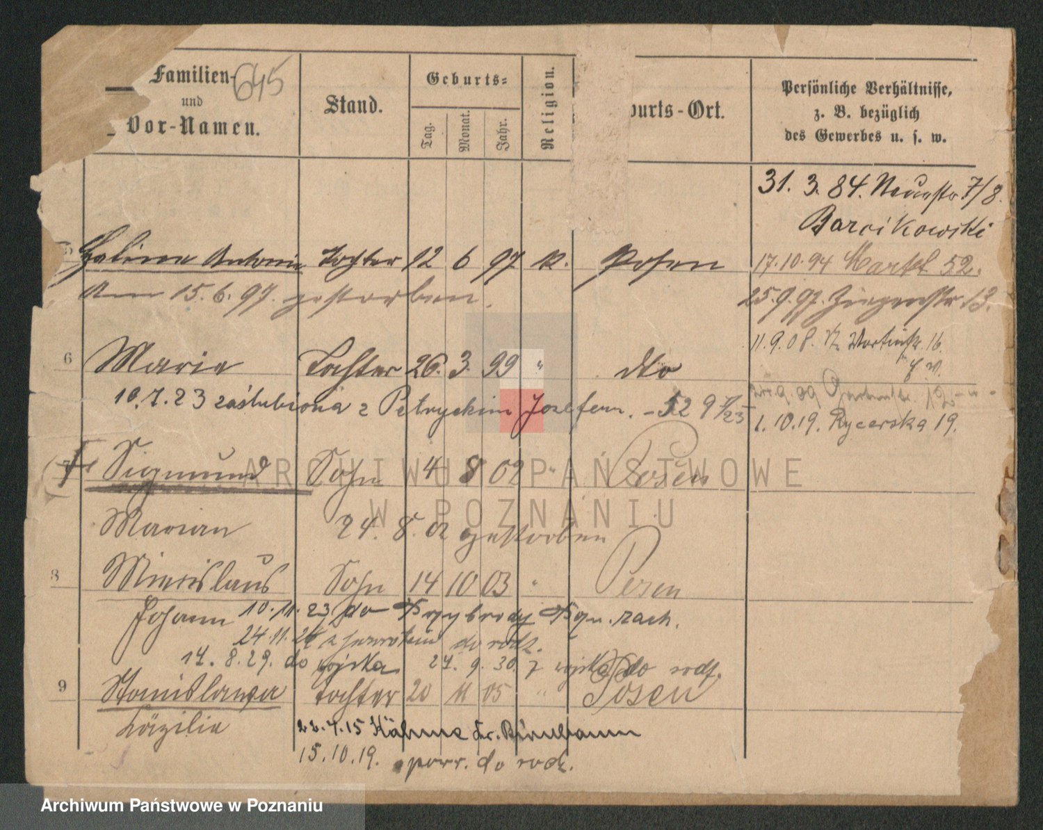 Podgląd karty osobowej dostępny jest po kliknięciu na nazwisko lub ikonkę karty. Można dokonywać powiększenia (ikony na górze) lub przechodzić między kolejnymi skanami (strzałki po bokach).