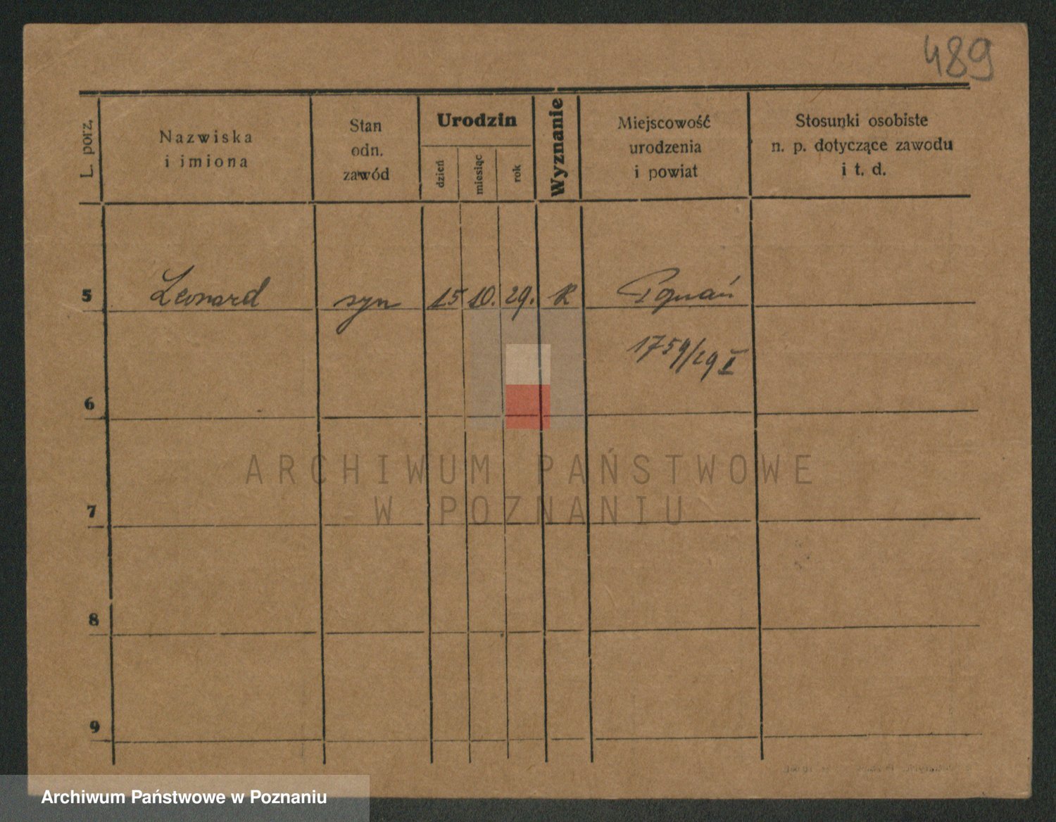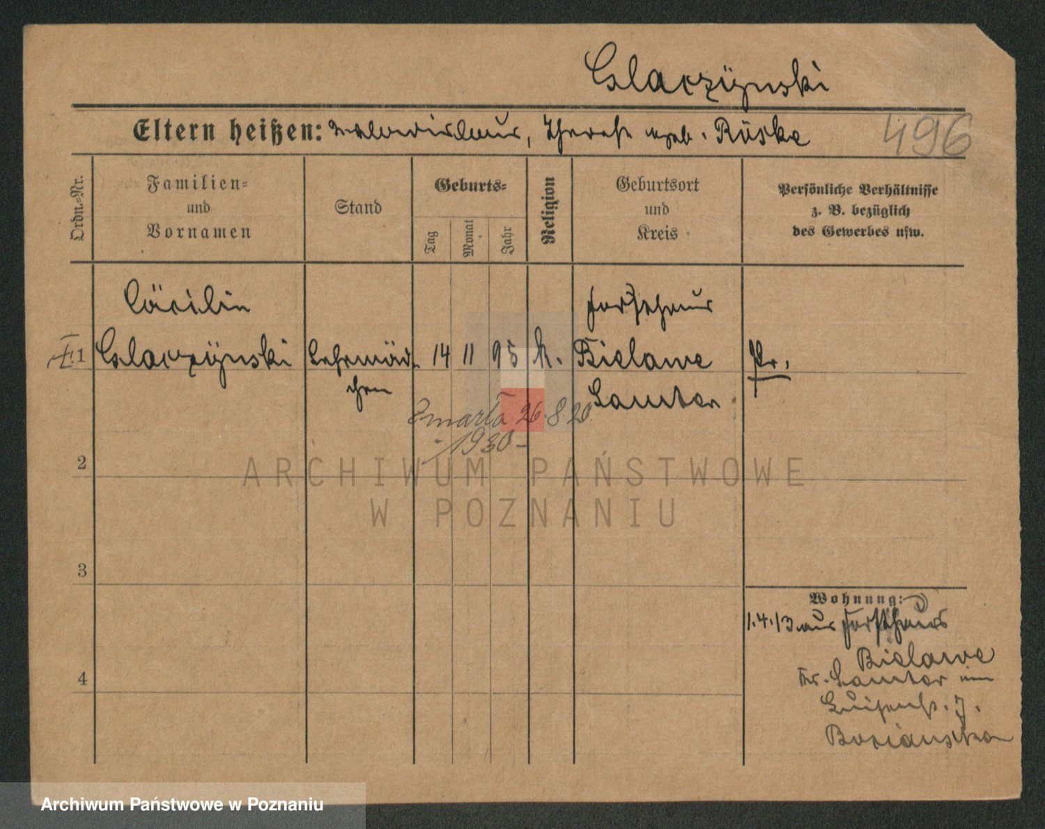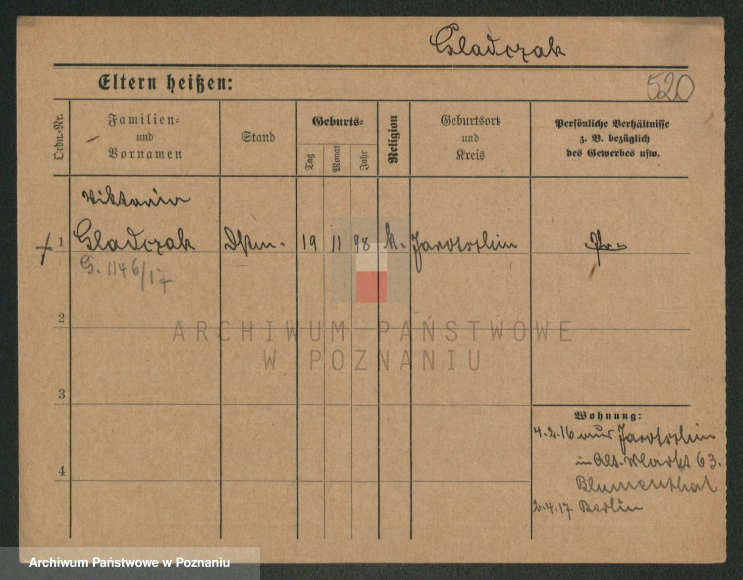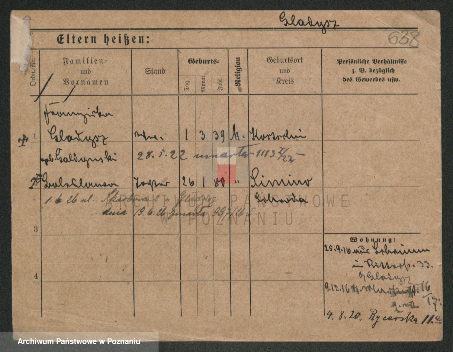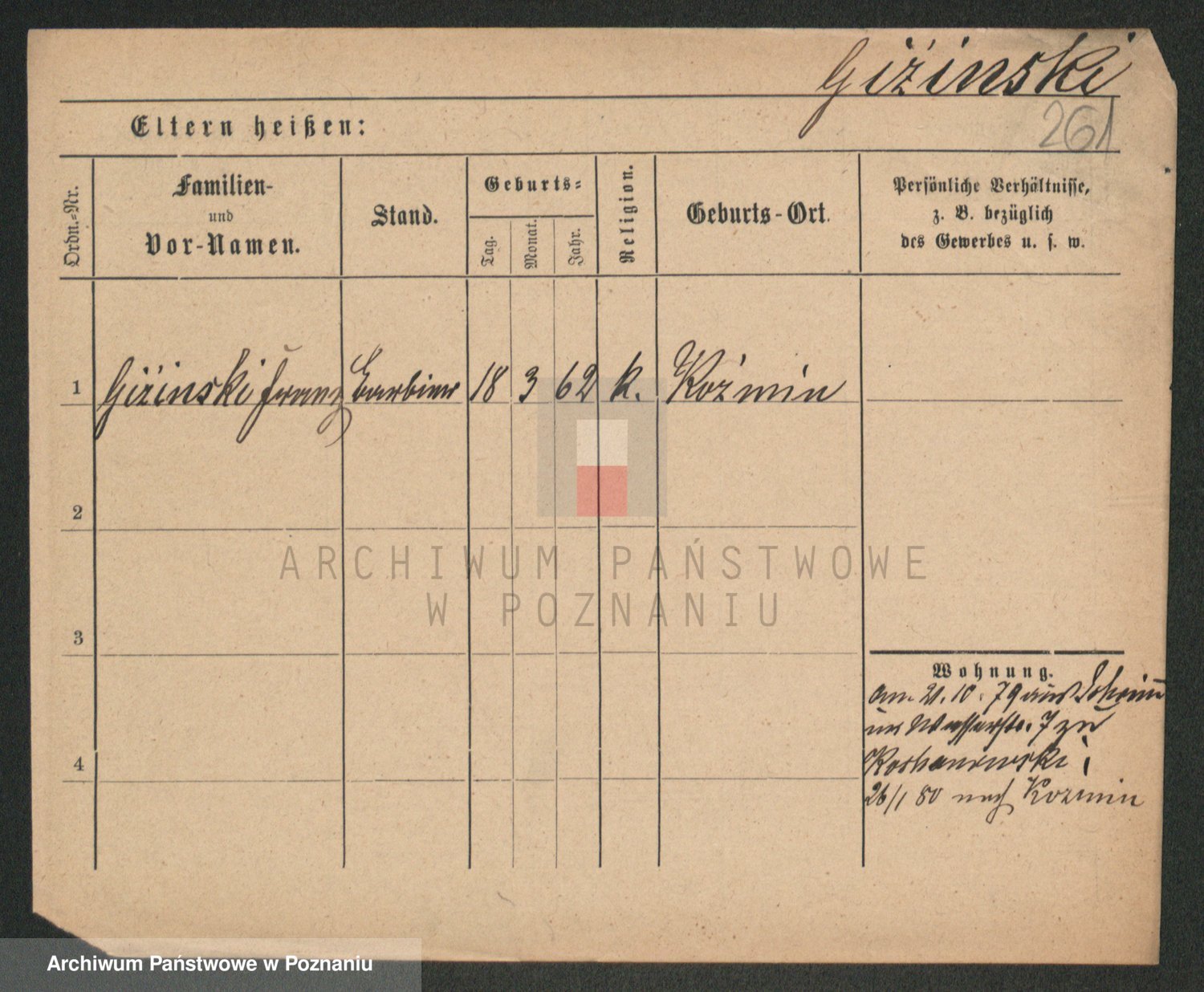 Podgląd karty osobowej dostępny jest po kliknięciu na nazwisko lub ikonkę karty. Można dokonywać powiększenia (ikony na górze) lub przechodzić między kolejnymi skanami (strzałki po bokach).