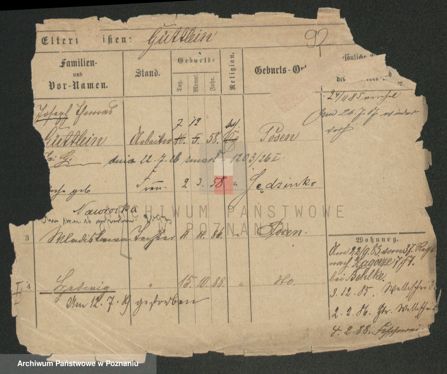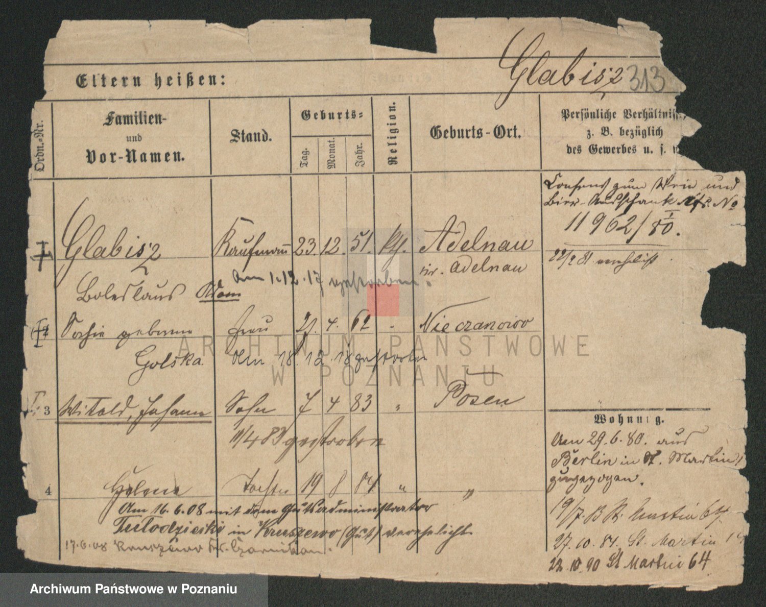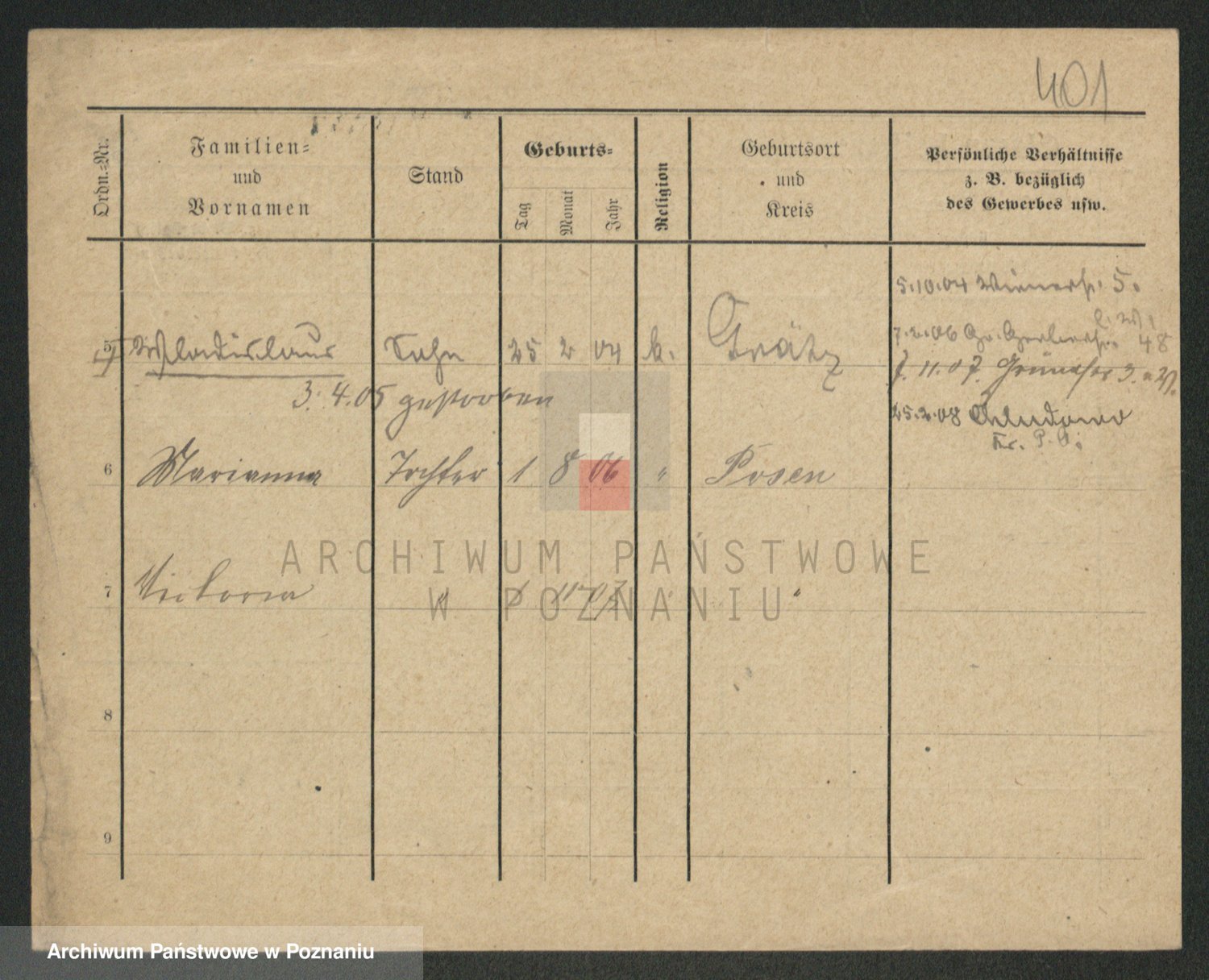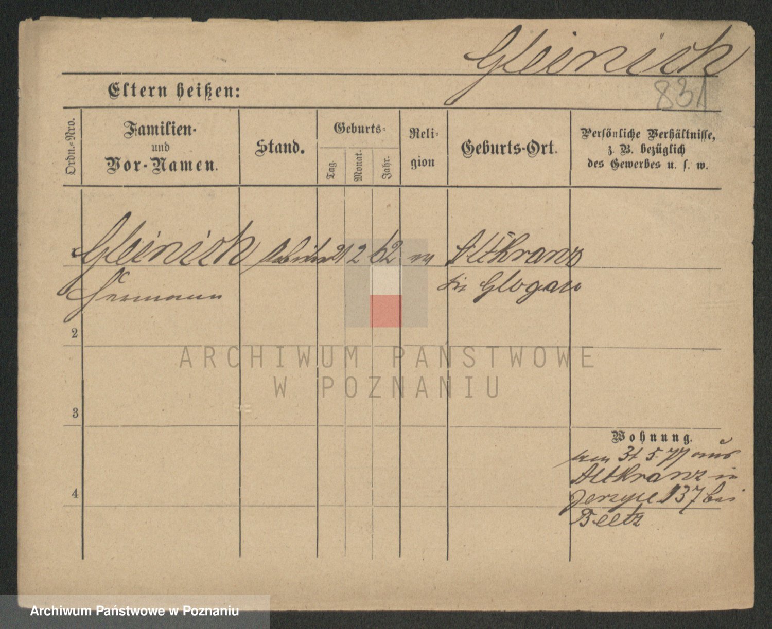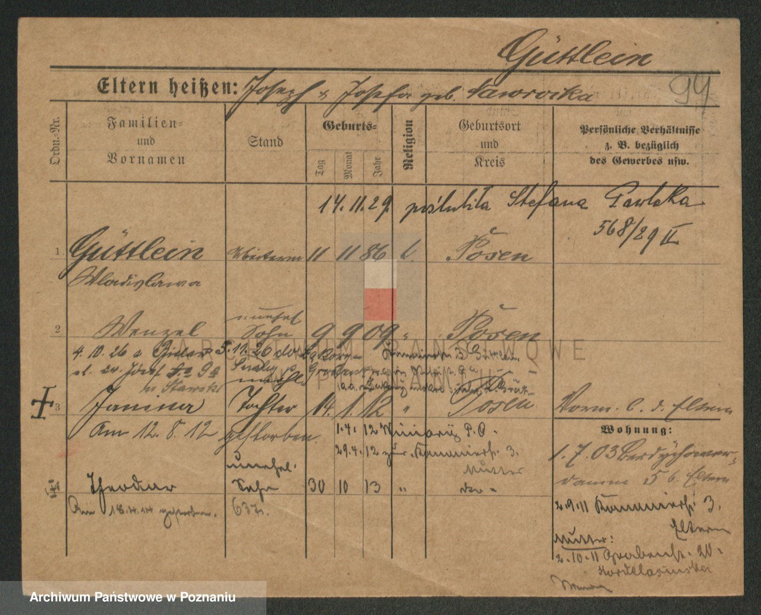 Podgląd karty osobowej dostępny jest po kliknięciu na nazwisko lub ikonkę karty. Można dokonywać powiększenia (ikony na górze) lub przechodzić między kolejnymi skanami (strzałki po bokach).