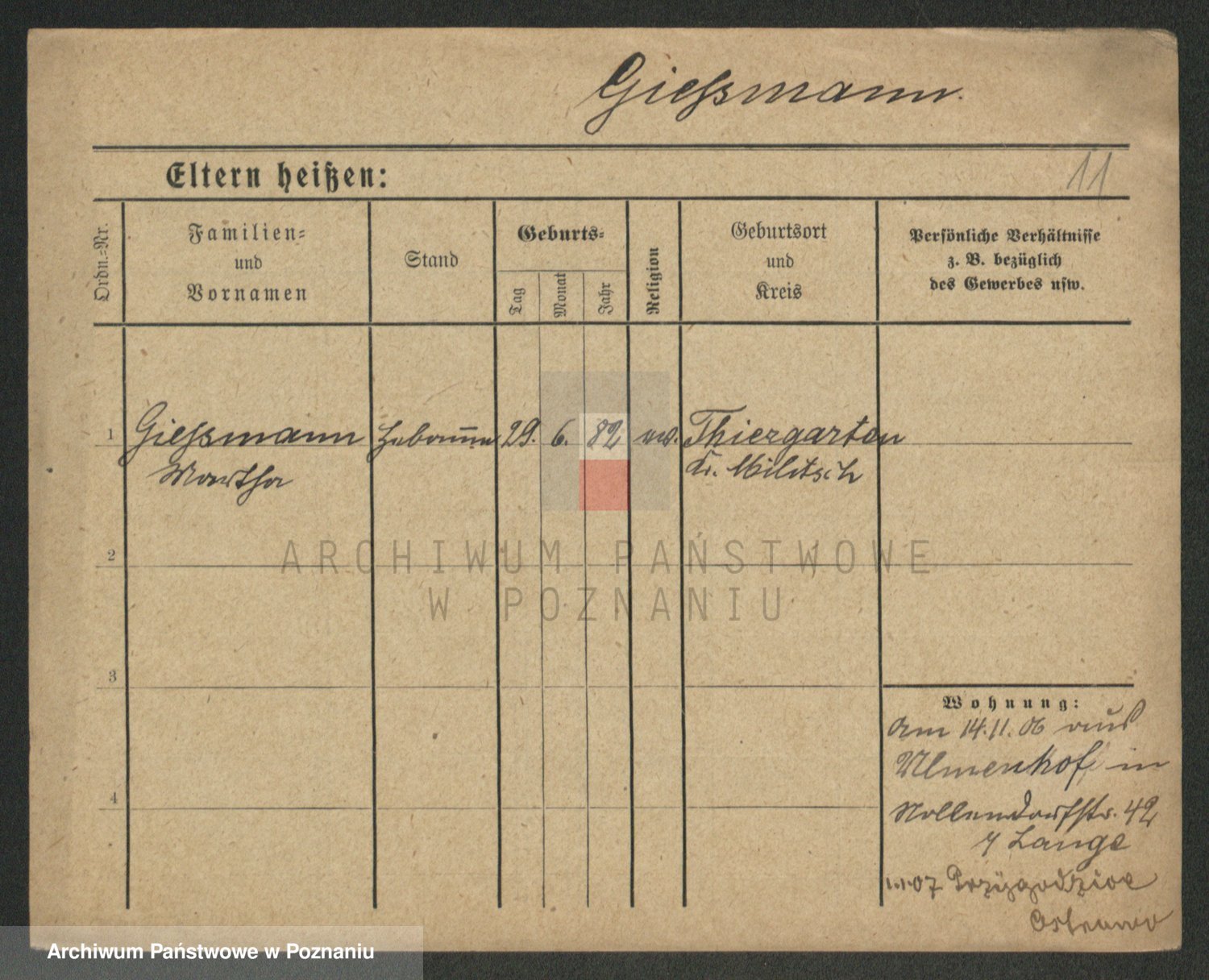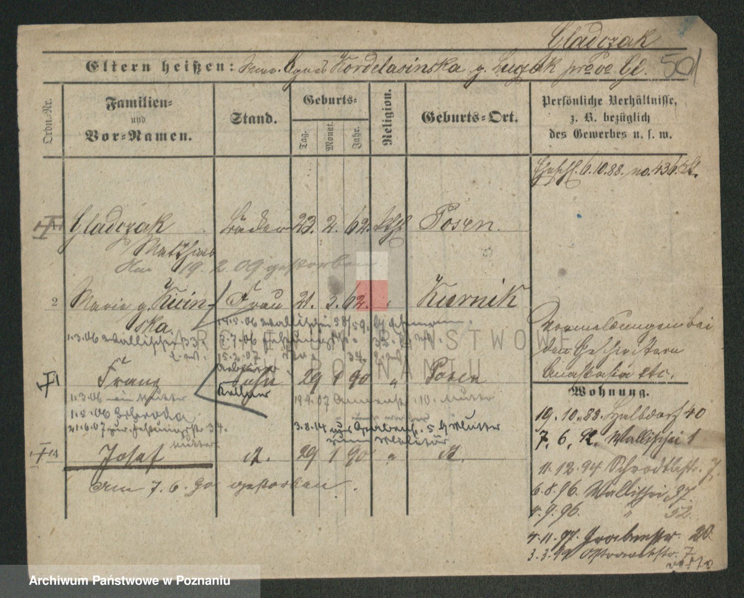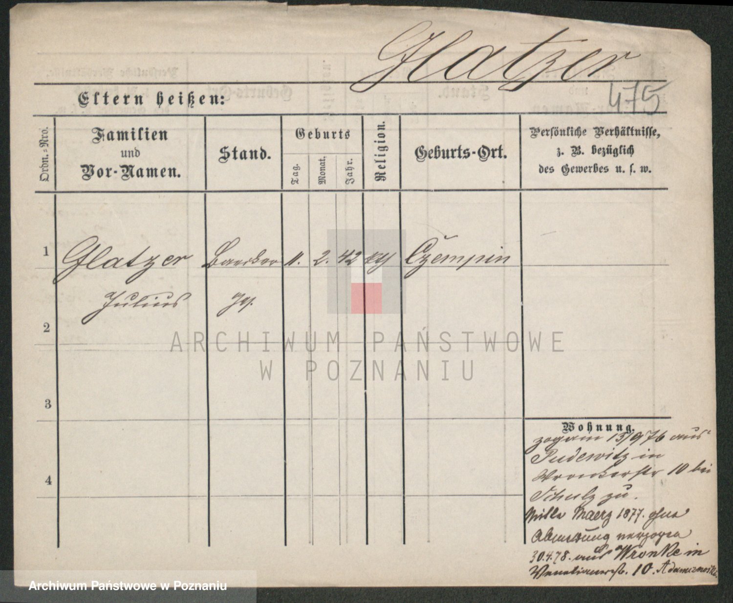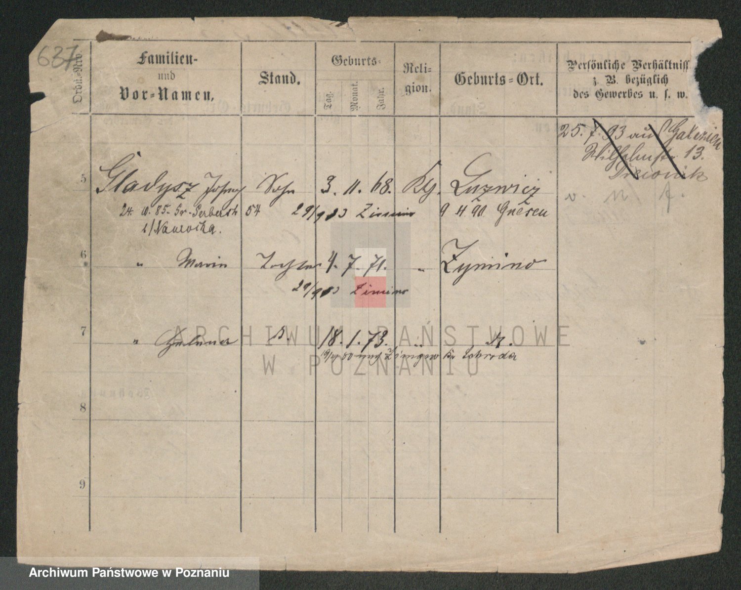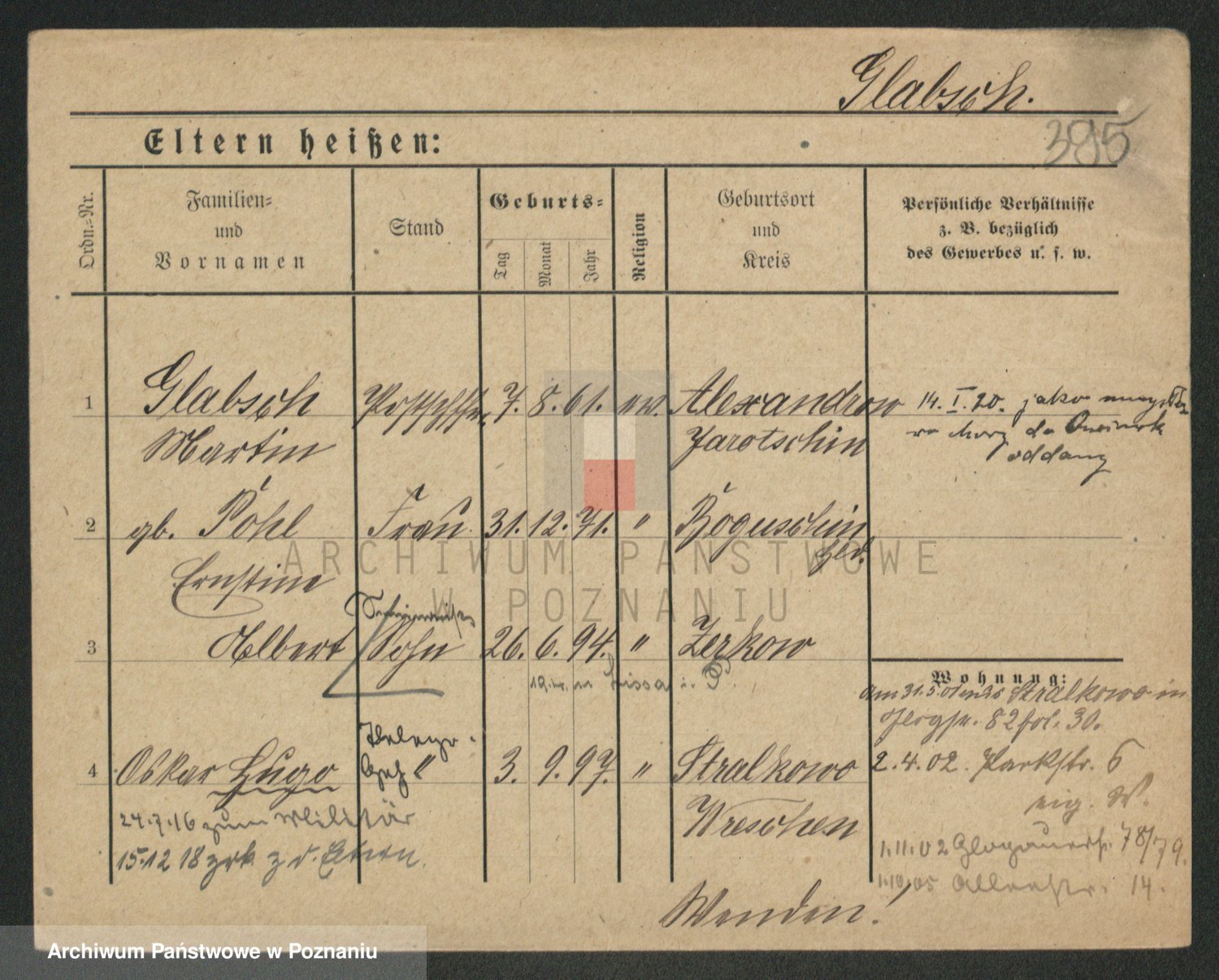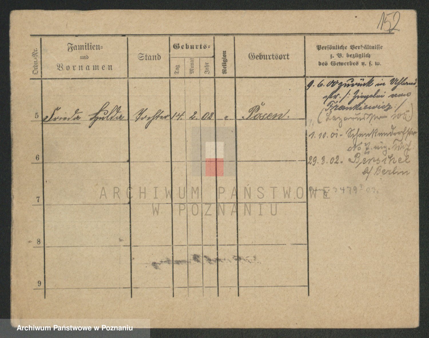 Podgląd karty osobowej dostępny jest po kliknięciu na nazwisko lub ikonkę karty. Można dokonywać powiększenia (ikony na górze) lub przechodzić między kolejnymi skanami (strzałki po bokach).