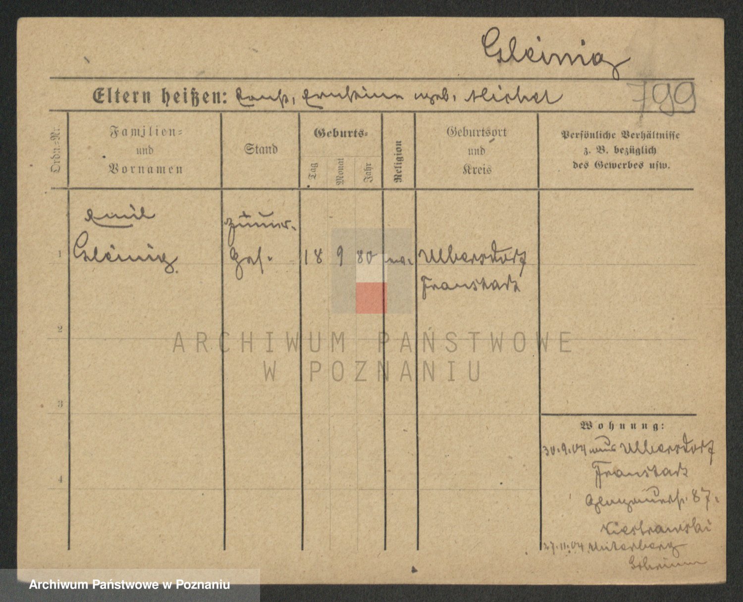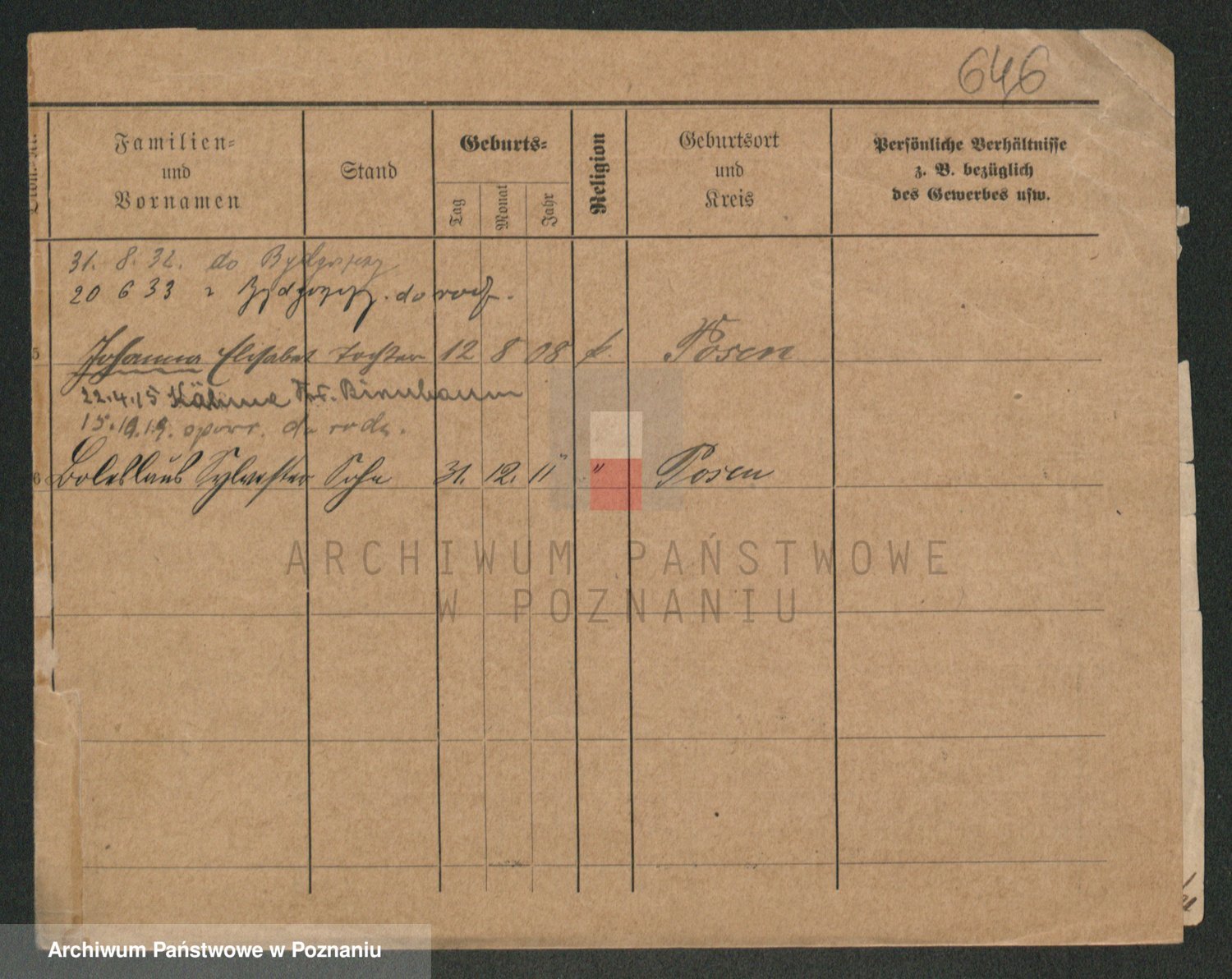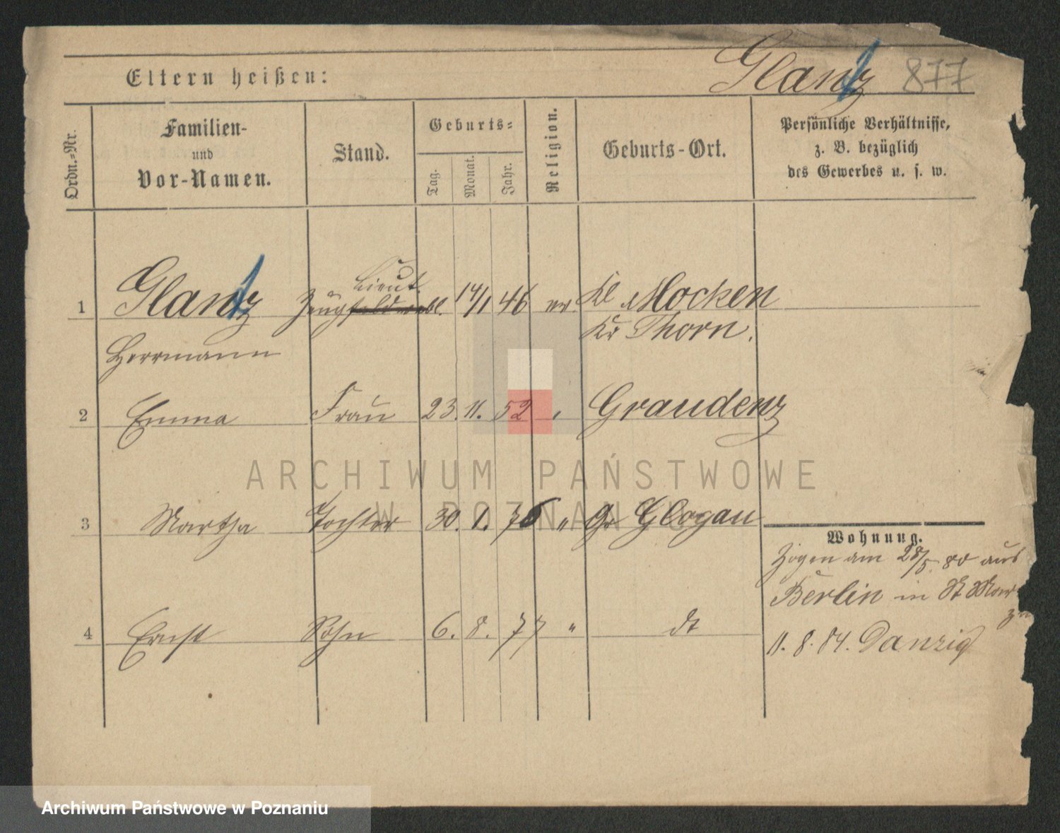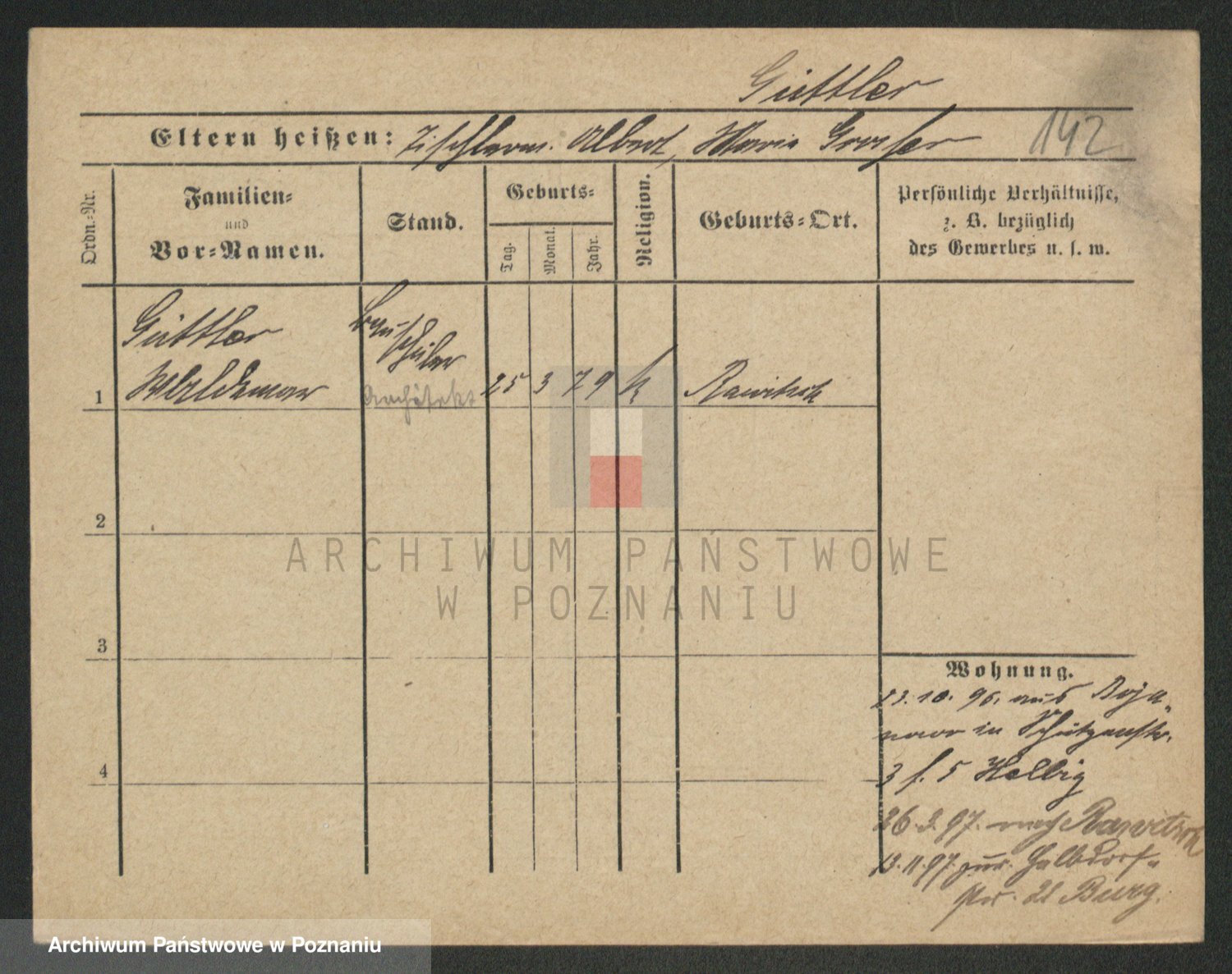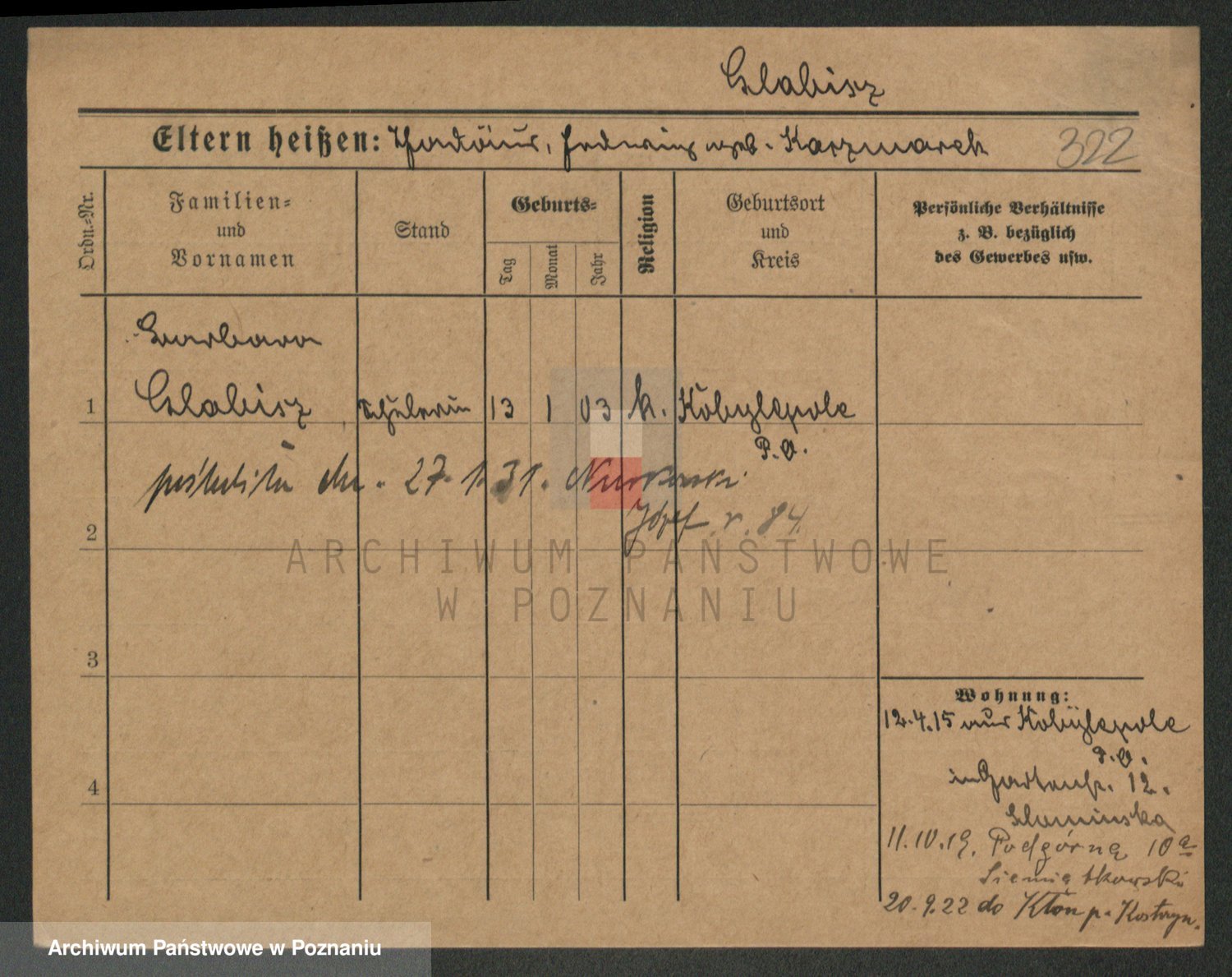 Podgląd karty osobowej dostępny jest po kliknięciu na nazwisko lub ikonkę karty. Można dokonywać powiększenia (ikony na górze) lub przechodzić między kolejnymi skanami (strzałki po bokach).