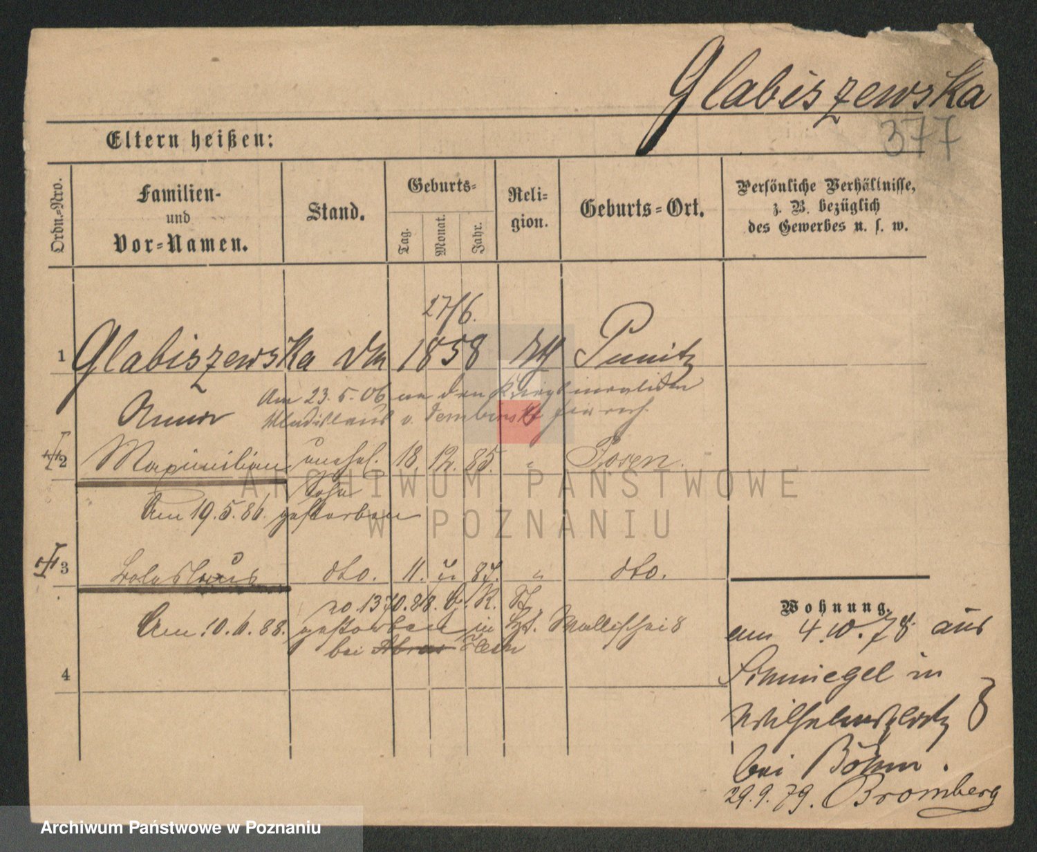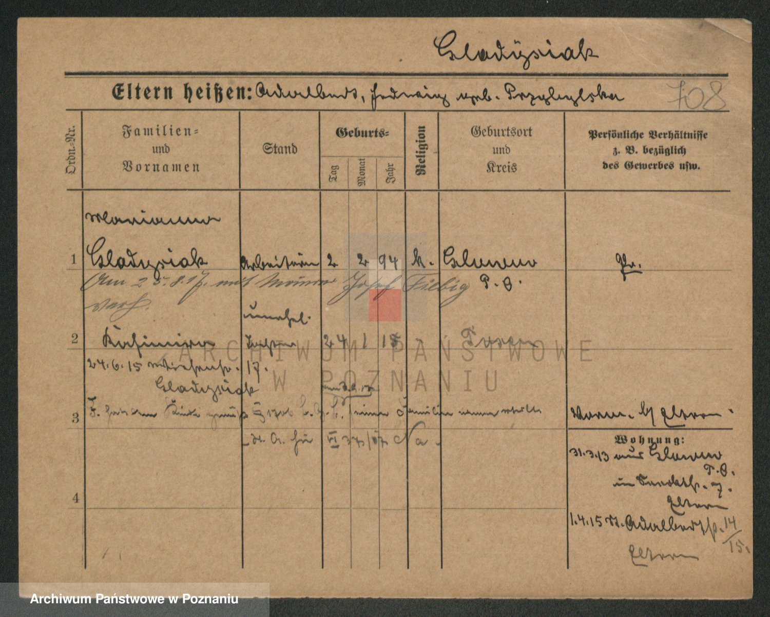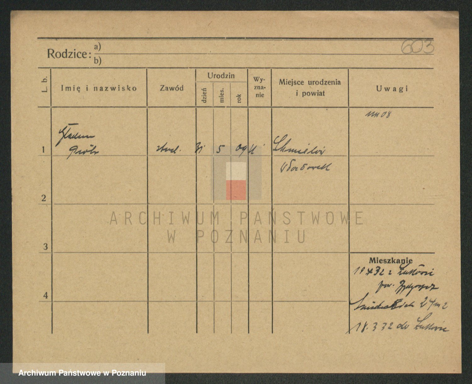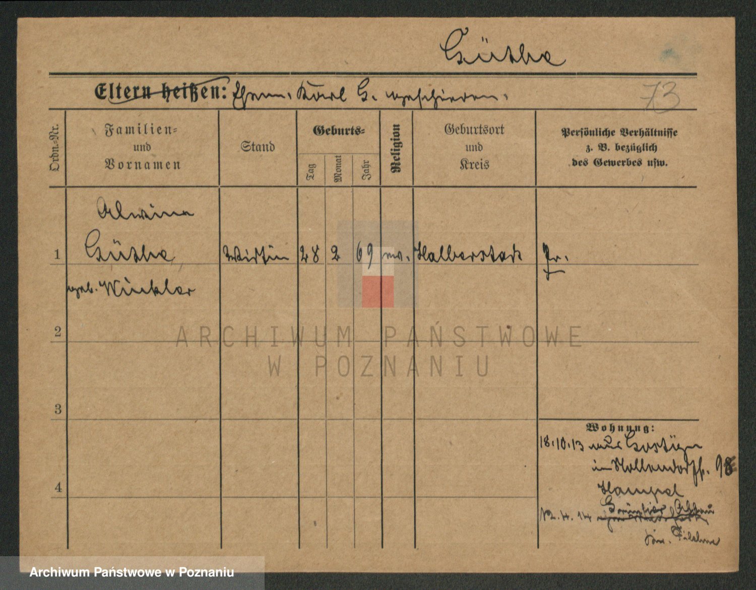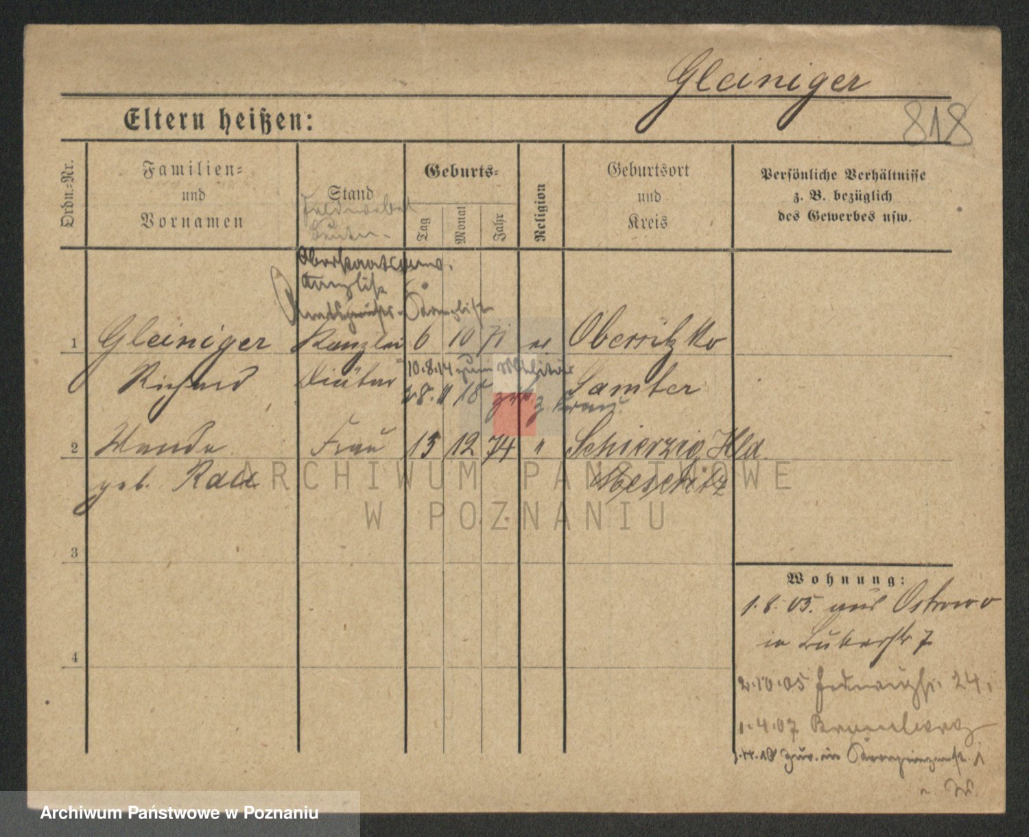 Podgląd karty osobowej dostępny jest po kliknięciu na nazwisko lub ikonkę karty. Można dokonywać powiększenia (ikony na górze) lub przechodzić między kolejnymi skanami (strzałki po bokach).