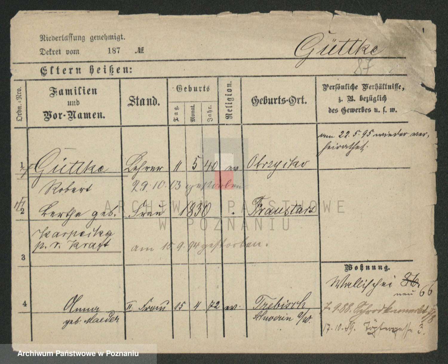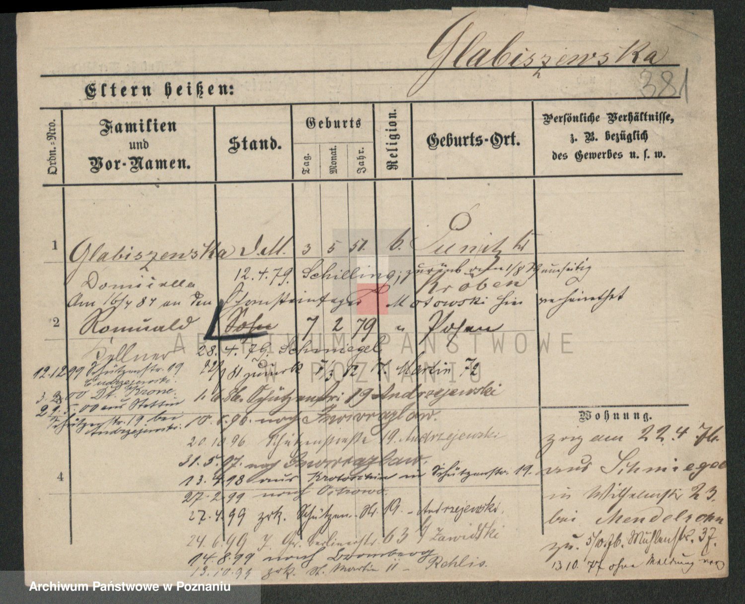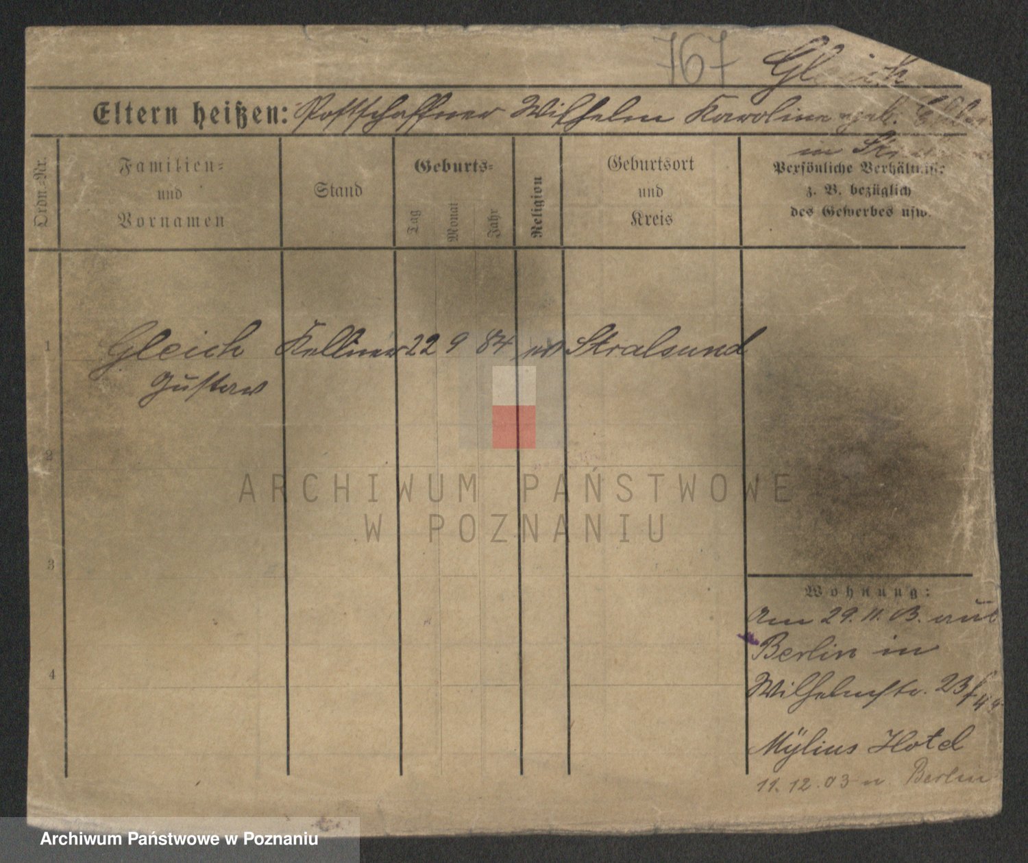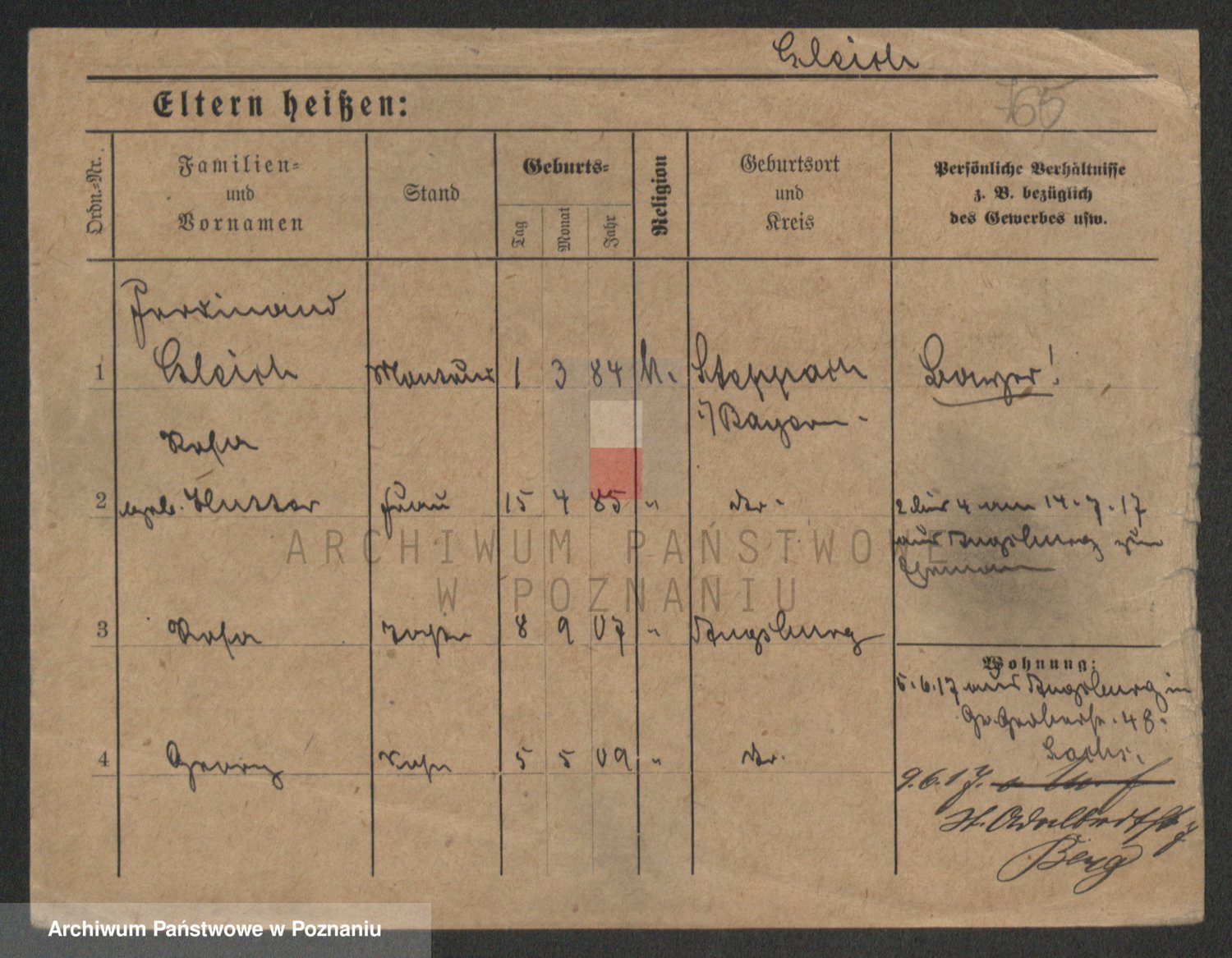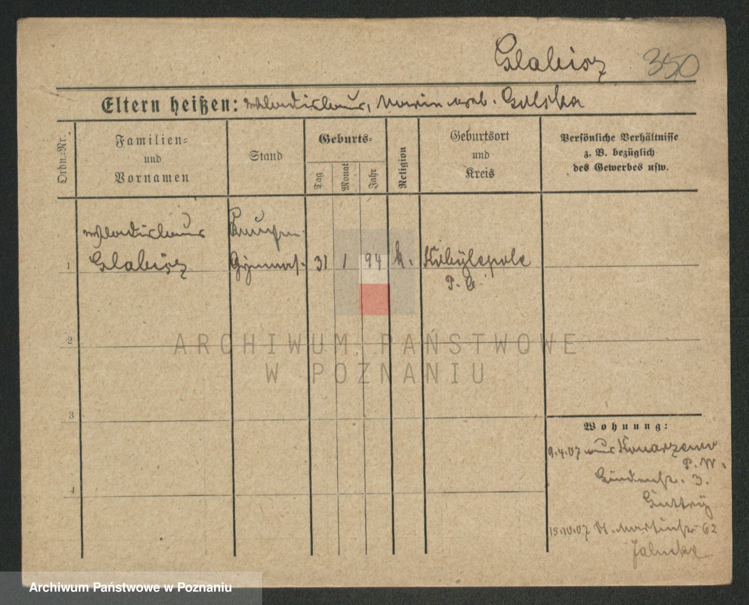Podgląd karty osobowej dostępny jest po kliknięciu na nazwisko lub ikonkę karty. Można dokonywać powiększenia (ikony na górze) lub przechodzić między kolejnymi skanami (strzałki po bokach).