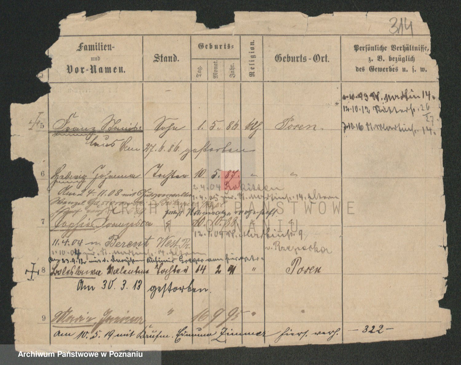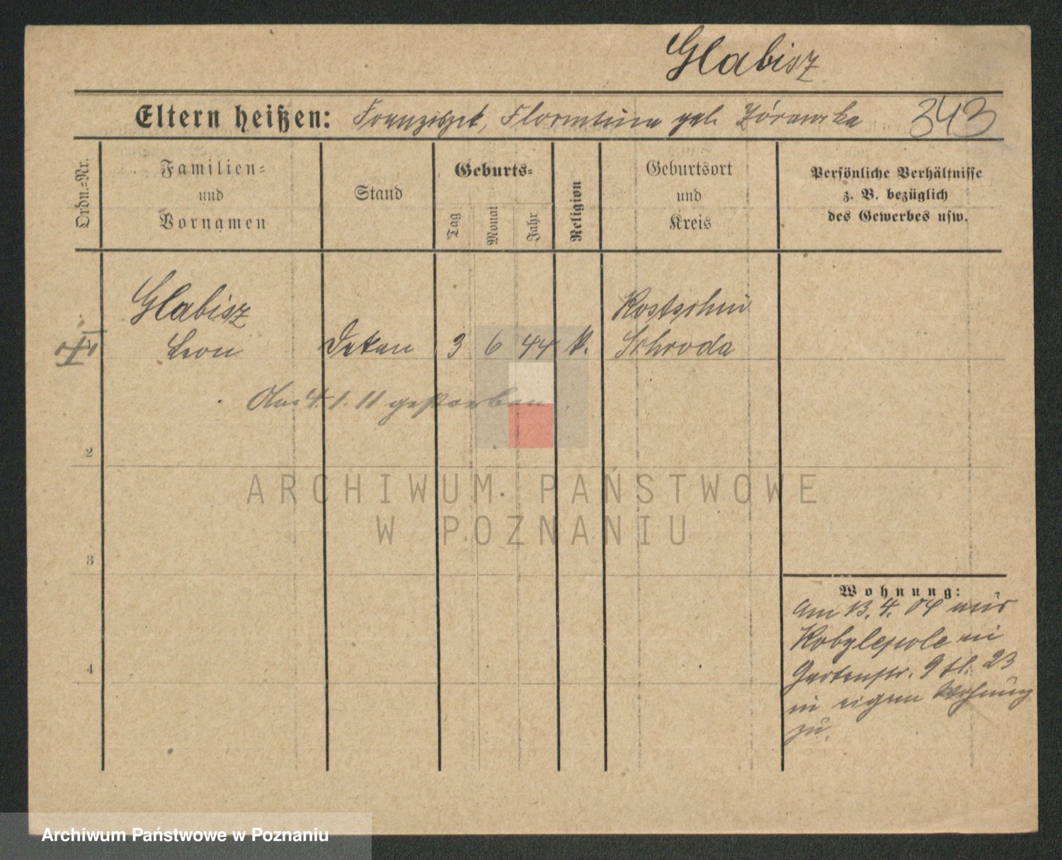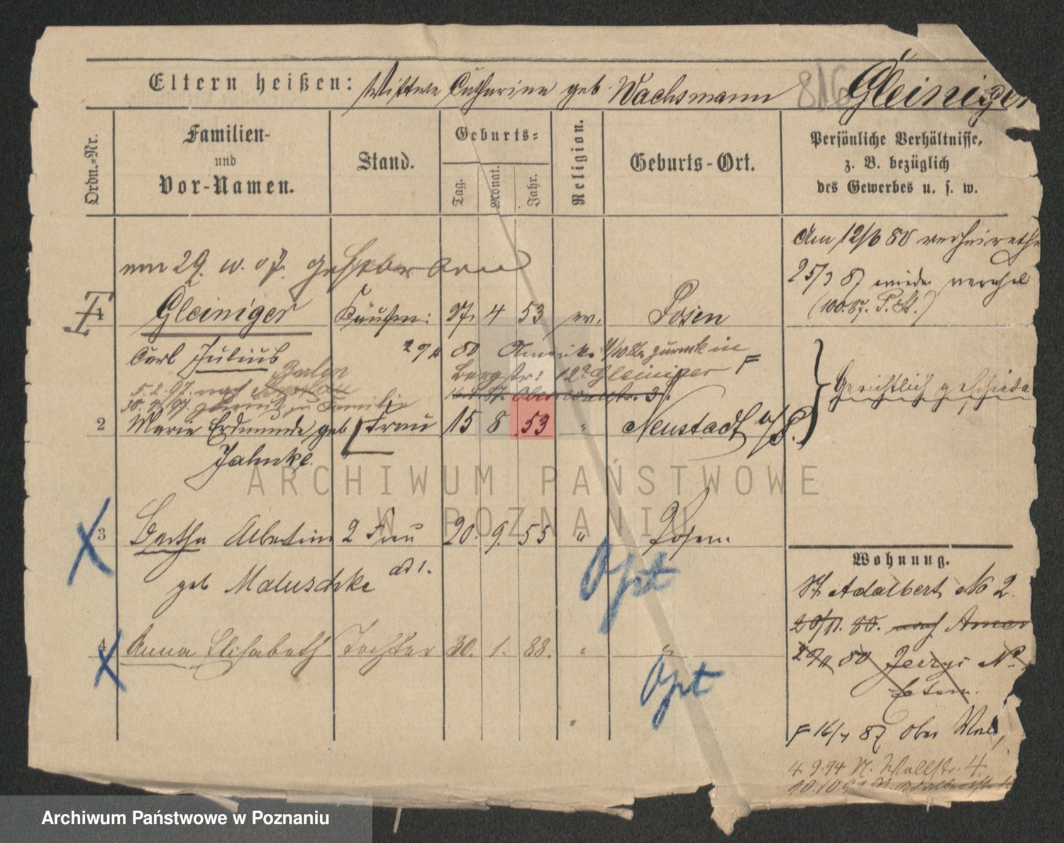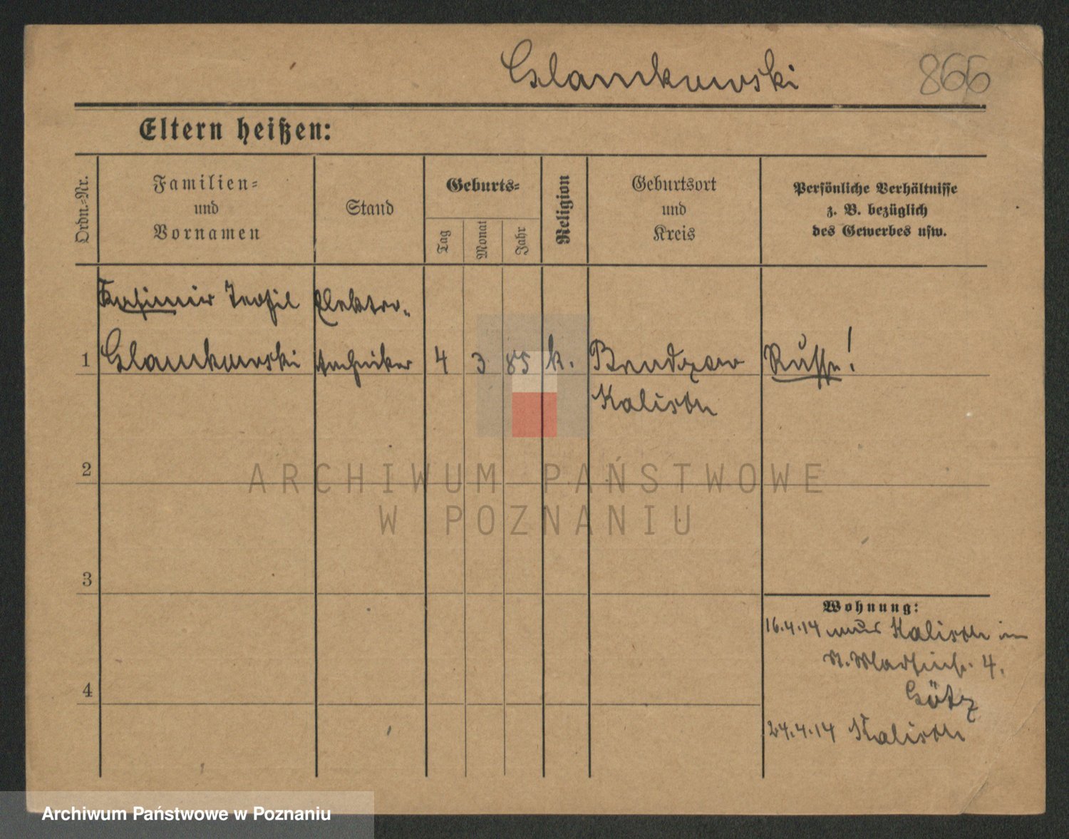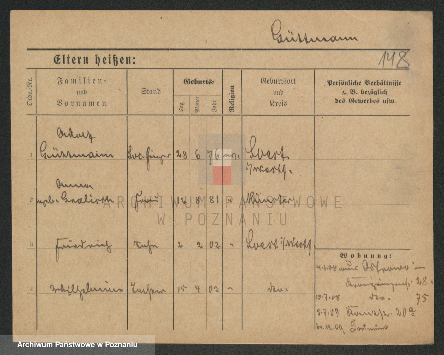 Podgląd karty osobowej dostępny jest po kliknięciu na nazwisko lub ikonkę karty. Można dokonywać powiększenia (ikony na górze) lub przechodzić między kolejnymi skanami (strzałki po bokach).