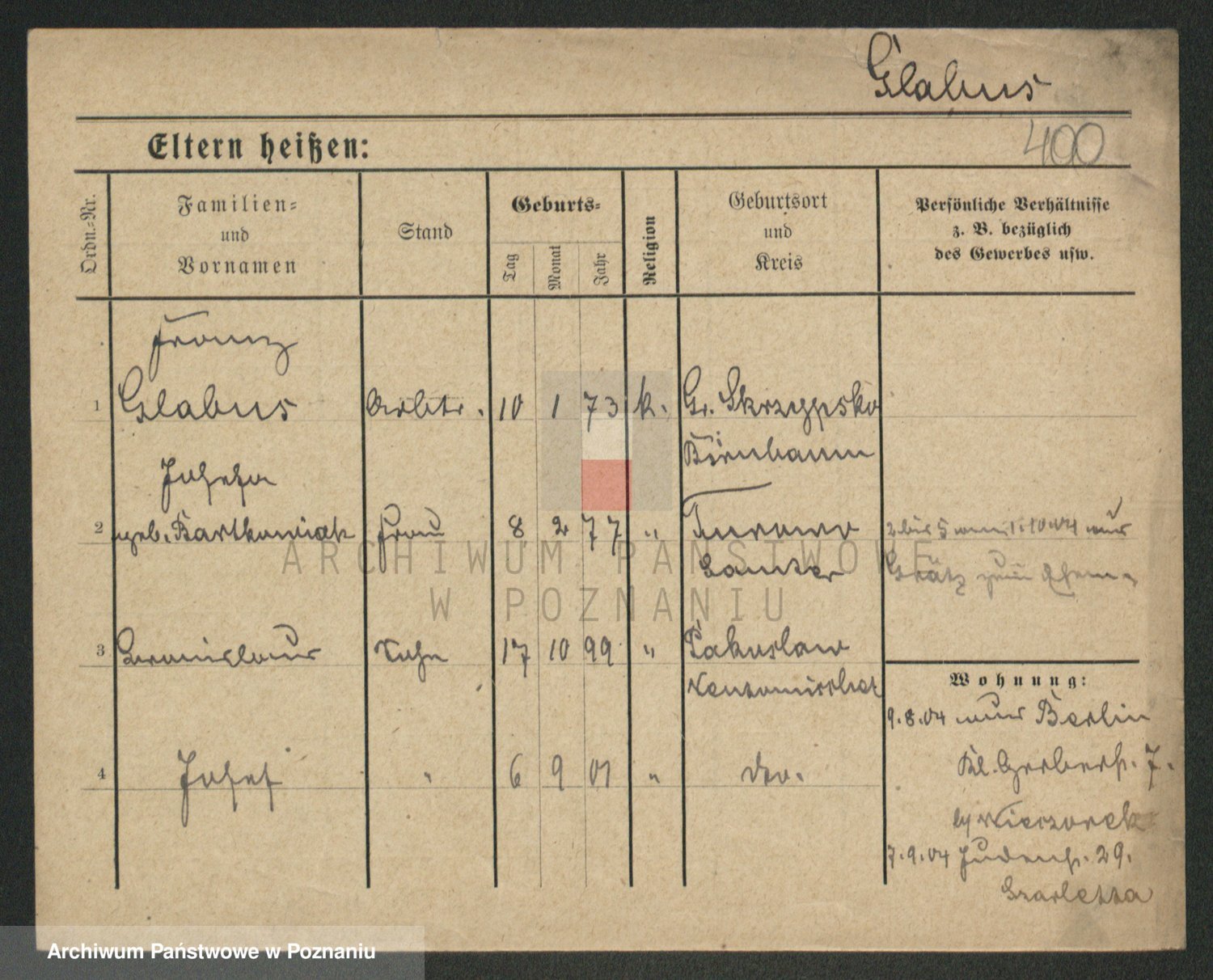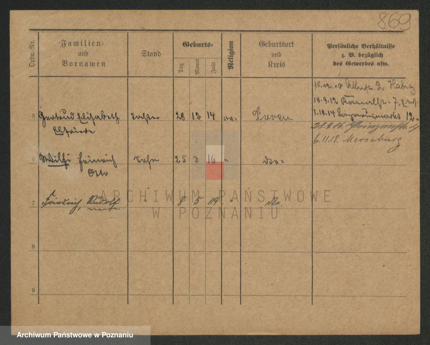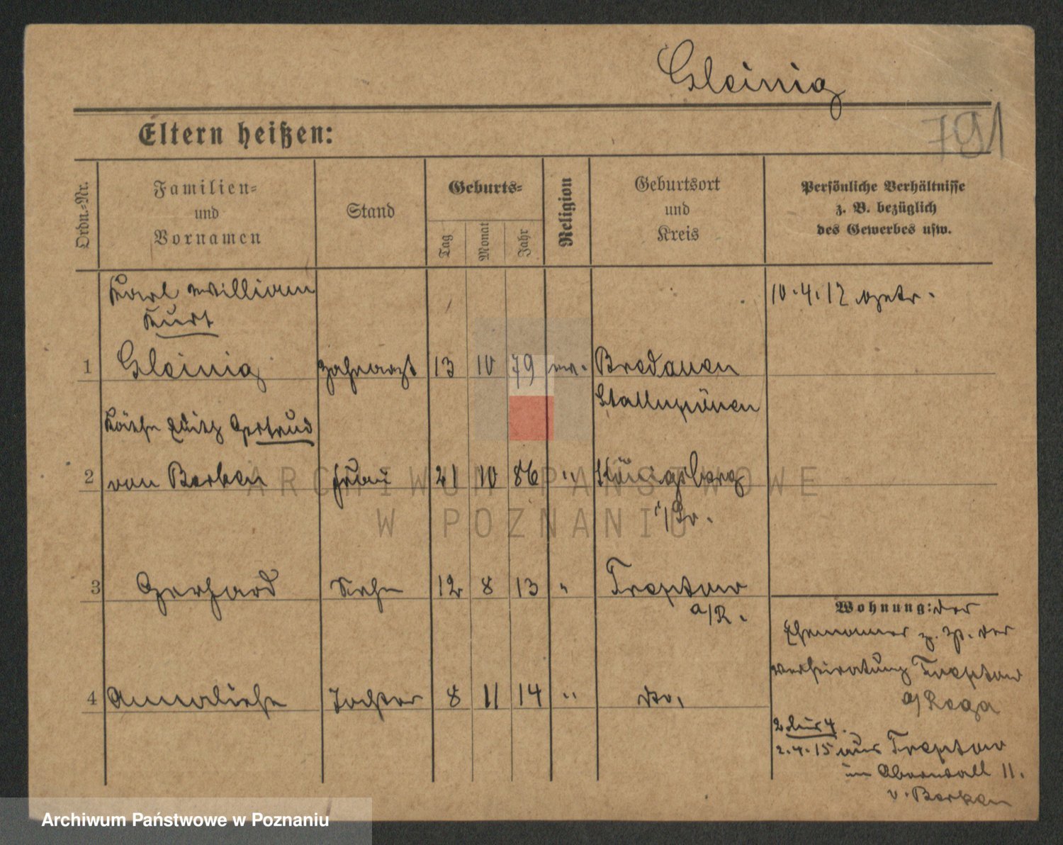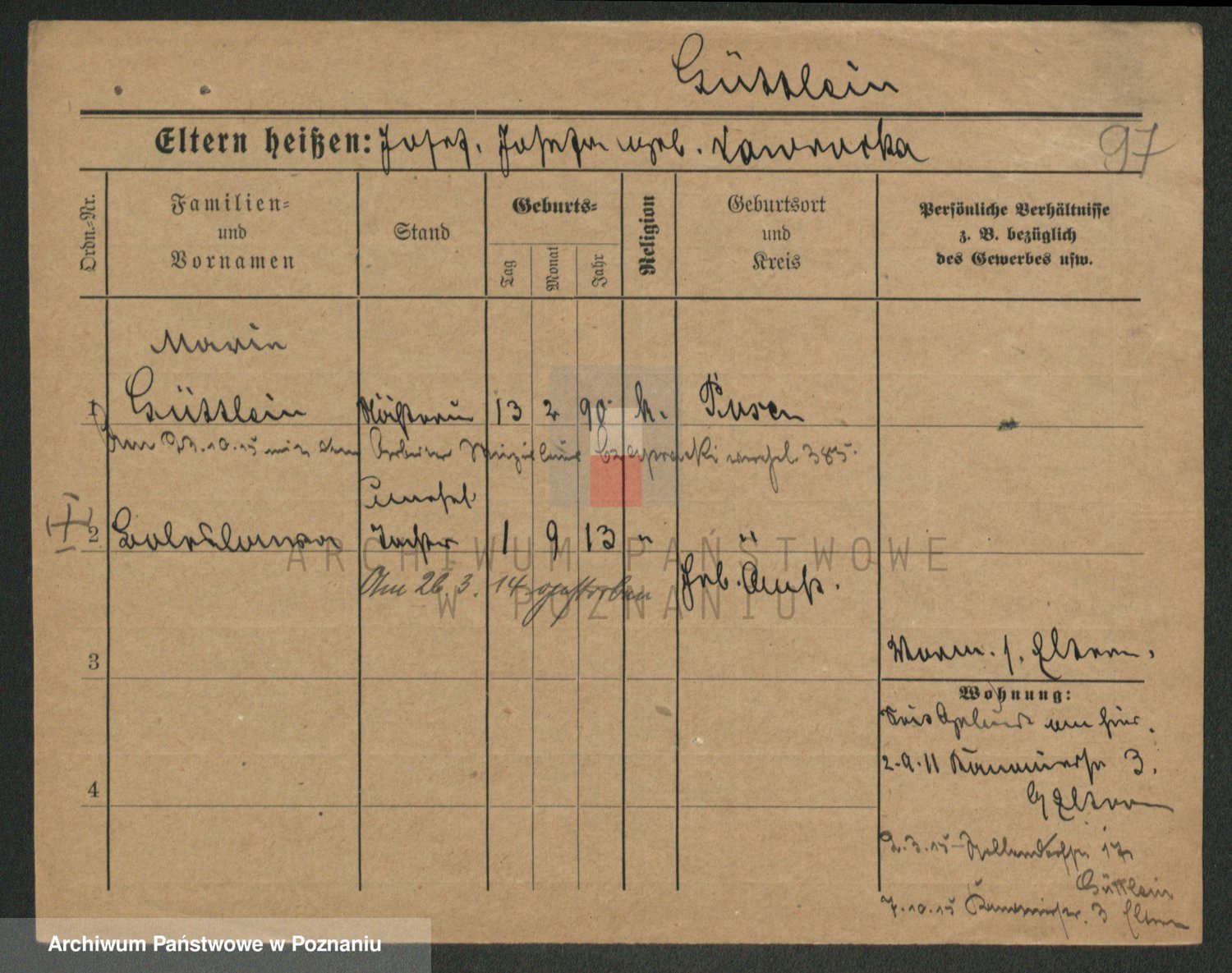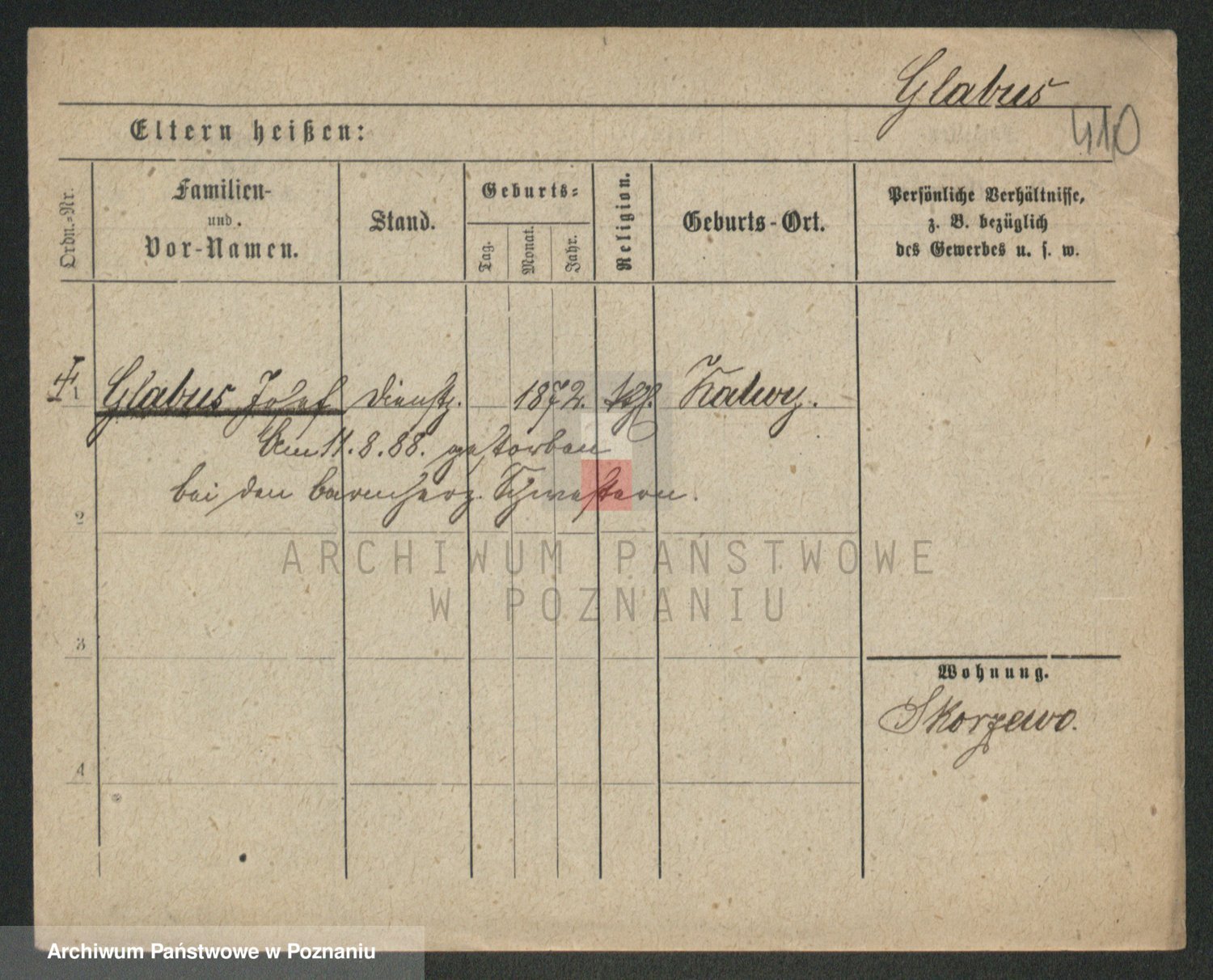 Podgląd karty osobowej dostępny jest po kliknięciu na nazwisko lub ikonkę karty. Można dokonywać powiększenia (ikony na górze) lub przechodzić między kolejnymi skanami (strzałki po bokach).
