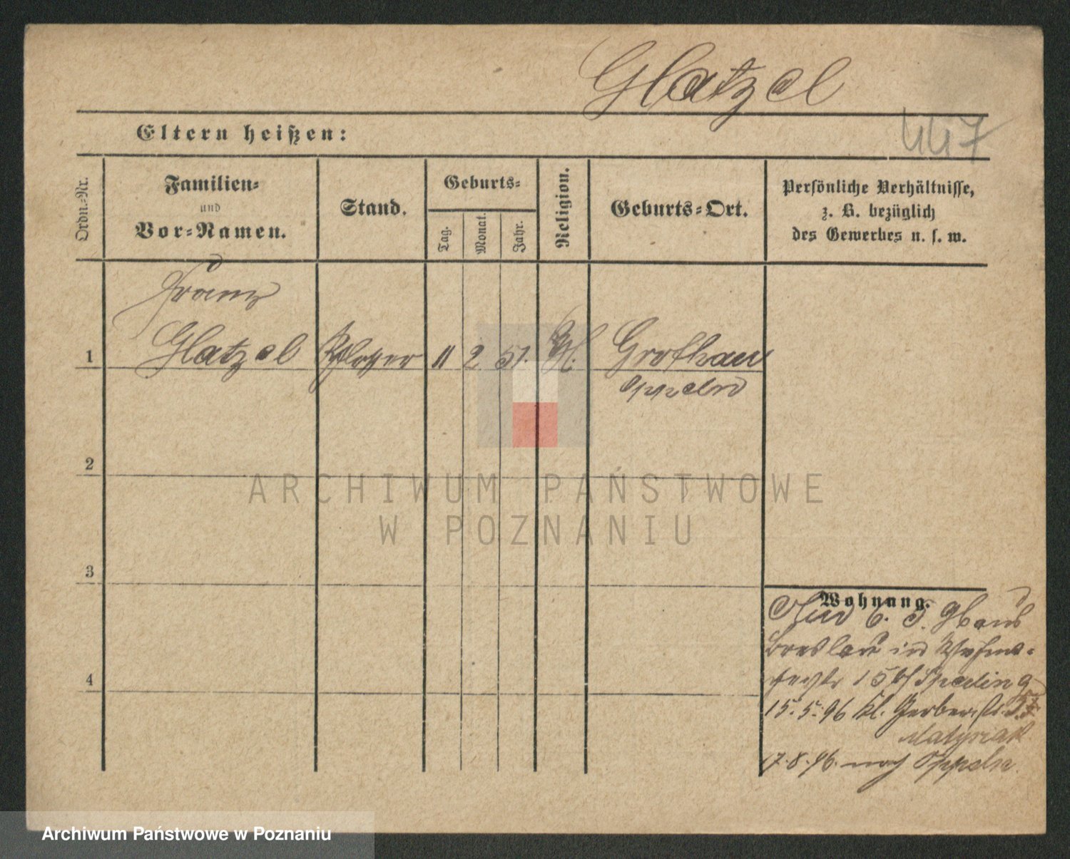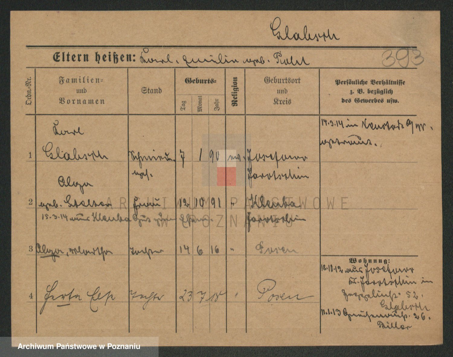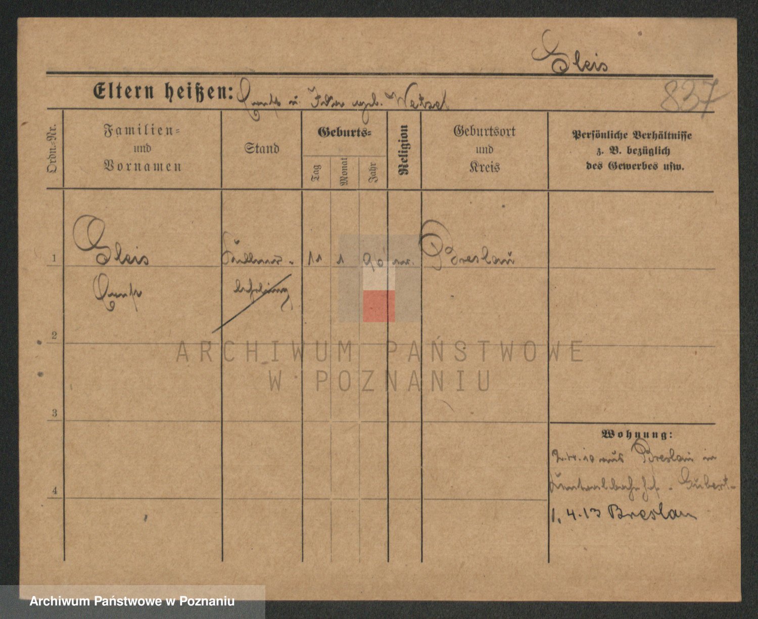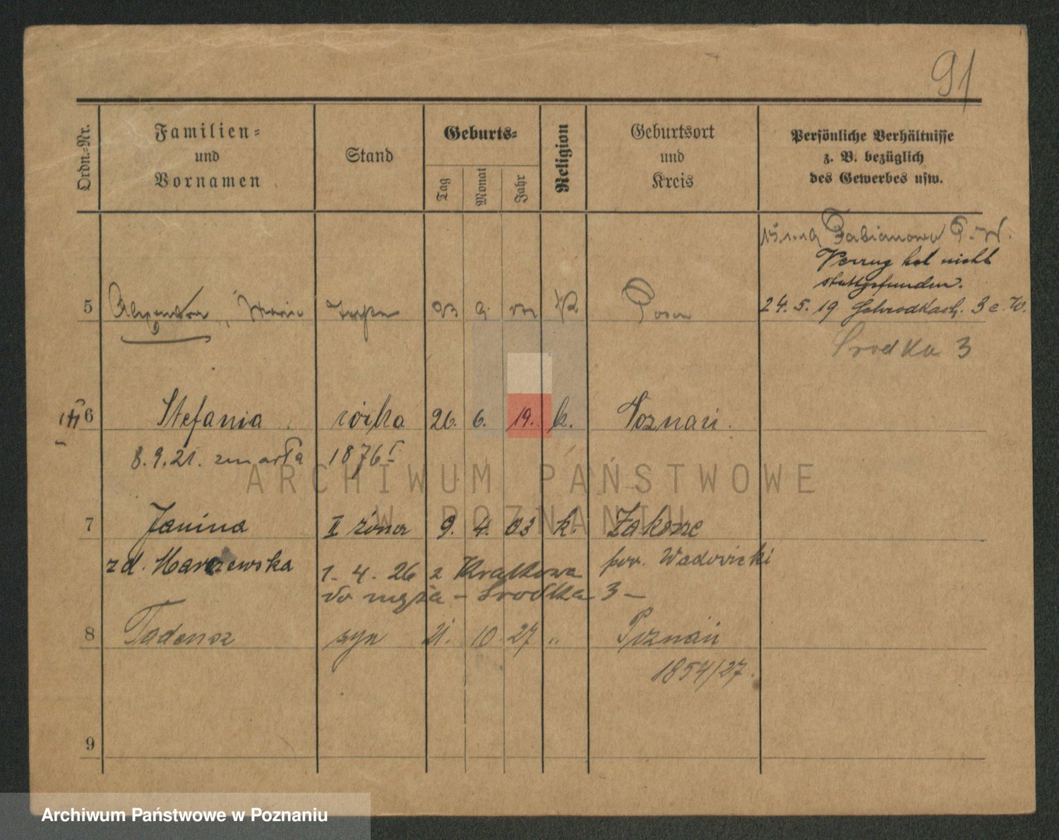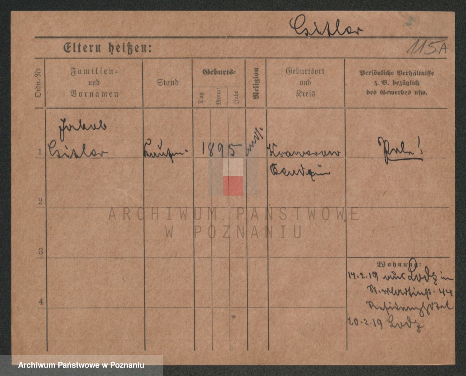 Podgląd karty osobowej dostępny jest po kliknięciu na nazwisko lub ikonkę karty. Można dokonywać powiększenia (ikony na górze) lub przechodzić między kolejnymi skanami (strzałki po bokach).
