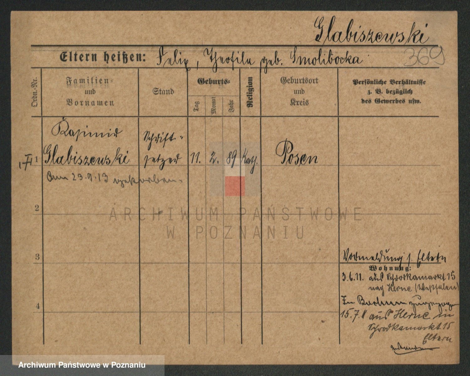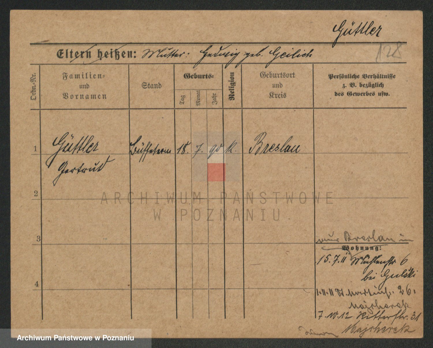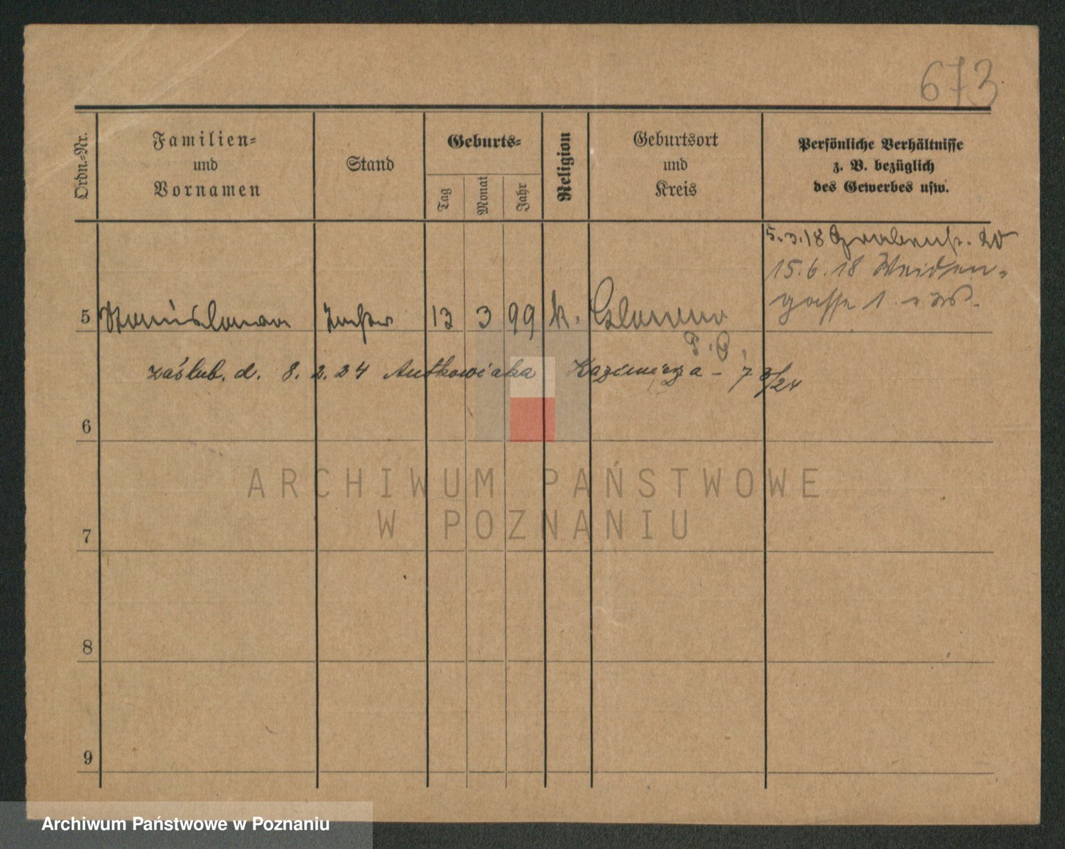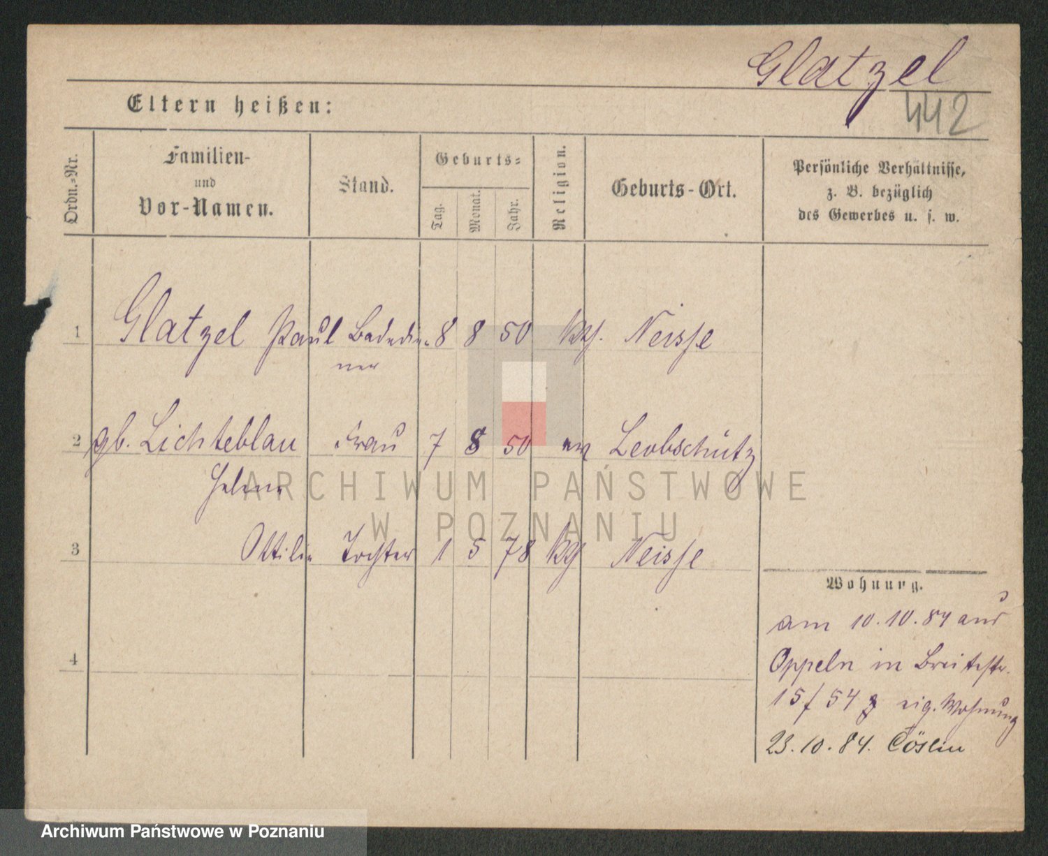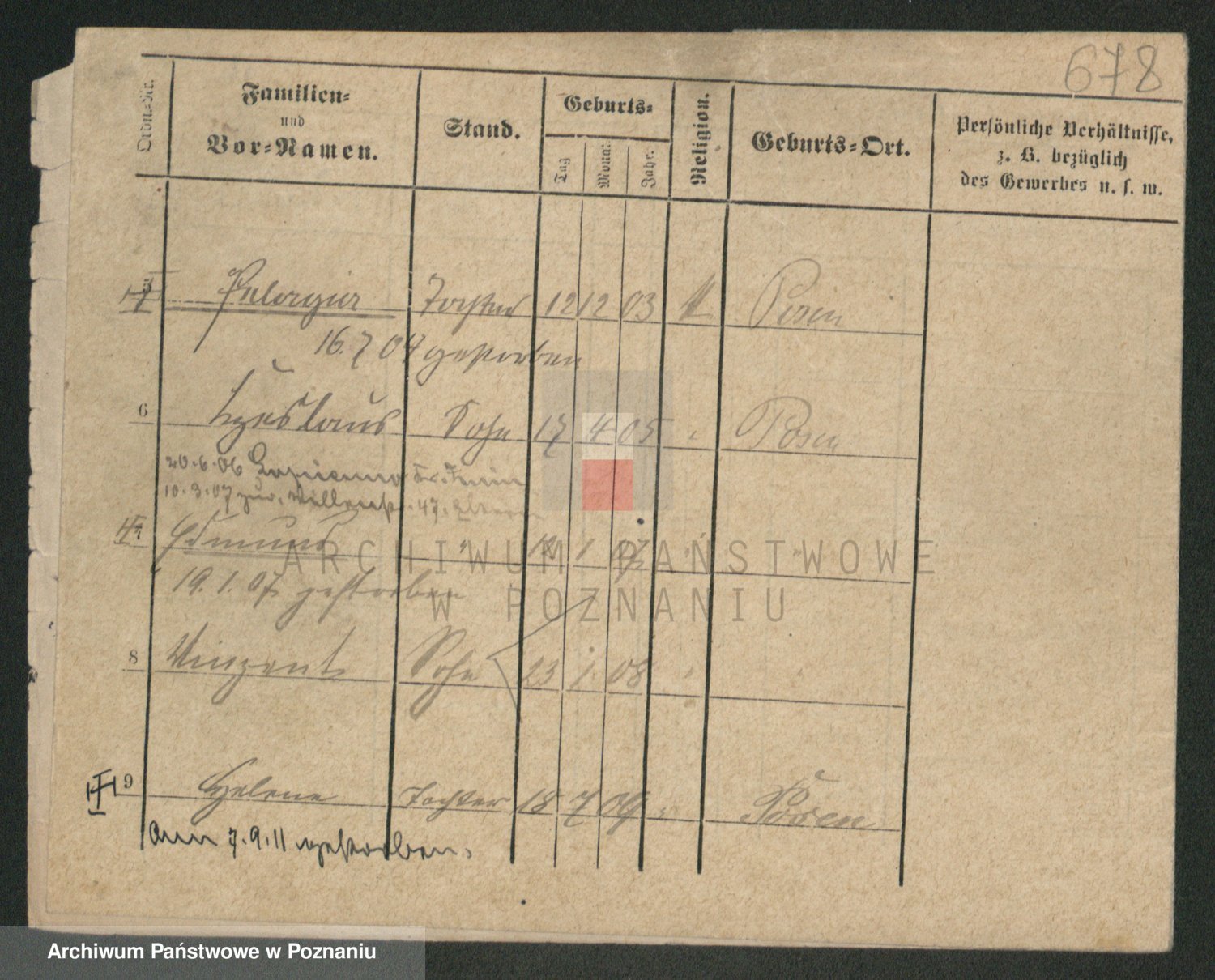 Podgląd karty osobowej dostępny jest po kliknięciu na nazwisko lub ikonkę karty. Można dokonywać powiększenia (ikony na górze) lub przechodzić między kolejnymi skanami (strzałki po bokach).