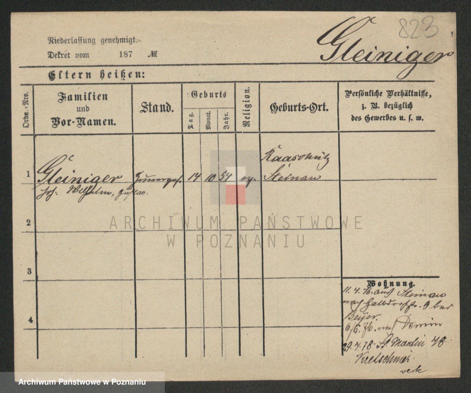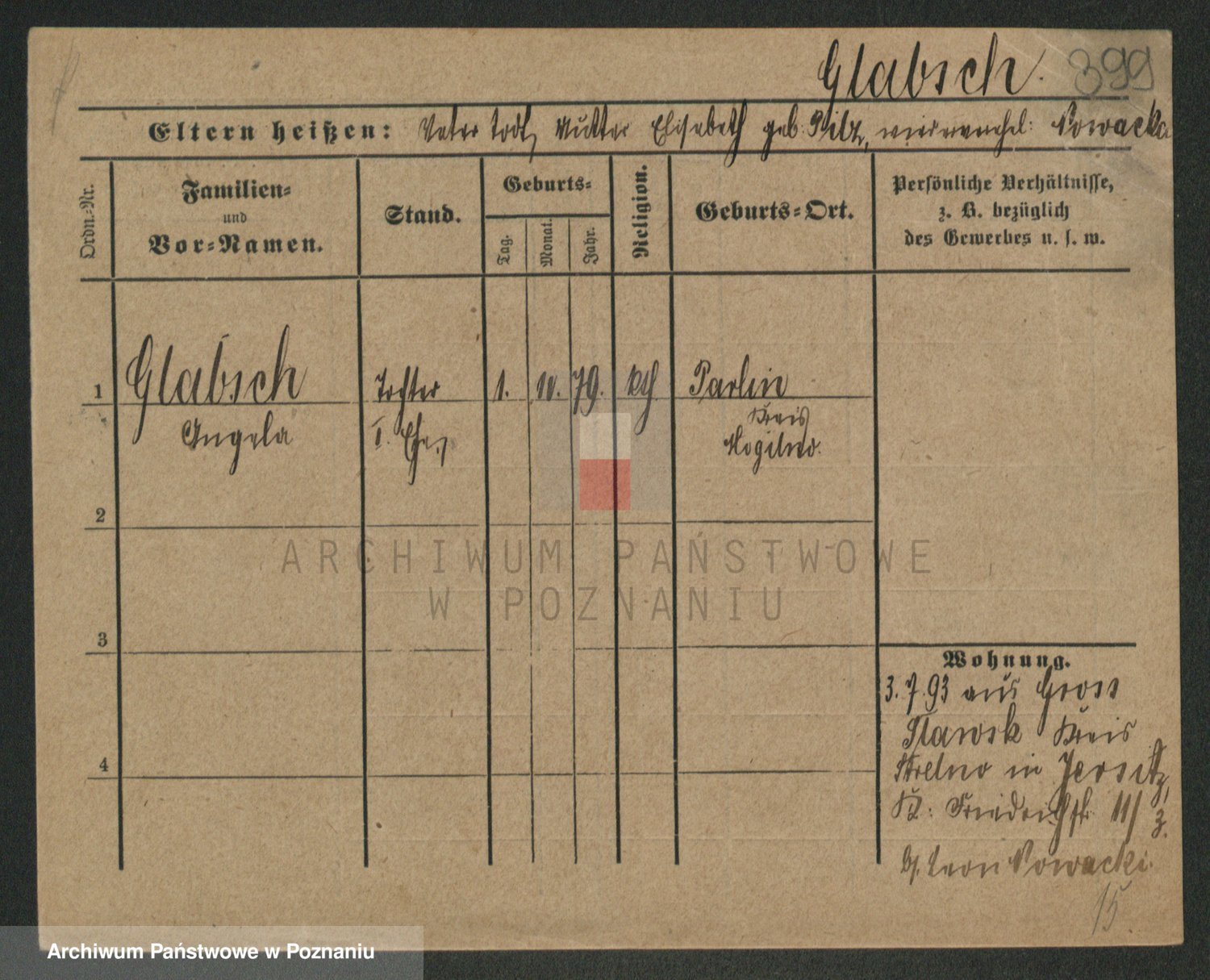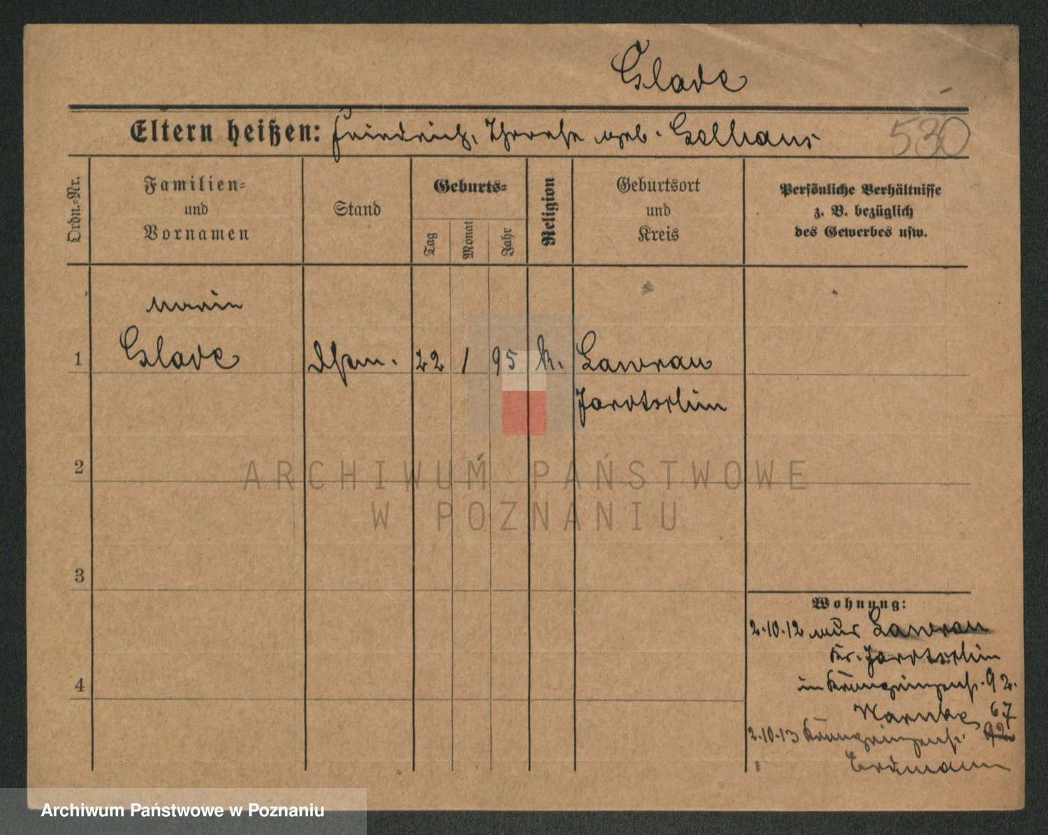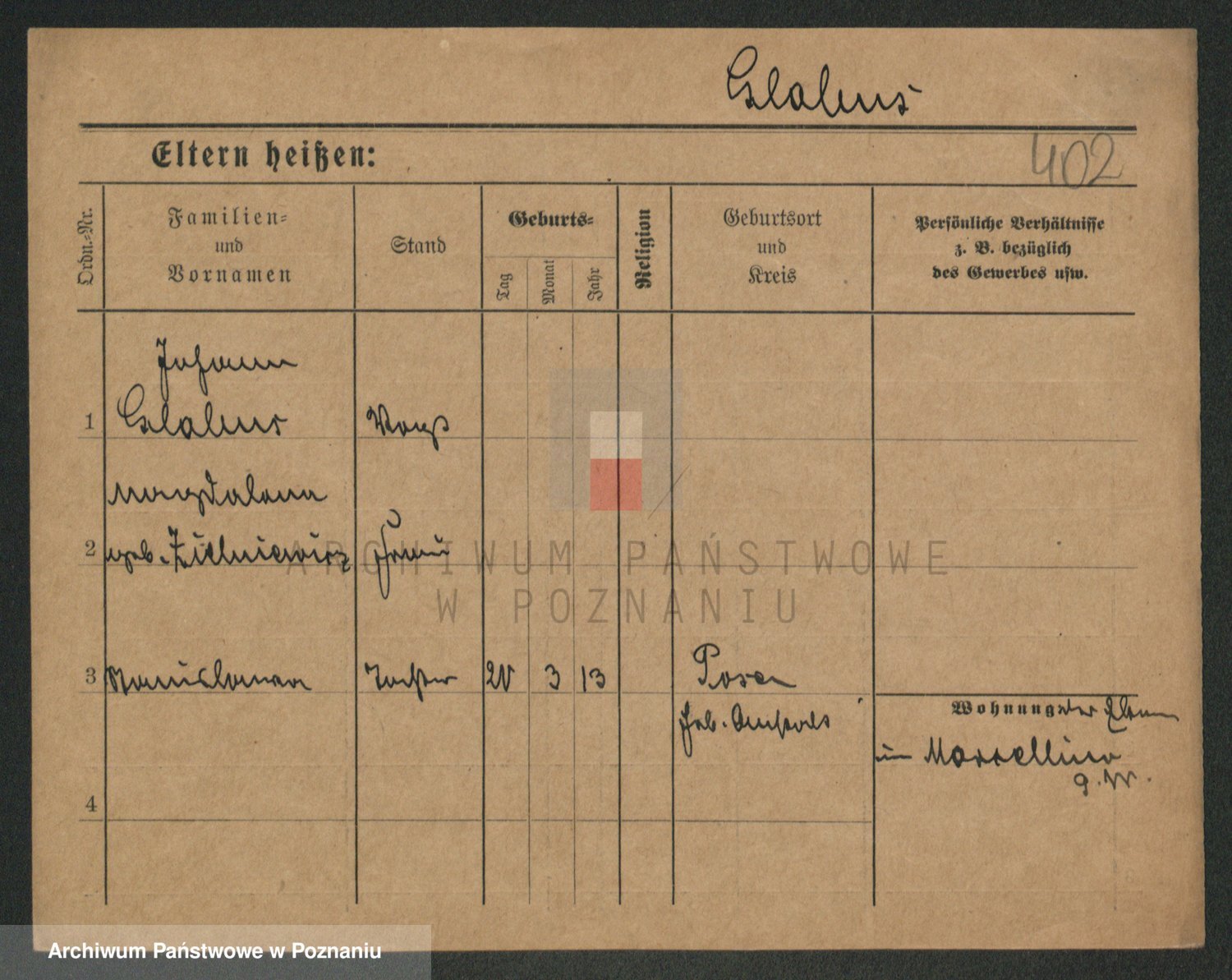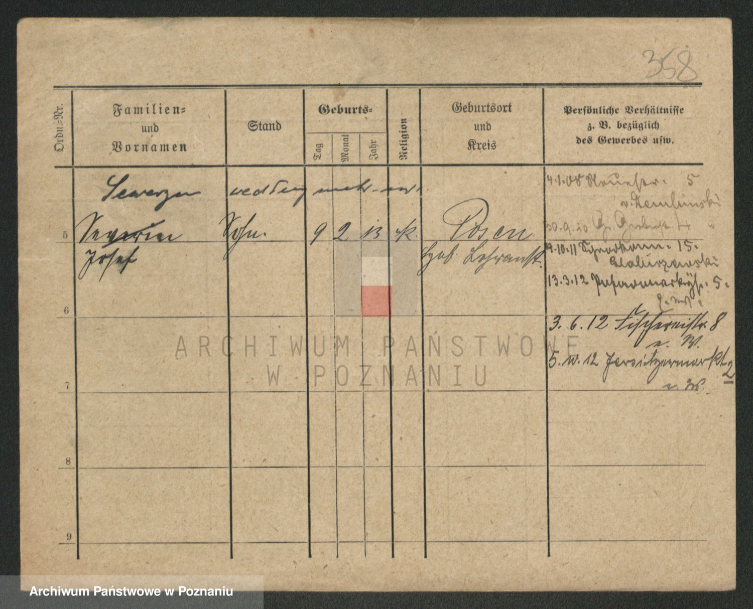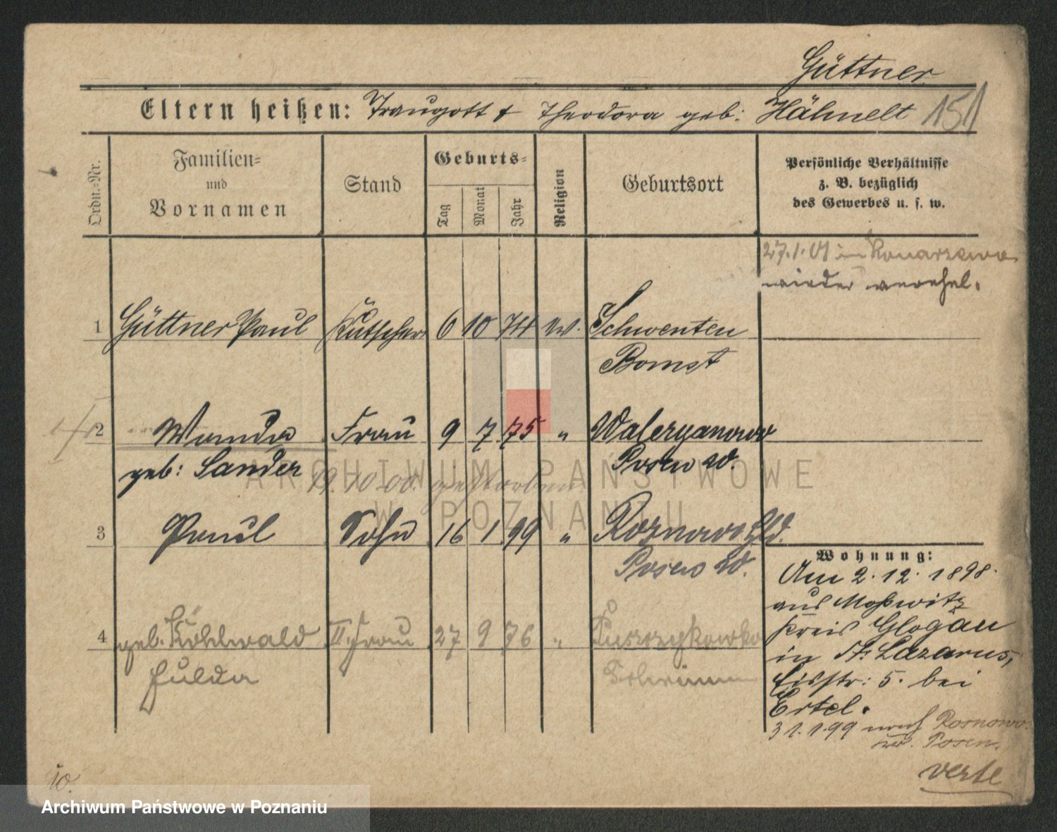 Podgląd karty osobowej dostępny jest po kliknięciu na nazwisko lub ikonkę karty. Można dokonywać powiększenia (ikony na górze) lub przechodzić między kolejnymi skanami (strzałki po bokach).
