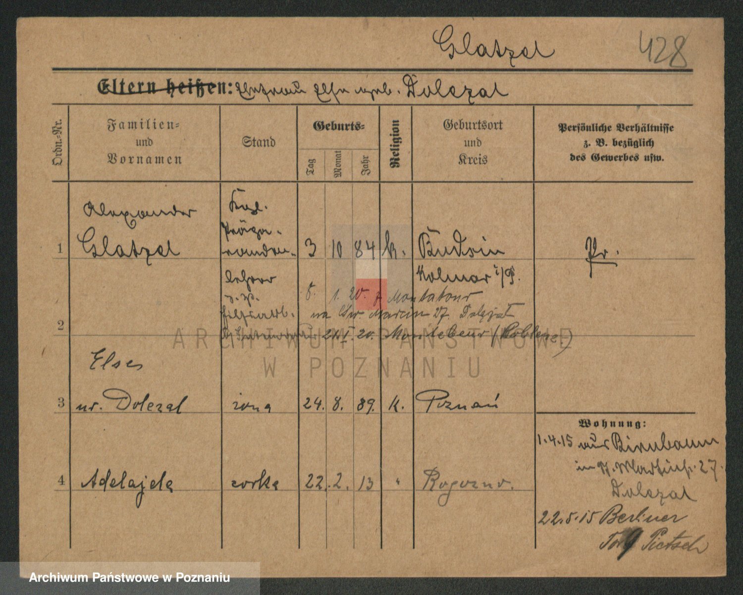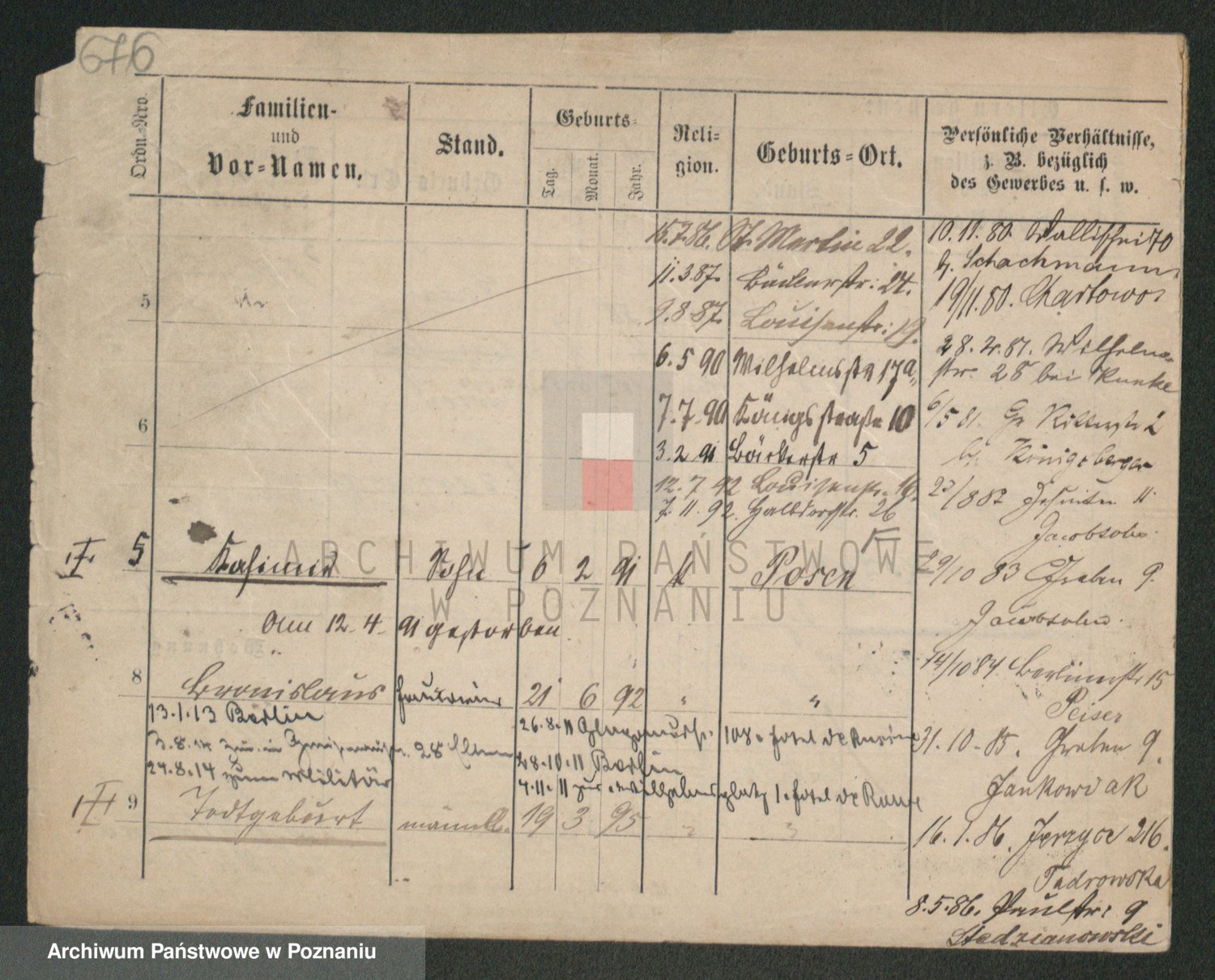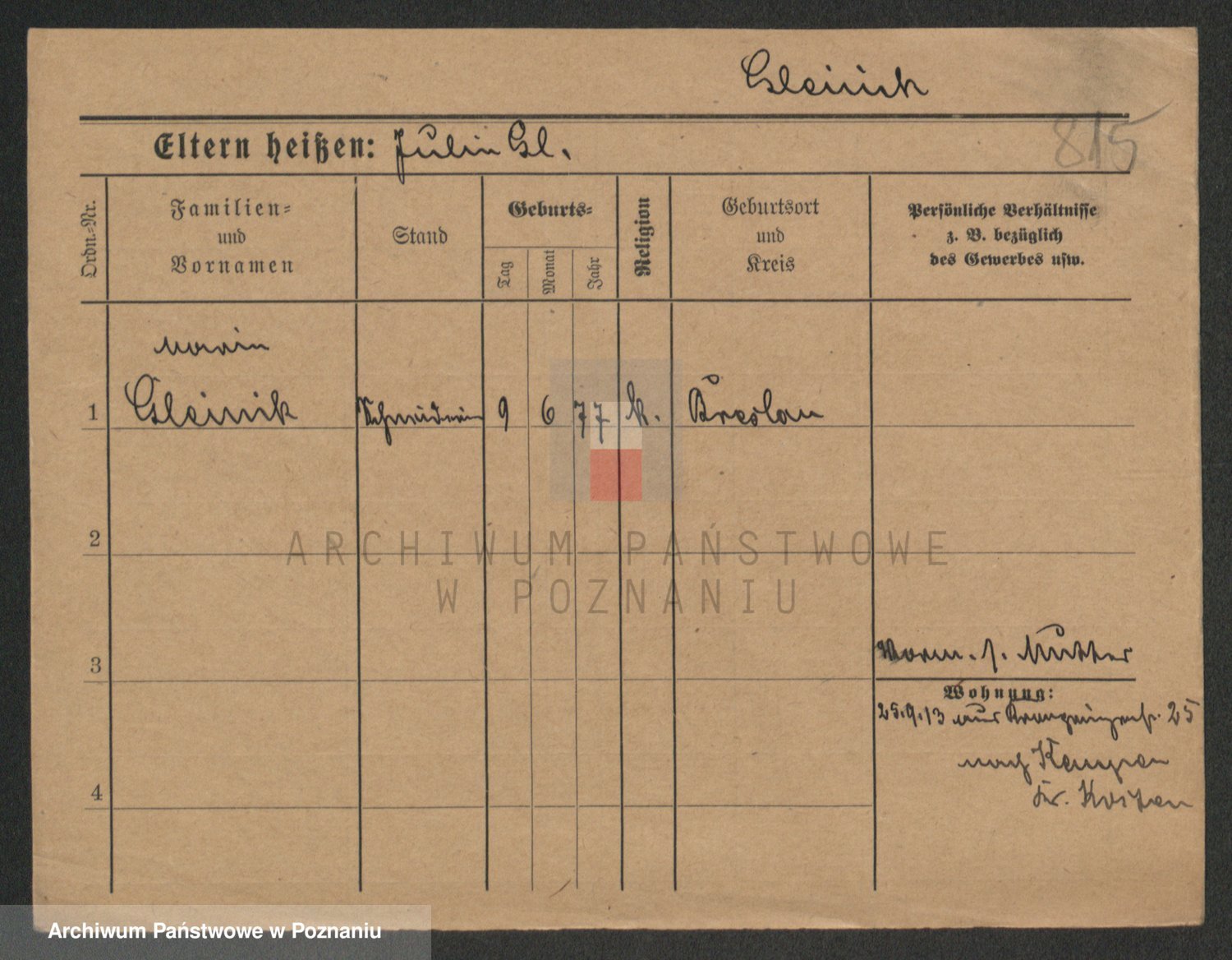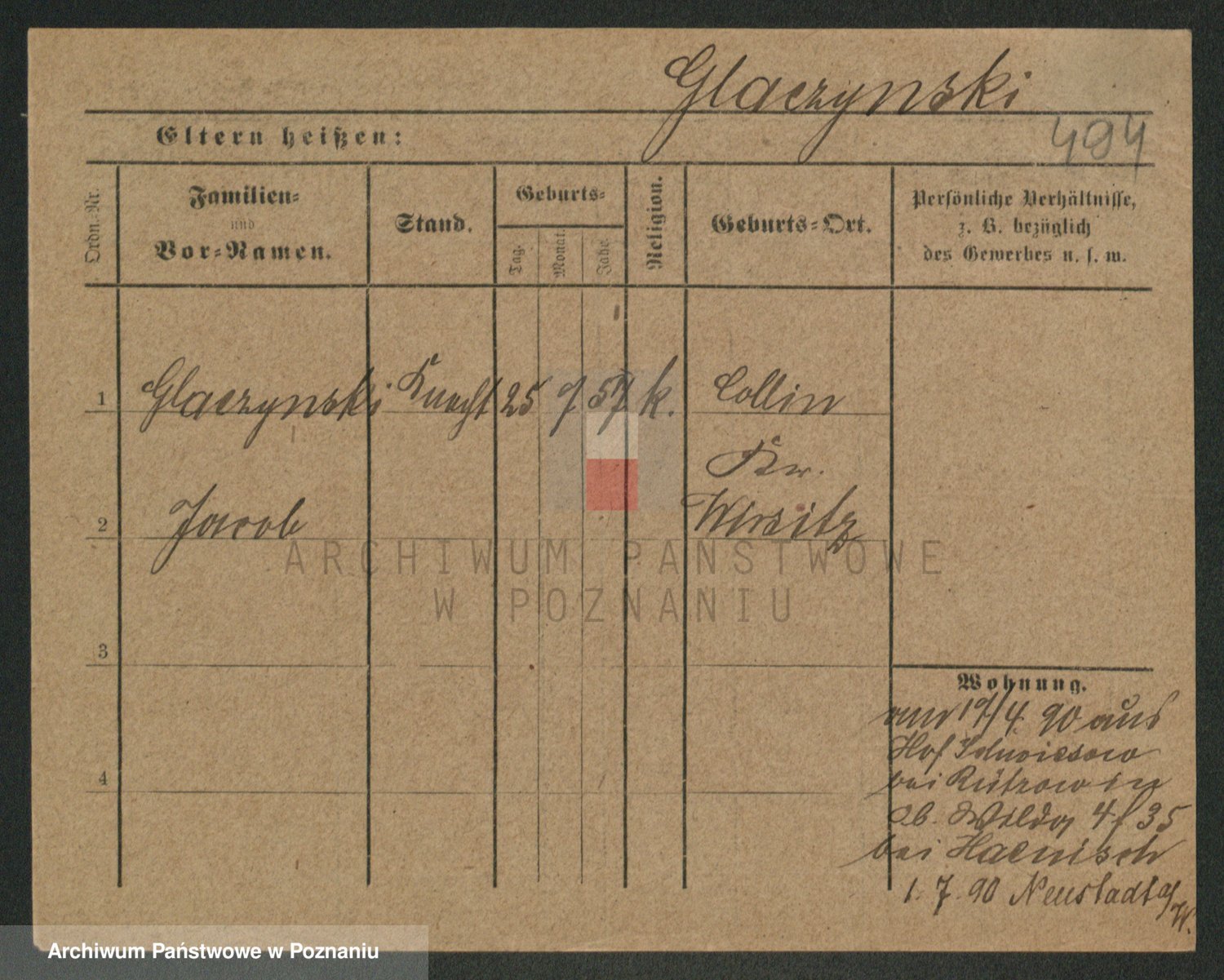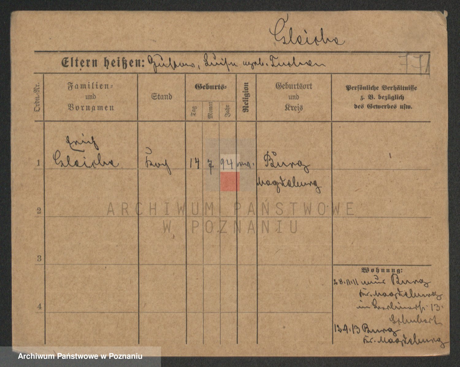 Podgląd karty osobowej dostępny jest po kliknięciu na nazwisko lub ikonkę karty. Można dokonywać powiększenia (ikony na górze) lub przechodzić między kolejnymi skanami (strzałki po bokach).