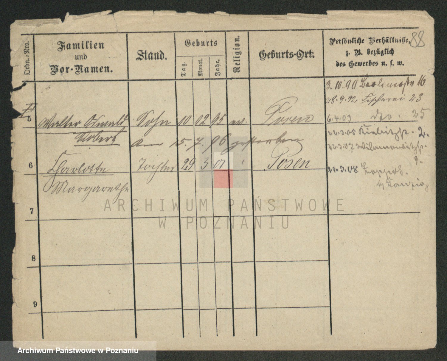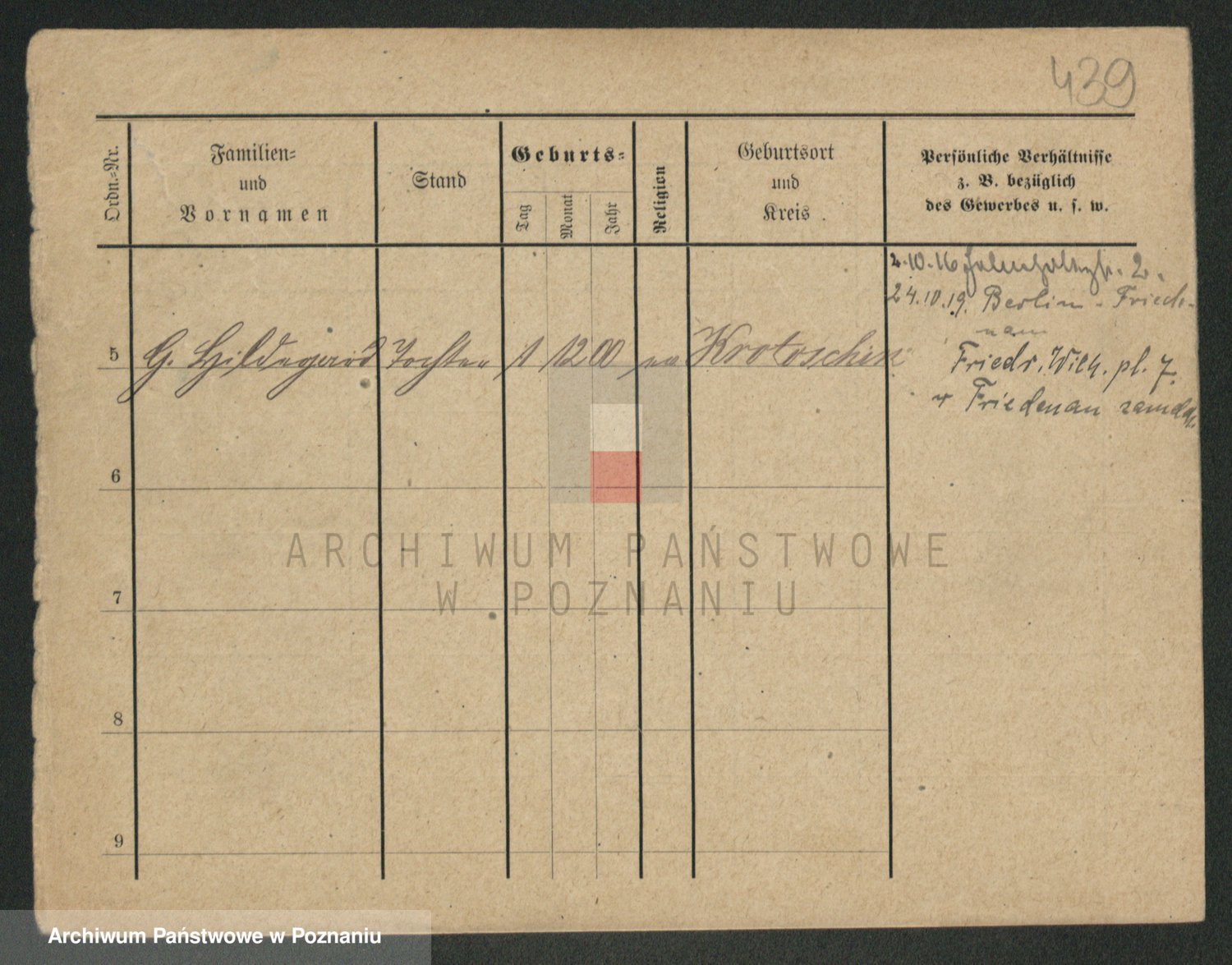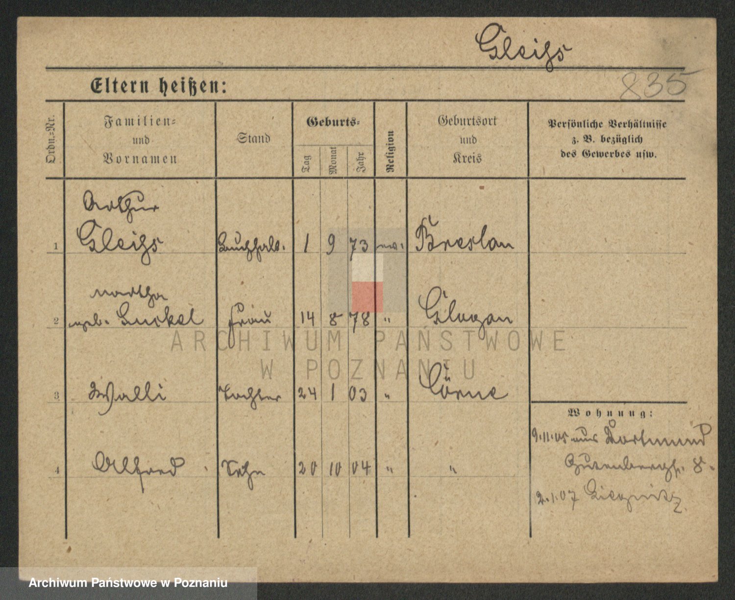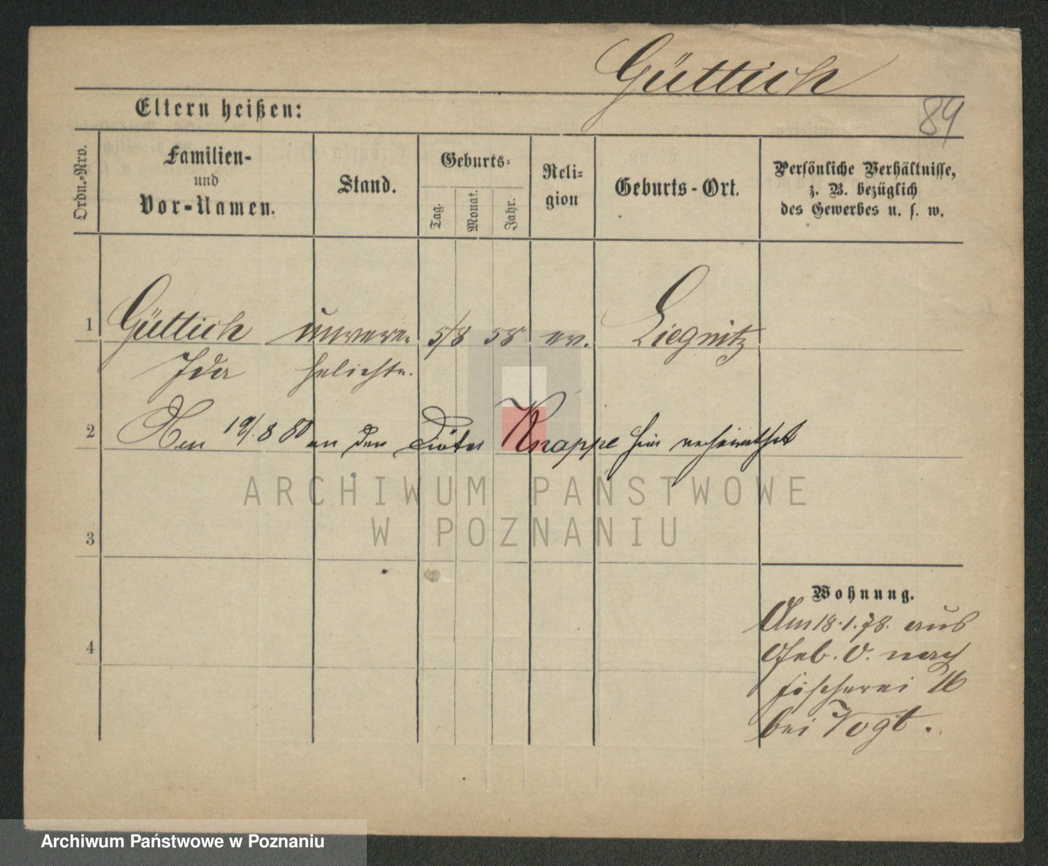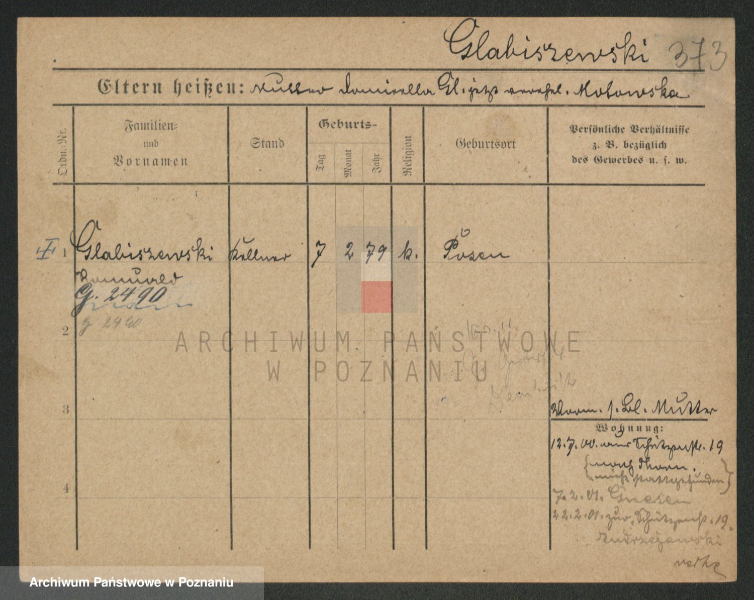 Podgląd karty osobowej dostępny jest po kliknięciu na nazwisko lub ikonkę karty. Można dokonywać powiększenia (ikony na górze) lub przechodzić między kolejnymi skanami (strzałki po bokach).