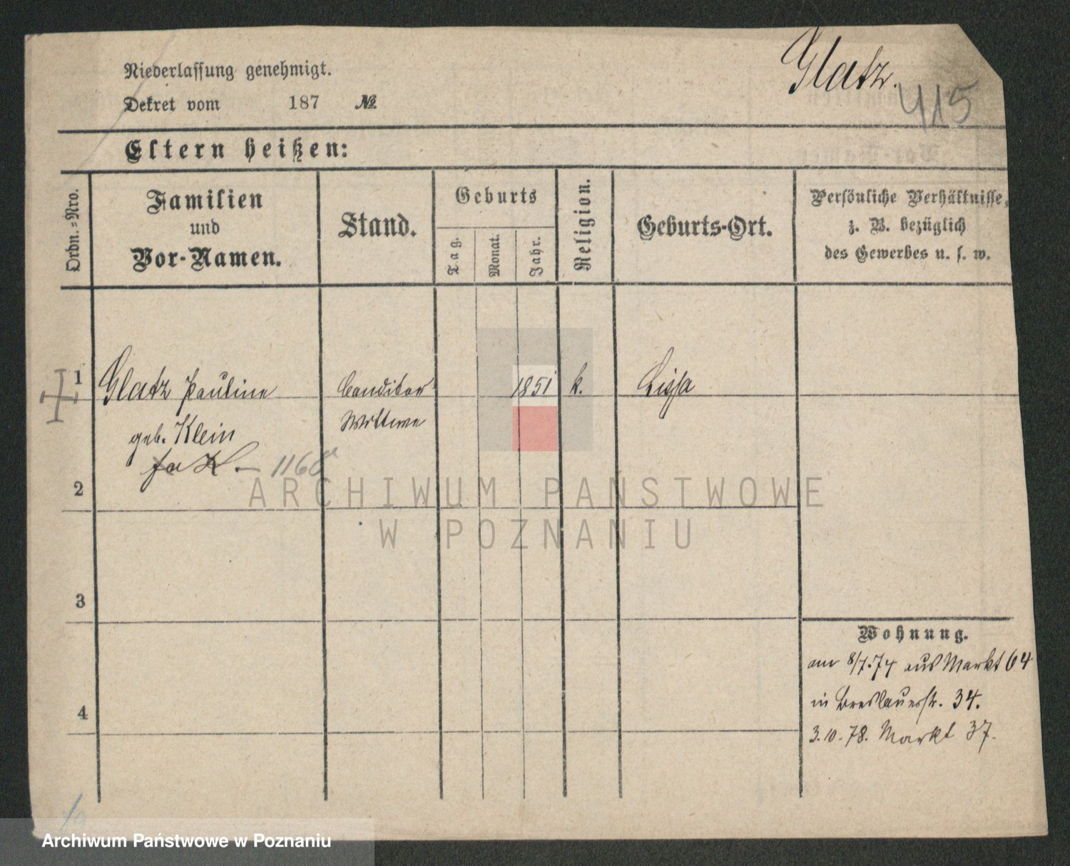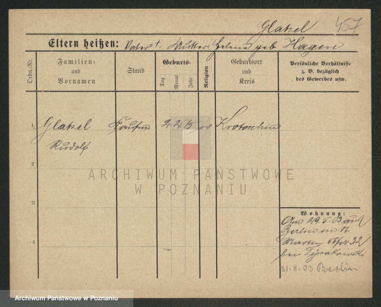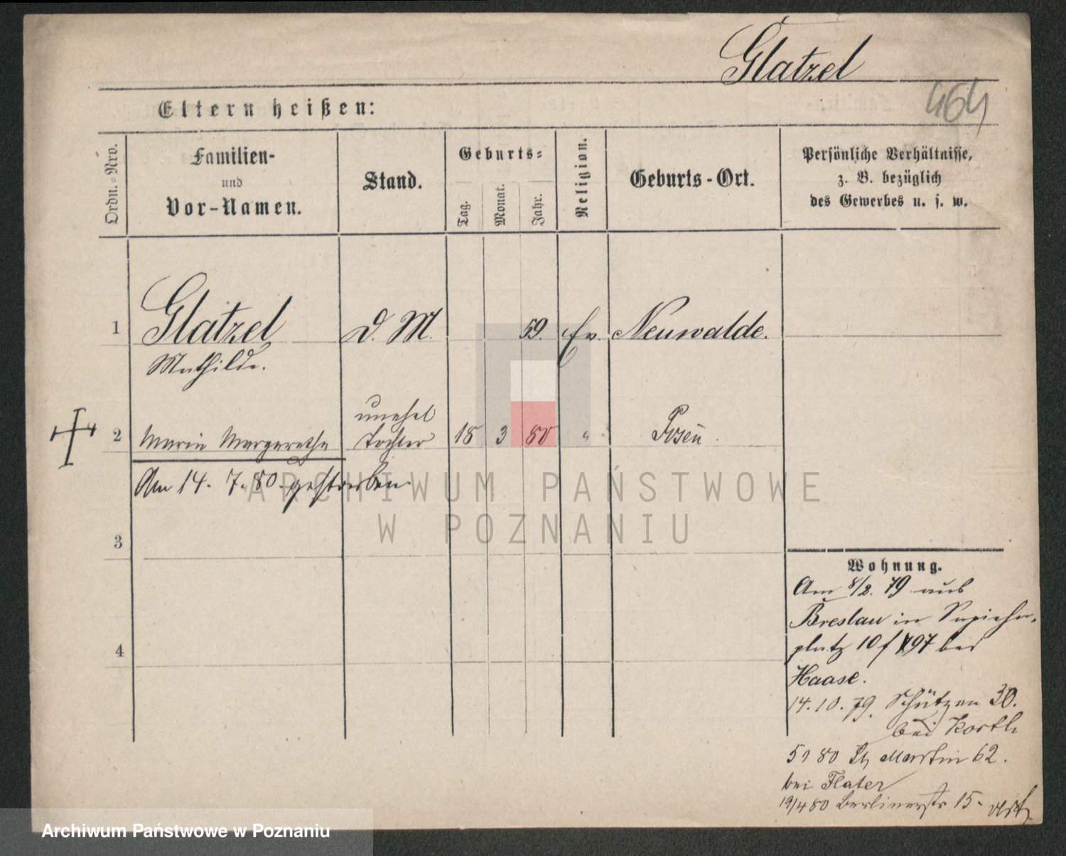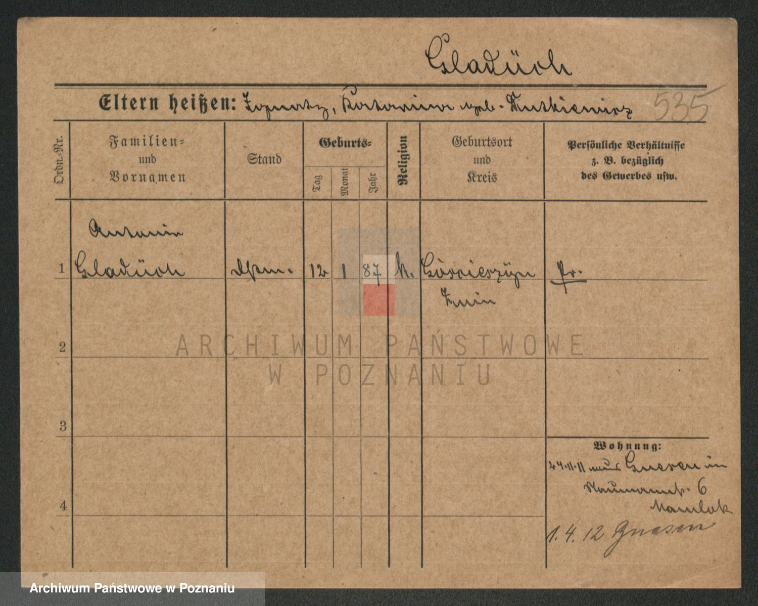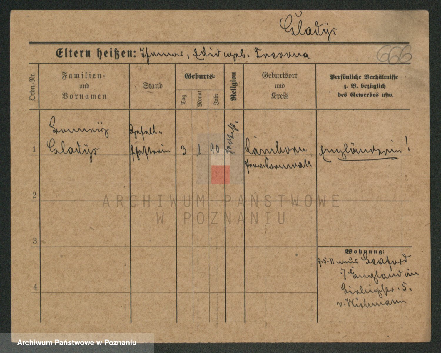Podgląd karty osobowej dostępny jest po kliknięciu na nazwisko lub ikonkę karty. Można dokonywać powiększenia (ikony na górze) lub przechodzić między kolejnymi skanami (strzałki po bokach).