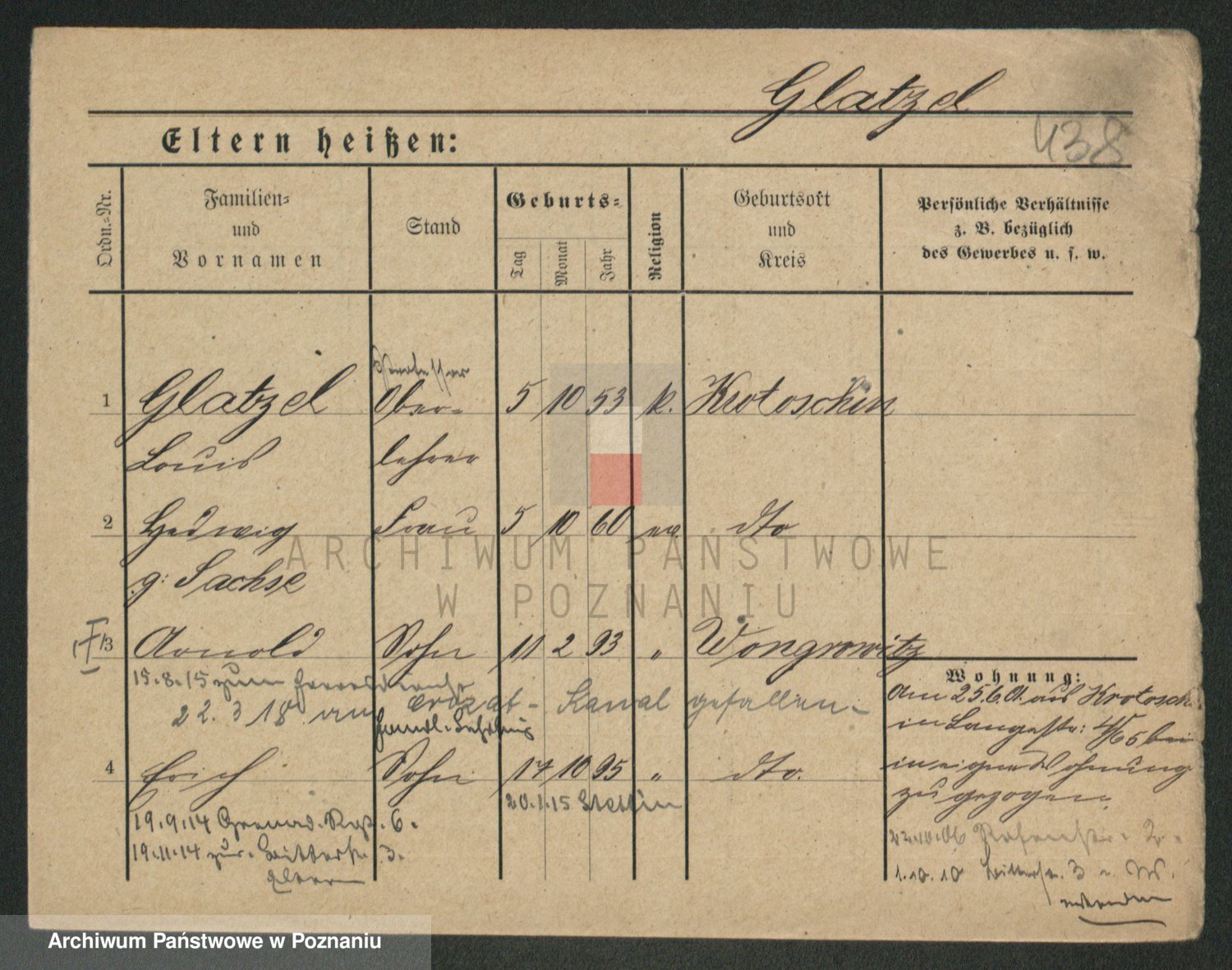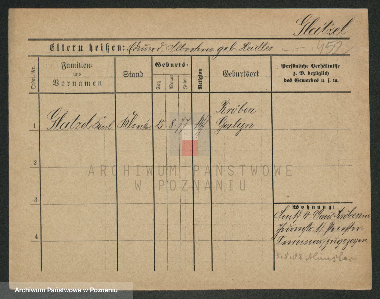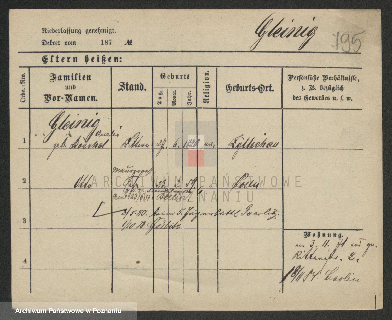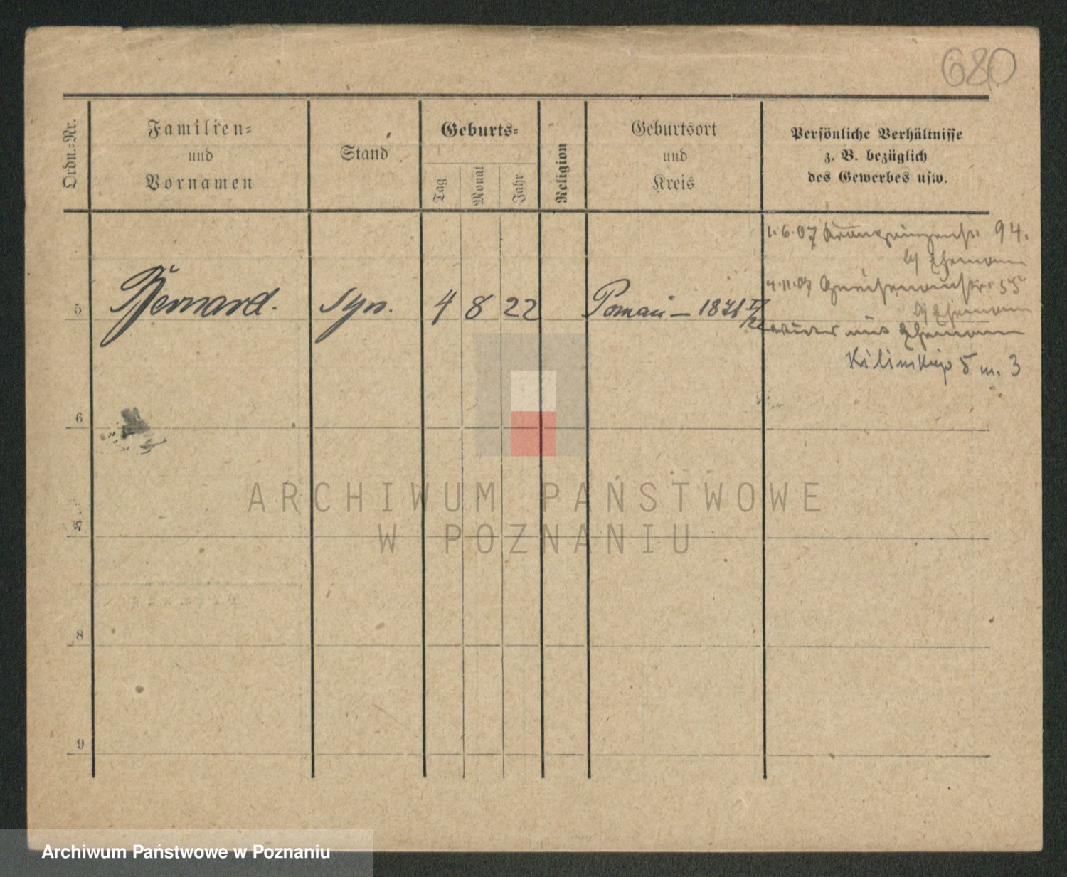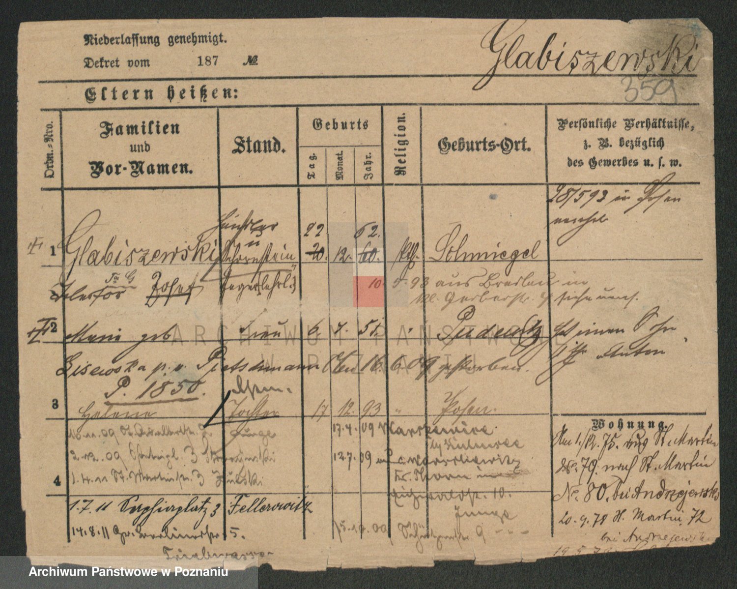 Podgląd karty osobowej dostępny jest po kliknięciu na nazwisko lub ikonkę karty. Można dokonywać powiększenia (ikony na górze) lub przechodzić między kolejnymi skanami (strzałki po bokach).