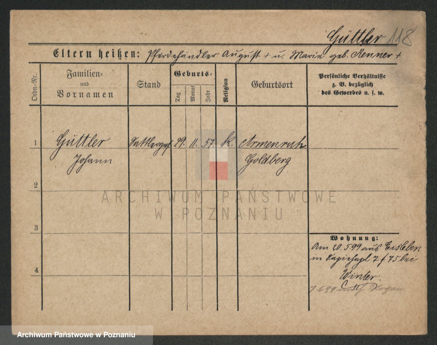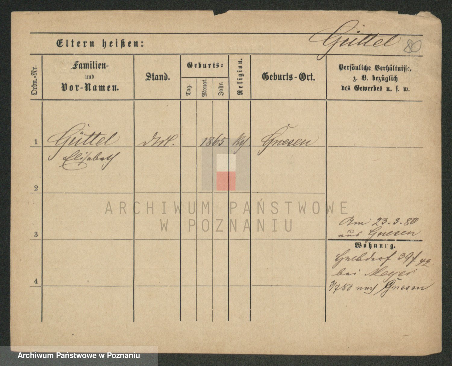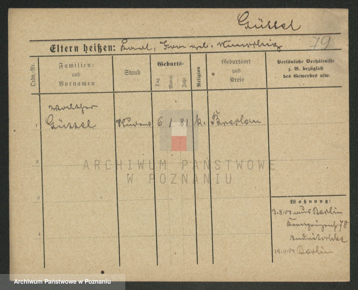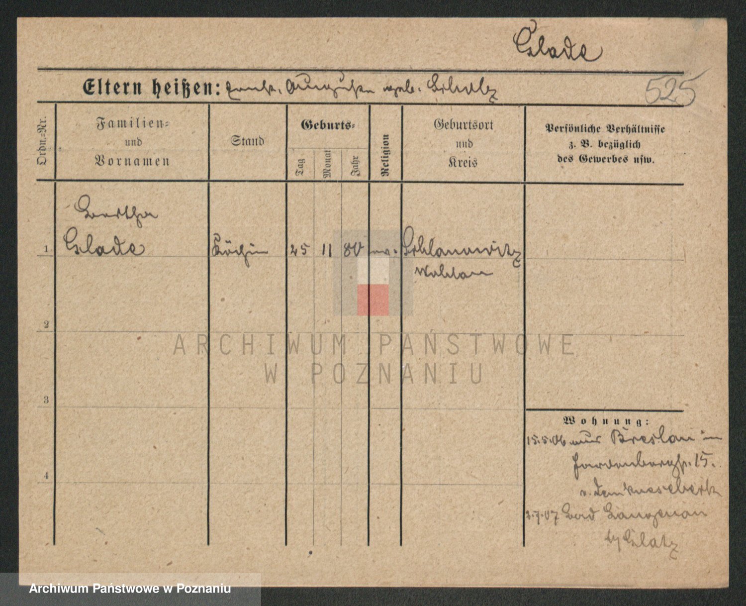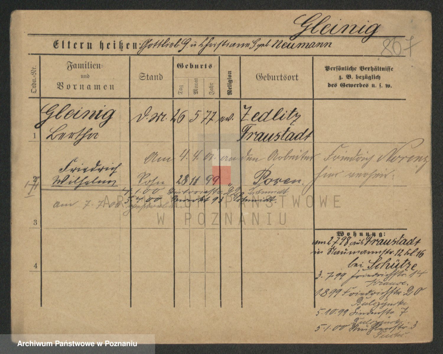 Podgląd karty osobowej dostępny jest po kliknięciu na nazwisko lub ikonkę karty. Można dokonywać powiększenia (ikony na górze) lub przechodzić między kolejnymi skanami (strzałki po bokach).