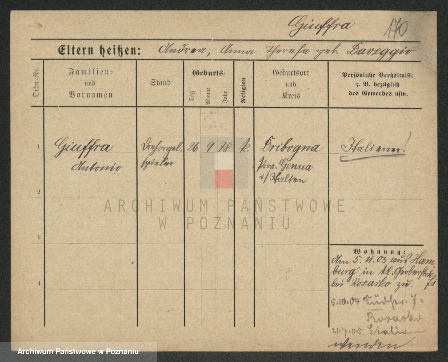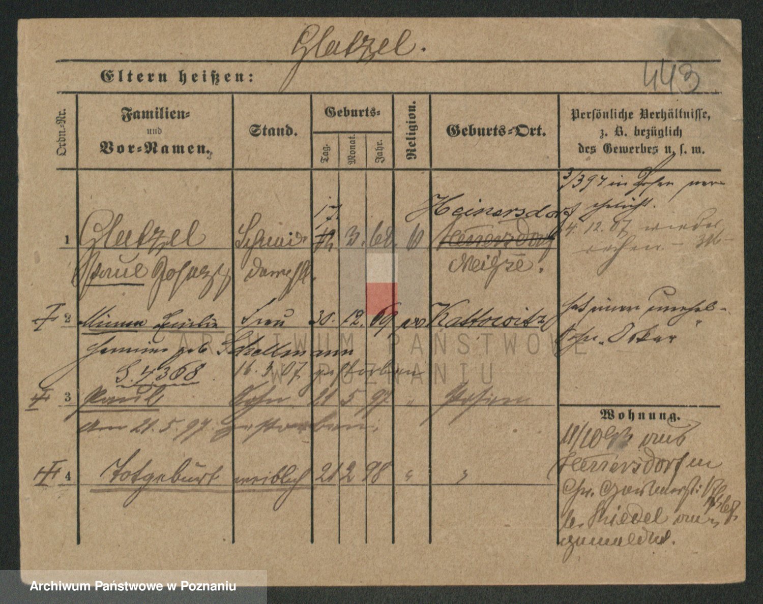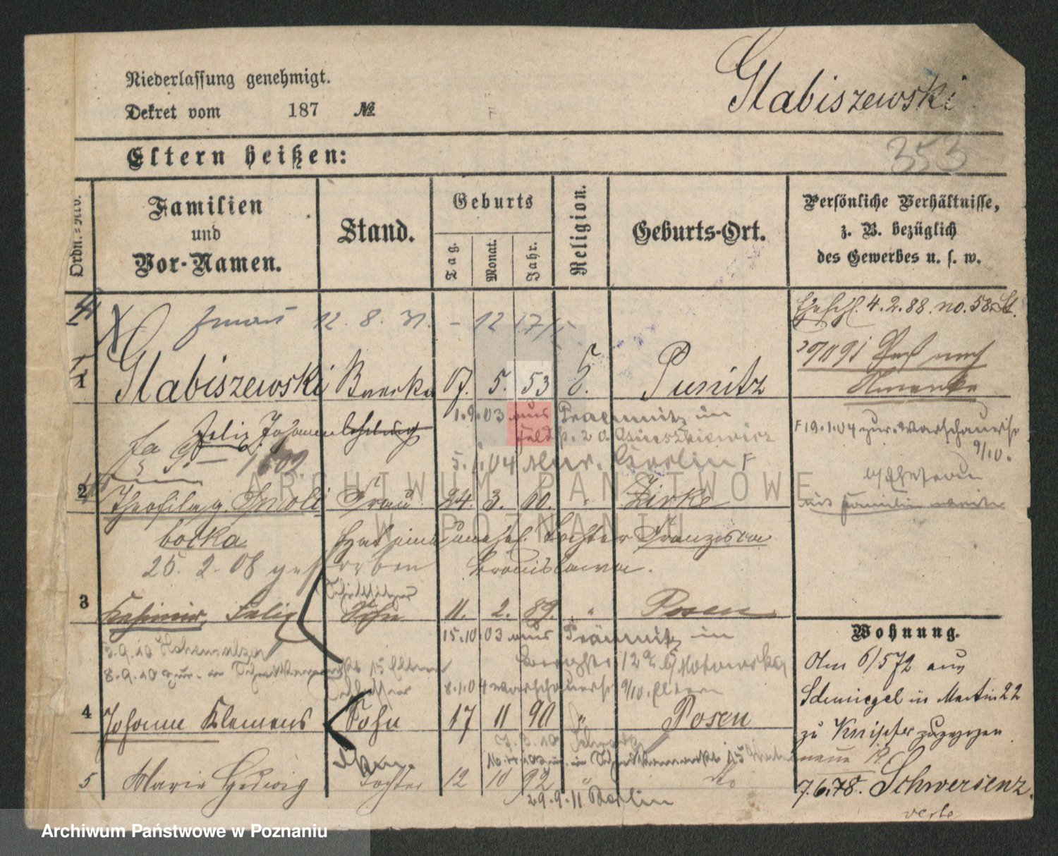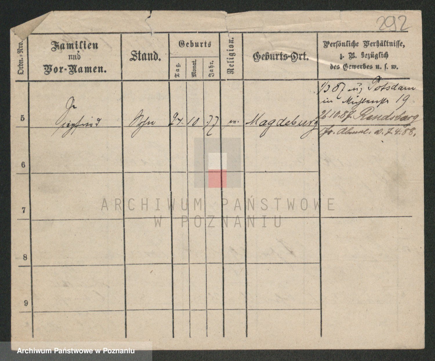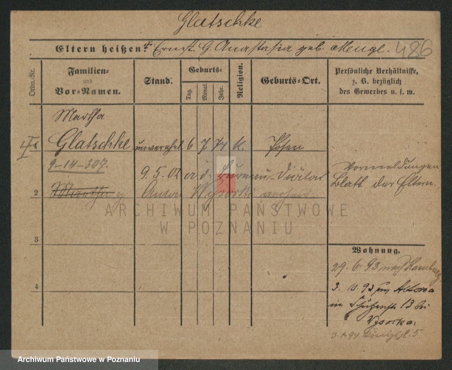 Podgląd karty osobowej dostępny jest po kliknięciu na nazwisko lub ikonkę karty. Można dokonywać powiększenia (ikony na górze) lub przechodzić między kolejnymi skanami (strzałki po bokach).