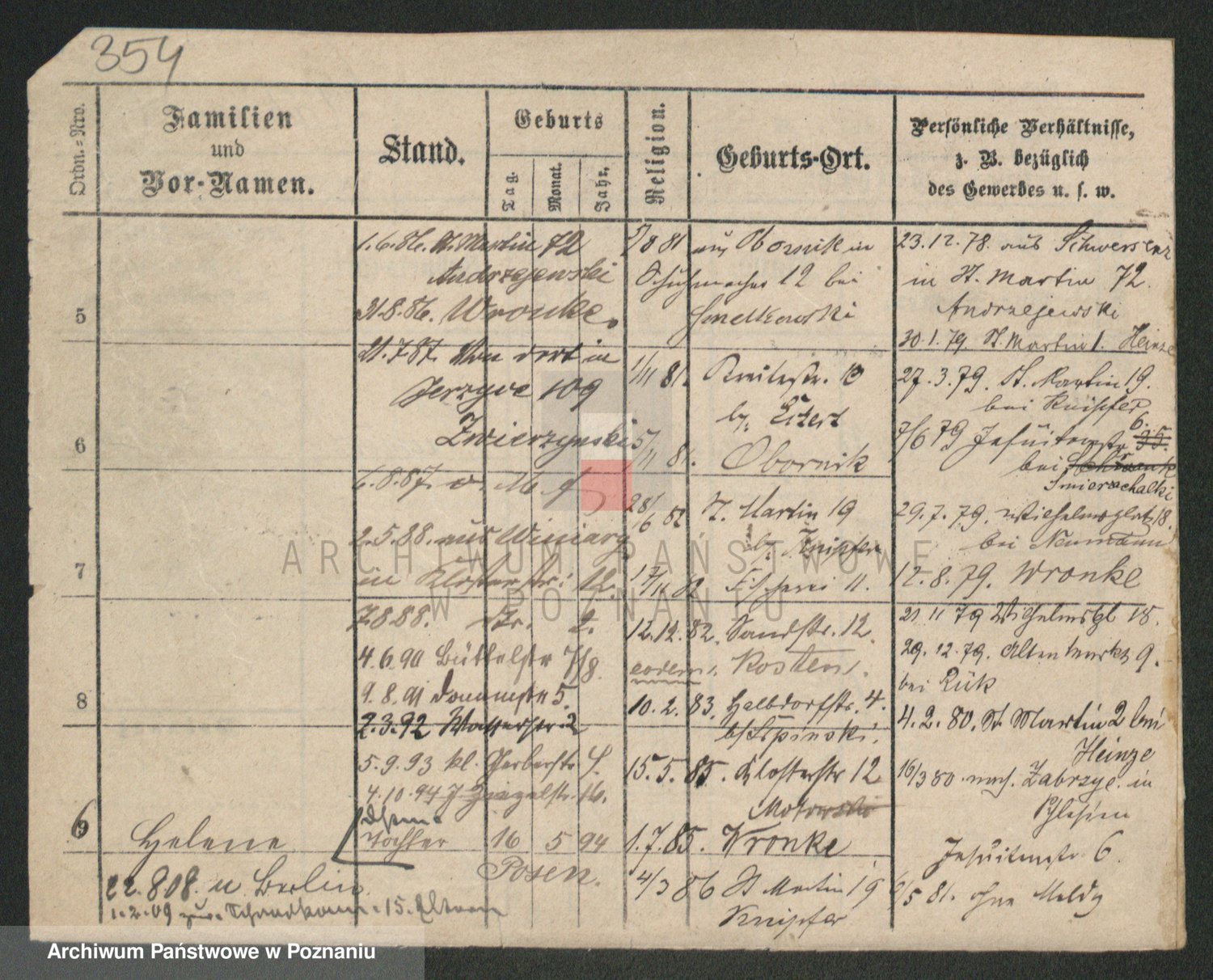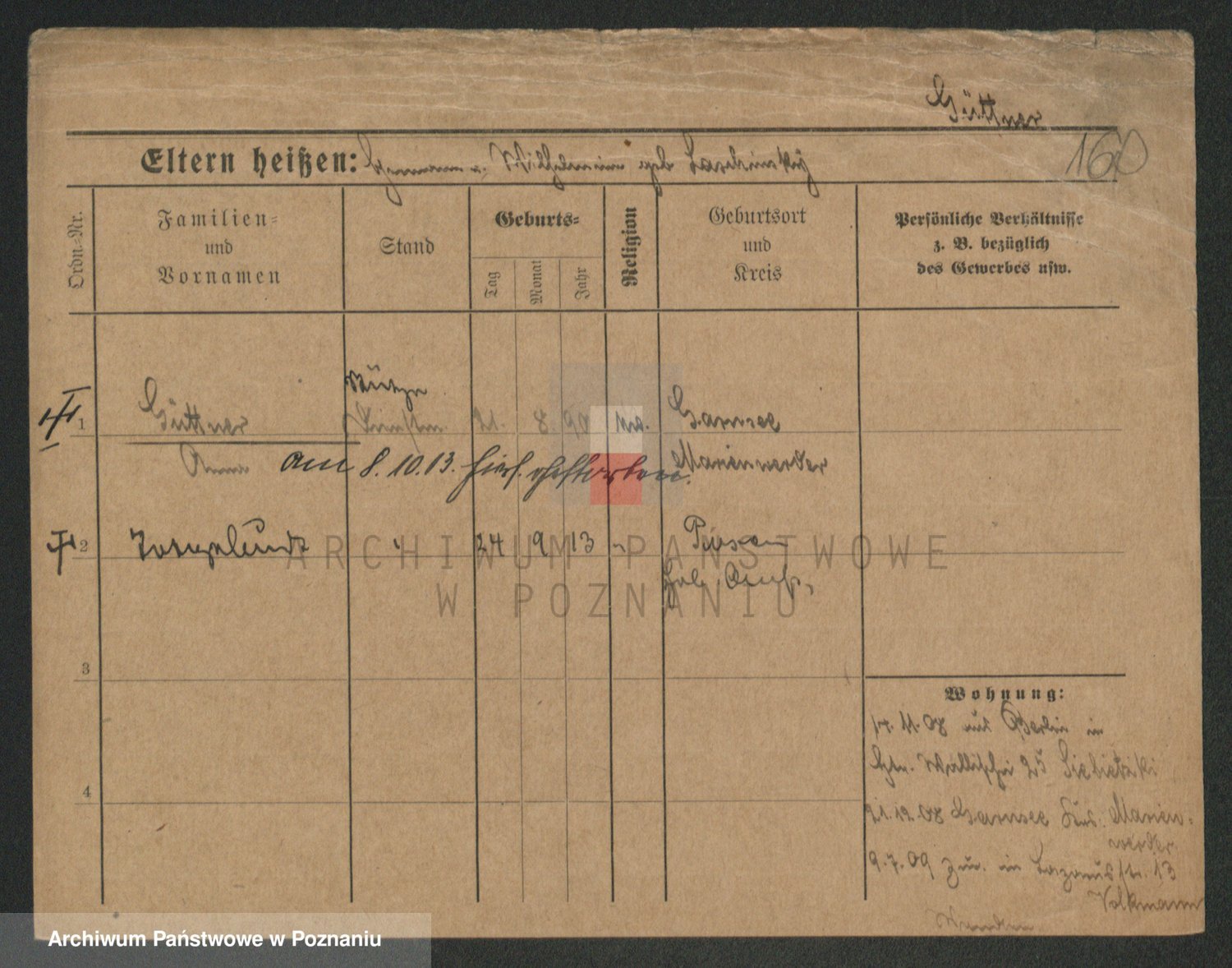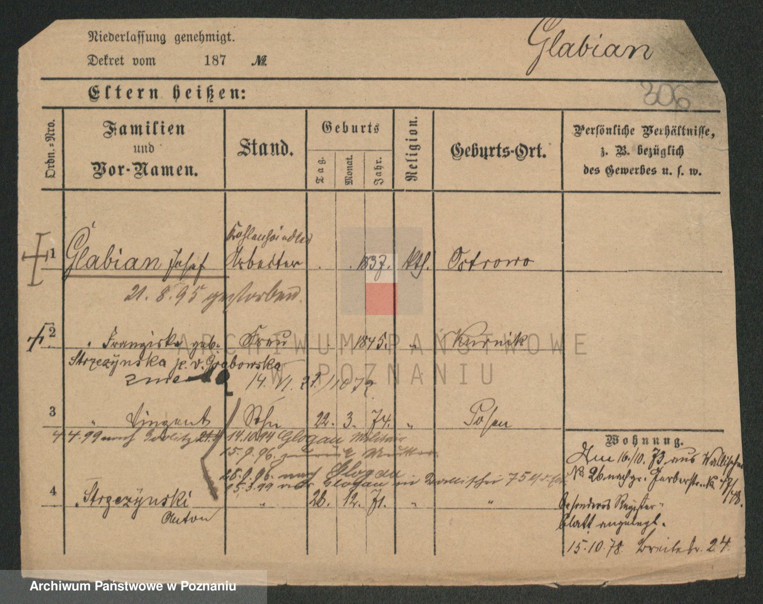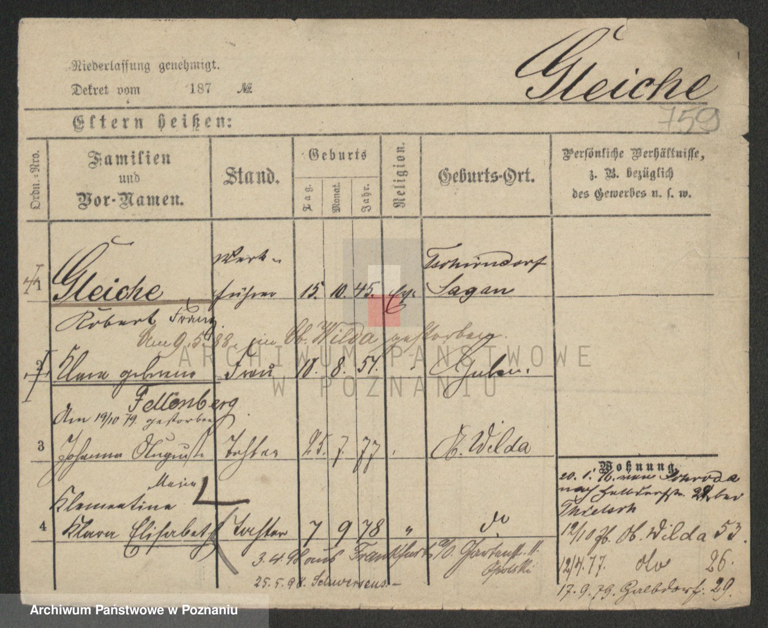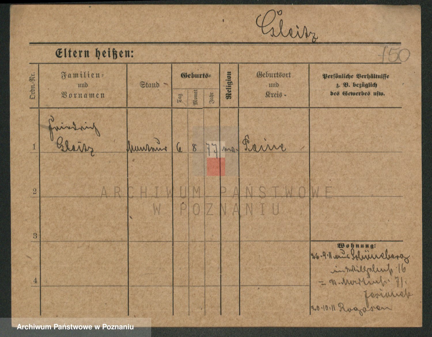 Podgląd karty osobowej dostępny jest po kliknięciu na nazwisko lub ikonkę karty. Można dokonywać powiększenia (ikony na górze) lub przechodzić między kolejnymi skanami (strzałki po bokach).