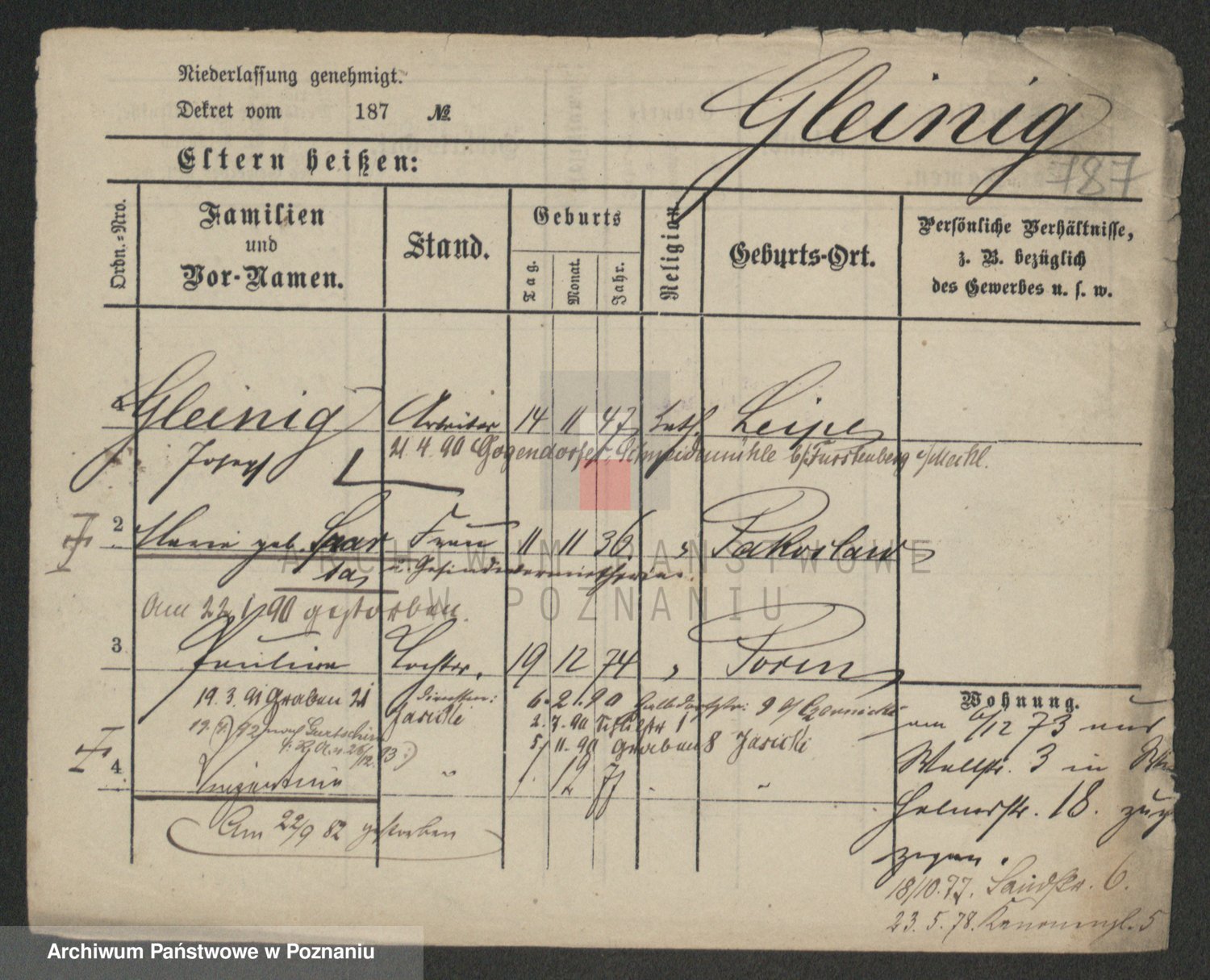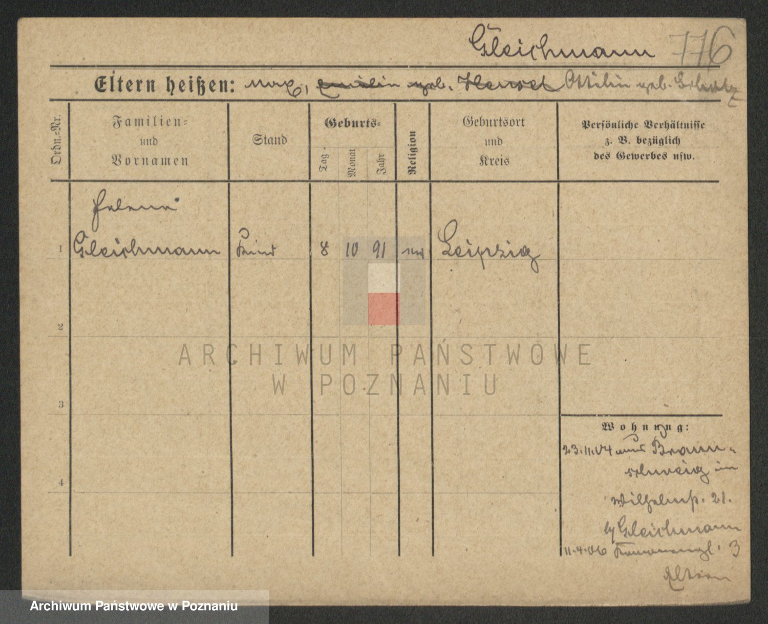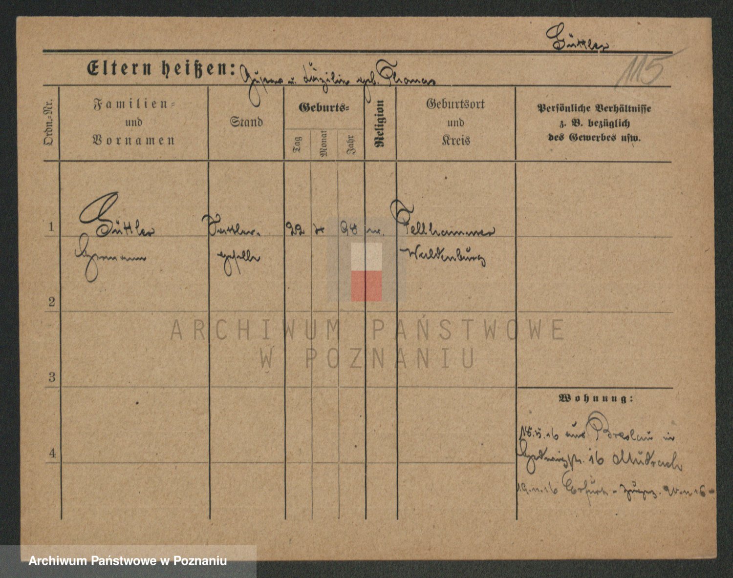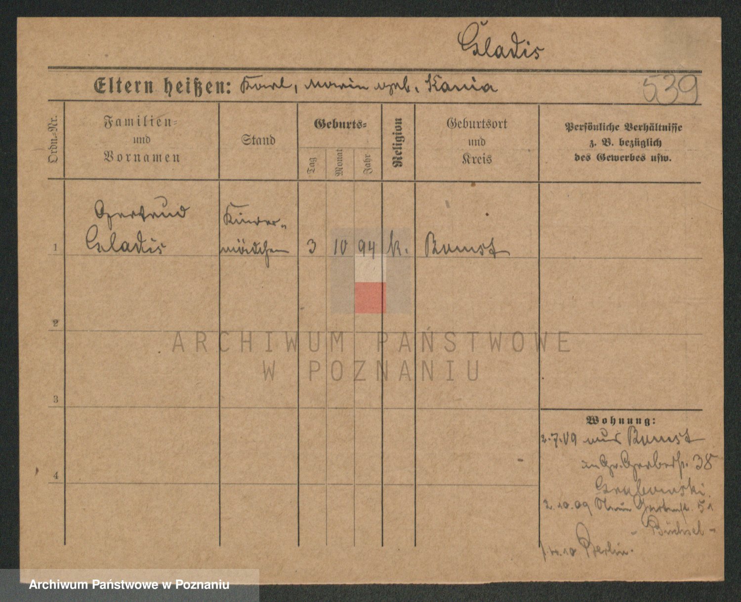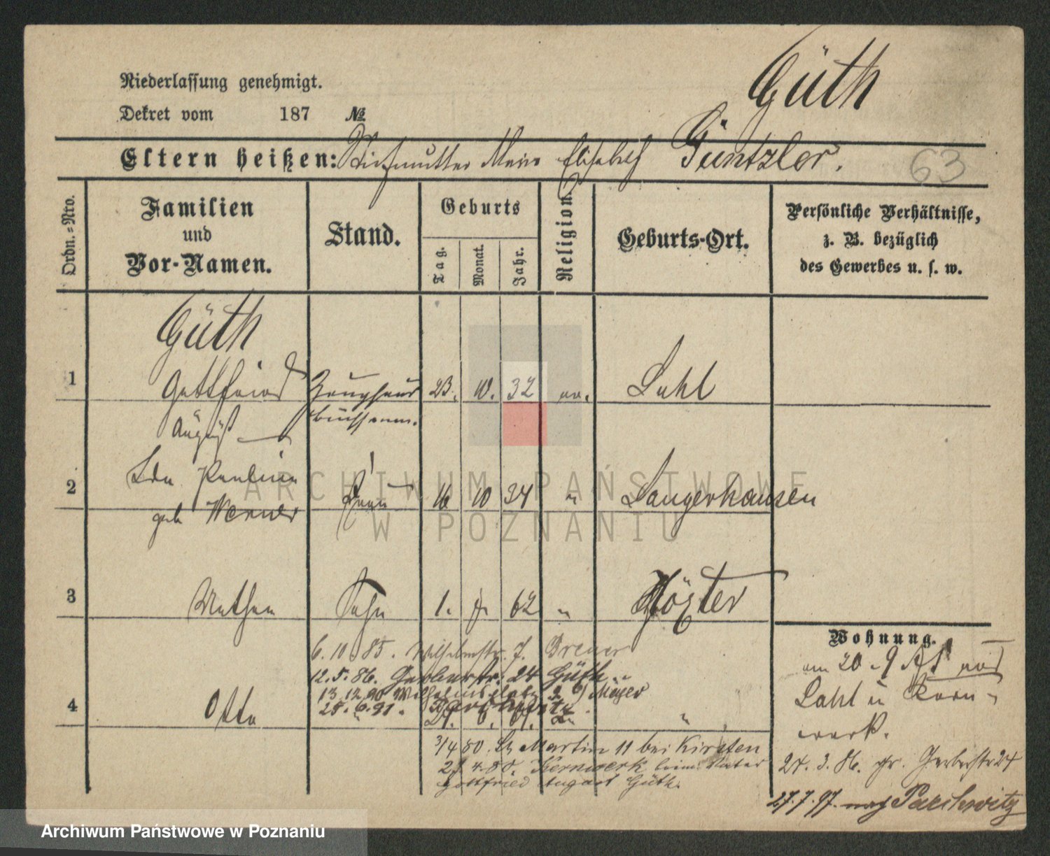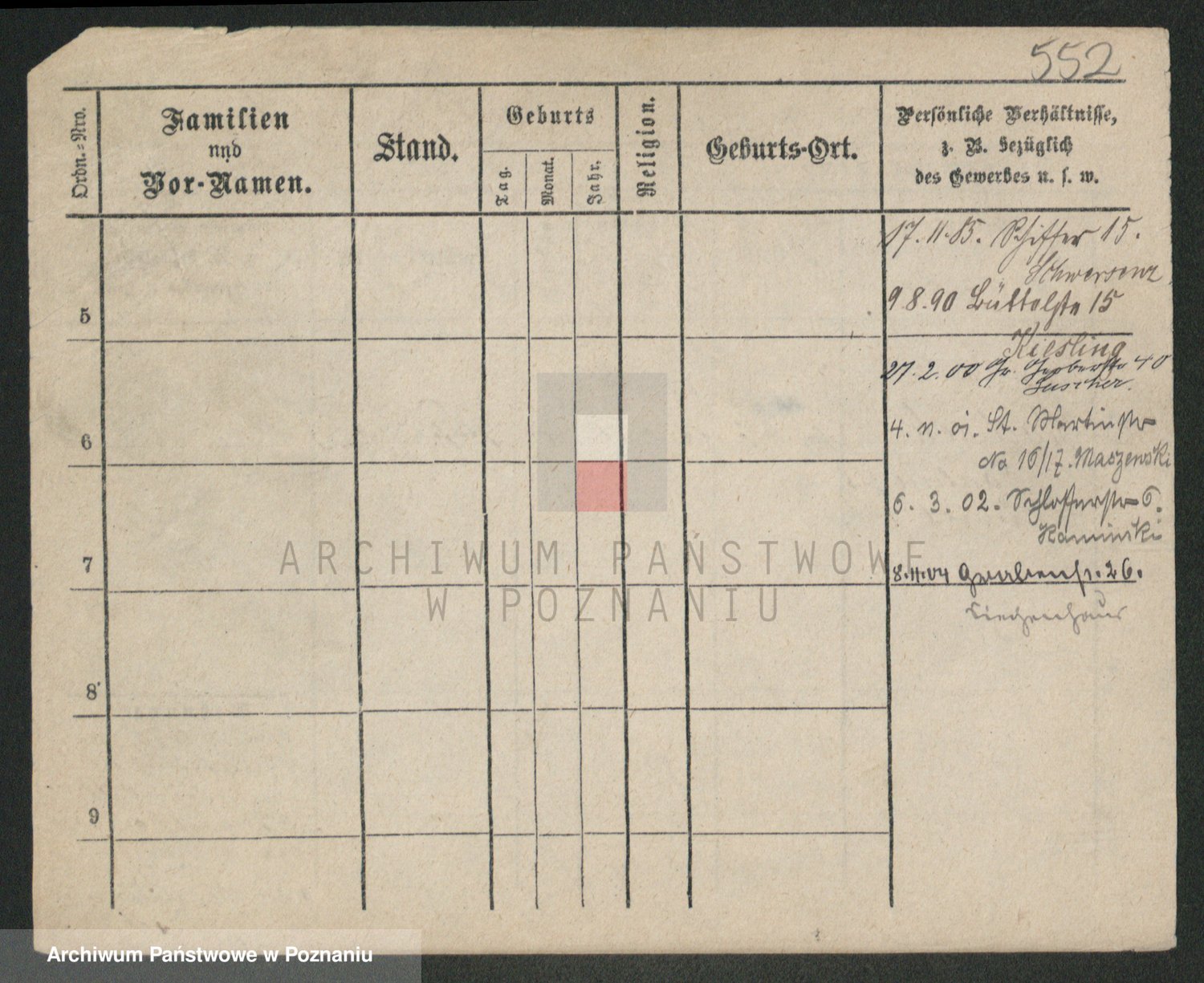 Podgląd karty osobowej dostępny jest po kliknięciu na nazwisko lub ikonkę karty. Można dokonywać powiększenia (ikony na górze) lub przechodzić między kolejnymi skanami (strzałki po bokach).