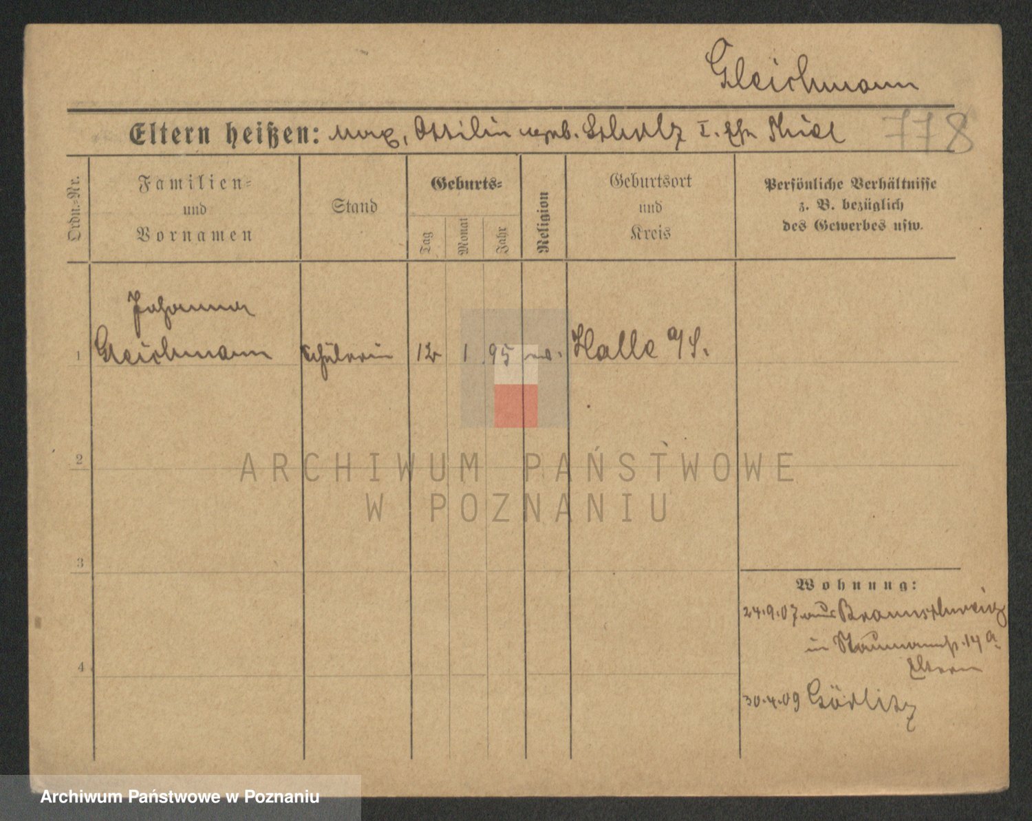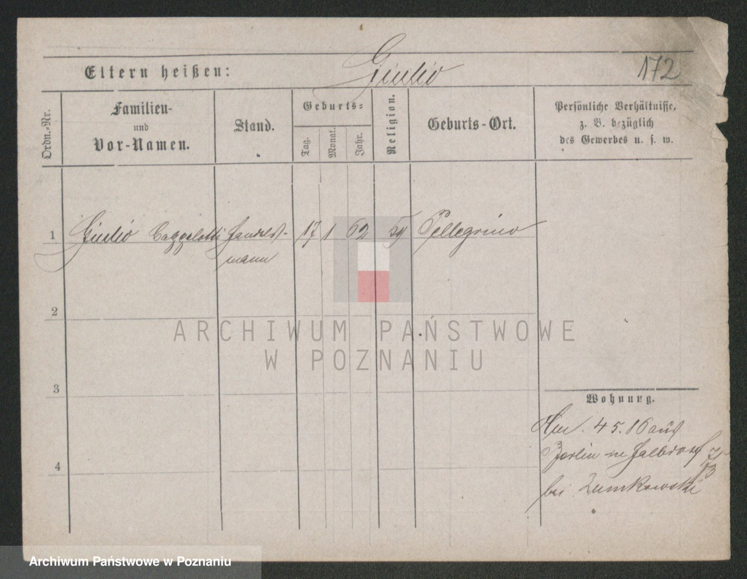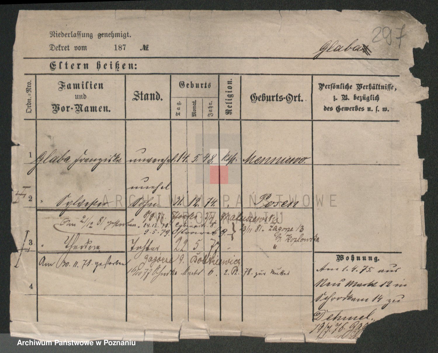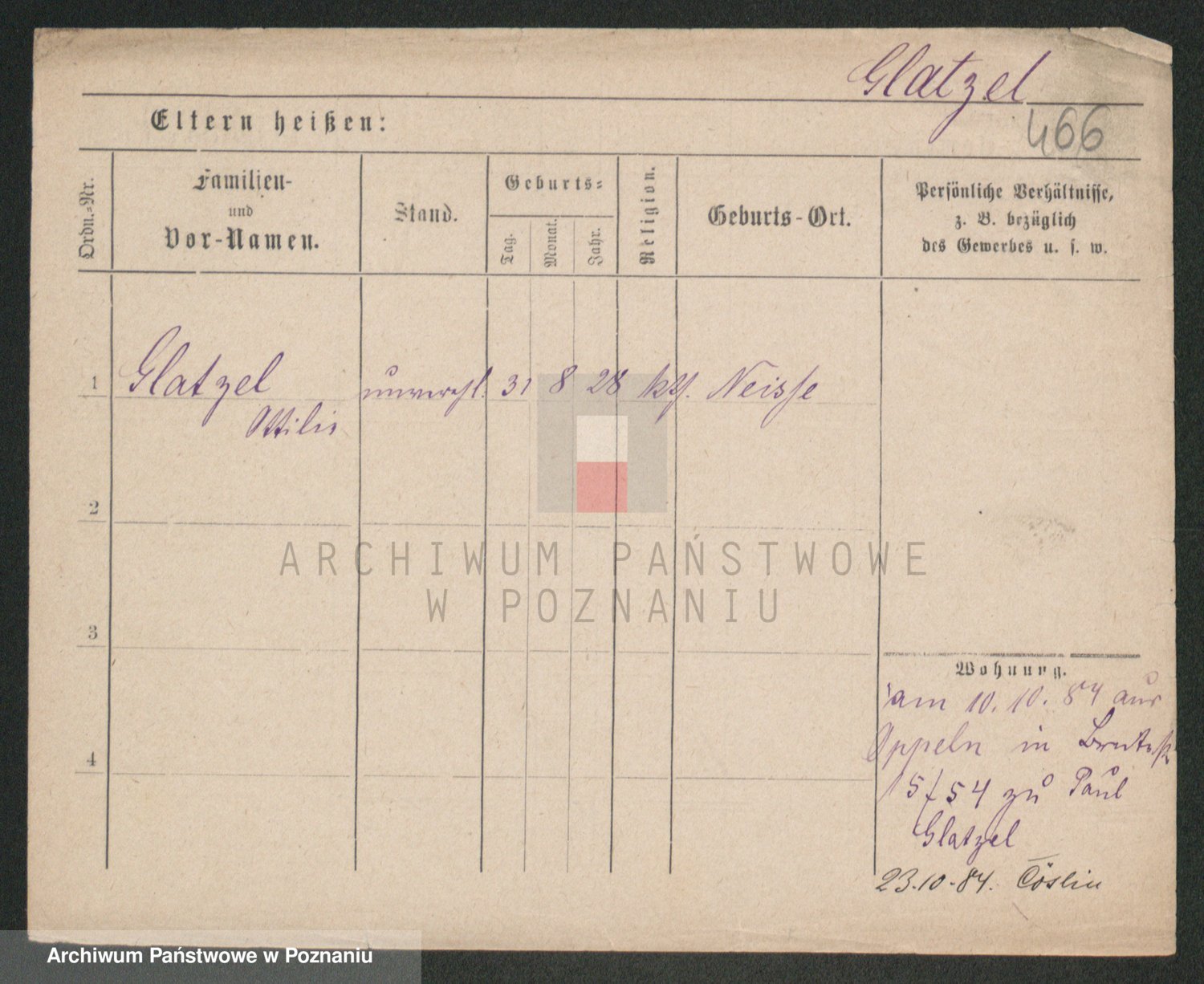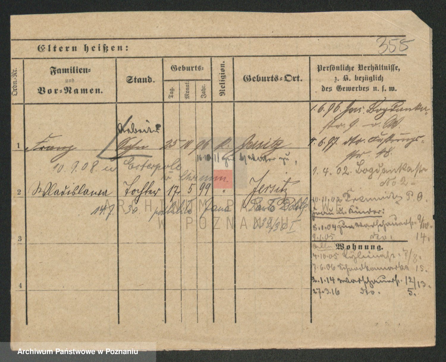 Podgląd karty osobowej dostępny jest po kliknięciu na nazwisko lub ikonkę karty. Można dokonywać powiększenia (ikony na górze) lub przechodzić między kolejnymi skanami (strzałki po bokach).