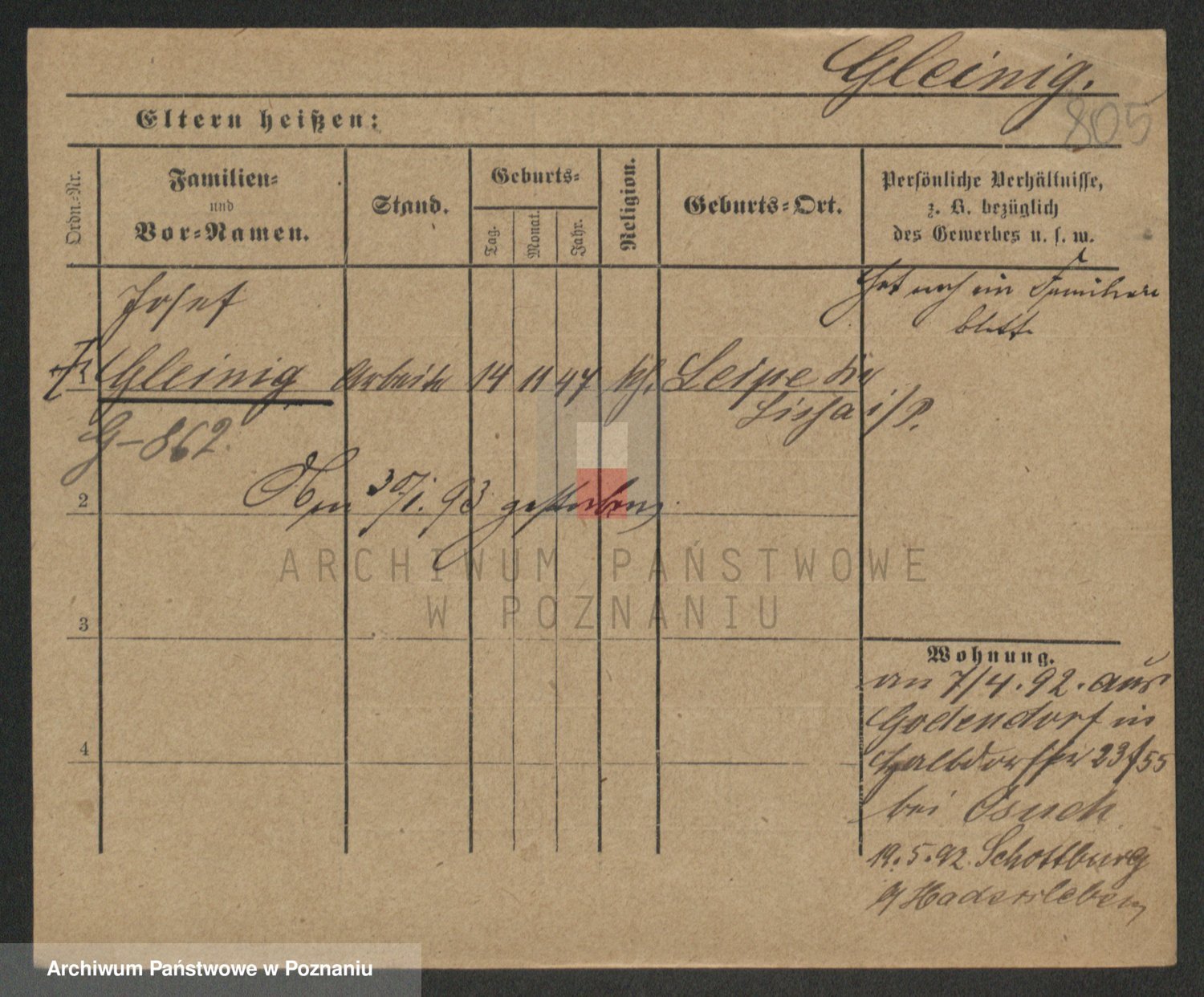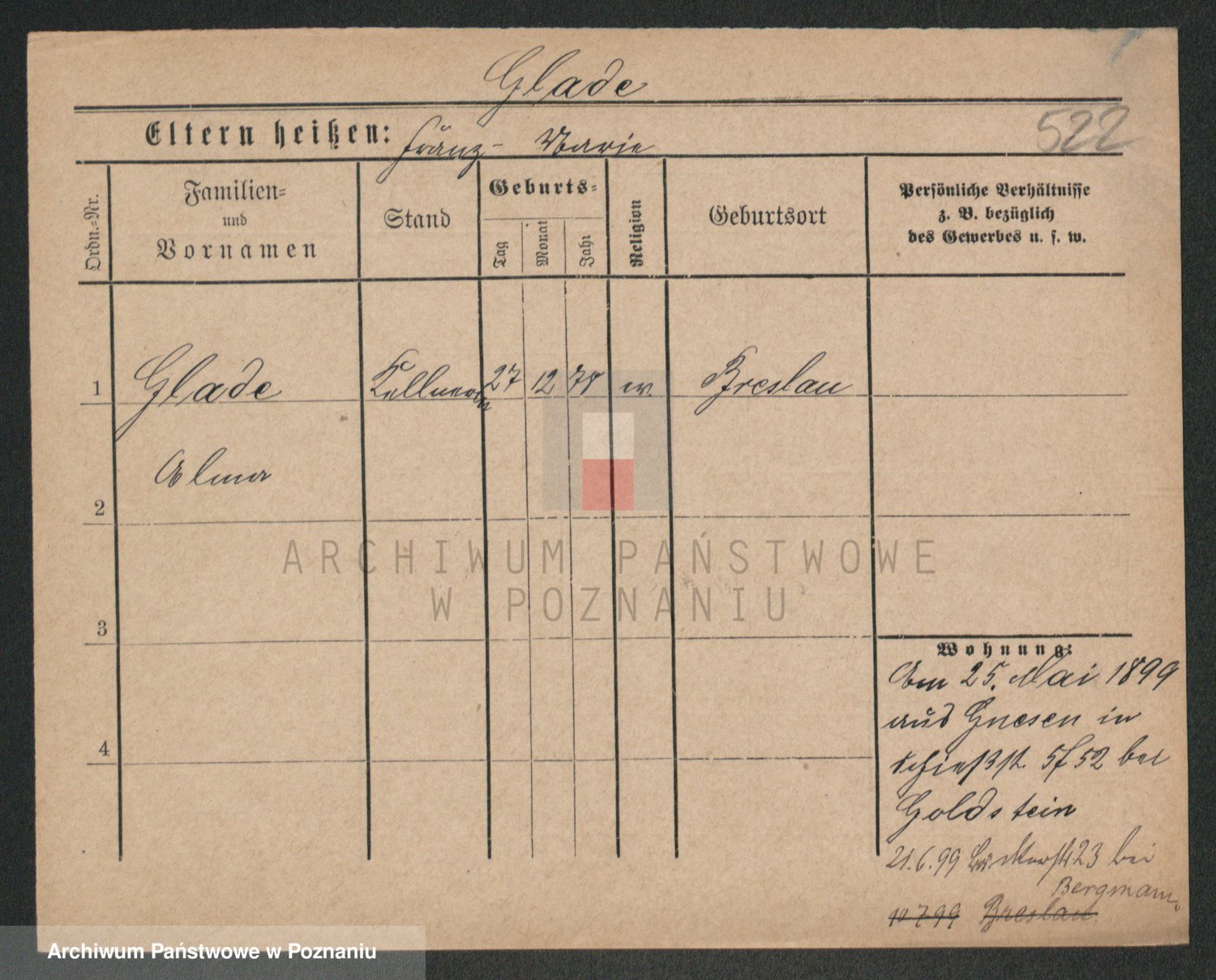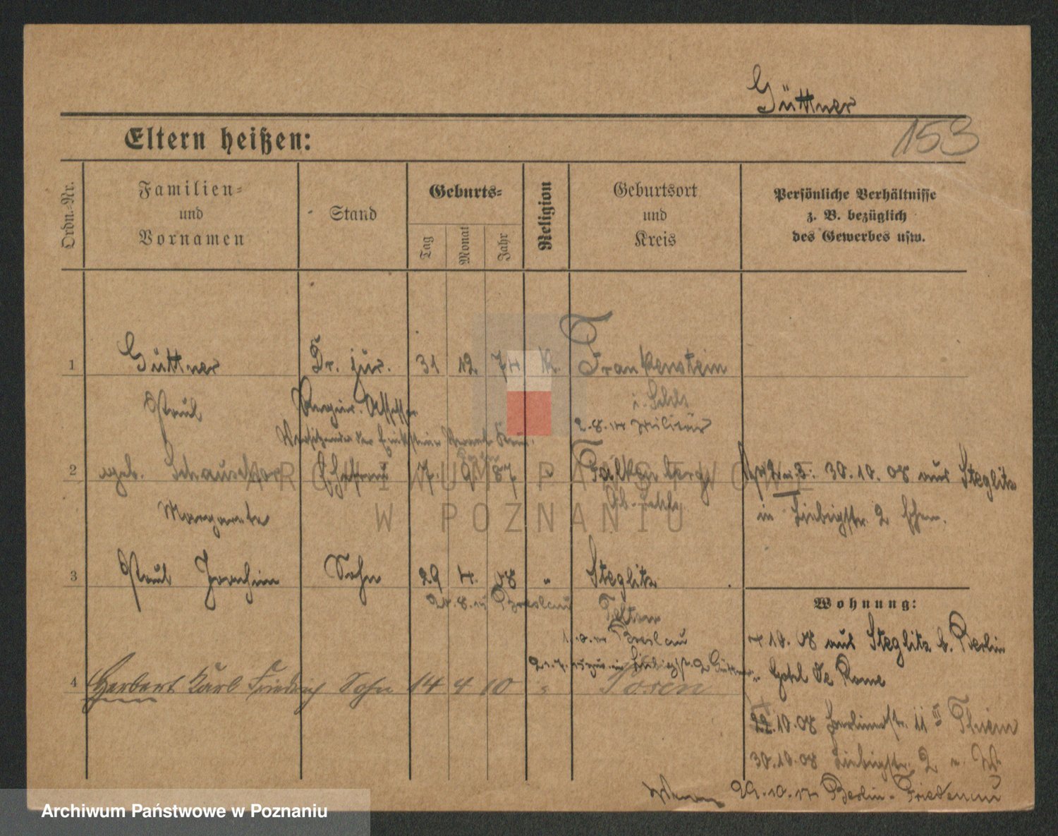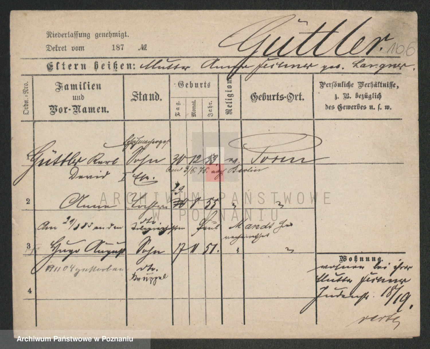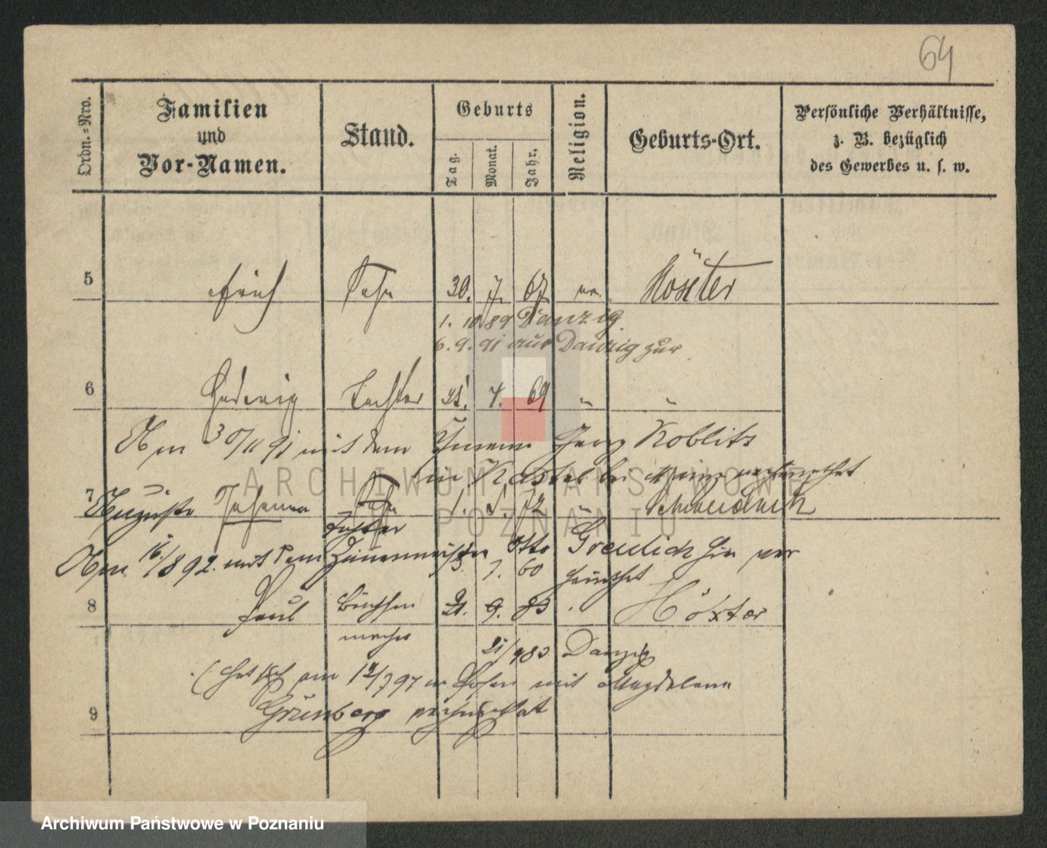 Podgląd karty osobowej dostępny jest po kliknięciu na nazwisko lub ikonkę karty. Można dokonywać powiększenia (ikony na górze) lub przechodzić między kolejnymi skanami (strzałki po bokach).