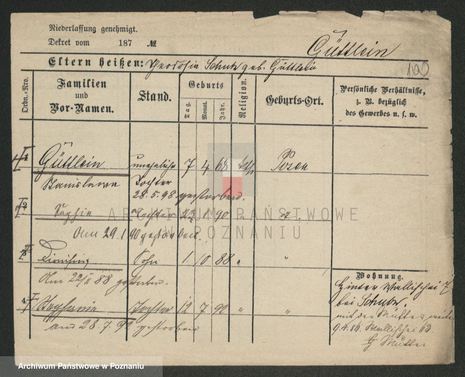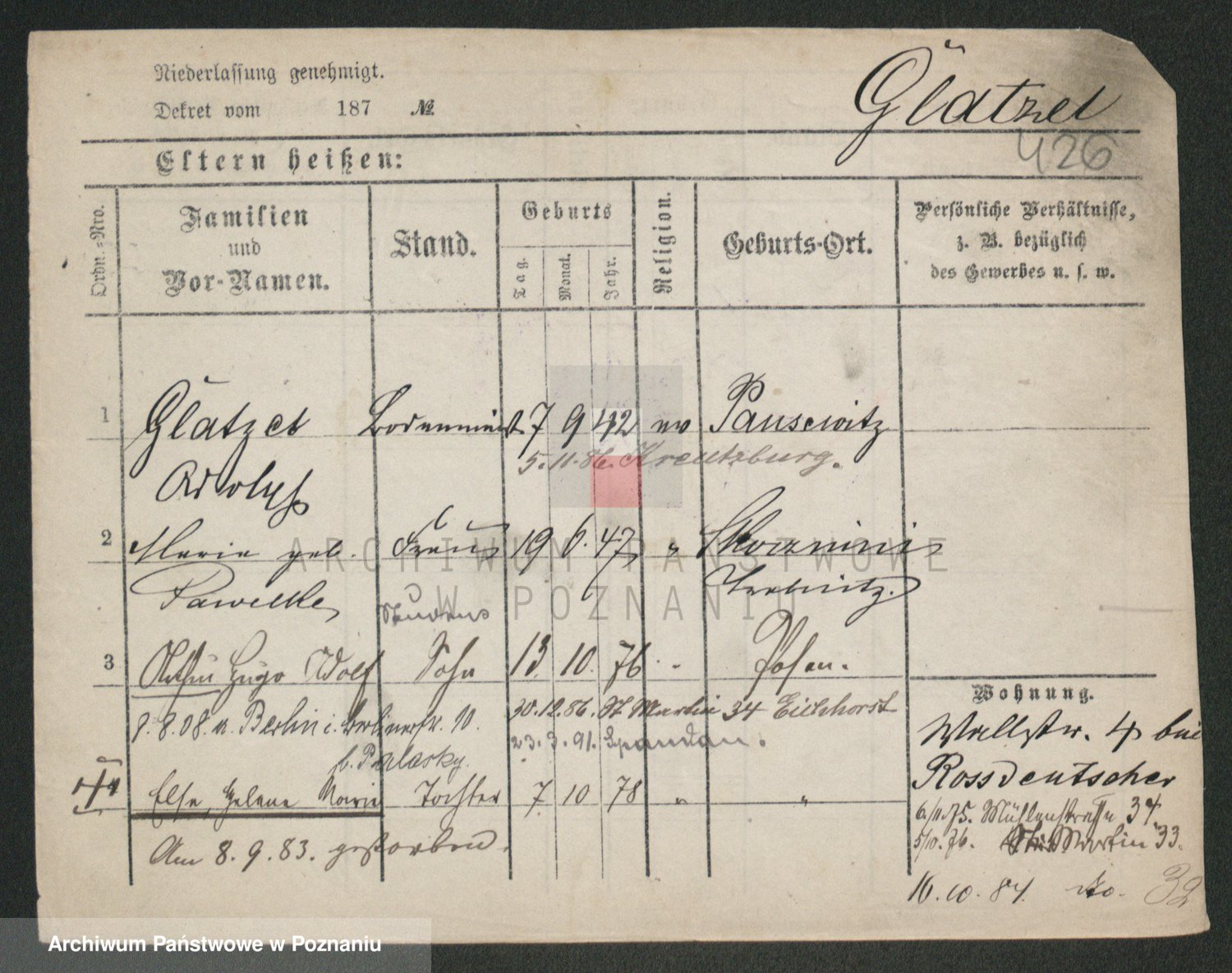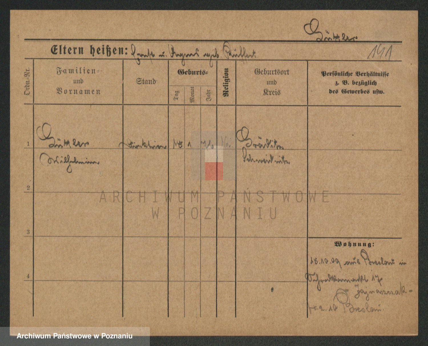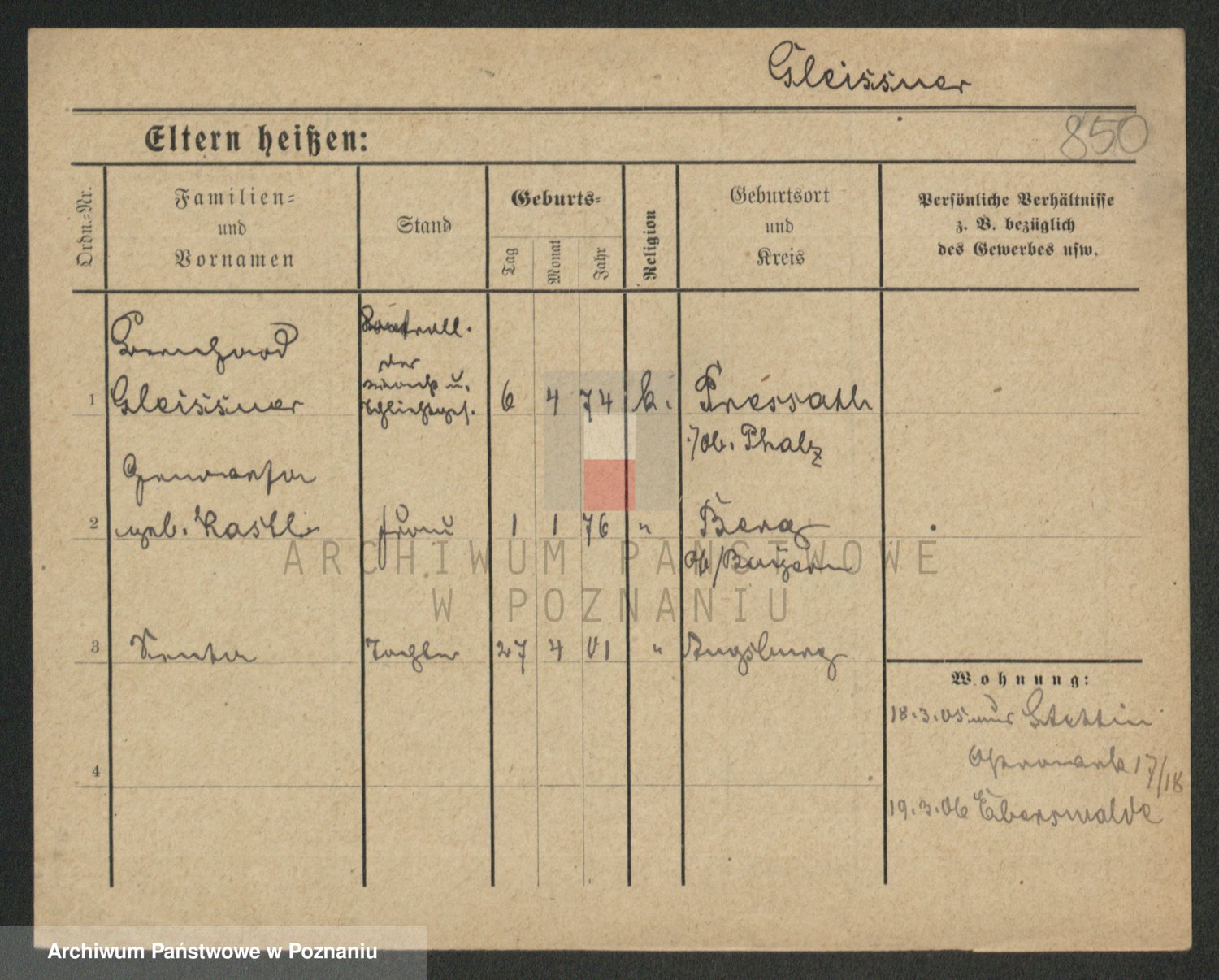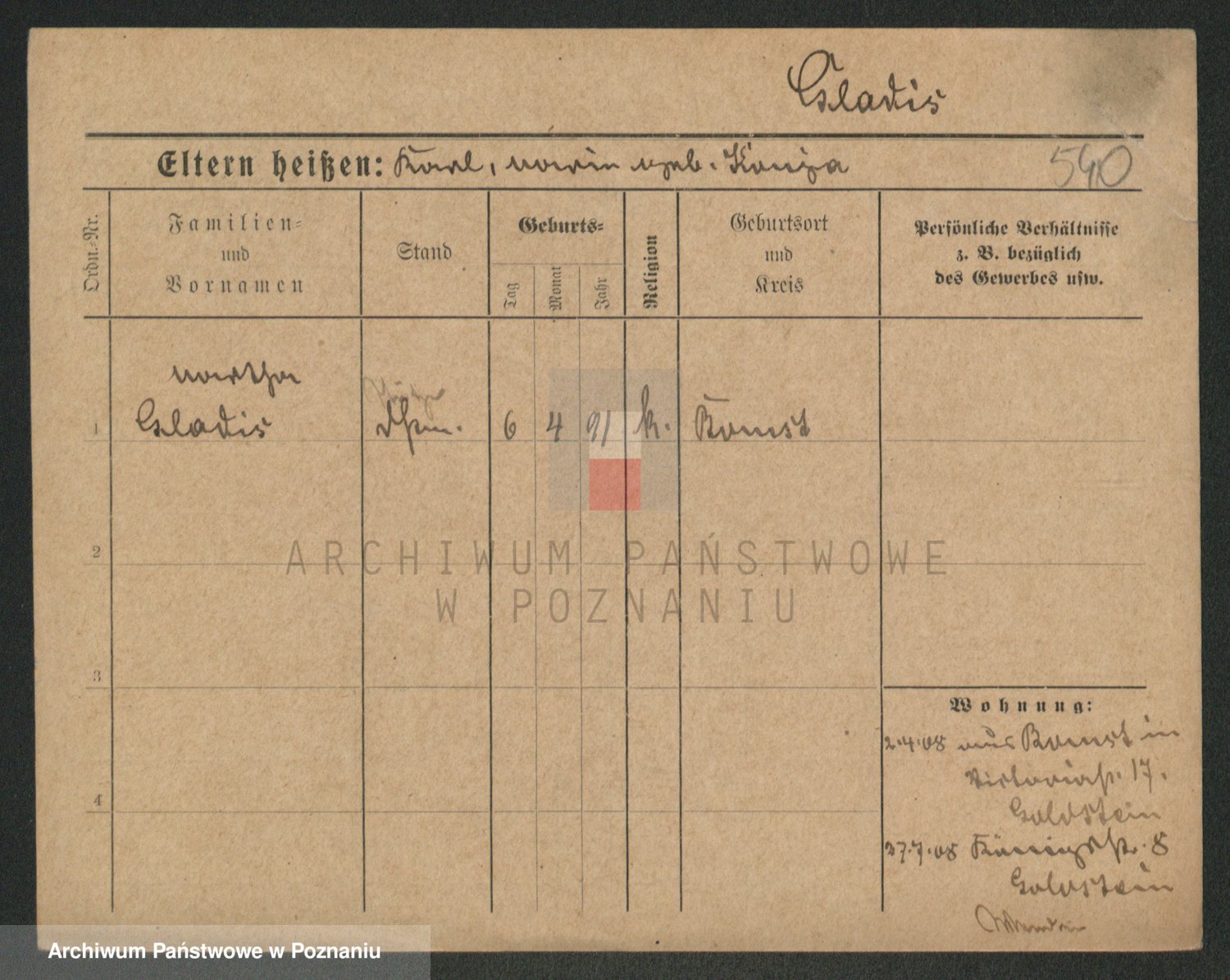 Podgląd karty osobowej dostępny jest po kliknięciu na nazwisko lub ikonkę karty. Można dokonywać powiększenia (ikony na górze) lub przechodzić między kolejnymi skanami (strzałki po bokach).