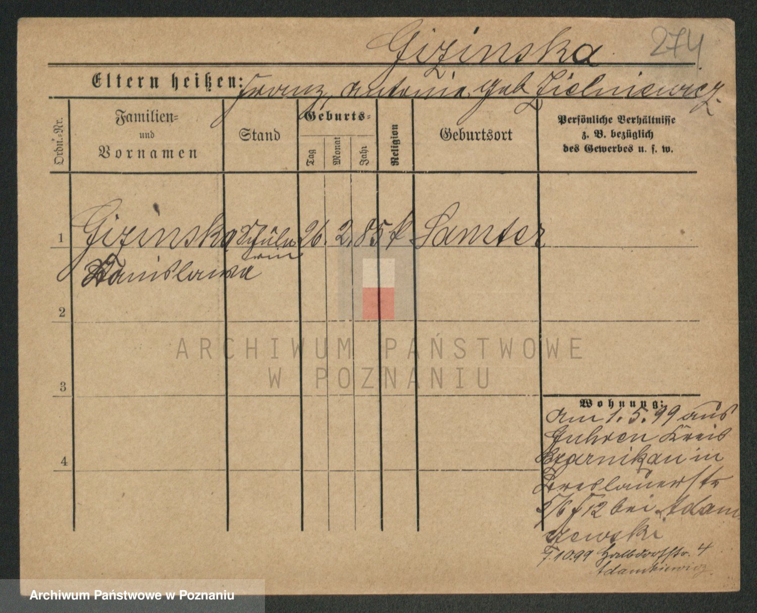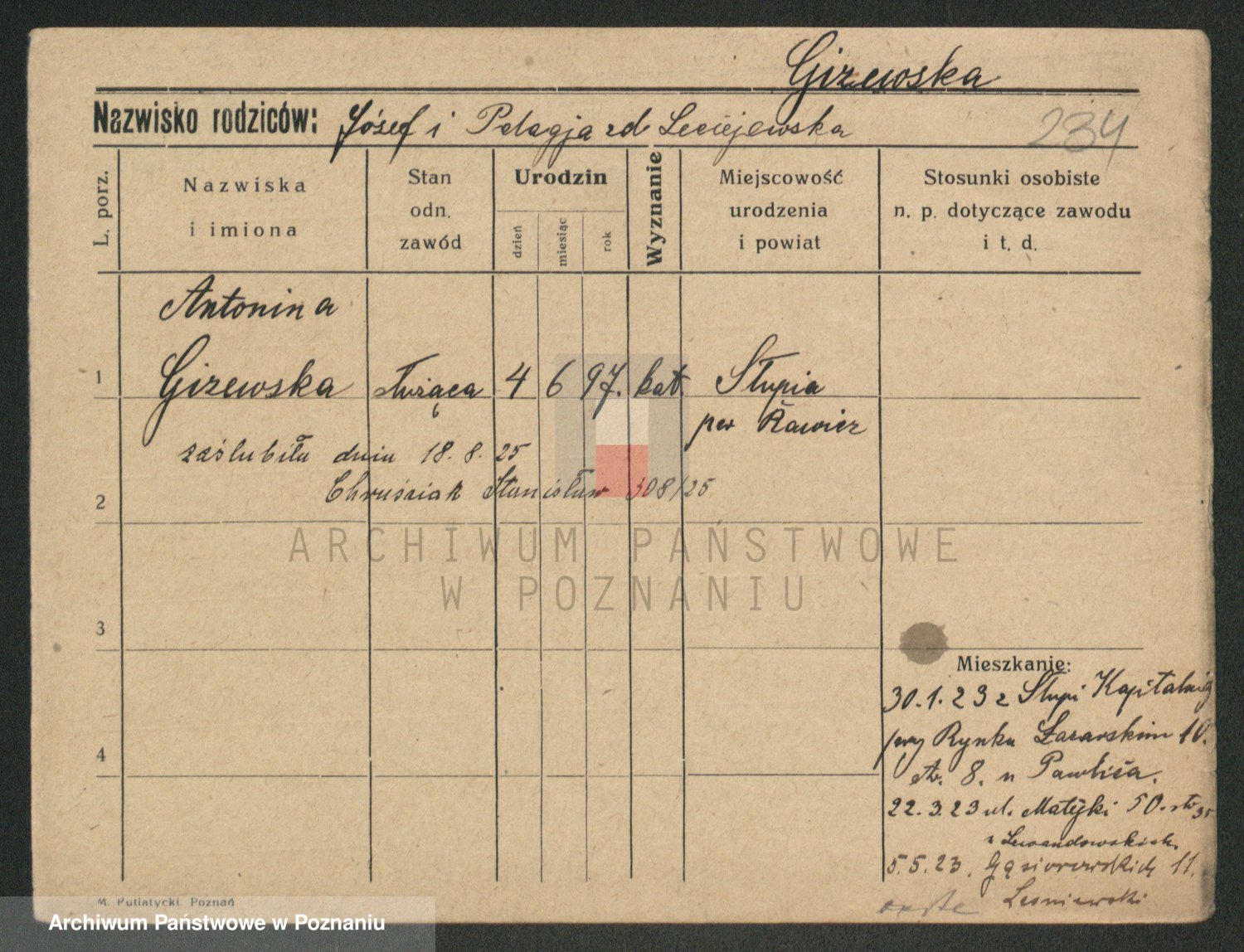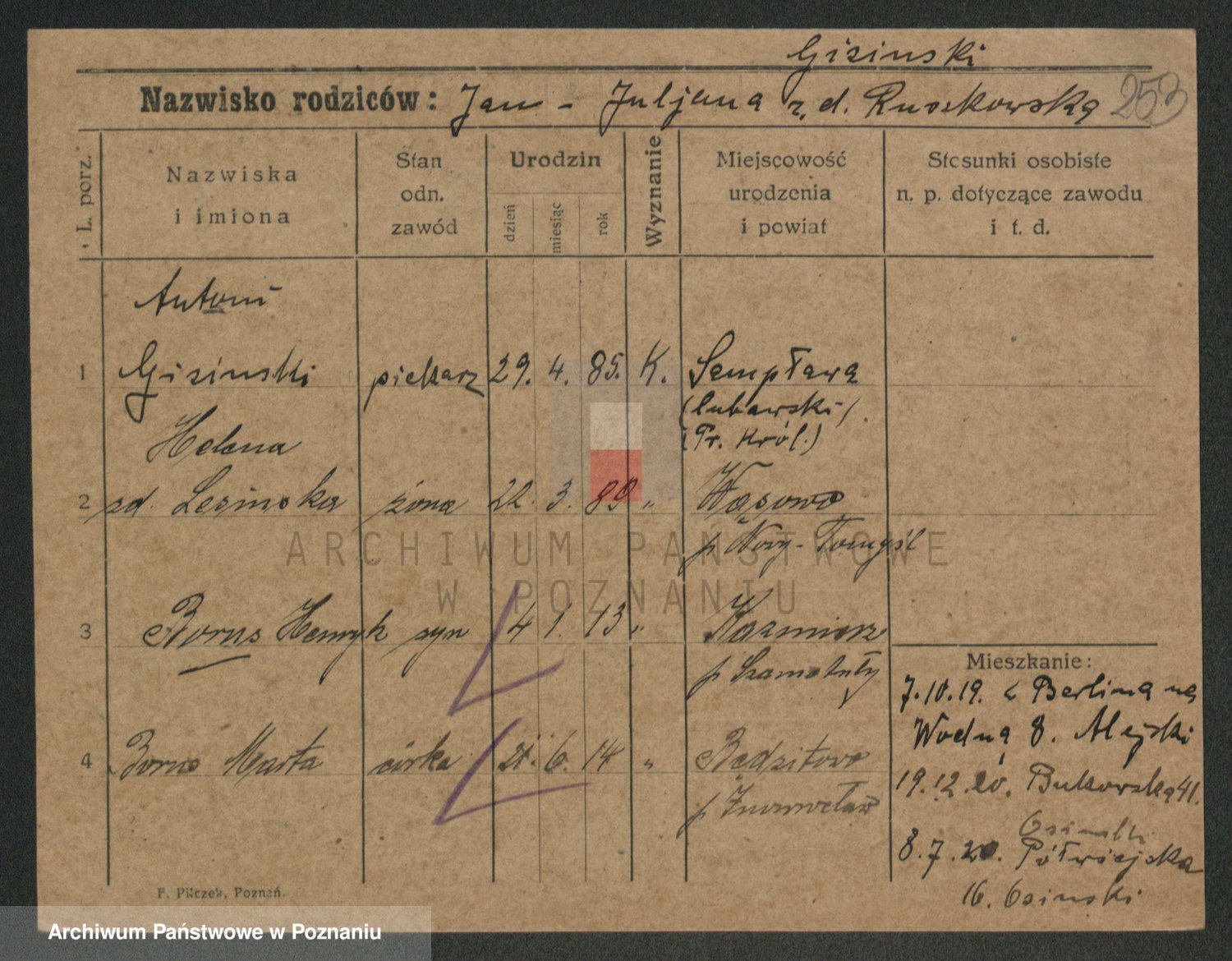 Gieszczyński z.d. Ruszczyńska I voto Ksiąskowiak, Antonie