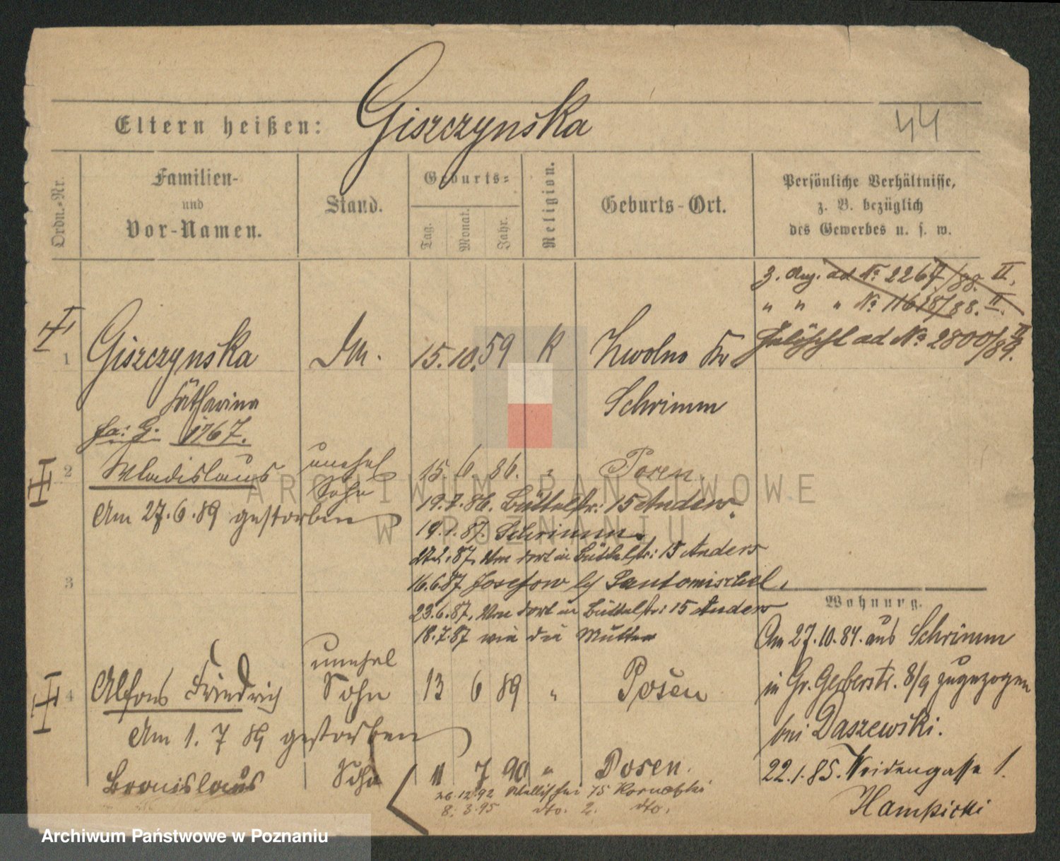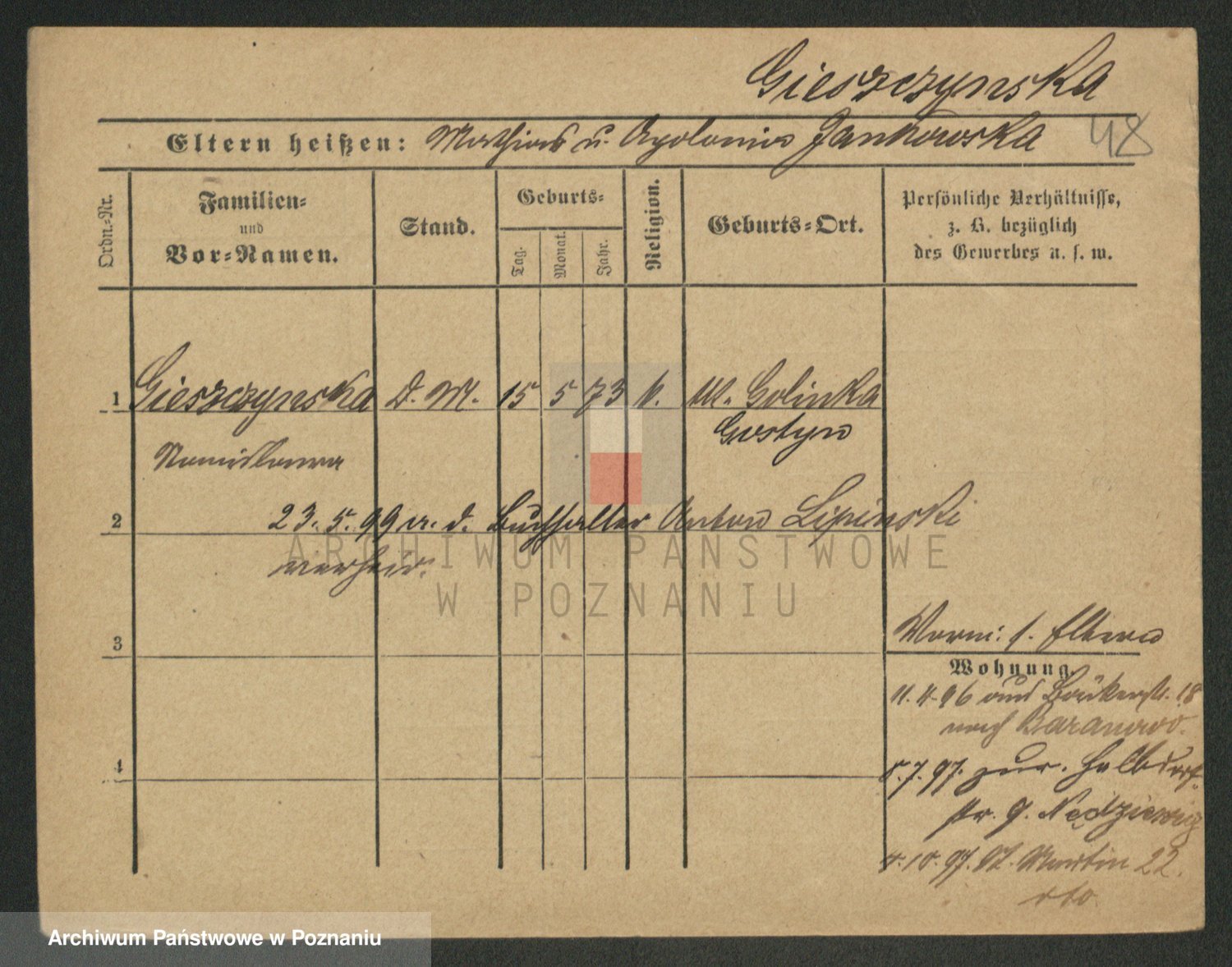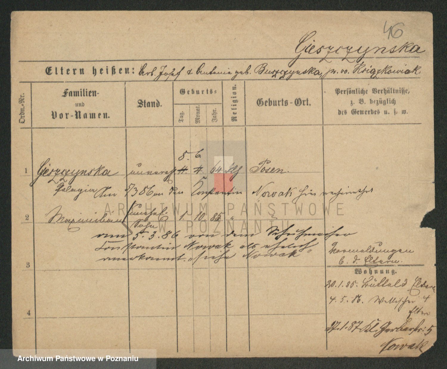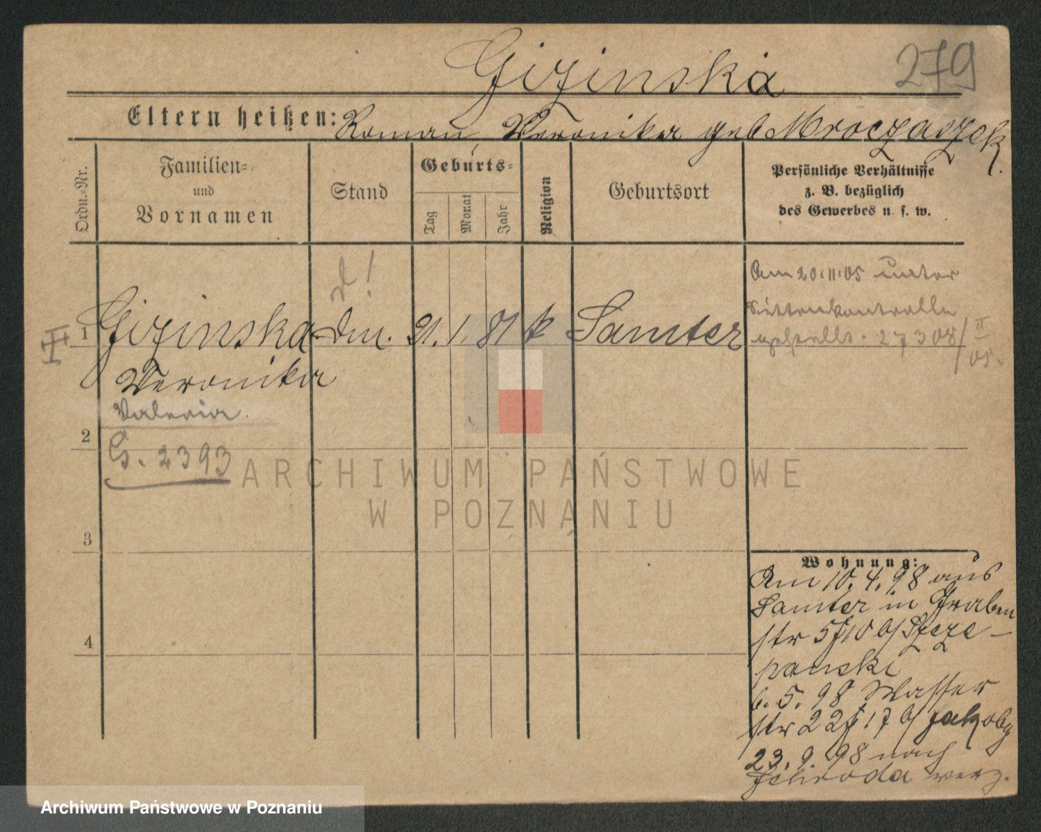 Gieszczyński z.d. Ruszczyńska I voto Ksiąskowiak, Antonie