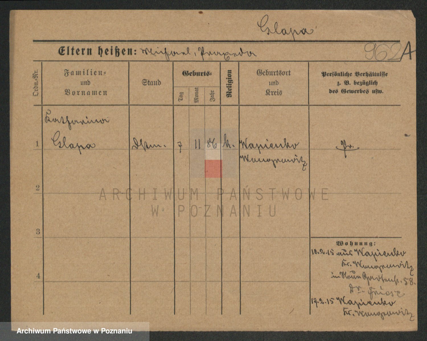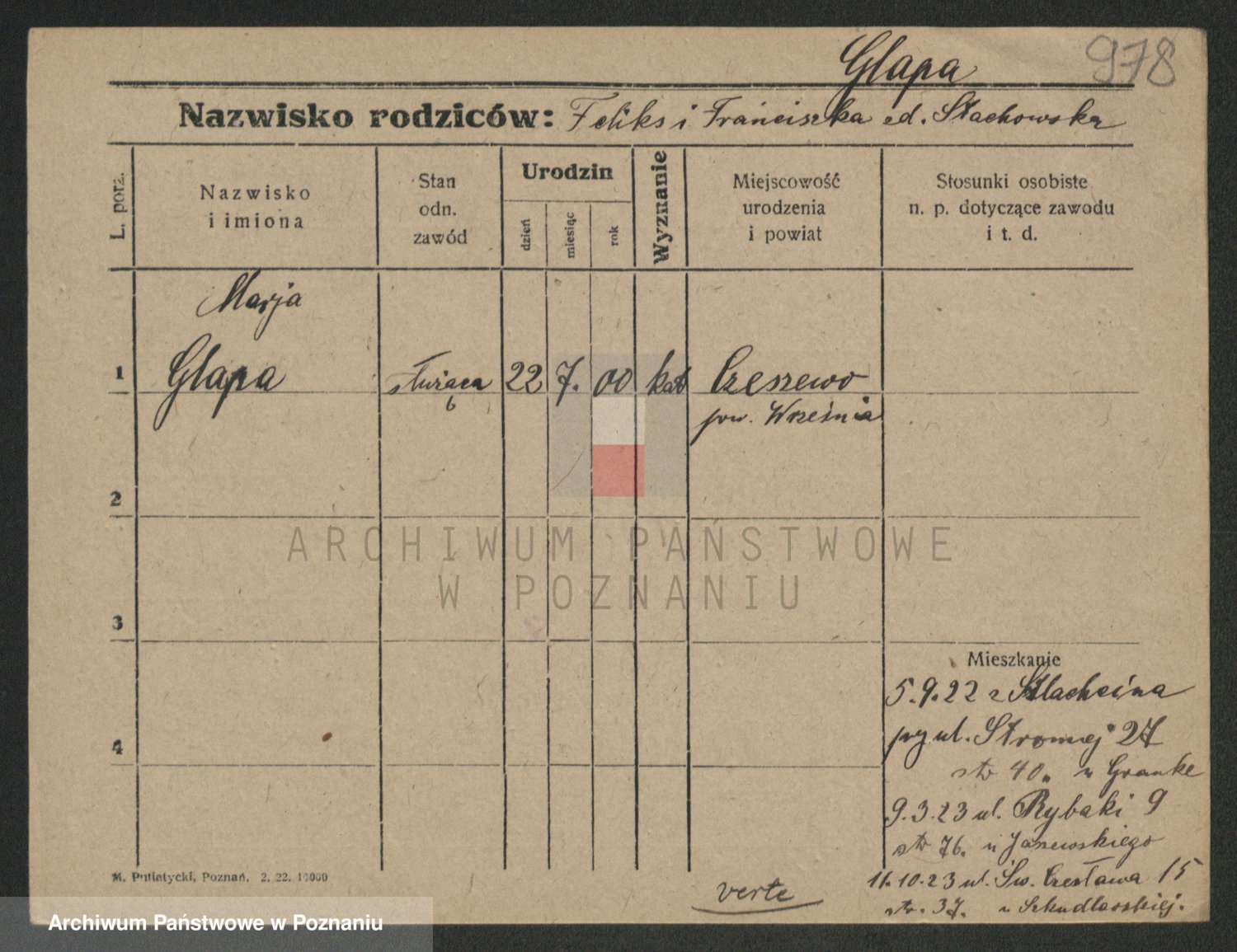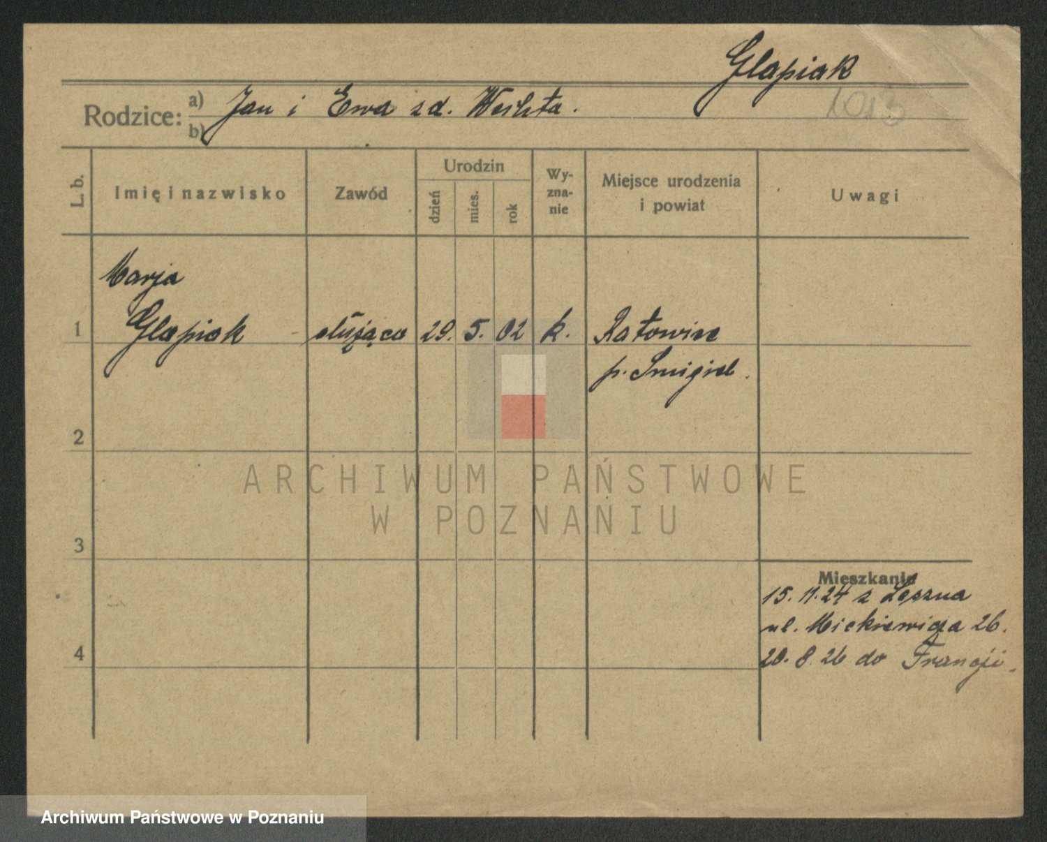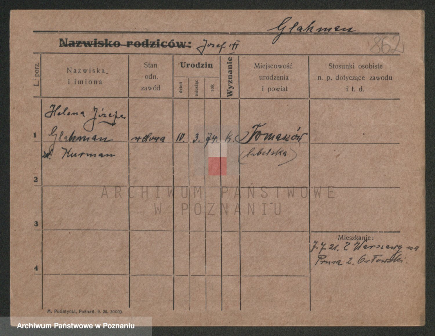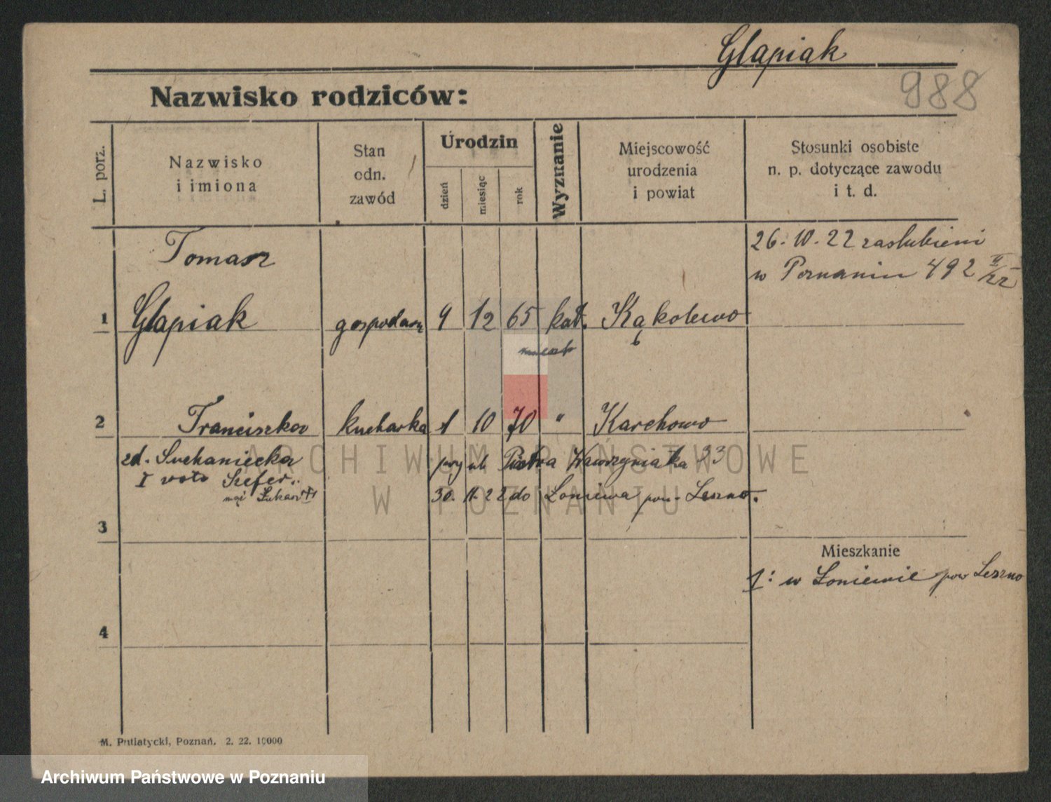 Glapiak z.d. Suchaniecka I voto Szefer, Franciszka