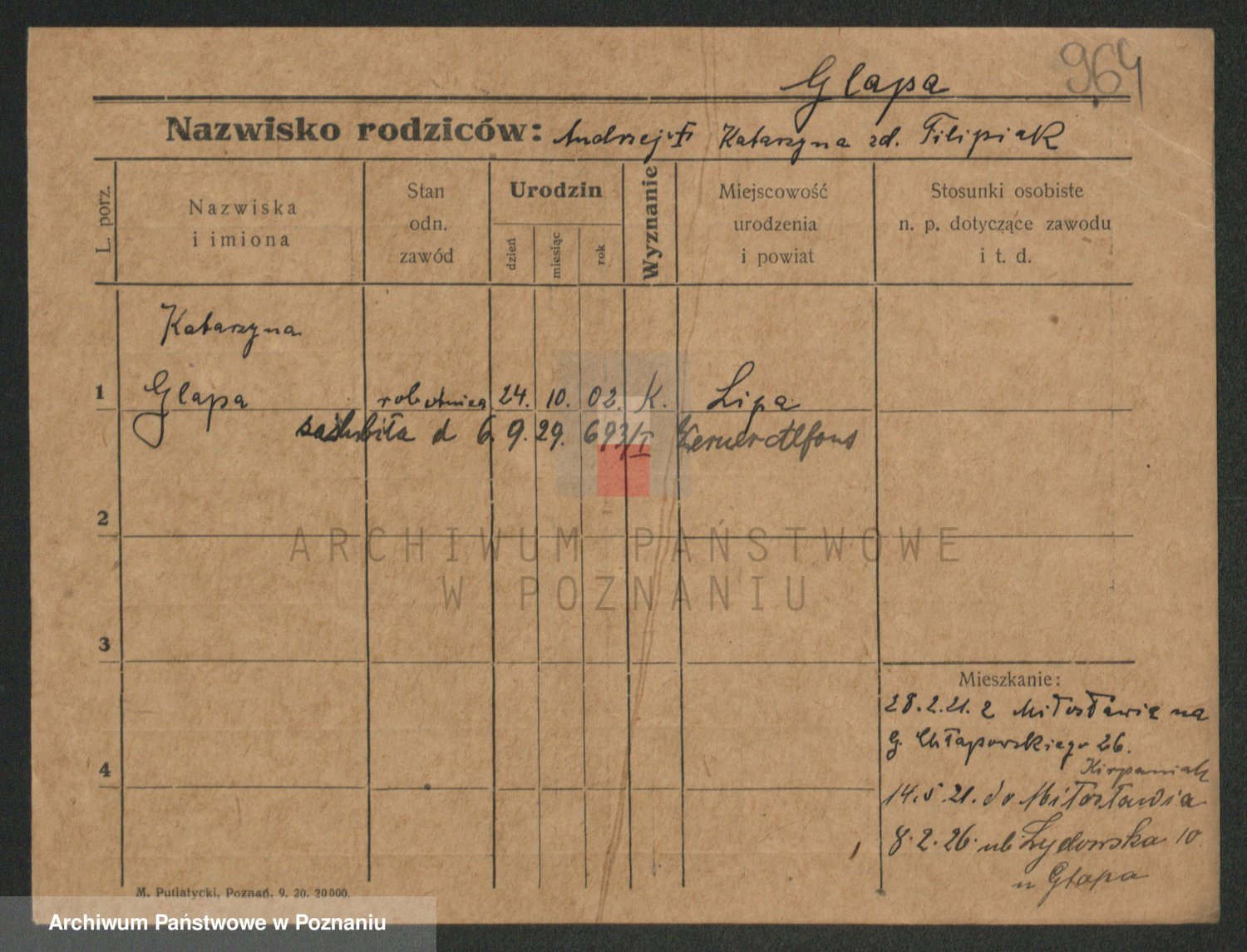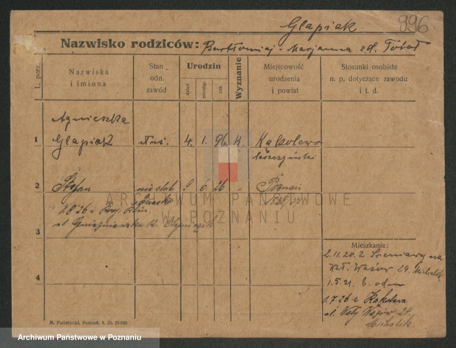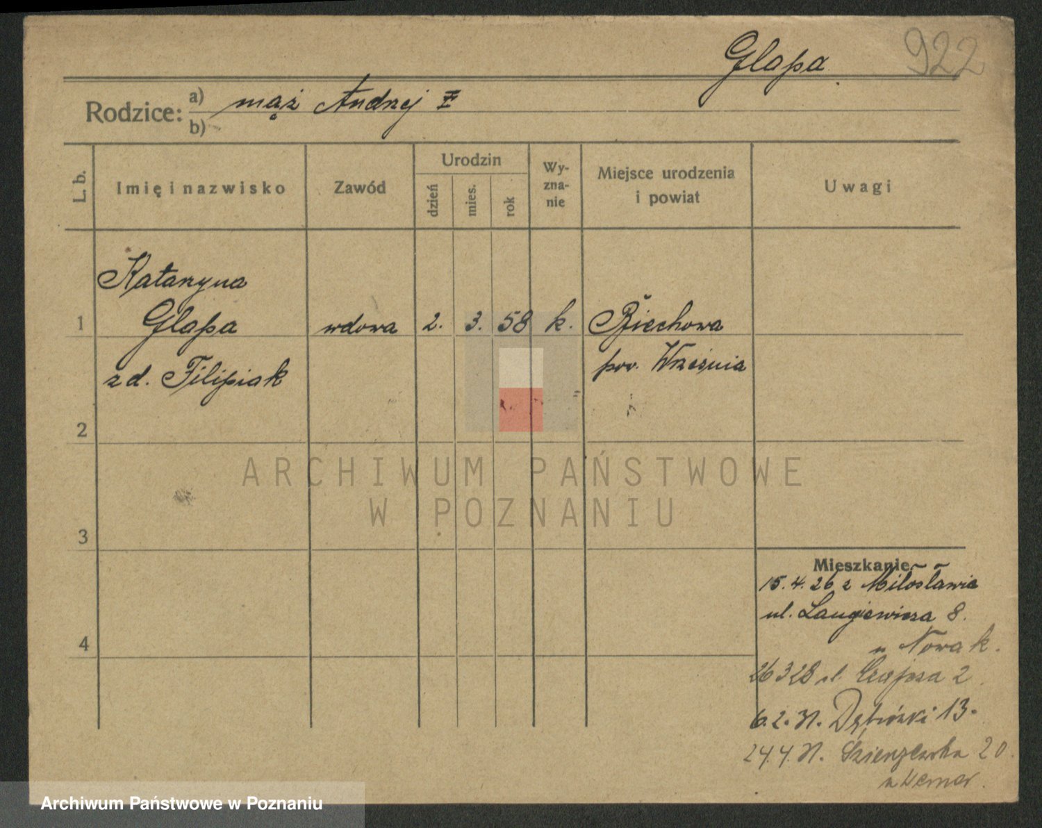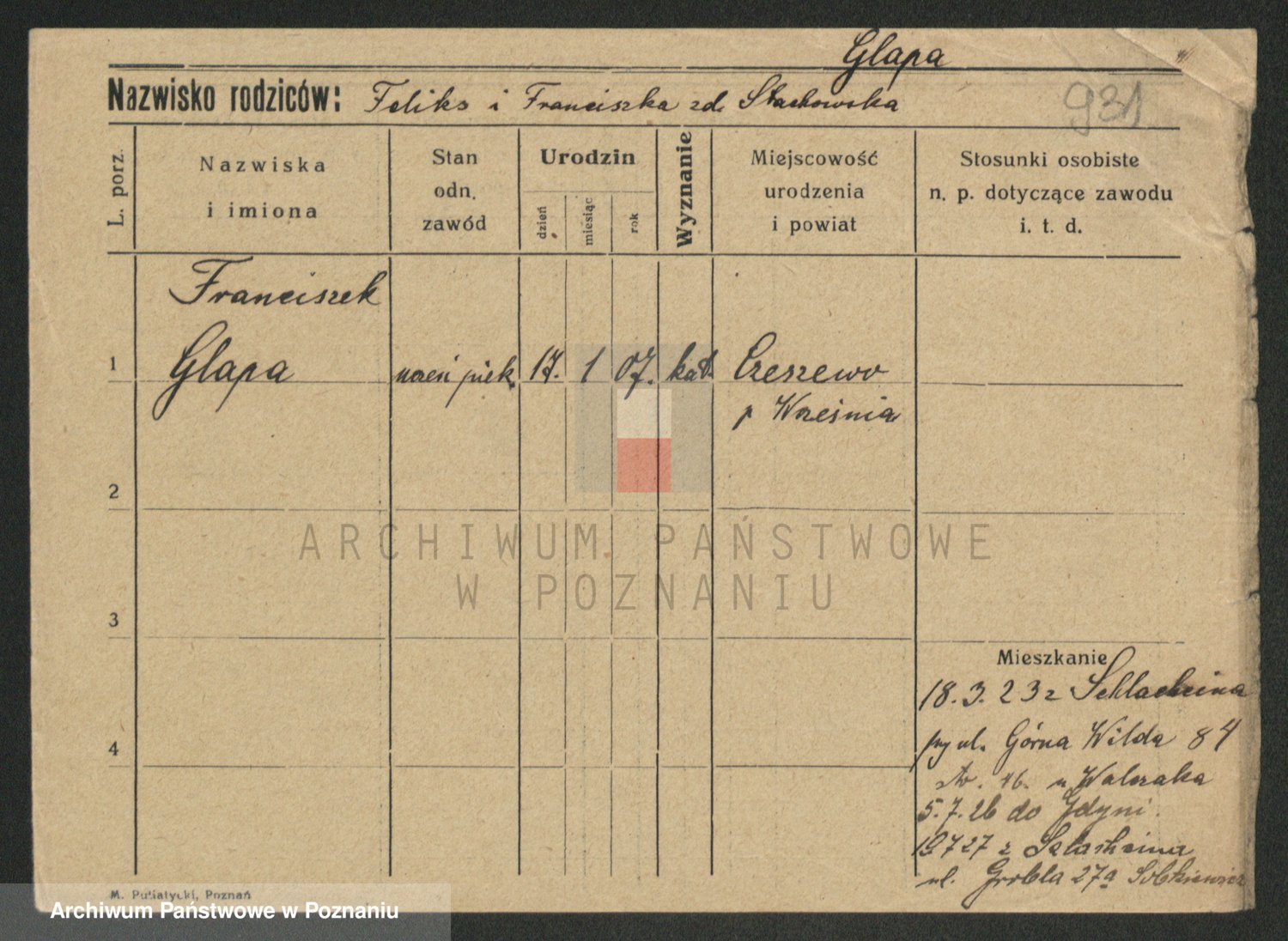 Glapiak z.d. Suchaniecka I voto Szefer, Franciszka