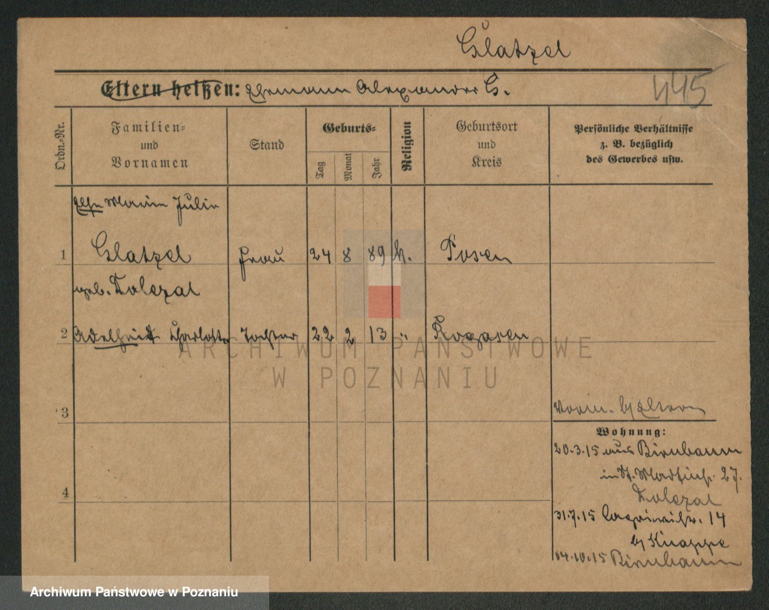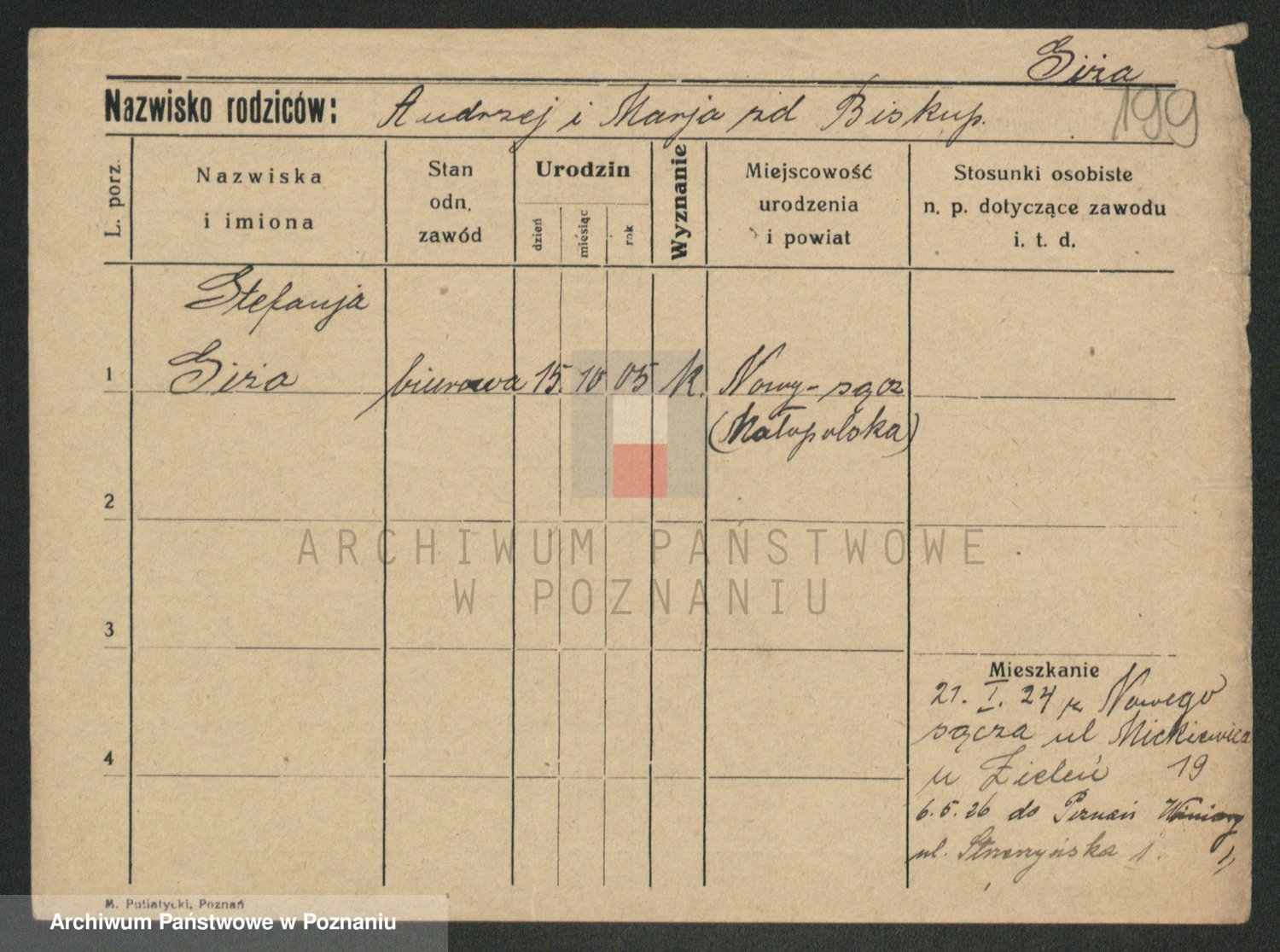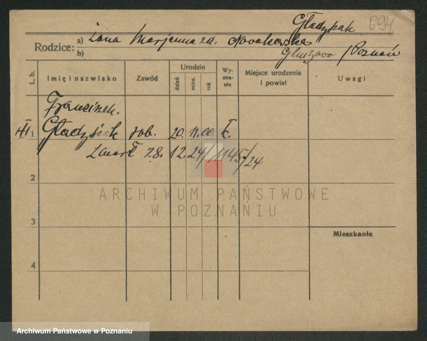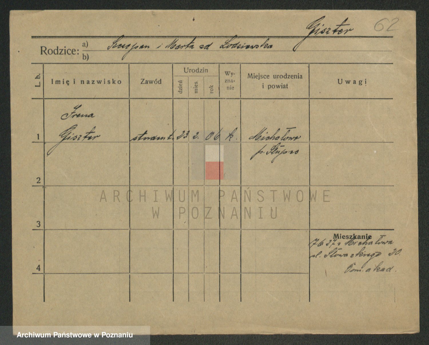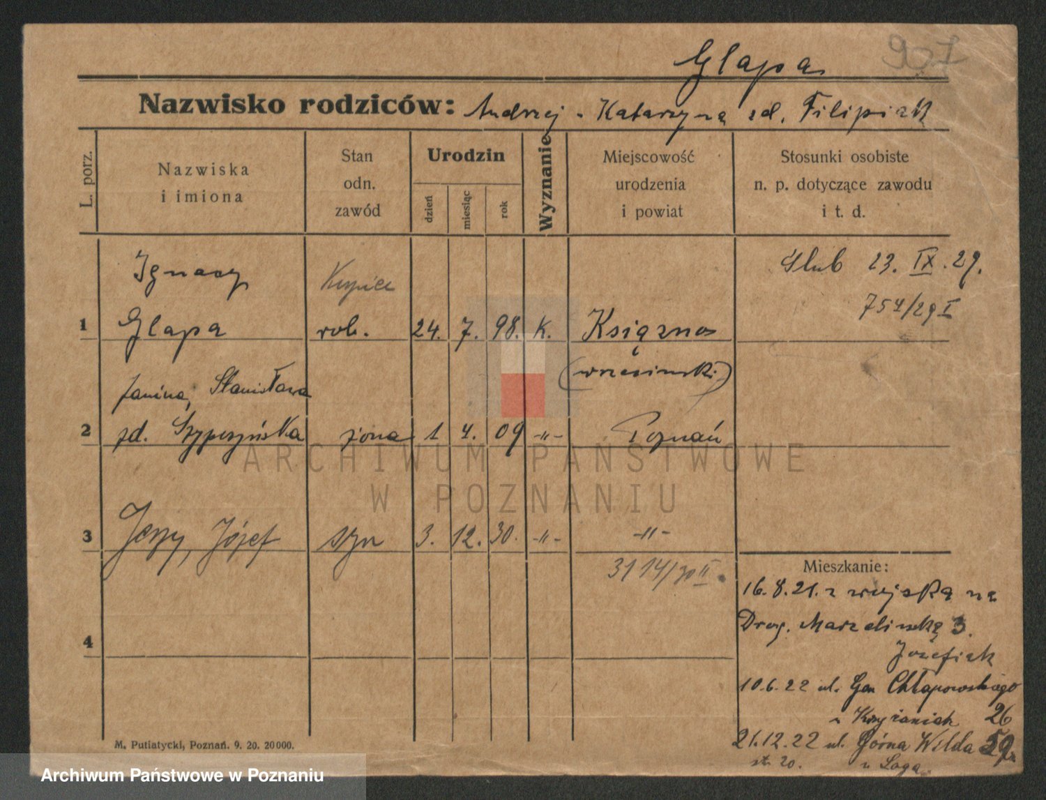 Glapiak z.d. Suchaniecka I voto Szefer, Franciszka