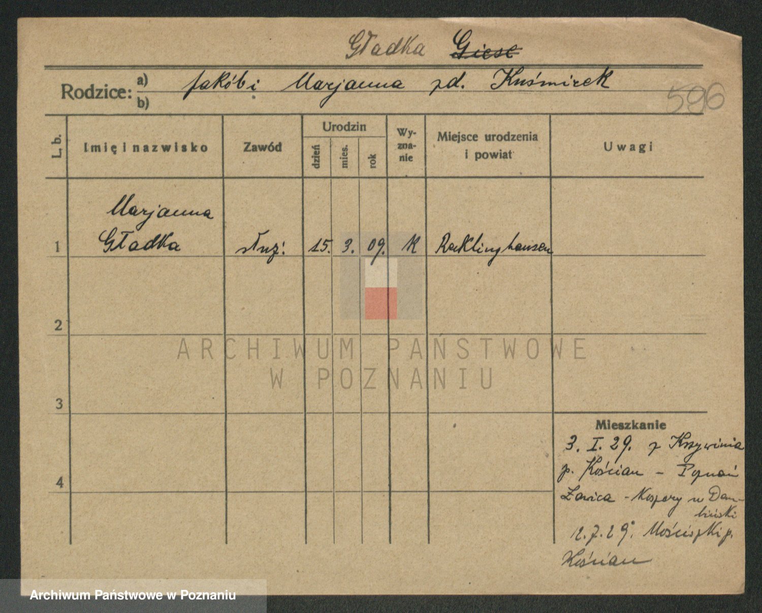 Ksiąskowiak Gieszczyński, Marie