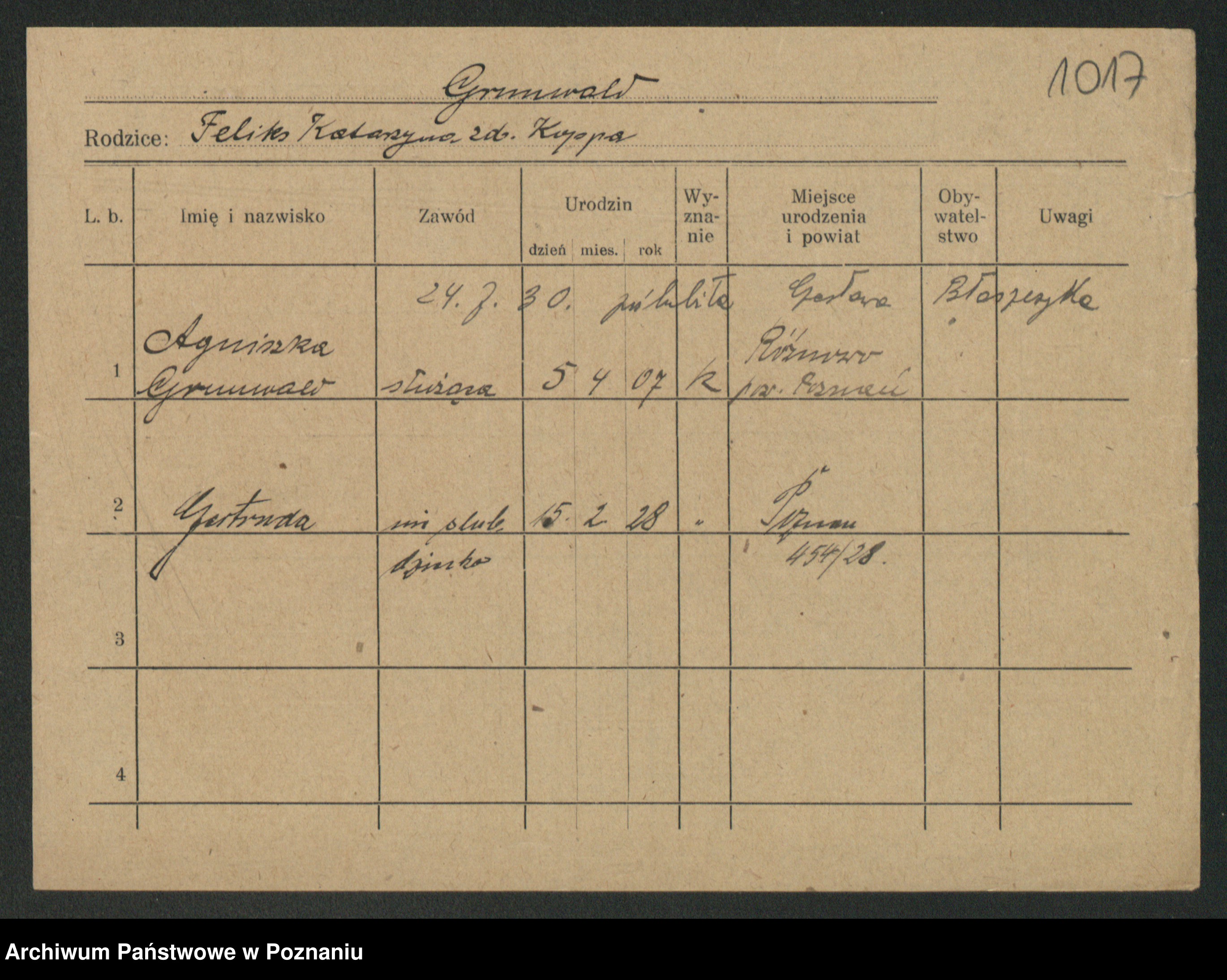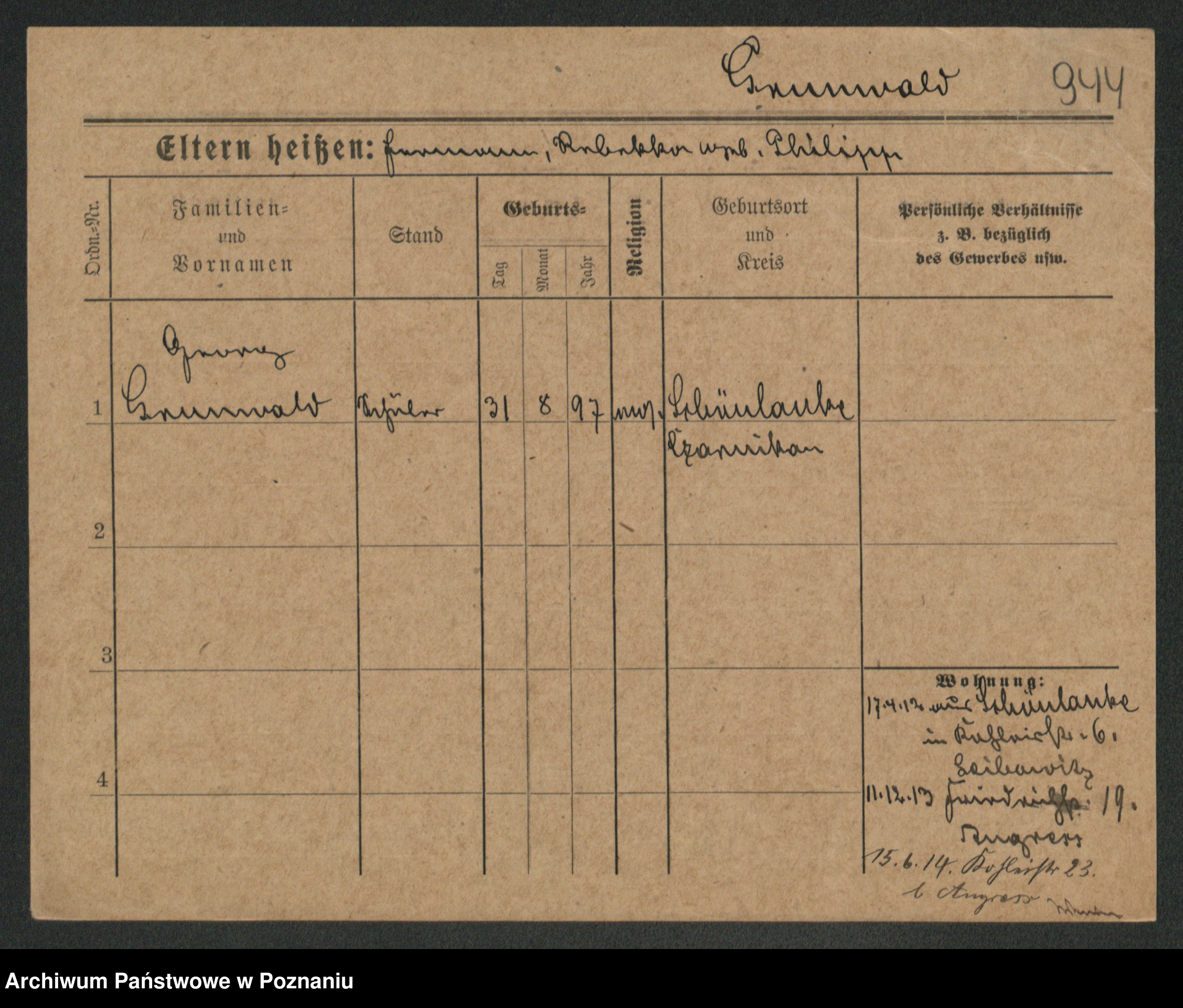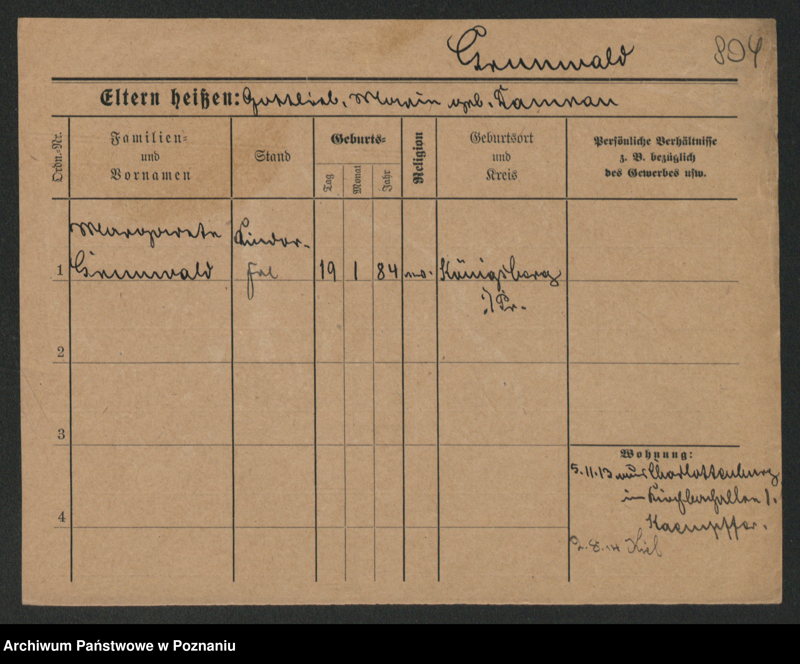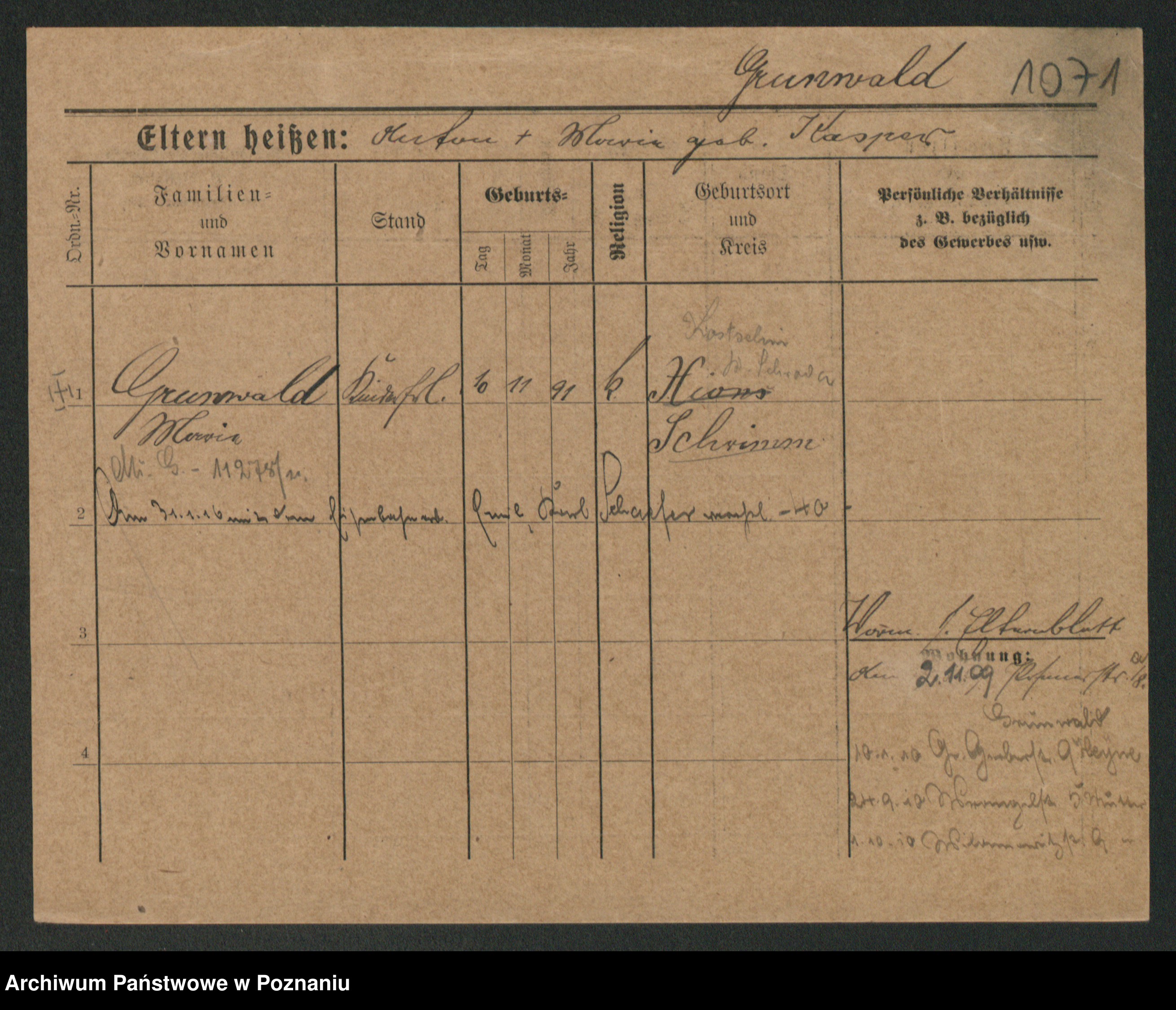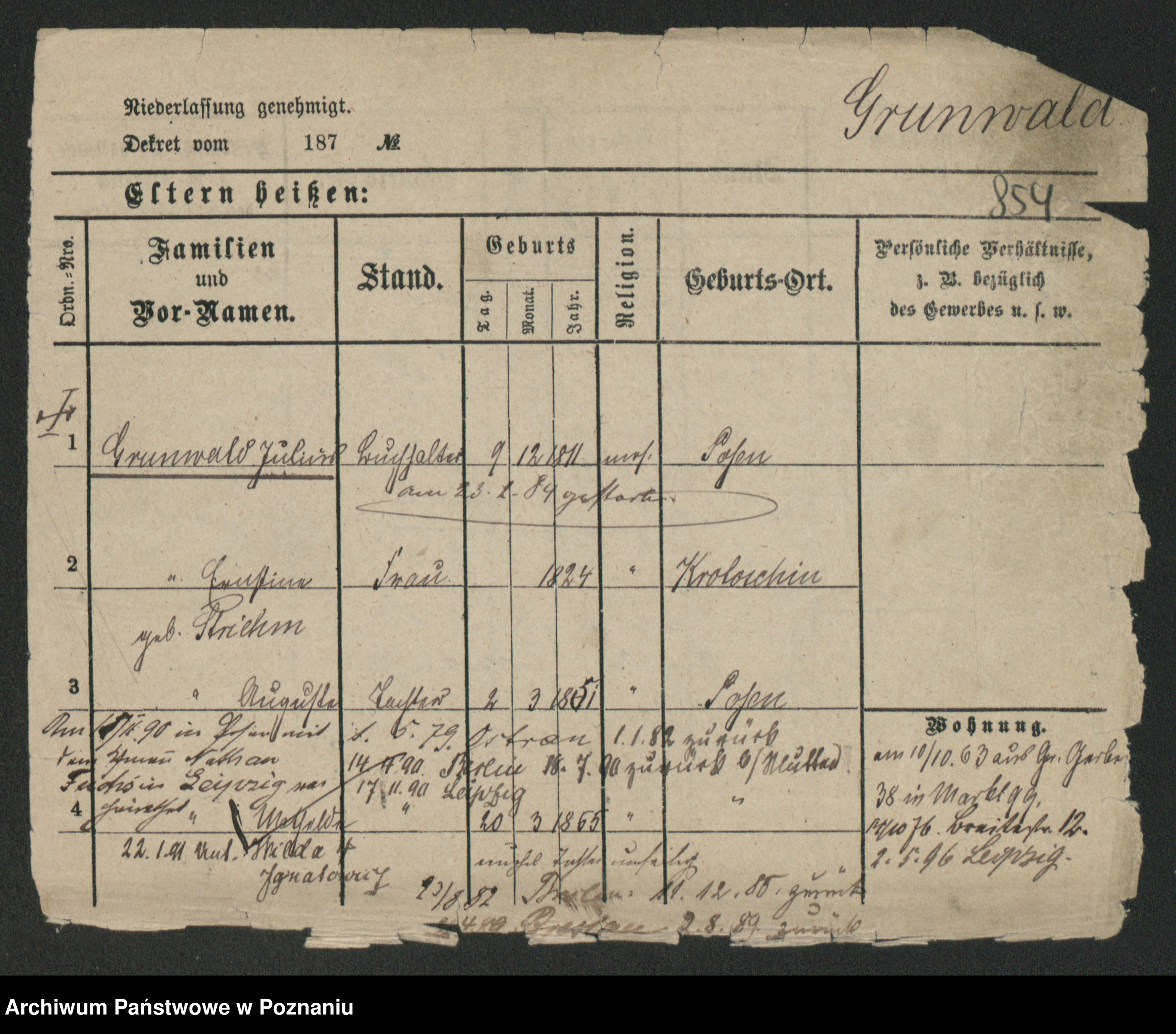 Grunwald z.d. Zielinska I v. Kopras, Katharina