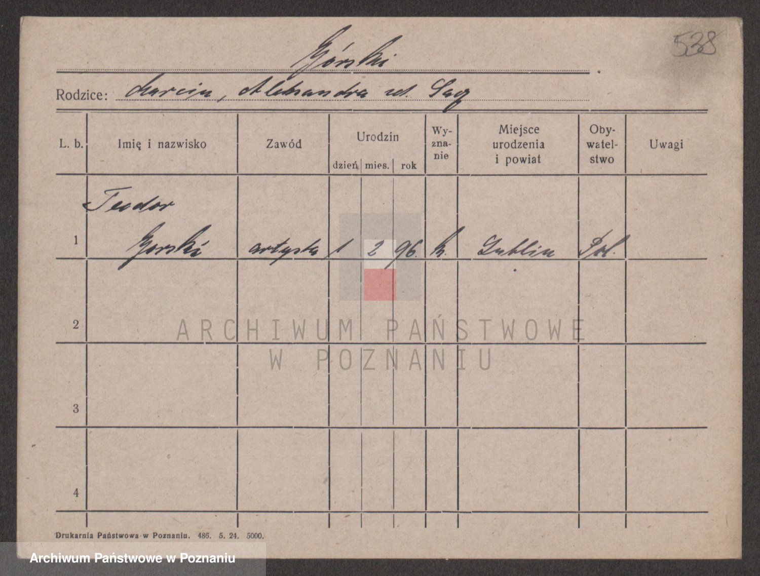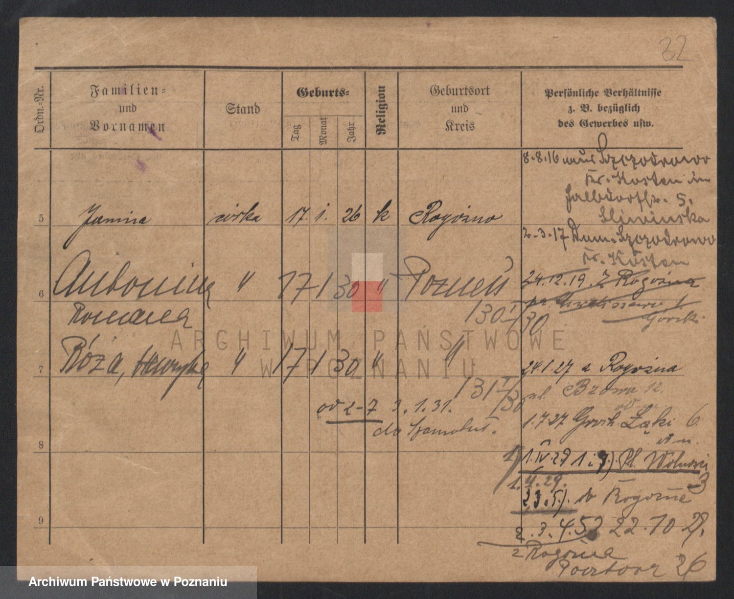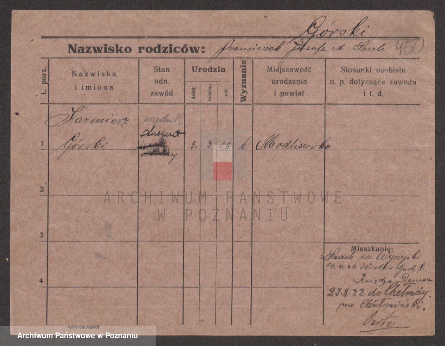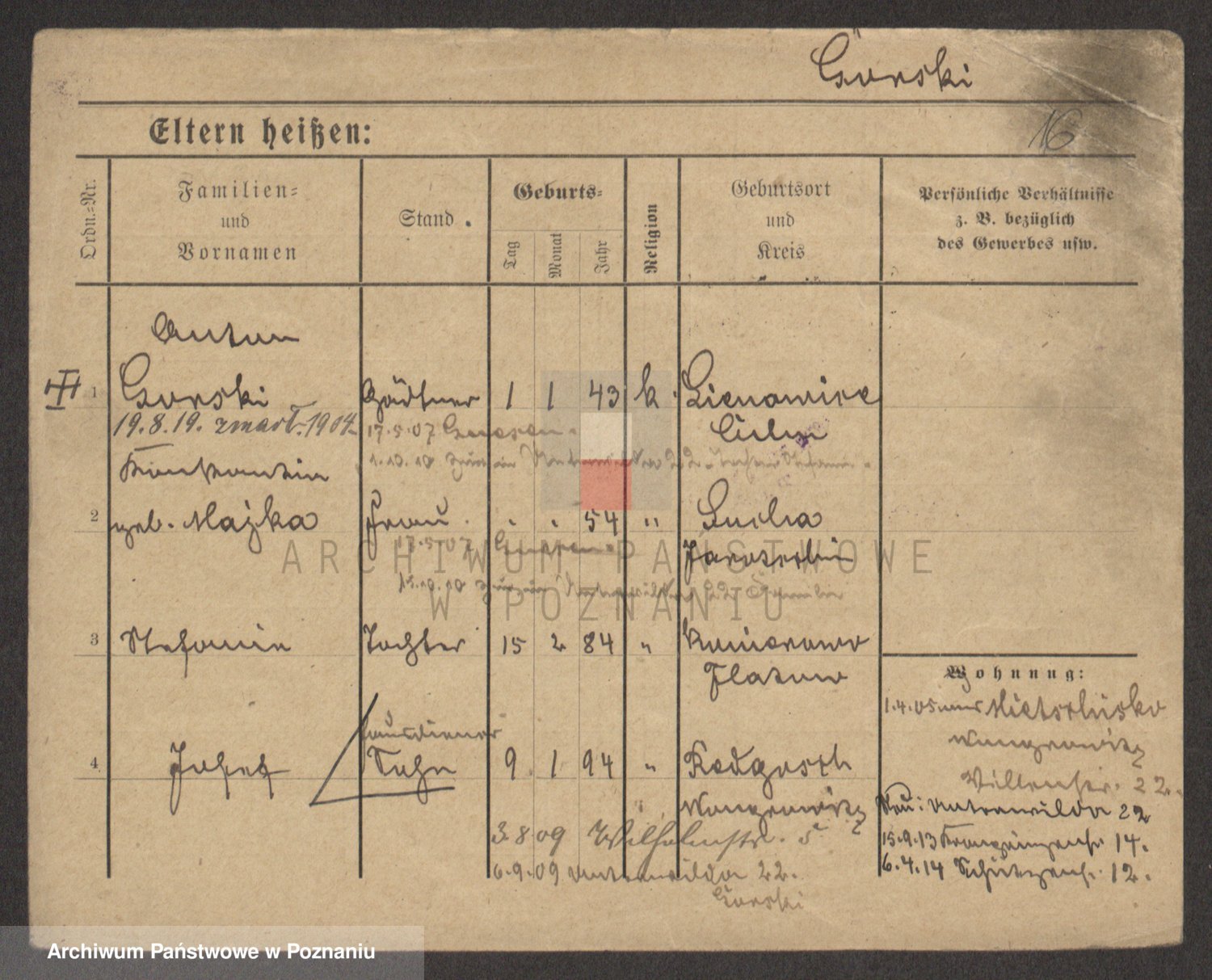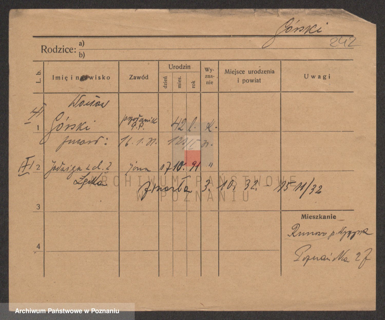 Podgląd karty osobowej dostępny jest po kliknięciu na nazwisko lub ikonkę karty. Można dokonywać powiększenia (ikony na górze) lub przechodzić między kolejnymi skanami (strzałki po bokach).