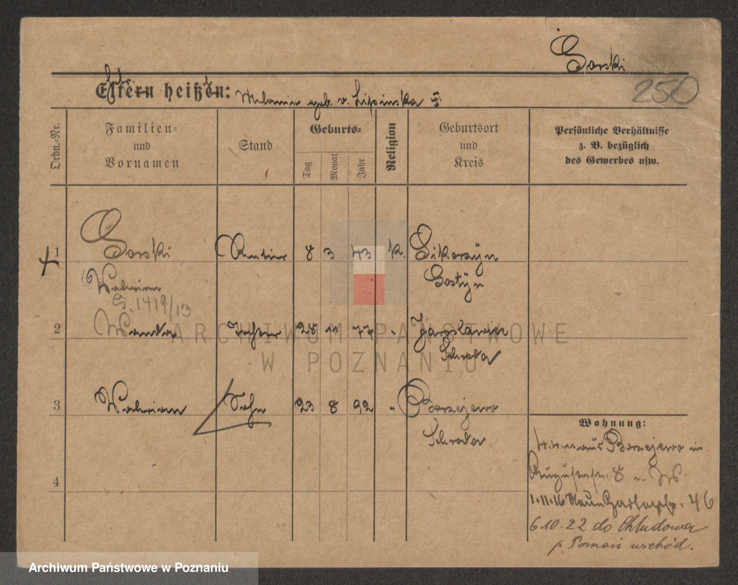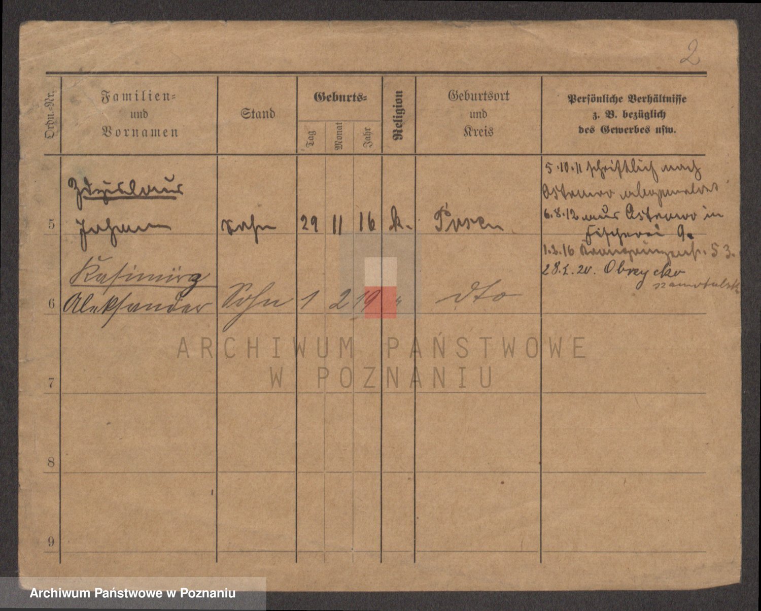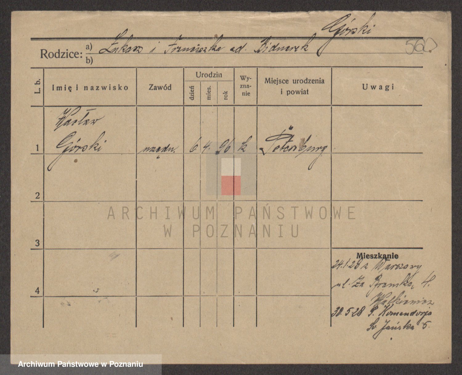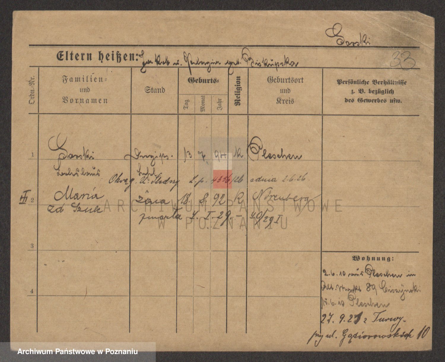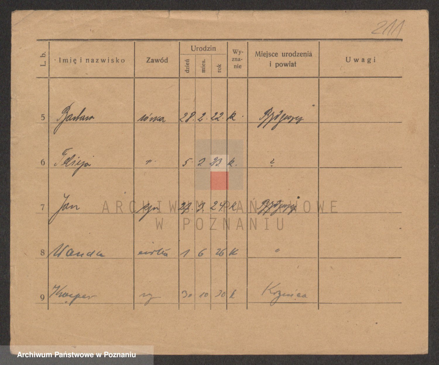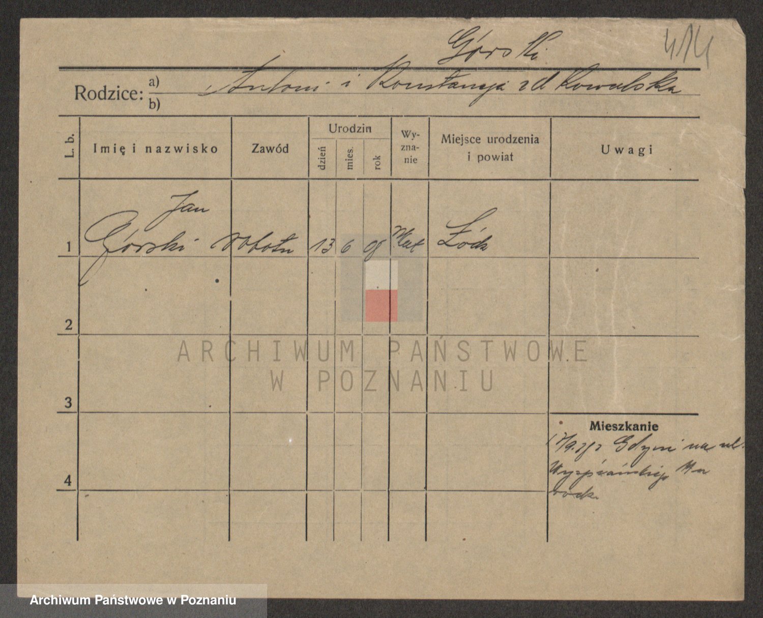 Podgląd karty osobowej dostępny jest po kliknięciu na nazwisko lub ikonkę karty. Można dokonywać powiększenia (ikony na górze) lub przechodzić między kolejnymi skanami (strzałki po bokach).